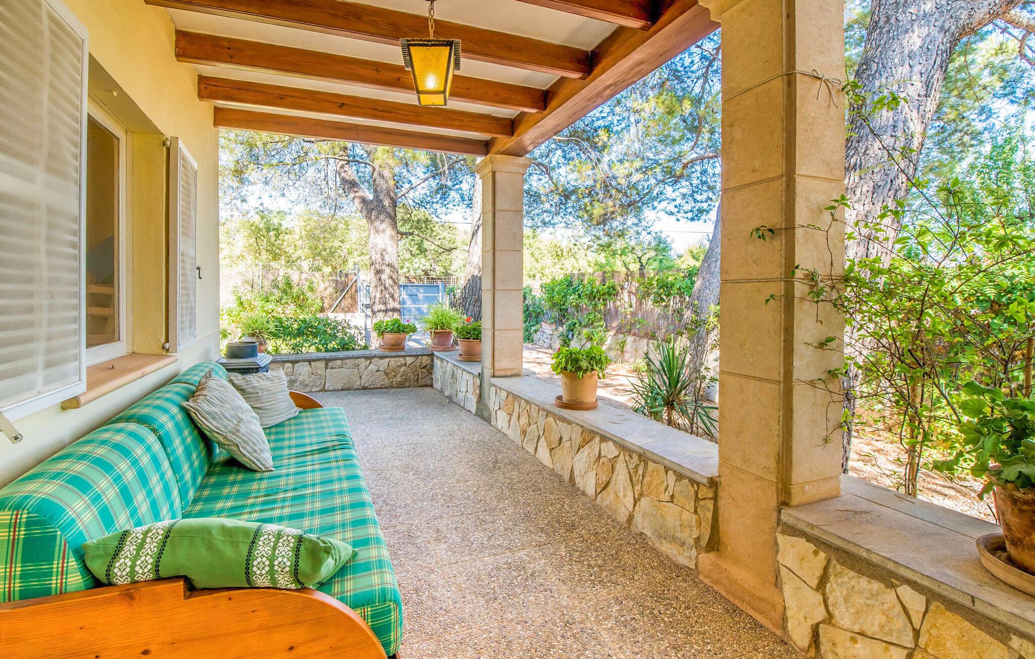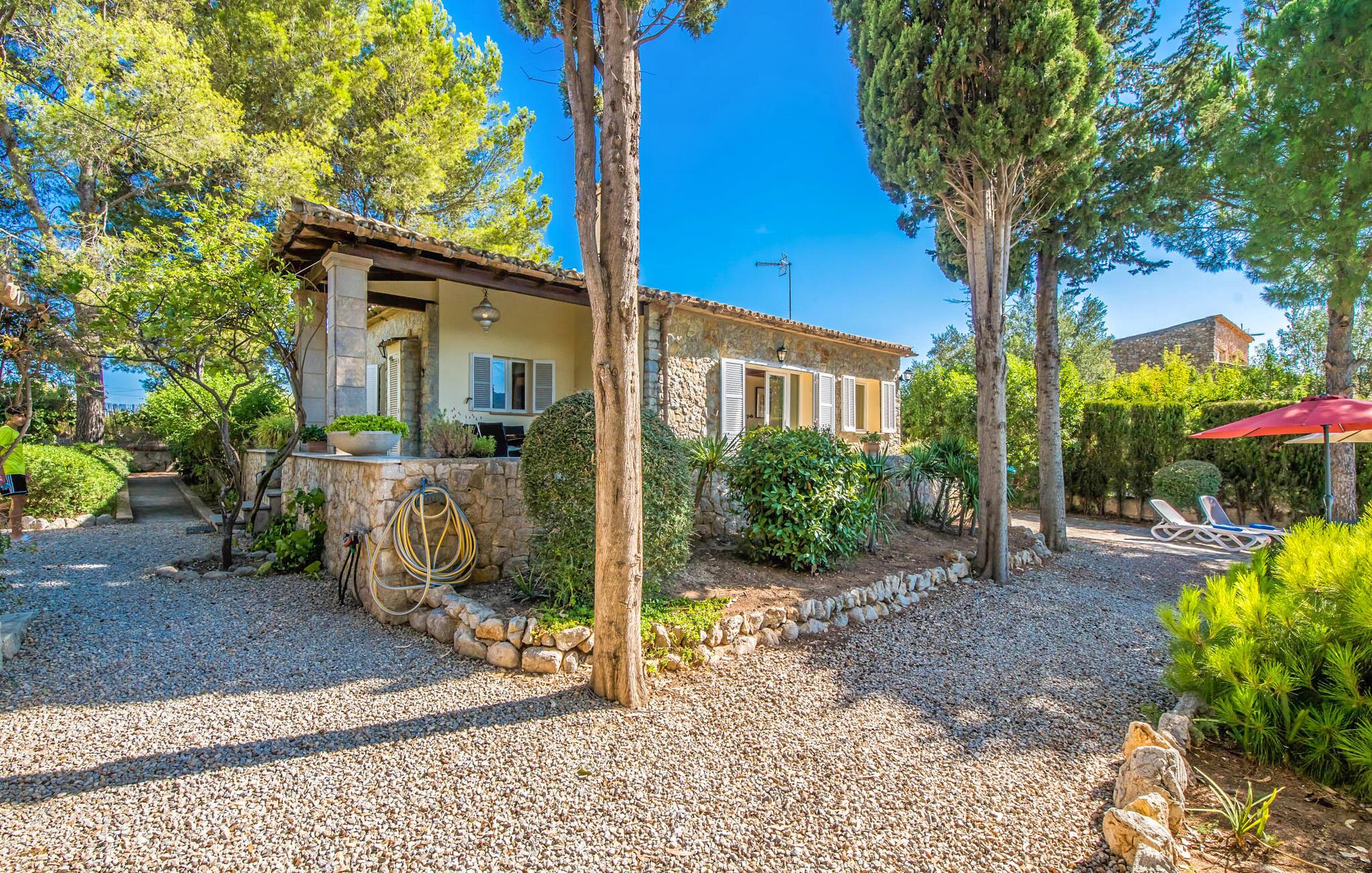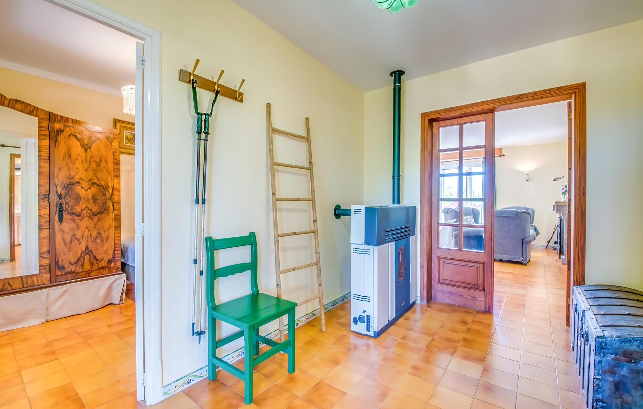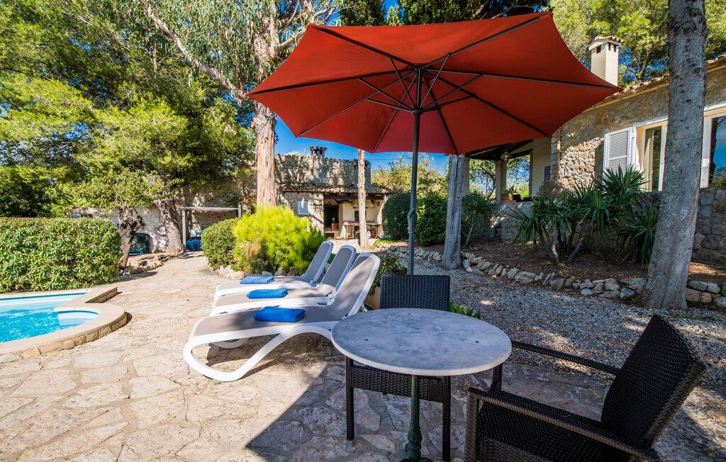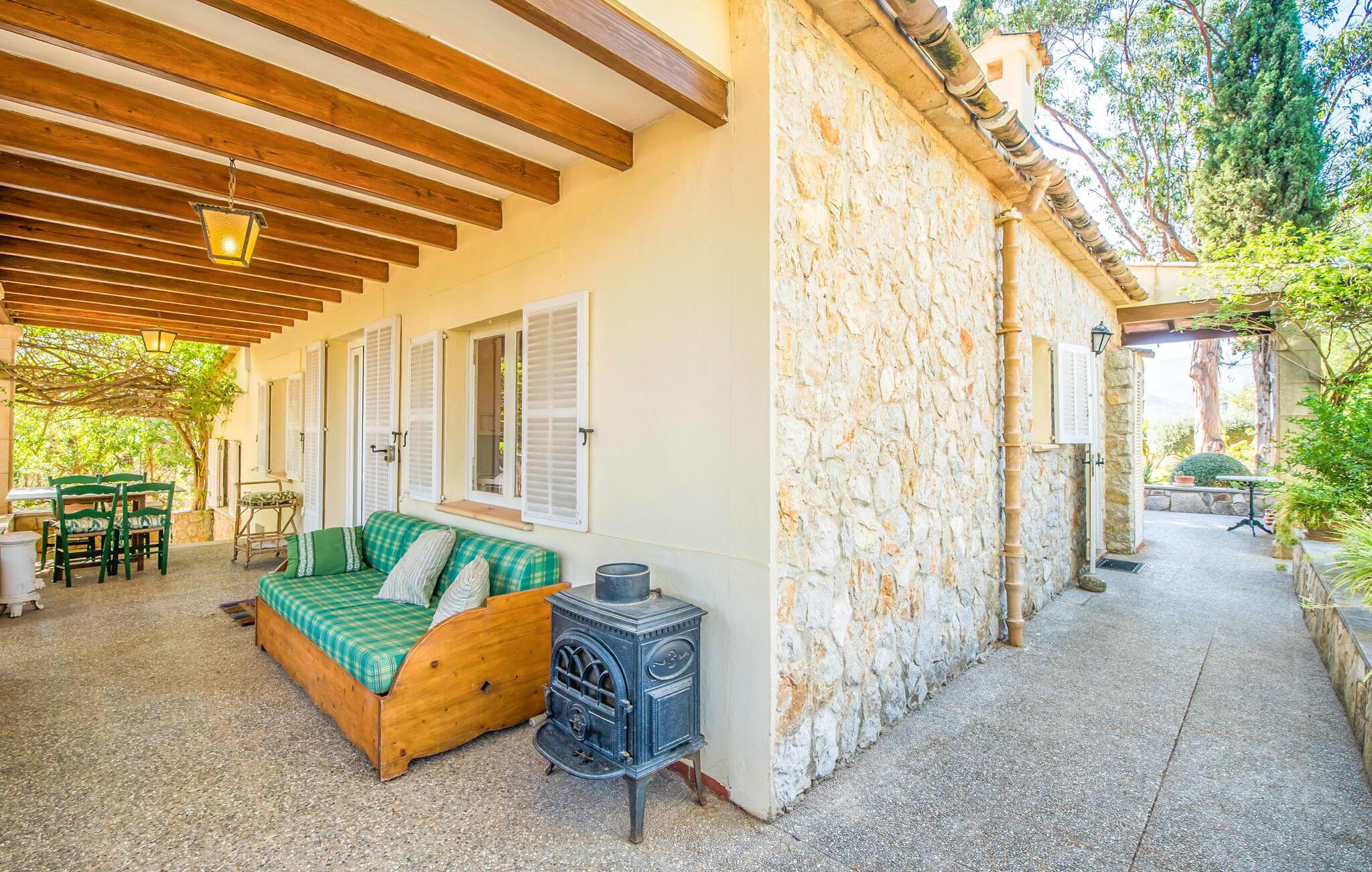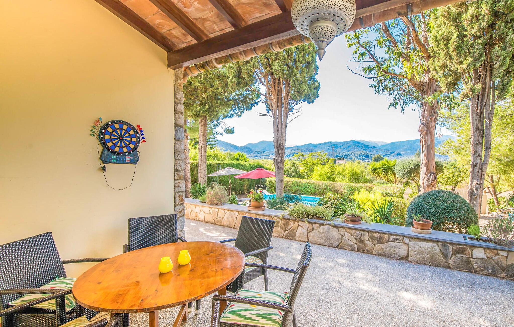 Villaen “Can Reure” ligger præcis mellem Mancor de la Vall og Inca; Begge steder kan nås på kun fem minutter i bil. På den rustikke, 2.500 m² store ejendom finder I talrige mandeltræer, som giver et strejf af typisk mallorcansk flair og samtidig giver udendørsområdet en vis hygge. Små hække, vægge og den store mængde natursten og småsten passer harmonisk ind og understreger denne stemning yderligere. Udeområdets midtpunkt er poolen, som er let tilgængelig via en halvcirkelformet trappe og giver en uforlignelig forfriskning på varme dage. I kan slappe meget af på liggestolene og virkelig nyde middelhavssolen. I tilfælde af at UV-strålingen bliver for stærk, er en parasol tilgængelig. I kan selvfølgelig også bruge lidt tid i et af de luftige, naturligt skyggefulde områder, der dukker op hist og her. Fra poolterrassen direkte foran huset kan I virkelig nyde og nyde den vidunderlige udsigt over bjergene. Den overdækkede grillplads er perfekt til kulinariske aftener ved grillen, mens I er sammen som en gruppe. Den gamle, delvist renoverede, et-etagers bygning har et samlet areal på 160 m² og består af en gang, et opholdsrum, et køkken, to soveværelser og to badeværelser, hvoraf det ene er en-suite. Et af soveværelserne er tilgængelige via et par trin, der fører ned. Soveværelserne er individuelt og komfortabelt indrettede og er beregnet til at skabe en behagelig ramme for en afslappende nattesøvn. I den kombinerede stue/spisestue inviterer de smukke ternede lænestole til afslapning og på køligere aftener giver pejsen ekstra varme og hygge. Har I lyst til at spise indenfor, er der et smukt fritstående træbord i stuen. På den komfortable sofa kan I nyde den smukke udsigt over Tramuntana-bjergene, mens I læser en god bog fra det lille bibliotek. Køkkenet er ideelt til at opfylde jeres daglige behov og byder på alt fra en kedel til en filterkaffemaskine. Badeværelserne er både funktionelt udstyrede og venlige. Et strygejern og en hårtørrer er tilgængelige og kan selvfølgelig bruges af gæster. Inkaområdet er en ideel base for at udforske den imponerende nordlige kyst- og bjergregion. Under jeres ophold på Villa "San Reure" er I sikker på at tage mindst én naturskøn køretur over bakkerne for at observere og beundre den uforglemmelige betagende udsigt. Der er også talrige maleriske strande og nicher, som kan besøges herfra, herunder Playa del Muro eller Platja des Morer Vermell (begge omkring 30 minutter væk i bil). Der er en livlig atmosfære i det nærliggende Inca. Denne by er især kendt for sin lokale læderindustri. Her produceres sko fra det populære mærke “Camper”. I kælderrestauranterne finder I store vintønder stablet højt. Der kan I smage typiske mallorcanske retter og regionale vine. Beliggenheden tæt på forbindelsesvejen bringer en del trafikstøj med sig, men den tilbyder også en fremragende, bekvem beliggenhed, så I nemt kan nå de nærmeste byer og steder i alle retninger. I det indre af øen, kun 2 km fra den berømte "læderby" Inca, ligger den smukke villa "Can Reure". Ejendommen er bygget i rustik mallorcansk stil og tilbyder en spektakulær udsigt over Tramuntana-bjergene. På grund af sin beliggenhed i hjertet af øen kan I hurtigt nå Mallorcas talrige og varierede strande fra villaen.