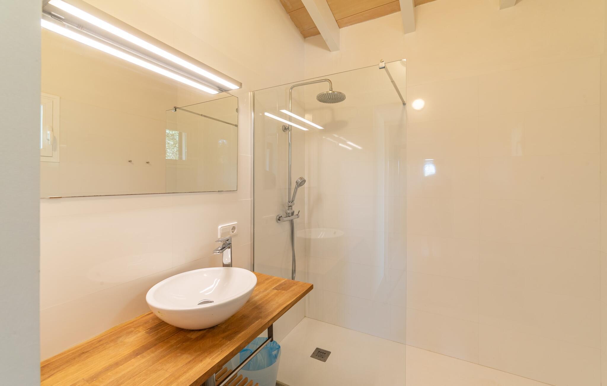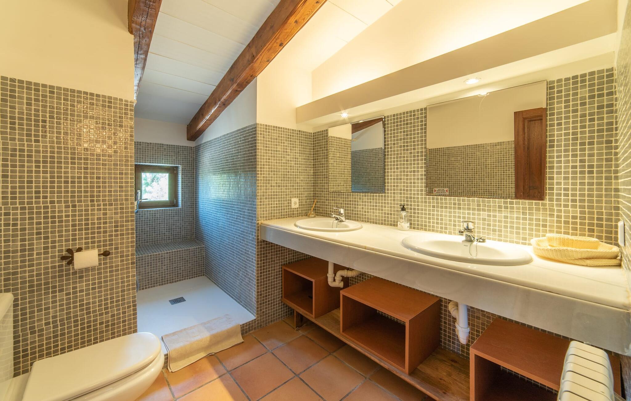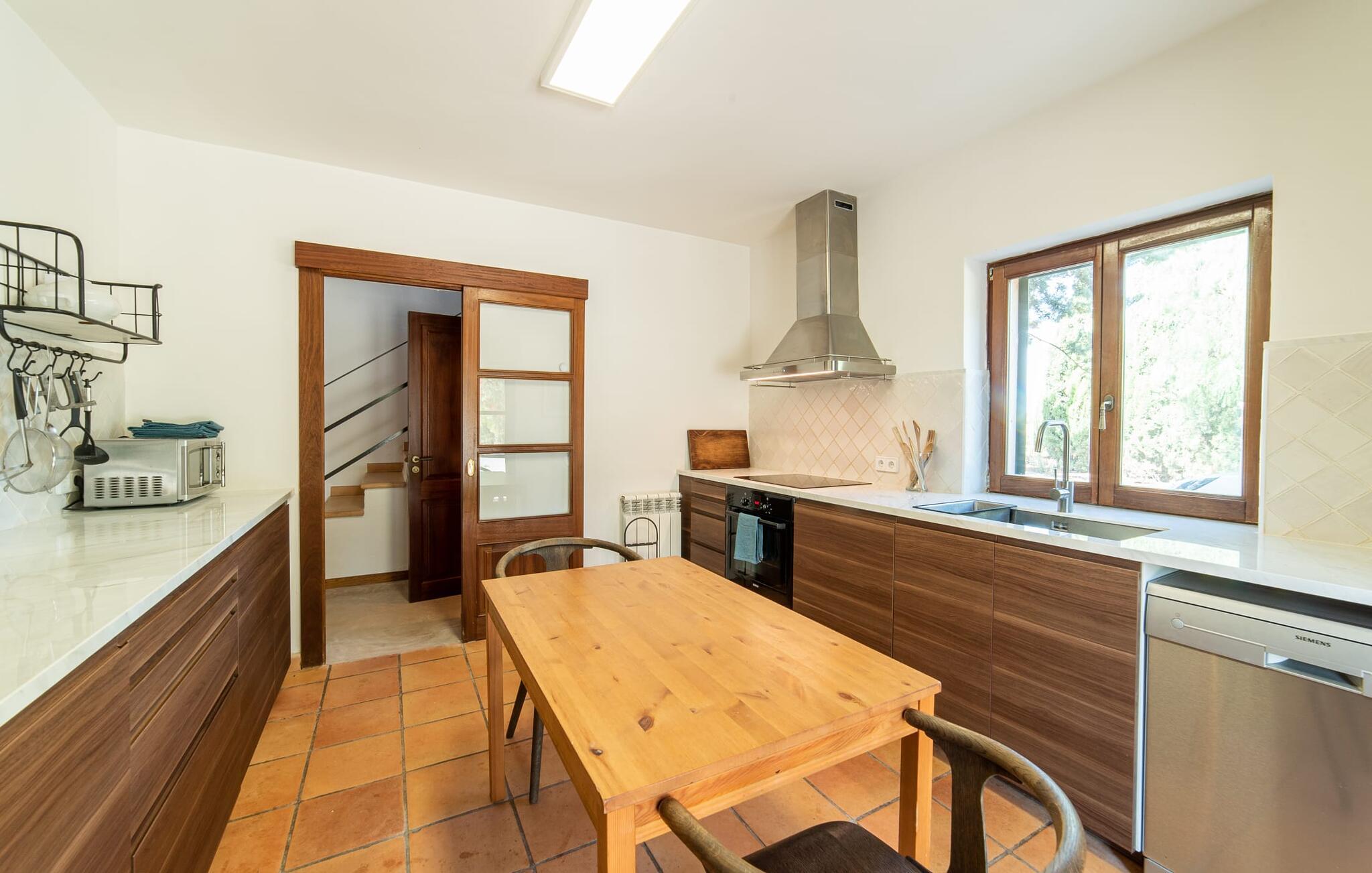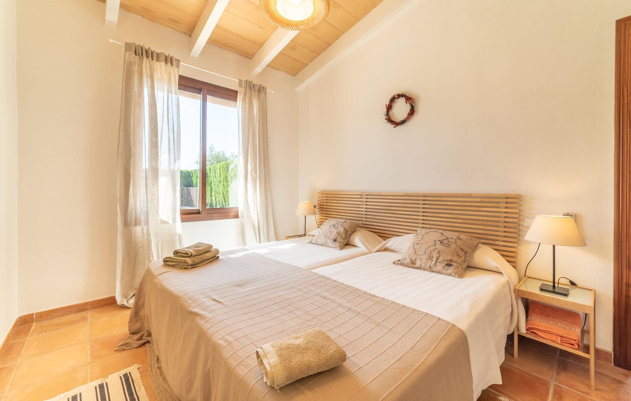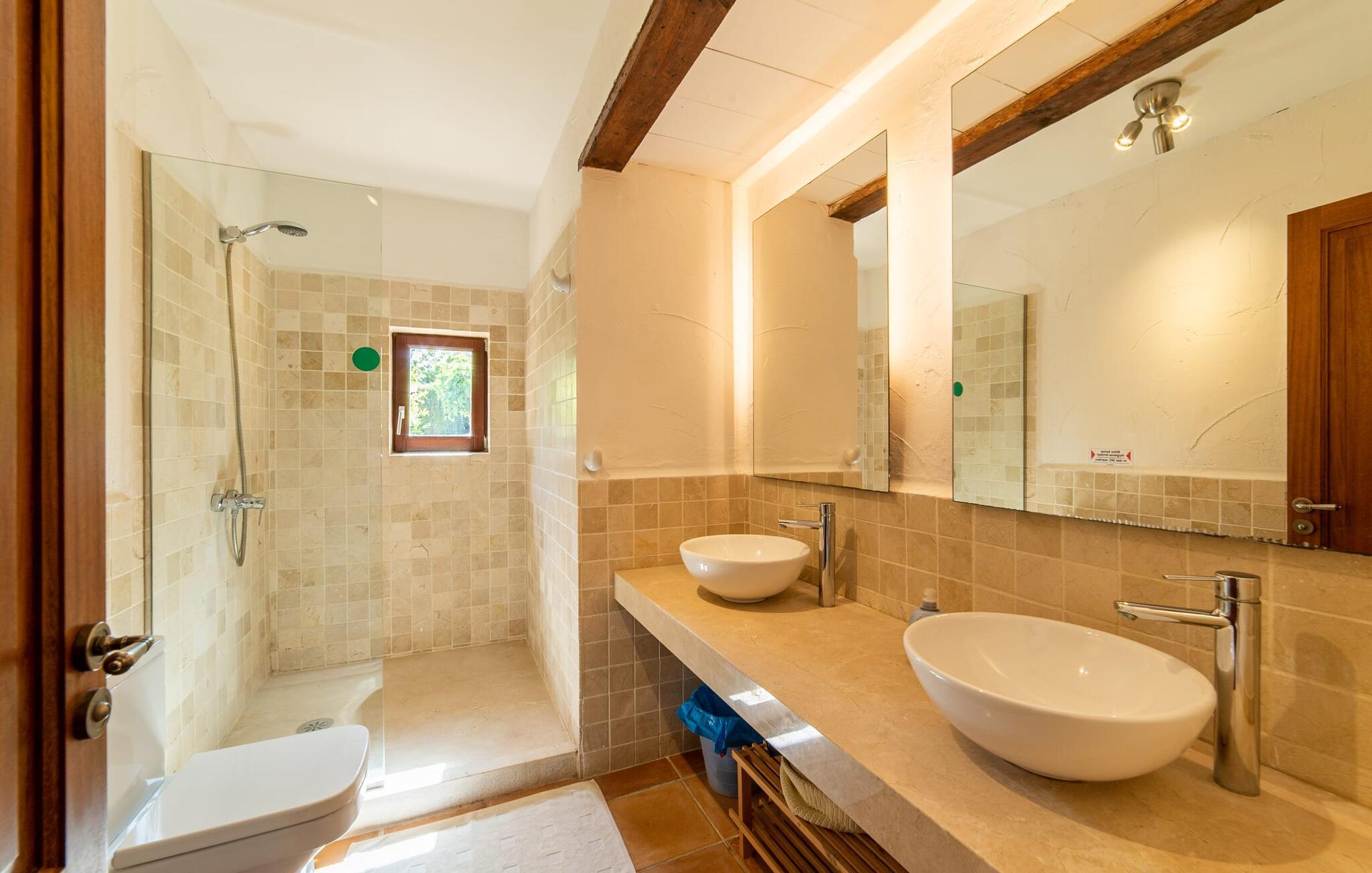 Denne vintage finca er blevet fuldstændig renoveret, mens den har bevaret den originale charme fra et mallorcansk landsted. Fincaen "Can Riera d'Es Trenc" imponerer sine gæster med en harmonisk stemning bestående af en naturstensfacade og glatte pudsede overflader, som kombineres med moderne møbler og ekstraudstyr i udendørsområdet. Beliggende i en beskyttende mur af cypres-, oliven- og frugttræer, er alt koncentreret i hjertet af ejendommen: det luksuriøse poolområde med den omkringliggende terrasse. Poolen er flisebelagt med turkisgrøn mosaik og tilbyder en praktisk hjørneindgang og lav dybde. Den støder op til en terrasse med adskillige yderst attraktive liggestole i træ og er ergonomisk designet. De ekstra sæder er frit indrettet og kan efter ønske placeres i skygge eller i solen. Den sydvendte ejendom består af to dele: Hovedhuset med to etager og en overdækket terrasse, som rummer både spisestue og en hyggelig overdækket veranda, og "poolhuset" med to soveværelser. Annekset byder også på en stor terrasse, bordtennis og bordfodbold. Så intet står i vejen for en afslappet grillaften med en sjov faktor. Uanset om I rejser med to eller tre familier eller vennepar - fincaen "Can Riera d'Es Trenc" er simpelthen perfekt for op til tolv personer, især fordi boligen er i hovedhuset og poolhuset. Fire dobbeltværelser er i "moderhuset" og de to andre i annekset. Særlig bekvemt er, at 5 af de 6 værelser har eget badeværelse, hvilket sammen med endnu et badeværelse resulterer i i alt 6 komplette håndvaske, så privatlivets fred er vidunderligt bevaret. Badeværelserne, der er renoveret med stor sans for detaljer, imponerer med individuelle fliser, brusere fra gulv til loft, iøjnefaldende håndvaske og generel fashionabel chic. Der er også et ensartet farvekoncept i alle værelser med aircondition (!). Det ser behageligt og sobert ud, tidløst, fordi hvidt med grå og beige accenter skaber en behagelig glans ved siden af træbjælkerne og dørene. Det unægteligt varme materiale træ finder alligevel sit formål - som i den lyse stue med pejs, sofaernes lyse atmosfære og det indirekte lyskoncept for enestående komfort. Spisebordet ser særligt godt ud med sin tykke træplanke. Et rummeligt køkken i rustik og dog minimalistisk stil med træfronter. Et hyggeligt opholdsområde og de bløde farver på væggene fuldender billedet af et progressivt landkøkken med absolut komfort. Begge områder er designet, så gæsten føler sig godt tilpas i den trendy sommerhusstil og føler sig hjemme på ferien. Det er ejeren klart lykkedes med. Men fra tid til anden vil I gerne forlade drømmeejendommen "Can Riera d'Es Trenc" for at udforske og forstå den smukke sydlige del af øen på nemme og sjove udflugter, der kan tage jer til at besøge en polobane eller stranden. I den stille sydlige del af øen kan I opleve livet i det mallorcanske landskab, hvor der stadig udvindes salt i dag, hvilket også er derfra stednavnet “Ses Salines”. Det er ikke kun værd at besøge Campos, Ses Salines eller Santanyí på markedsdage. Der kan I opdage mallorcinsk arkitekturs storhedstid, når I går gennem husene lavet af gylden, grå og hvid sandsten. Fincaen ligger mellem landsbyen og stranden. For naturelskere er fincaen et godt udgangspunkt for udflugter til fods eller på cykel og for at observere flamingoer og trækfugle, når det er tid til at vandre fra Campos saltsletter. Derfor er placeringen af fincaen ideel til at starte ruter, der tager jer til smukke kystlandsbyer og drømmestrande som den naturlige strand med krystalklart vand i Es Trenc. Ren afslapning! Den charmerende villa "Can Riera d'Es Trenc" er beliggende i kvadranten af Campos, Ses Salines, Colonia de Sant Jordi og Es Trenc, i den smukke sydlige region Mallorca, hvor landbrug, olivenlunde og saltproduktion dominerer det samlede billede . Indkøb til daglige behov kan foregå i Campos eller Ses Salines, hvor det ugentlige landmandsmarked også finder sted hver tirsdag eller torsdag. Særligt bemærkelsesværdig er nærheden til de smukke strande på sydkysten, Ses Covetes eller Es Trenc, som kun ligger 6 km væk.