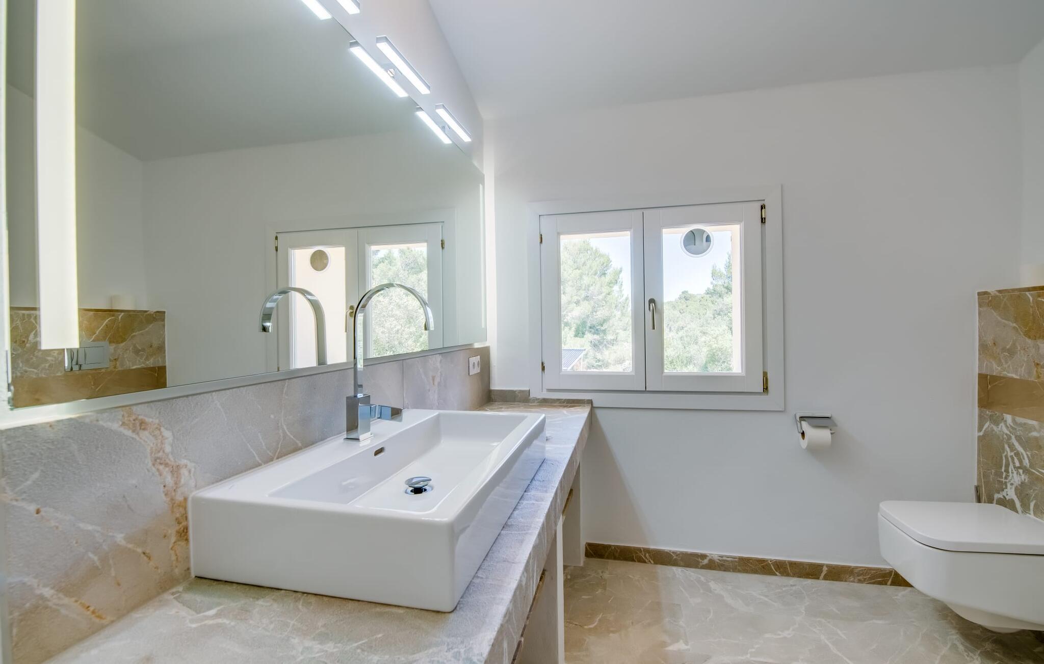 Den smukke villa "Can Roig de Na Llatzer" lader jer selv opleve betydningen af synestesi. Fordi de friske, livlige farver og duften fra det kærligt designede udeareal giver jer mulighed for at mærke og mærke afslapning, nærhed til naturen, ro og også selskabeligt samvær. Besøgende vil føle sig tilfredse takket være den afslappede middelhavsatmosfære i denne strålende smukke villa, som præsenterer et traditionelt ydre, men er blevet fuldstændig renoveret. Men lad os starte med udendørsområdet, som respektfuldt falder naturligt ind i denne let bakkede region mellem Felanitx og havet. Naturstensmure og terrasser giver sammen med det frodige grønne græs haven en harmonisk struktur. Den afslappede maritime livsstilsstemning kommer også til udtryk i det organisk formede poollandskab ved siden af et separat soppebassin til de yngre gæster - som er særligt velkomne her. Forkæl jeres smagsløg ved at tilberede lækre regionale specialiteter med intense smage i det overdækkede udekøkken. Usædvanligt stilfulde havemøbler byder på komfortable siddepladser og en afslappet livsstil. Det indre af den generøse bygning er et glimrende eksempel på den prestigefyldte "Rustic Moderno"-stil. De solbeskinnede værelser kombinerer klare farver som lyse hvide, varme cremetoner og rustikke stenbrud med bæredygtige materialer som flet, træ og sten i en puristisk symbiose. Samtidig emmer rummene af en blid intimitet og enkelhed, der kan nydes året rundt med en eller to familier eller venner. Stilfuldt udvalgte møbler - som det fuldt udstyrede, hvide køkken i amerikansk stil med et ret puritansk træbord - nyfortolker det rustikke bondehus med pejs. Den anden murede pejs er i stuen med chaiselonger og et lounge-lignende tv-hjørne. På øverste etage vil I opdage endnu et tv-område med sækkestole samt tre af de fire komfortable dobbeltværelser - udstyret med delikate pynteting. Nyd ren badeværelsesluksus med brusekabine og yderligere to fuldt udstyrede badeværelser. Rent, overskueligt og ukompliceret - sådan skal en ferie være. Den strålende smukke villa "Can Roig de Na Llatzer" er med sin smukt anlagte have og udendørsområde et fortryllende paradis. Denne perfekte ejendom ligger i en attraktiv og rolig beliggenhed mellem kysten og Felanitx. I kan gøre jeres indkøb her, men om søndagen kan I også besøge det afslappede Sant Miquel-marked. Det smukke Calas de Mallorca, herunder det fjordlignende Cala D'Or eller Cala Gran, ligger kun 7 km væk.