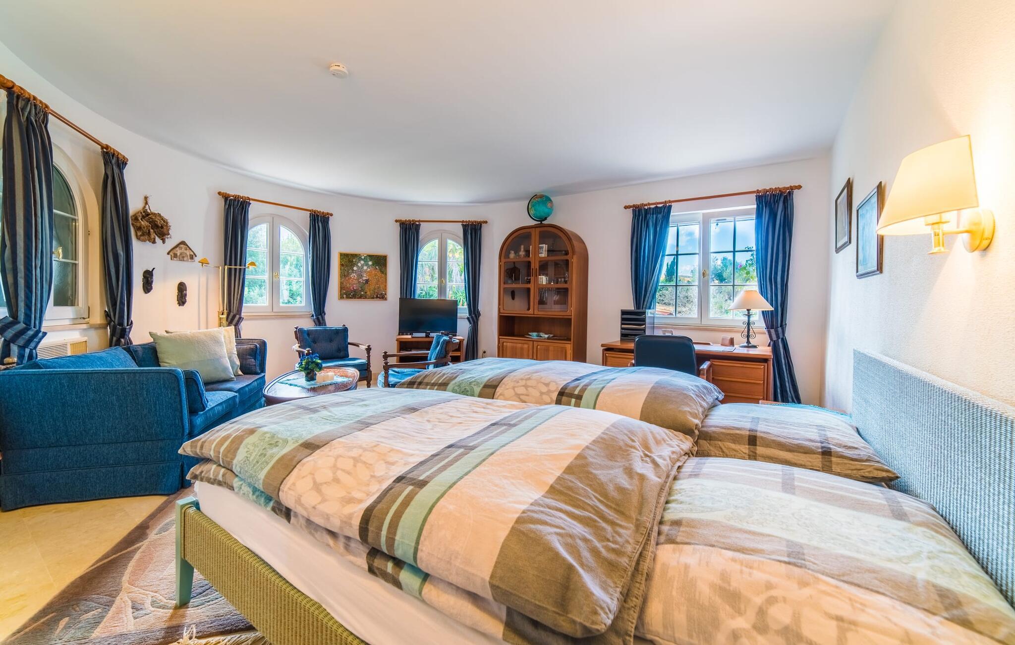 Soveværelse (nr. 1) - 2 Sovepladser. (Dobbeltseng(e)). 1 Soveplads. (Sofa, madras eller lignende).