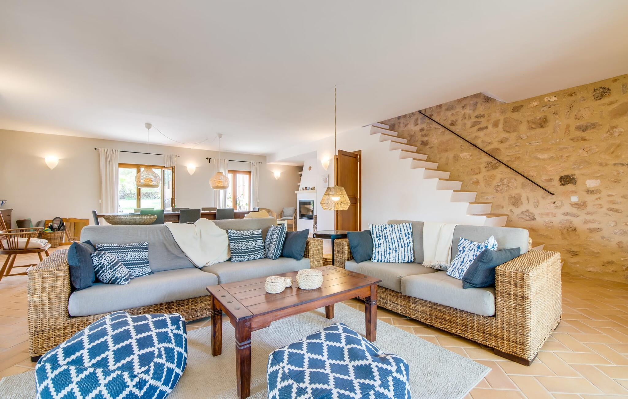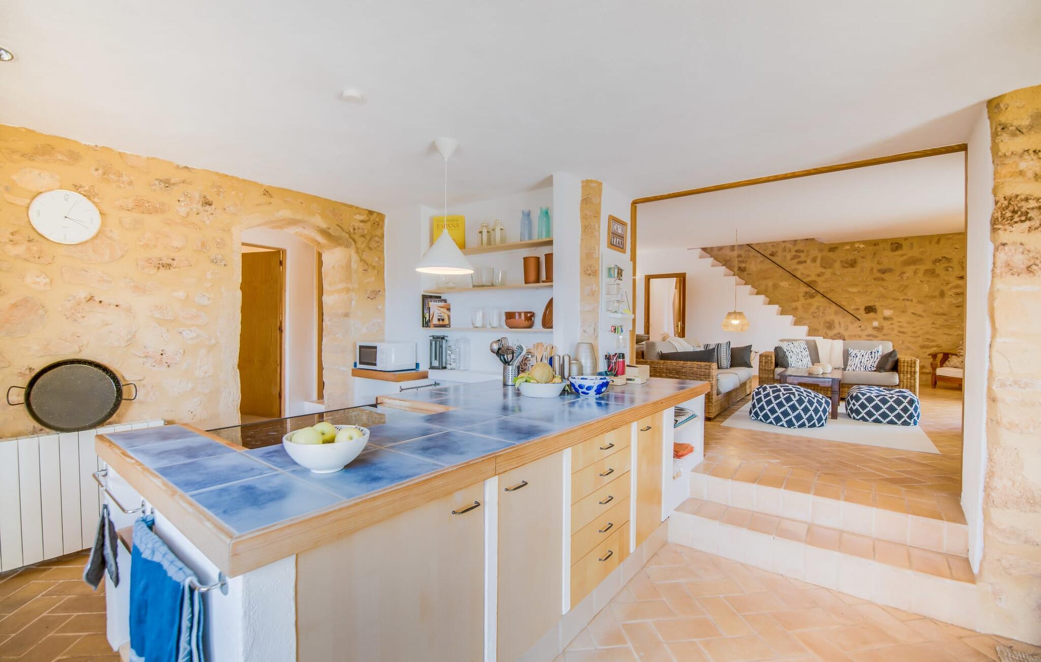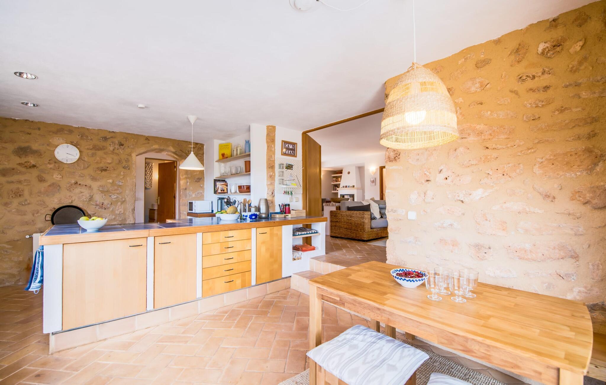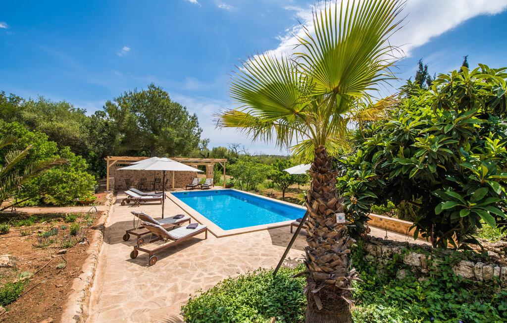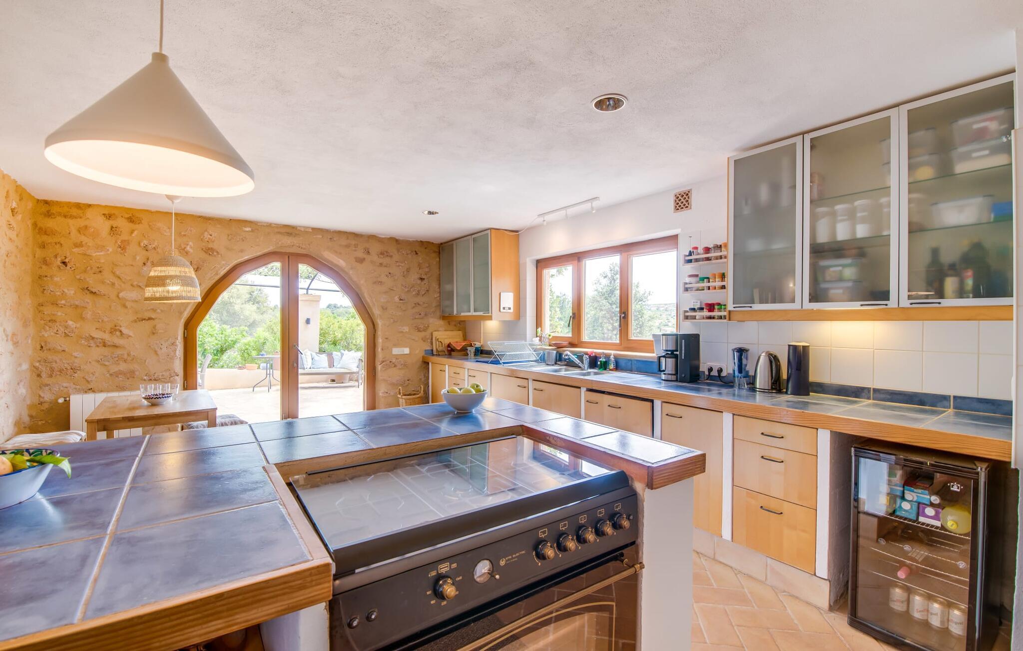 Ferie på landet med middelhavsånd – denne kompromisløse drøm om et sommerhus på Mallorca går simpelthen i opfyldelse med "Can Tian de Llevant". Landlivet i al dets mangfoldighed venter jer i den artsrige have med farverigt varierede blomsterbede og græsser. En paradisisk flora er præget af frugt- og oliventræer, men også forskellige typer palmetræer. Midt i denne grønne pragt kan I se frem til at køle af i poolen. Udover svømning er der fokus på at slappe af, enten under det overdækkede område eller på liggestolene i skyggen af parasoller, der er sat op omkring poolen. Ikke kun ved poolen eller ved bordtennisbordet, men også i selve ferieboligen kan I opleve den berømte feriefølelse og øjeblikkelige afslapning. Det bidrager også den overdækkede taghave med grønne perspektiver på den helt stille ejendom mellem Manacor og Artà. Et andet attraktivt opholdsområde er spiseterrassen med grill og direkte adgang til bygningen, beskyttet af metalstrukturen. Den er velegnet til ethvert måltid på dagen og er det perfekte sted for en social grill om aftenen med den bevægelige gasgrill. Den harmoniske pragt af feriehuset i middelhavsstil fortsætter indenfor. Den grønne terrasse fører jer direkte til det indbydende spisekøkken med kogeø og moderne komfort. Blandingen af fritlagte stenbrud på væggene kombineret med varme gulvfliser og sarte blå og grå nuancer giver indretningen af hele ferieboligen en vidunderlig lethed. Landhusfølelsen er kommet hertil i det 21. århundrede – det gælder også den åbne opholds- og spiseafdeling, som er forbundet med køkkenet med en dobbelt trædør. Smagfulde møbler og fine detaljer trænger sig ikke på selv den mest opmærksomme gæst. Op til otte personer - venner eller to familier - kan nyde godt af den vidunderligt afslappede atmosfære i den rummelige leje-finca under deres ferie på Mallorca. I øvrigt i fire kærligt designede dobbeltværelser og tre individuelle badeværelser med bruseniche og delikate flisedetaljer. Takket være de behageligt klimatiserede værelser om sommeren og opvarmede om vinteren, hvor pejsen i stuen/spisestuen perfektionerer den landlige magi, er reservation året rundt muligt. Hvornår begynder jeres afslapning på "Can Tian de Llevant"? Naturstenstuen "Can Tian de Llevant" med sin fineste oase-lignende have og poolområde imponerer med sin unikke rolige beliggenhed. Festligheder er derfor udtrykkeligt ikke tilladt. Den fortryllende ejendom er beliggende i nordøst mellem Manacor og Artà. Det er kun 15 minutters kørsel til Mallorcas næststørste by – og I kan nyde omfattende shoppingture i Manacor. De nærmeste strande i den omfattende bugt Alcúdia ligger omkring 15 km væk.