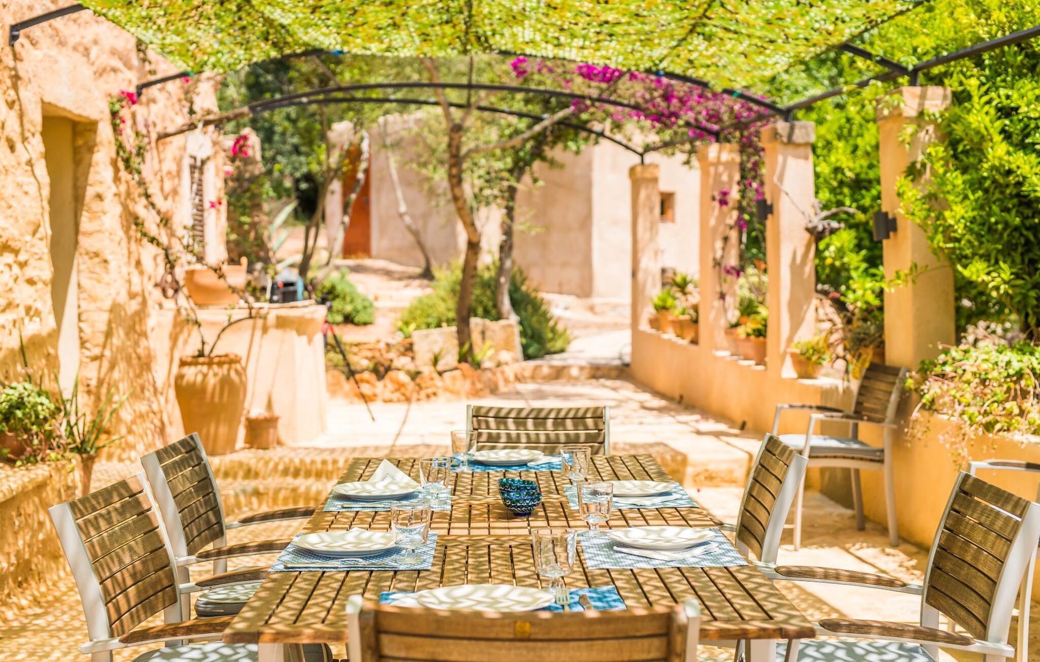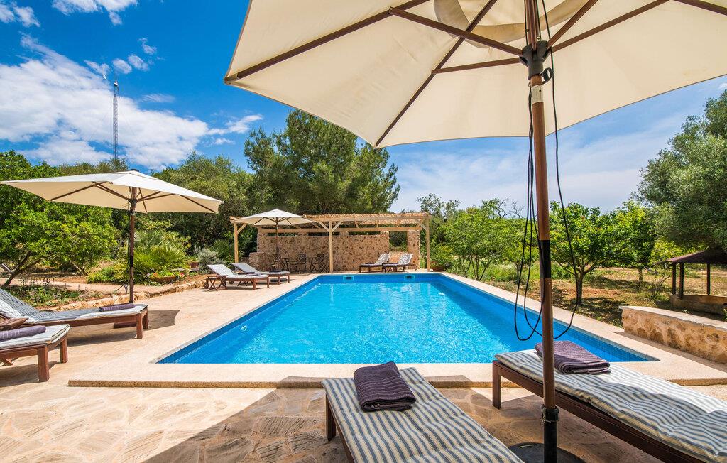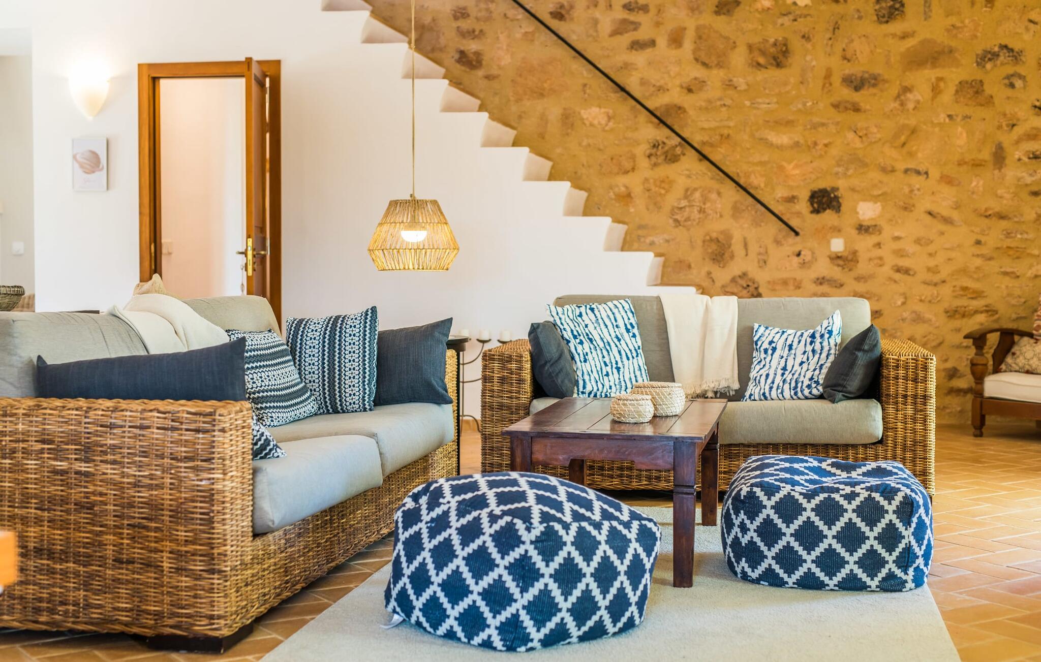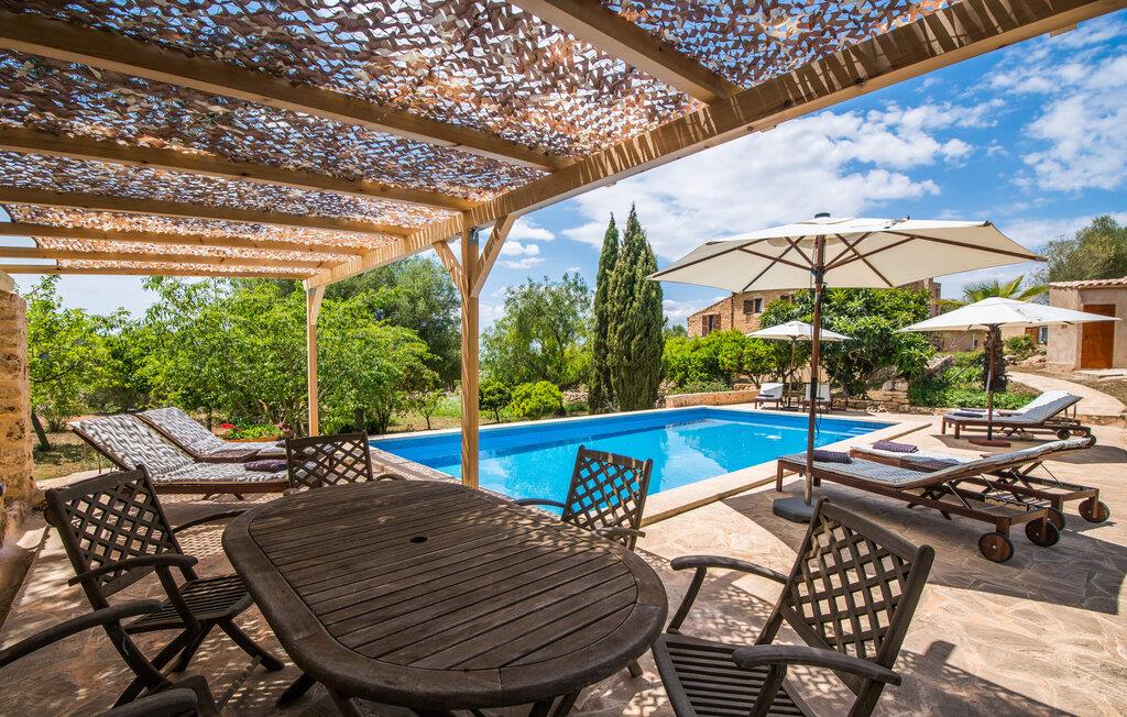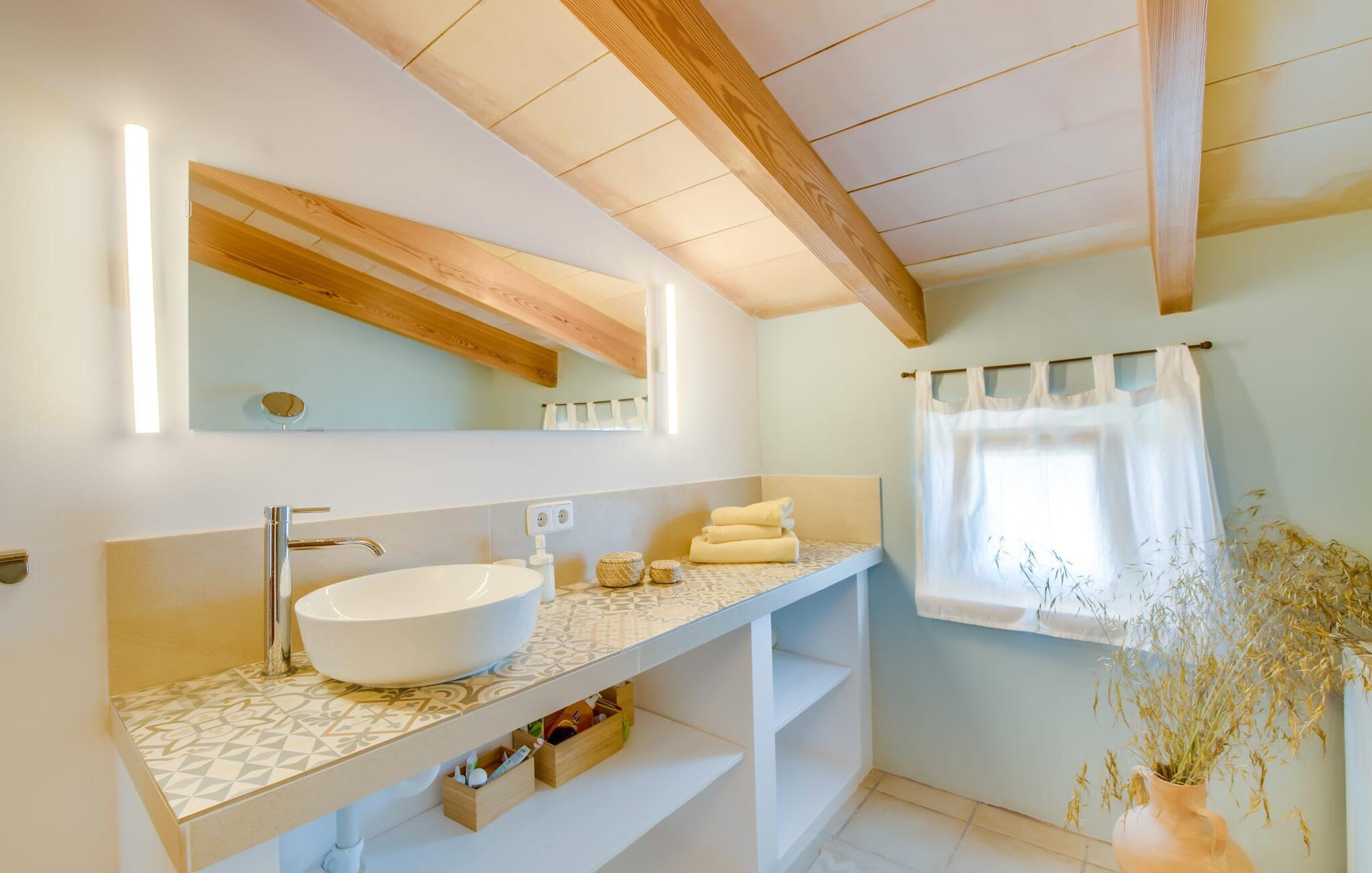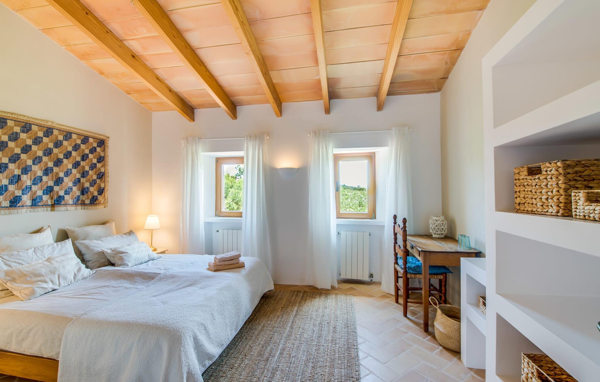 Ferie på landet med middelhavsånd – denne kompromisløse drøm om et sommerhus på Mallorca går simpelthen i opfyldelse med "Can Tian de Llevant". Landlivet i al dets mangfoldighed venter jer i den artsrige have med farverigt varierede blomsterbede og græsser. En paradisisk flora er præget af frugt- og oliventræer, men også forskellige typer palmetræer. Midt i denne grønne pragt kan I se frem til at køle af i poolen. Udover svømning er der fokus på at slappe af, enten under det overdækkede område eller på liggestolene i skyggen af parasoller, der er sat op omkring poolen. Ikke kun ved poolen eller ved bordtennisbordet, men også i selve ferieboligen kan I opleve den berømte feriefølelse og øjeblikkelige afslapning. Det bidrager også den overdækkede taghave med grønne perspektiver på den helt stille ejendom mellem Manacor og Artà. Et andet attraktivt opholdsområde er spiseterrassen med grill og direkte adgang til bygningen, beskyttet af metalstrukturen. Den er velegnet til ethvert måltid på dagen og er det perfekte sted for en social grill om aftenen med den bevægelige gasgrill. Den harmoniske pragt af feriehuset i middelhavsstil fortsætter indenfor. Den grønne terrasse fører jer direkte til det indbydende spisekøkken med kogeø og moderne komfort. Blandingen af fritlagte stenbrud på væggene kombineret med varme gulvfliser og sarte blå og grå nuancer giver indretningen af hele ferieboligen en vidunderlig lethed. Landhusfølelsen er kommet hertil i det 21. århundrede – det gælder også den åbne opholds- og spiseafdeling, som er forbundet med køkkenet med en dobbelt trædør. Smagfulde møbler og fine detaljer trænger sig ikke på selv den mest opmærksomme gæst. Op til otte personer - venner eller to familier - kan nyde godt af den vidunderligt afslappede atmosfære i den rummelige leje-finca under deres ferie på Mallorca. I øvrigt i fire kærligt designede dobbeltværelser og tre individuelle badeværelser med bruseniche og delikate flisedetaljer. Takket være de behageligt klimatiserede værelser om sommeren og opvarmede om vinteren, hvor pejsen i stuen/spisestuen perfektionerer den landlige magi, er reservation året rundt muligt. Hvornår begynder jeres afslapning på "Can Tian de Llevant"? Naturstenstuen "Can Tian de Llevant" med sin fineste oase-lignende have og poolområde imponerer med sin unikke rolige beliggenhed. Festligheder er derfor udtrykkeligt ikke tilladt. Den fortryllende ejendom er beliggende i nordøst mellem Manacor og Artà. Det er kun 15 minutters kørsel til Mallorcas næststørste by – og I kan nyde omfattende shoppingture i Manacor. De nærmeste strande i den omfattende bugt Alcúdia ligger omkring 15 km væk.