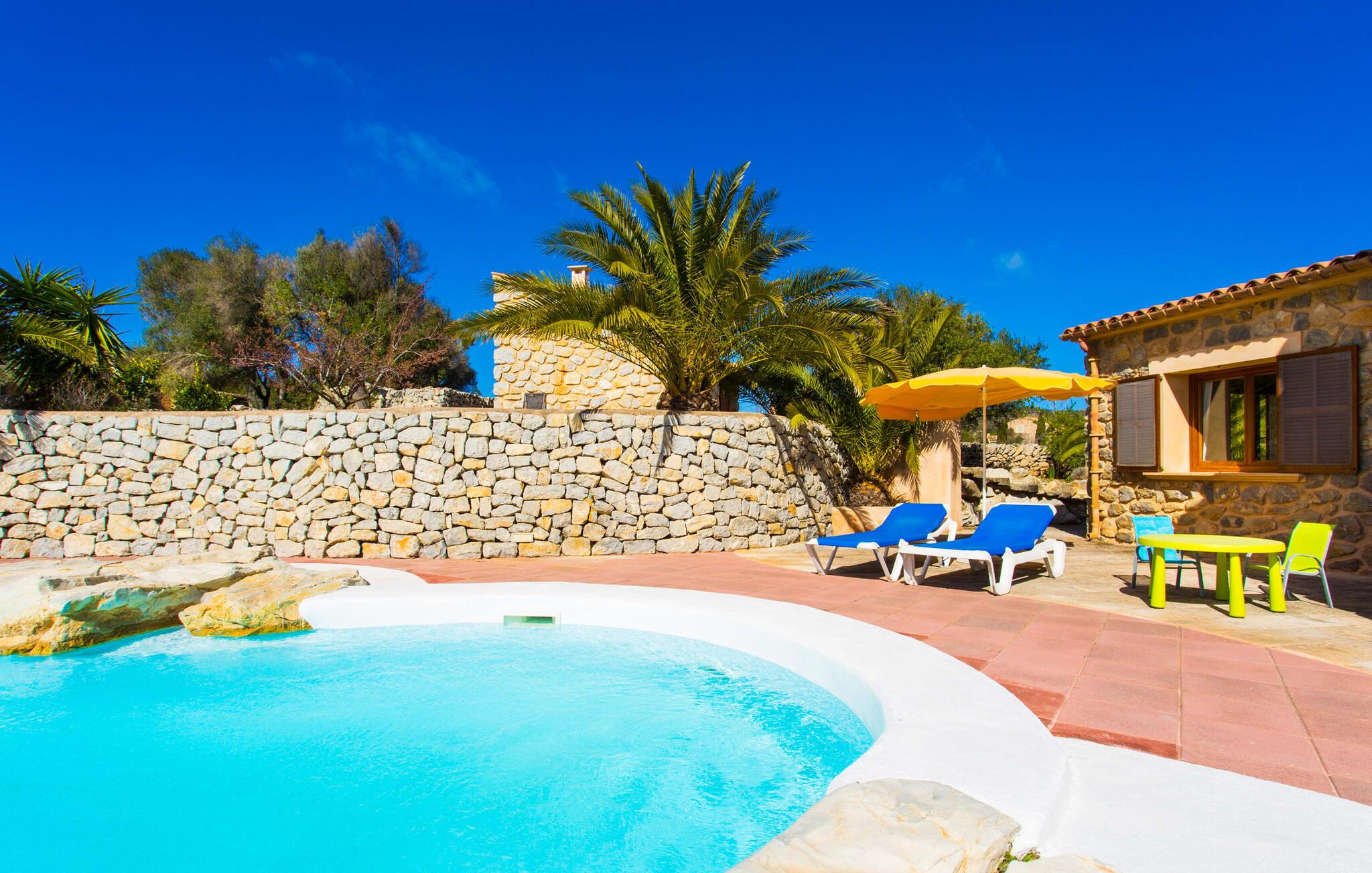 Villaen "Can Tico" er en rummelig, traditionel mallorcansk naturstensvilla i den nordøstlige del af Mallorca. Beliggende på en grøn bakke i et naturreservat tilbyder ejendommen et roligt, uspoleret landskab, der beroliger krop og sind. Dette er et feriehus i Fincallorca. Villaens store terrasser, der er tilgængelige fra flere værelser, byder på panoramaudsigt over de omkringliggende bakker. Delvist overdækket byder de på masser af skygge med en stor muret grill til middag. Et bordtennisbord og et bordfodboldbord er til rådighed for underholdning. Den store pool er en iøjnefaldende funktion med undervandssiddeområder, der er perfekte til at køle af og nyde drinks på varme sommerdage. Indvendigt har villaen en moderne landlig stil med luftige rum, synlige bjælker, terracotta fliser og muntre accenter. Det fuldt udstyrede køkken, som er åbent til spisepladsen, er ideelt til fælles måltider, mens den hyggelige stue med pejs inviterer dig til at slappe af. Der er fire dobbeltværelser med aircondition, to med en stor 1,80 x 2,00 dobbeltseng, og et af disse har eget badeværelse. De to andre soveværelser har hver en 1,60 x 2,00 m seng. Villaen tilbyder også et billardrum, satellit-tv og hurtigt internet. Villa "Can Tico" er en storslået villa beliggende i bakkerne i Artà, kun 3 km væk. Nogle af Mallorcas smukkeste strande ligger tæt på villaen. Stranden ved Costa de los Pinos og flere andre naturlige sandstrande kan også nås hurtigt i bil. Den smukke, naturlige sandstrand i Cala Torta kan nås på cirka 10 minutter. Der er fire golfbaner inden for 15 minutters kørsel.