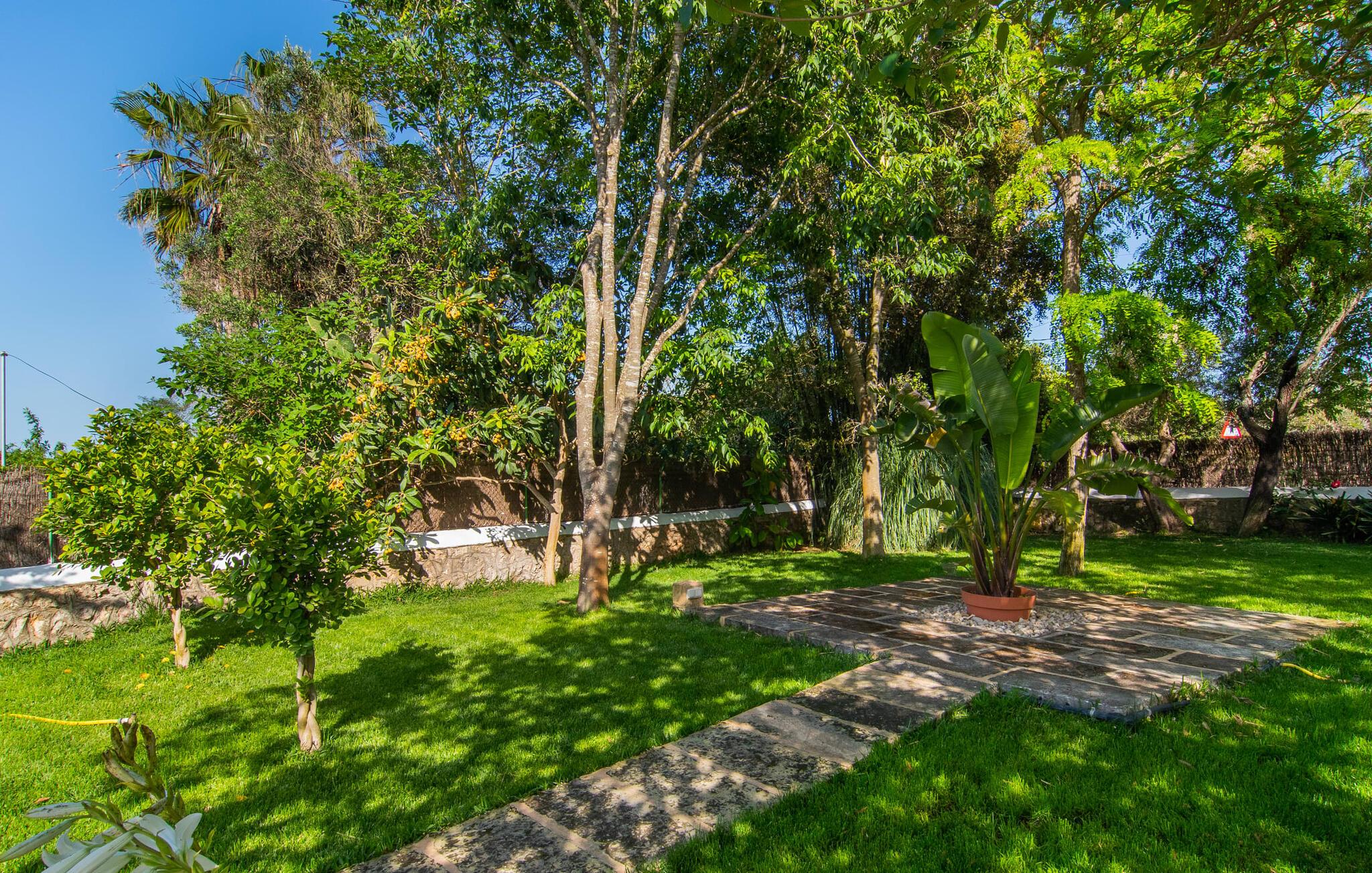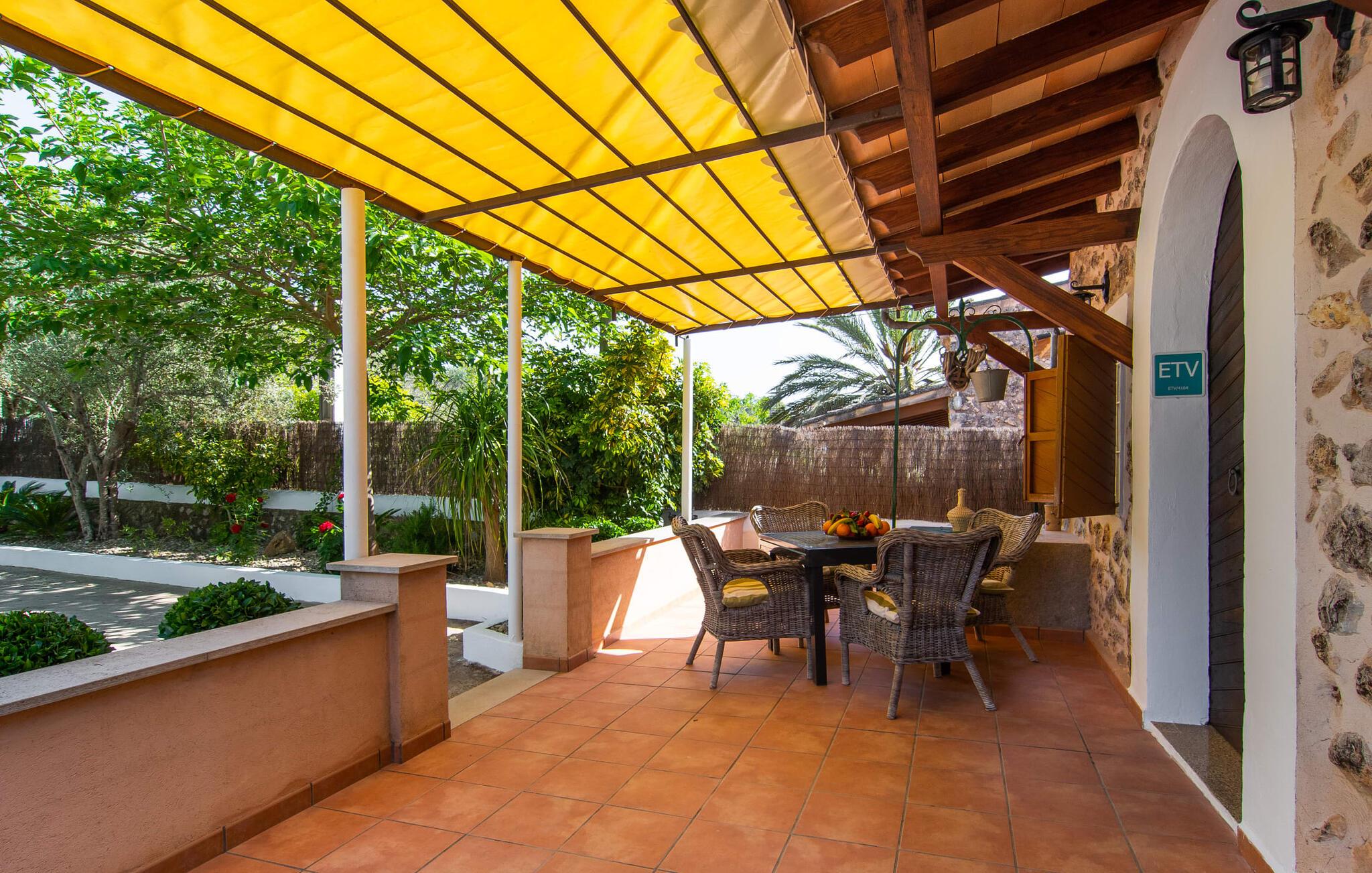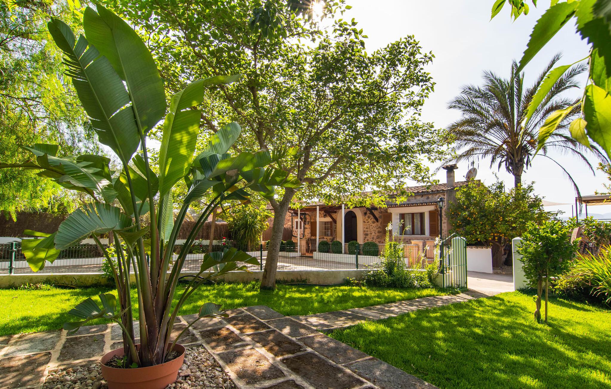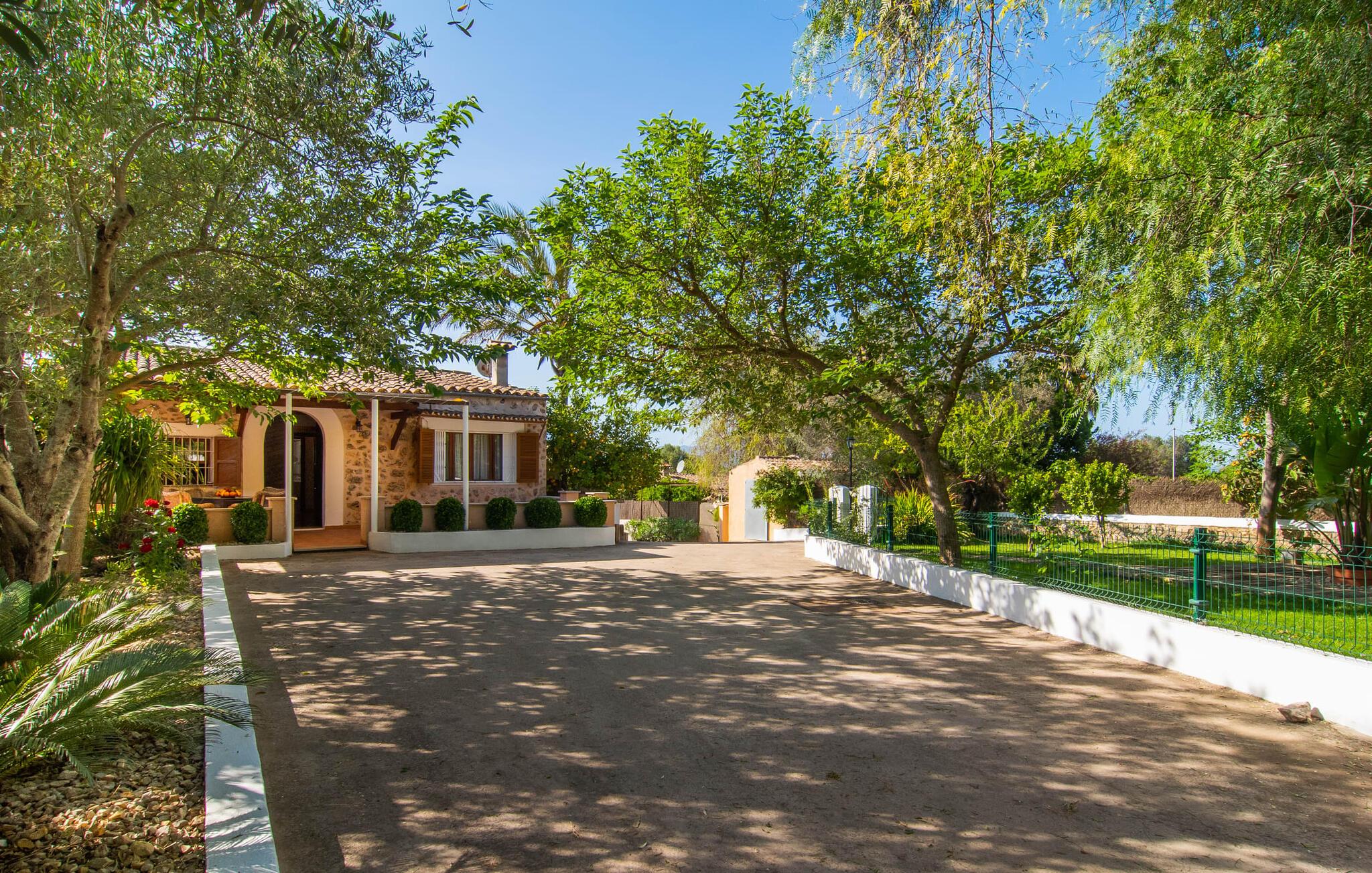 Den charmerende stenfinca "Can Tiró" ligger på en stor grund med frodige grønne områder og sin egen appelsinlund, hvor I kan høste friske, lækre tropiske frugter efter årstiden. Huset er omgivet af terrasser og en pool og tilbyder et afsondret, men ikke-isoleret tilflugtssted i hjertet af det mallorcanske landskab. Poolen, som ligger på et af terrasseniveauerne, er forsvarligt lukket med en låge, hvilket gør den ideel til familier med små børn. Fra poolen kan I nyde en betagende udsigt over den omkringliggende natur og de fjerne bjerge. Med liggestole og forskellige siddepladser er der altid et perfekt sted at slappe af i solen eller skyggen. I kan parkere jeres lejebil direkte ved indgangen. Indenfor er "Can Tiró" lige så indbydende med en nøje sammensat blanding af traditionelle og moderne elementer. Mørkt træ komplementerer lyse hvide vægge, og klinkegulve er kombineret med charmerende boligtilbehør. Alle værelser er på ét plan. Den åbne planløsning og spiseplads giver jer mulighed for at slappe af på den komfortable sofa, mens I nyder fjernsynet, med en smukt udskåret træbue, der fører til spisepladsen. Det lille, men fuldt udstyrede køkken byder på ekstra siddepladser ved den smarte disk, perfekt til en hurtig morgenmad eller et glas vin, mens I laver mad. To soveværelser og et badeværelse en suite fuldender boligarealet. Denne ejendom ligger i en smuk landlig beliggenhed i centrum af Mallorca. Byen Costitx ligger kun omkring 1,4 km væk via den akustisk mærkbare vej, og Alcúdia-bugten med dens forskellige strande er godt 26 km væk.