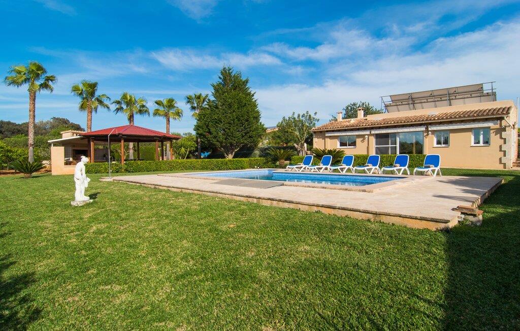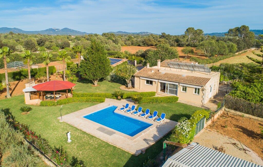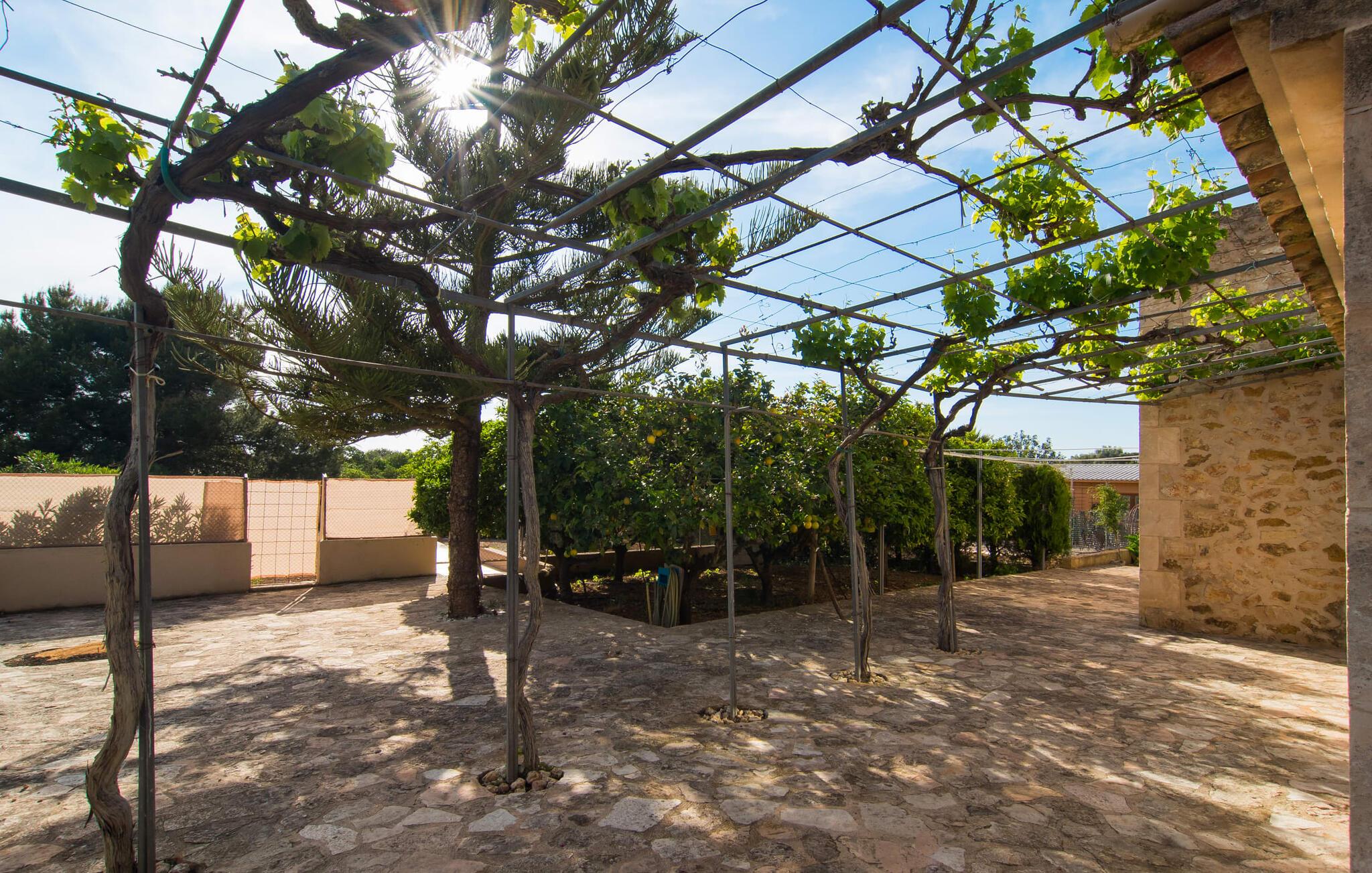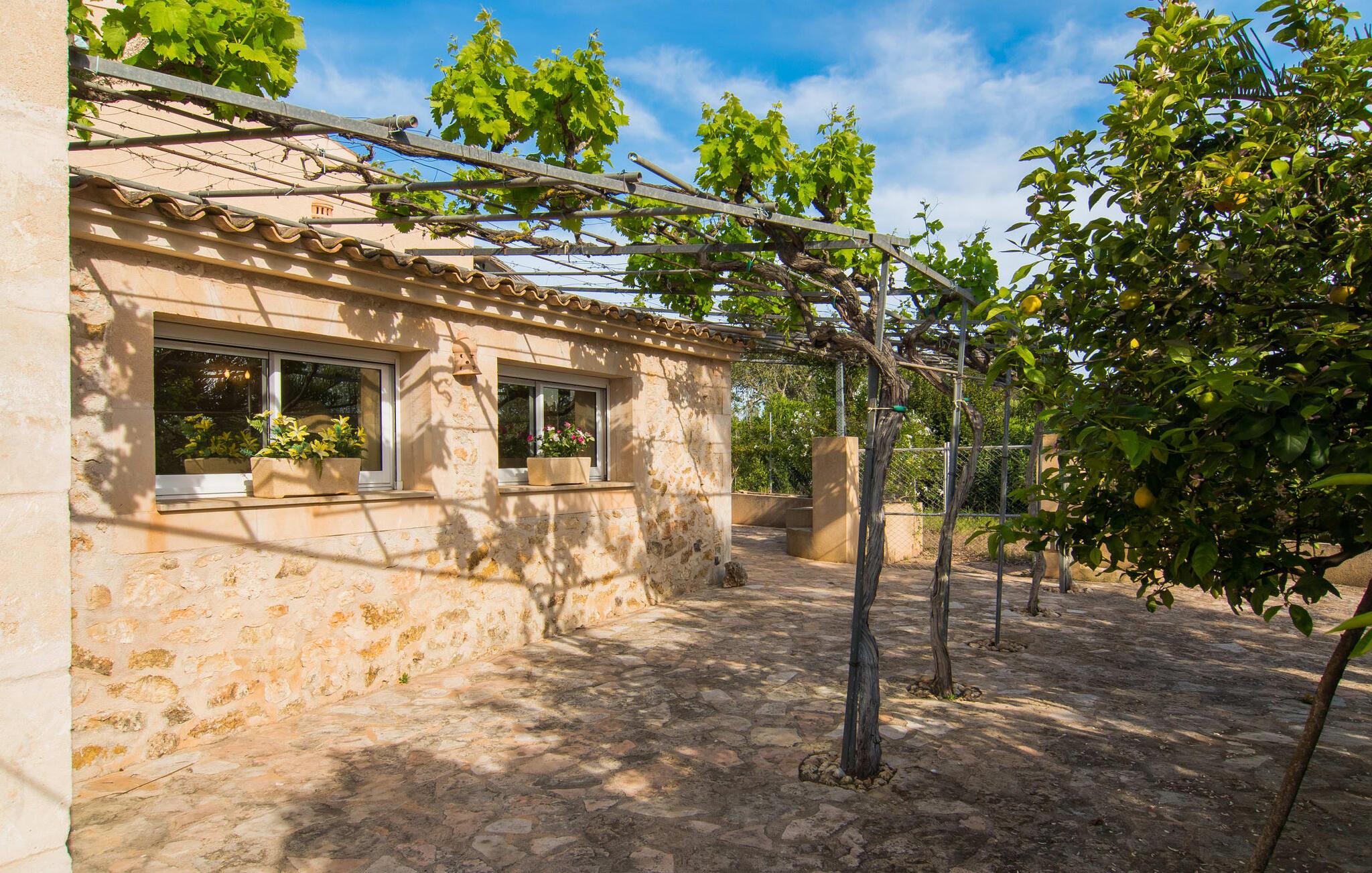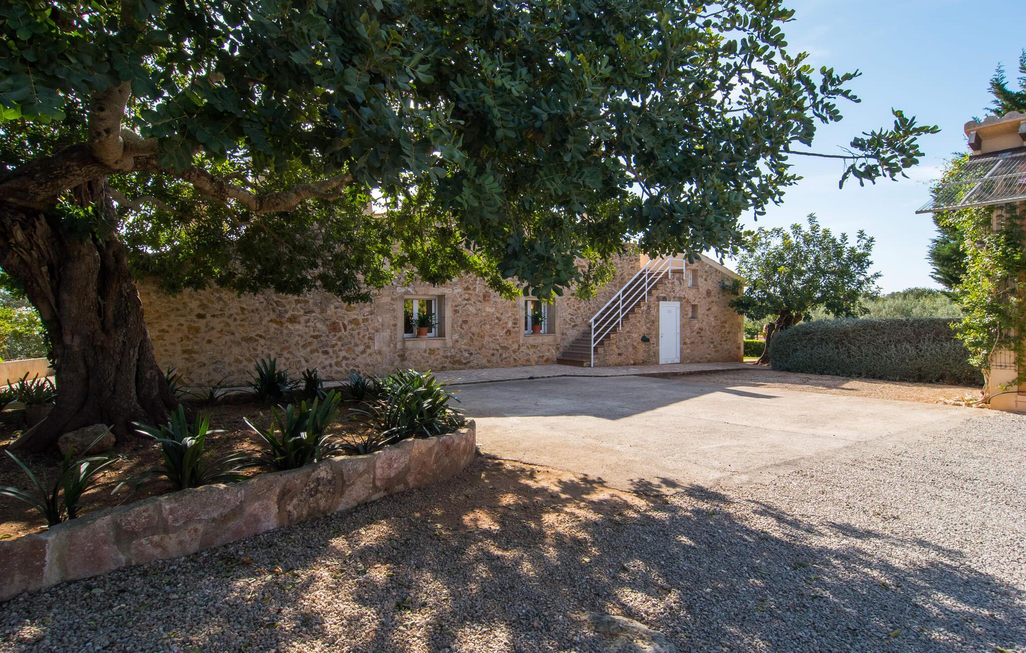 Det rustikke landsted "Can Tomeu de Son Negre" er tæt forbundet med omgivelserne - for den sydlige del af Mallorca byder på en betagende naturskønhed, azurblå bugter med sandstrande og overraskende små byer med talrige seværdigheder. Det autentiske bondehus lover ikke kun en afvekslende ferietid, men tilbyder jer også alt, hvad I ønsker jer af jeres ferie: fred, afslapning og skøn tid sammen. Det rige design af middelhavshaven med høje palmer, oliventræer og græsplæner alene bidrager til værdifuld afslapning. Beliggende i frodige grønne områder tilbyder den mosaik-dækkede pool jer en hudvenlig måde at køle af om morgenen eller sent om aftenen. På den tilstødende naturstensolterrasse kan I nyde den rene blå himmel eller læse en god bog, mens børnene kan bruge deres energi i poolen. Skift jeres yndlings udendørssteder under en afslappende dag på jeres gård. Vi er glade for både havekøkkenet under den sekskantede pavillon med spiseplads og det andet udekøkken under den overdækkede terrasse, som støder direkte op til huset. Indretningen i det hyggelige sommerhus er også alsidig og har naturligvis hyggelig og praktisk indretning, der har fokus på komfort og velvære. Dette opnås gennem en rustik indretning med komfortable møbler i en kombineret opholds- og spisestue med pejs. I tilknytning hertil ligger det halvåbne køkken og spisekammer, som er tilgængeligt fra to sider. Det fuldt udstyrede køkken gør det nemt for jer at vælge bevidst selvforsyning. Naturligheden i det autentiske sommerhus garanterer en behagelig nattesøvn i tre dobbeltværelser. Alle værelser er på samme niveau. Komforten for seks personer – ideel til to familier – rundes af af tre forskelligt designede badeværelser. Særligt praktisk: Det "blå" brusebad har udgang til haven og fungerer derfor også som et yderst behageligt udendørs badeværelse. Oplev det afslappede mallorcanske landliv og fordyb jer i besøg på de omkringliggende vingårde. Tidlig søndag morgen på markedet i Felanitx, ture til smukke Santanyí eller længerevarende strandbesøg til Cales på Mallorca – I er garanteret en varieret ferie. "Can Tomeu de Son Negre" gør det muligt! Det klassiske bondehus "Can Tomeu de Son Negre" præsenterer sig selv som et fritliggende landsted med en middelhavshave og en smuk pool. Feriehuset ligger i den sydlige del af øen mellem Felanitx og Cas Concos de Cavaller. Begge steder kan nås på en behagelig kort køretur på grund af nærheden til landevejen, som kun kan høres lejlighedsvis i visse vinde. Hvis I kan lide en badeferie, vil I opdage smukke sandstrande omkring 15 km væk. Fantastisk landlig beliggenhed nær Felanitx i syd.