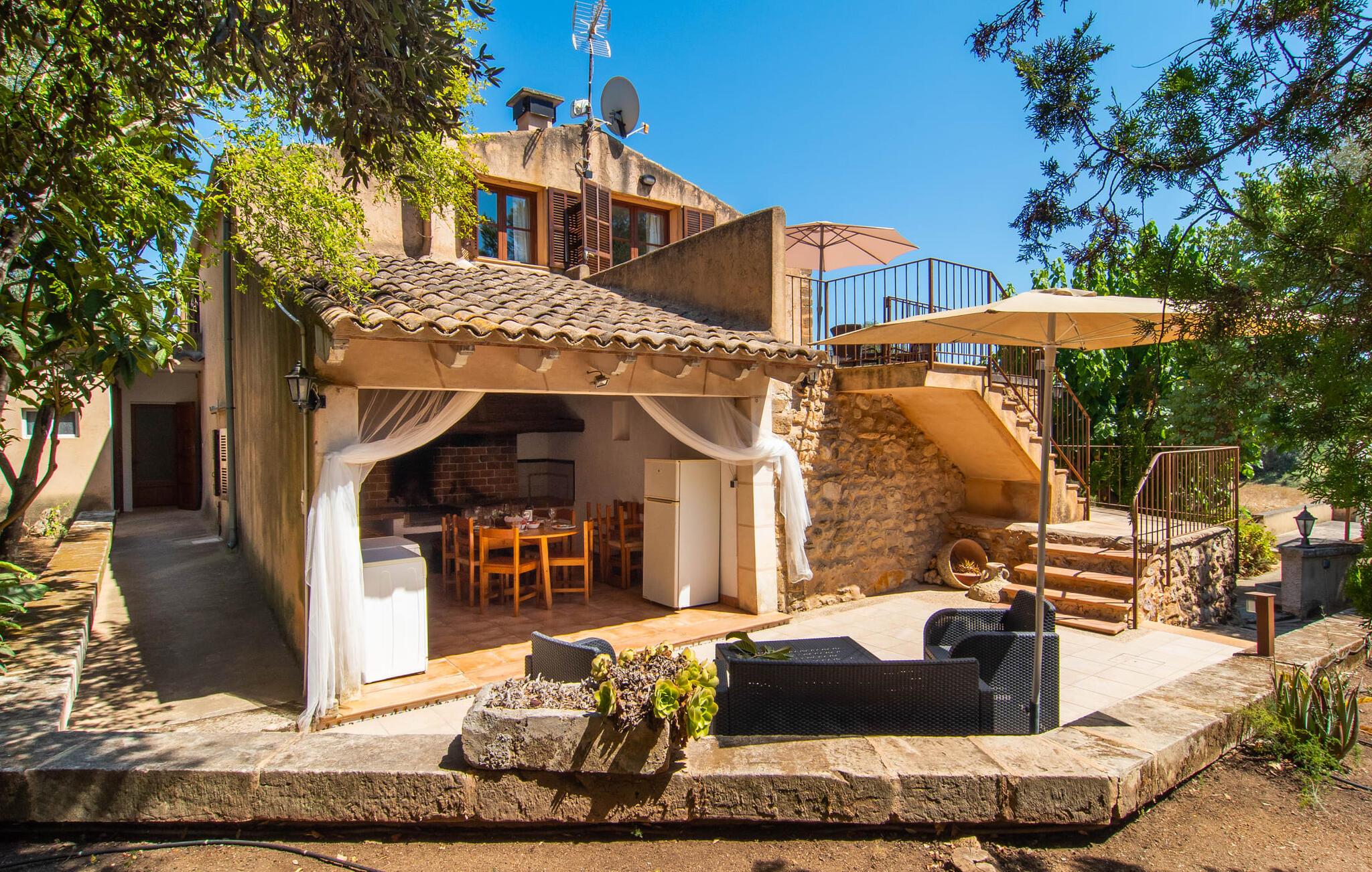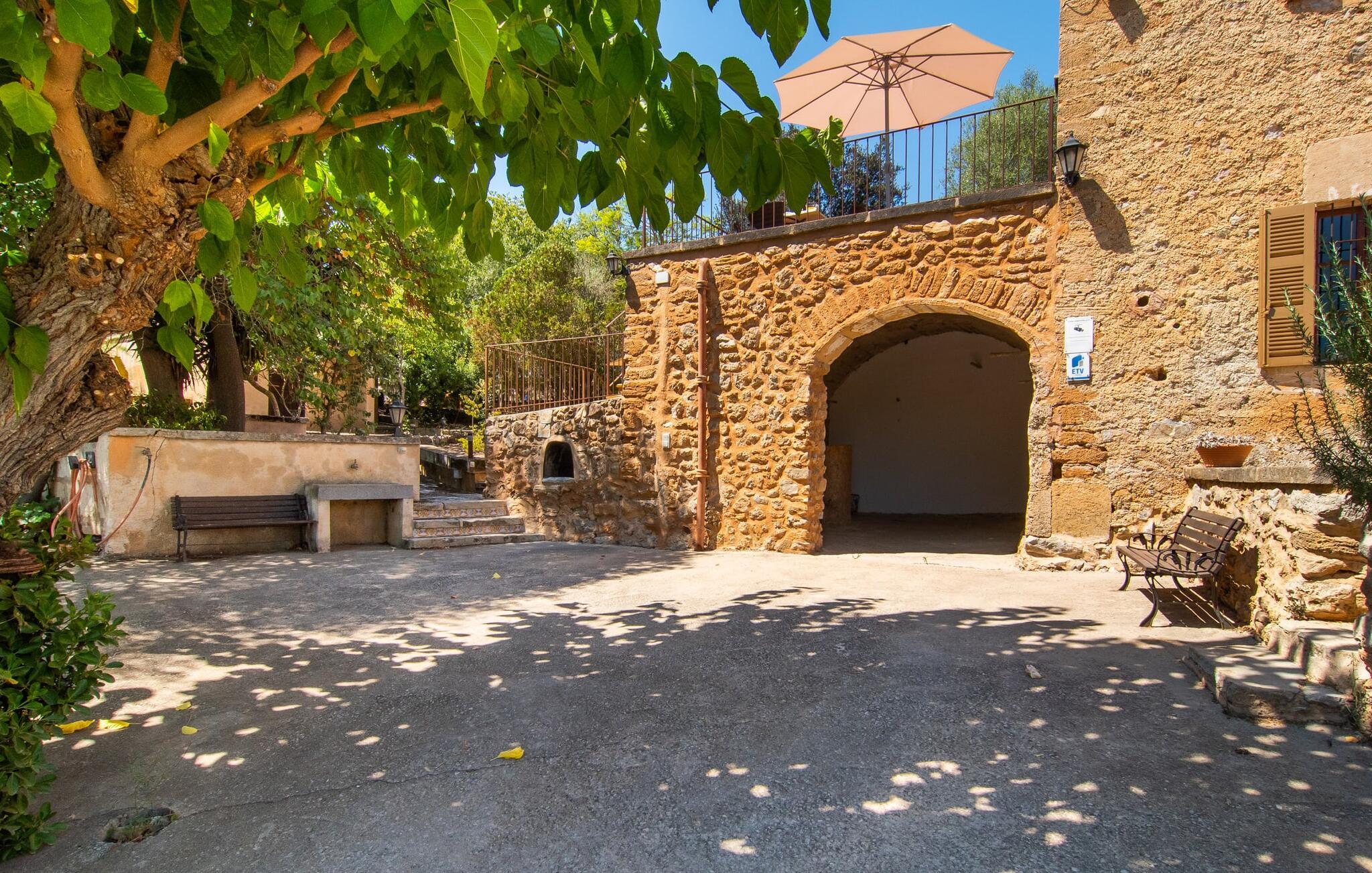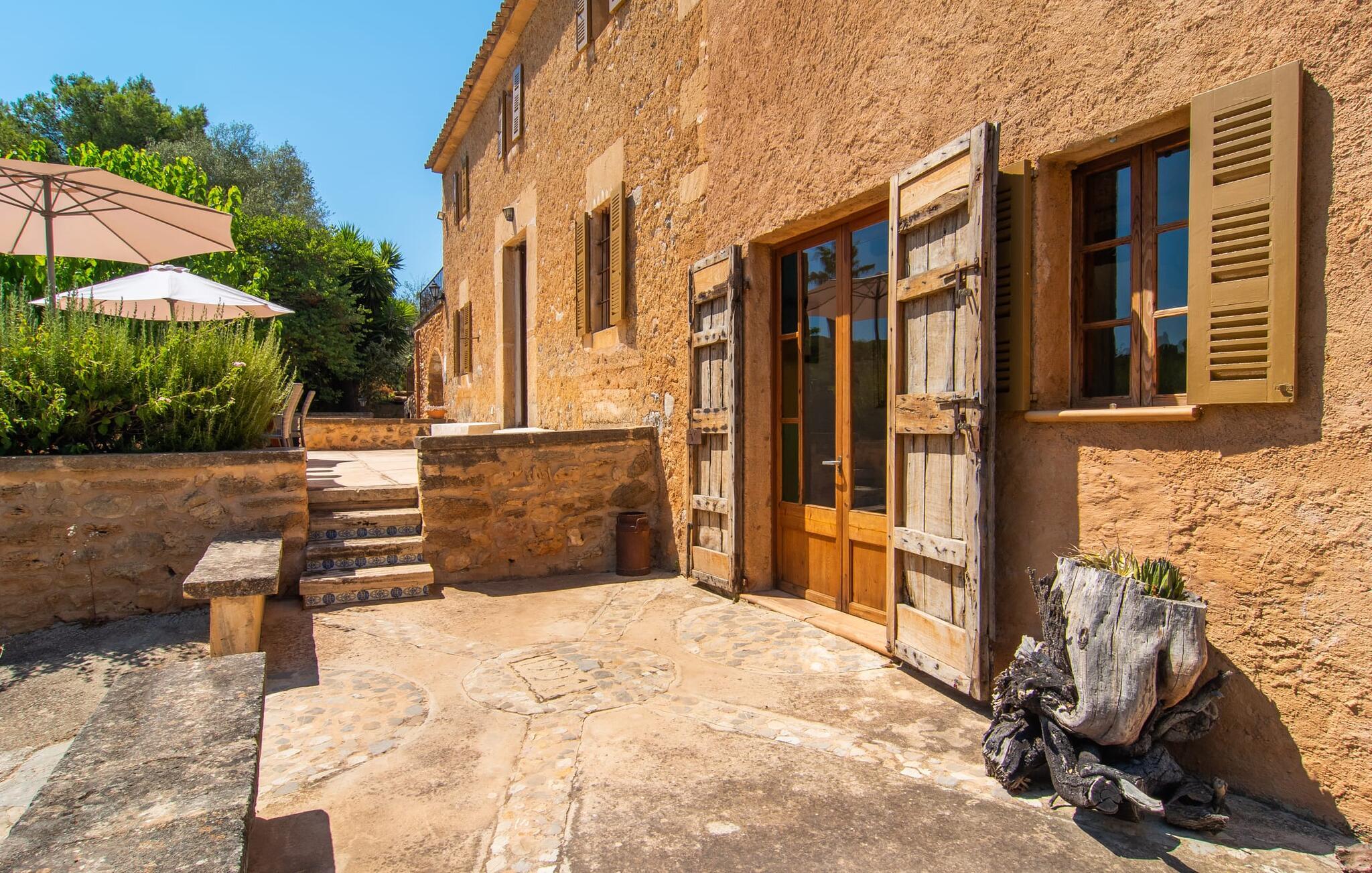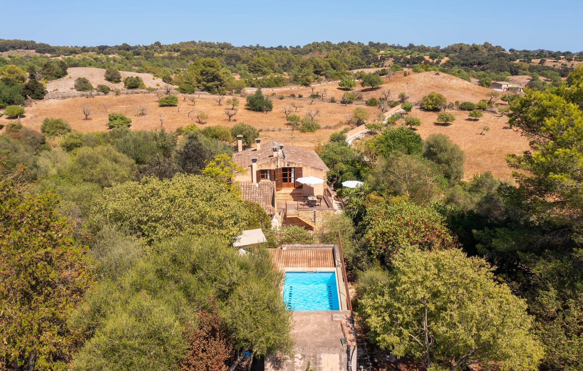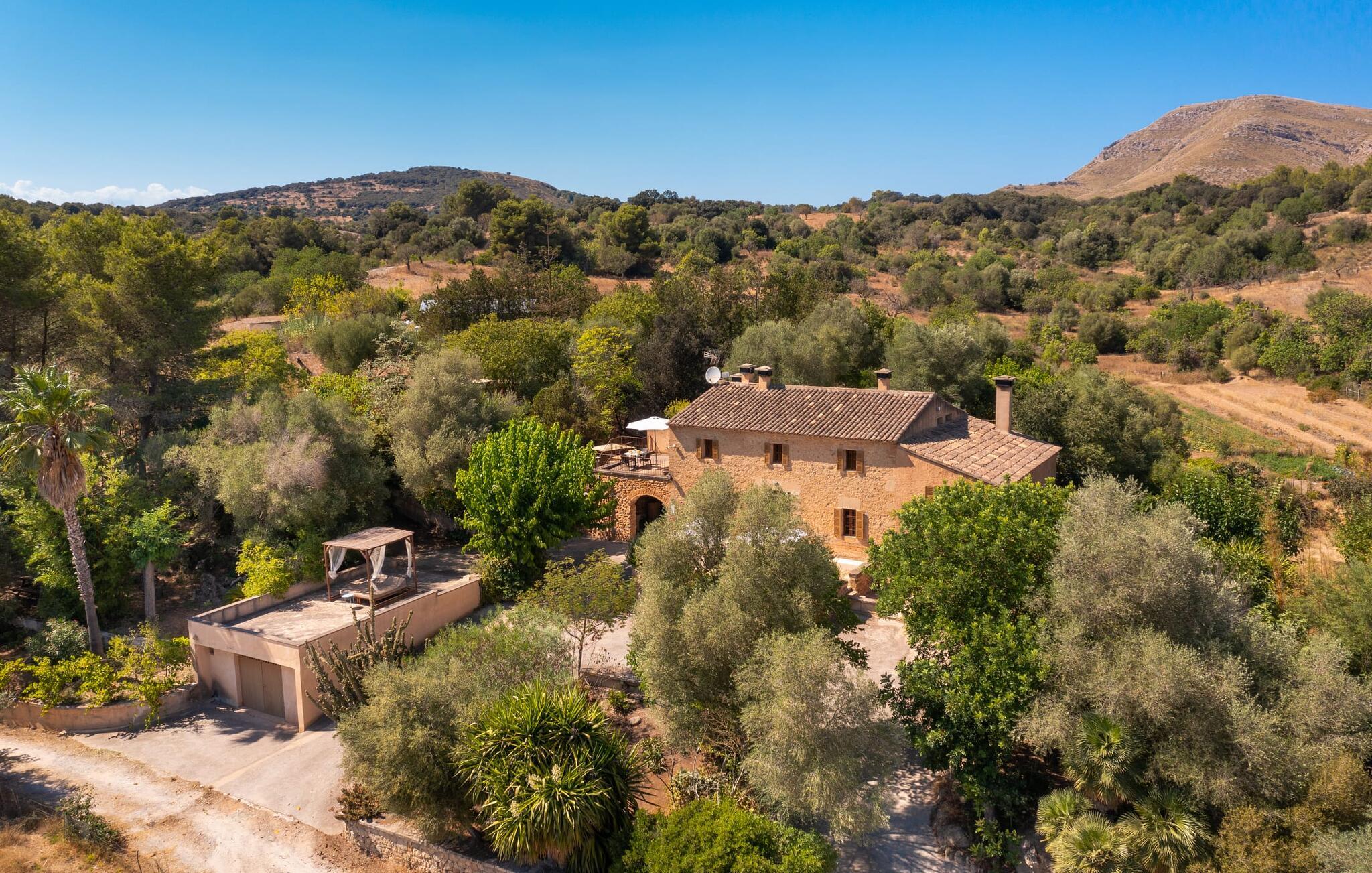 de rolige og afsondrede omgivelser i Villa "Sa Bogura" kan I nyde fortryllende omgivelser og trække jer tilbage i ordets sandeste betydning. En lille vej til villaen fører jer til denne rummelige ejendom, hvis rustikke stemning er særlig populær blandt vores gæster. Kort efter I ankommer, vil I indse, at dette er et sted, der tilbyder all-round afslapning. Her kan I nyde jeres ferie i en typisk mallorcansk atmosfære. Udearealet er præget af rummelige terrasser, rustikke trapper, nicher og vægge samt alskens middelhavsplanter. Der er endda en rutsjebane og en stor trægynge til børnene. Poolen, som er placeret lidt af vejen og tilgængelig via trapper, tilbyder et vidunderligt sted at bo. Poolen er mellem 1,20 m og 1,80 m dyb og kan nås via en stige. Liggestole og parasoller på træterrassen er perfekte til soldyrkere, der kan slappe af af hjertens lyst her ved Middelhavet og lægge hverdagen langt bag sig. Og det praktiske udendørs badeværelse gør det nemt at tilbringe hele dagen udendørs. På en af terrasserne nær huset med et stort spisebord kan I sidde afslappet og enten nyde en forfriskende drink eller fejre måltider i en hyggelig atmosfære. På varme aftener har I mulighed for at få en solid BBQ, hvor I kan lave mad og derefter prøve lækre mallorcanske råvarer. Den overdækkede grillplads på venstre side af huset er perfekt til dette, det ideelle lille sted at afslutte dagen komfortabelt. Andre indbydende siddepladser på ejendommen giver mulighed for altid at finde nye favoritpladser og trække sig tilbage et øjeblik, mens stemningen tager jer. De mange træer omkring huset byder på gode naturlige skyggeområder, hvor I kan sidde behageligt og luftigt. Det traditionelt indrettede hus har klassiske mallorcanske træbjælkelofter, lyse farver på væggene og naturstenselementer. I kombination med nogle rustikke møbler skabes en rustik stemning, der inviterer til at blive hængende. En smuk entré fører til et soveværelse fra begge sider. Længere nede i venstre side er trappen til overetagen. Ligesom badeværelserne på denne etage, har køkkenet alt hvad I behøver, inklusive en kedel og en filterkaffemaskine. Interessant nok er stuen spredt over to niveauer. Der er også en spiseplads på det nederste niveau til at nyde et måltid sammen indendørs. Her er også fladskærms-tv med satellitforbindelse installeret. I kan gøre jer godt tilpas og slappe af som I vil på de komfortable sofaer. Bøger, legetøj og en dvd-afspiller er til rådighed for jeres underholdning - selvom I næppe bliver efterladt alligevel - og det noget svage internetsignal er nok til at sende vigtige What'sapp-beskeder til jeres kære derhjemme. På øverste etage, der bruges som separat boligenhed, er der åben stue/spisestue med tilhørende lille køkken. En dør til terrassen giver jer mulighed for at gå direkte udenfor. Der er to soveværelser og et badeværelse på denne etage. Denne øverste del af huset med egen indgang er komplet indrettet i en mere moderne stil. Soveværelserne i huset er individuelt designet og formidler hver især en hjemlig atmosfære. Vi er sikre på, at alle vil finde deres eget personlige hvilested her. Badeværelserne er funktionelle og smagfuldt designet. For nemheds skyld er der et strygejern og en hårtørrer til rådighed. Da villaen er opdelt i to opholdsområder, er den ideel til flere familier, der gerne vil tilbringe deres ferie sammen og samtidig bevare et vist niveau af privatliv. Landsbyens butikker er ikke langt væk. Attraktive destinationer er Manacor (17 km) og Artà (7 km). I disse to små byer finder I alt, hvad I skal bruge til daglige indkøb; De tilbyder også et attraktivt udvalg af gode restauranter. I Sant Llorenc er der et lille ugentligt marked hver tirsdag. Strandene i Cala Millor, Sa Coma og Costa de los Pinos i den østlige del af øen er meget nemme at nå. Cala Rajada i den nordøstlige del er omkring 17 km væk. Den charmerende, store stenvilla "Sa Bogura" er en stemningsfuld ejendom på en stor, ugeneret grund på næsten 110.000 m². Villaen ligger i den smukke østlige del af øen. I Sant Llorenc (ca. 8 km væk) er der et bageri, et supermarked, et apotek og restauranter. De smukke sandstrande ved den lokale kyst er let tilgængelige.