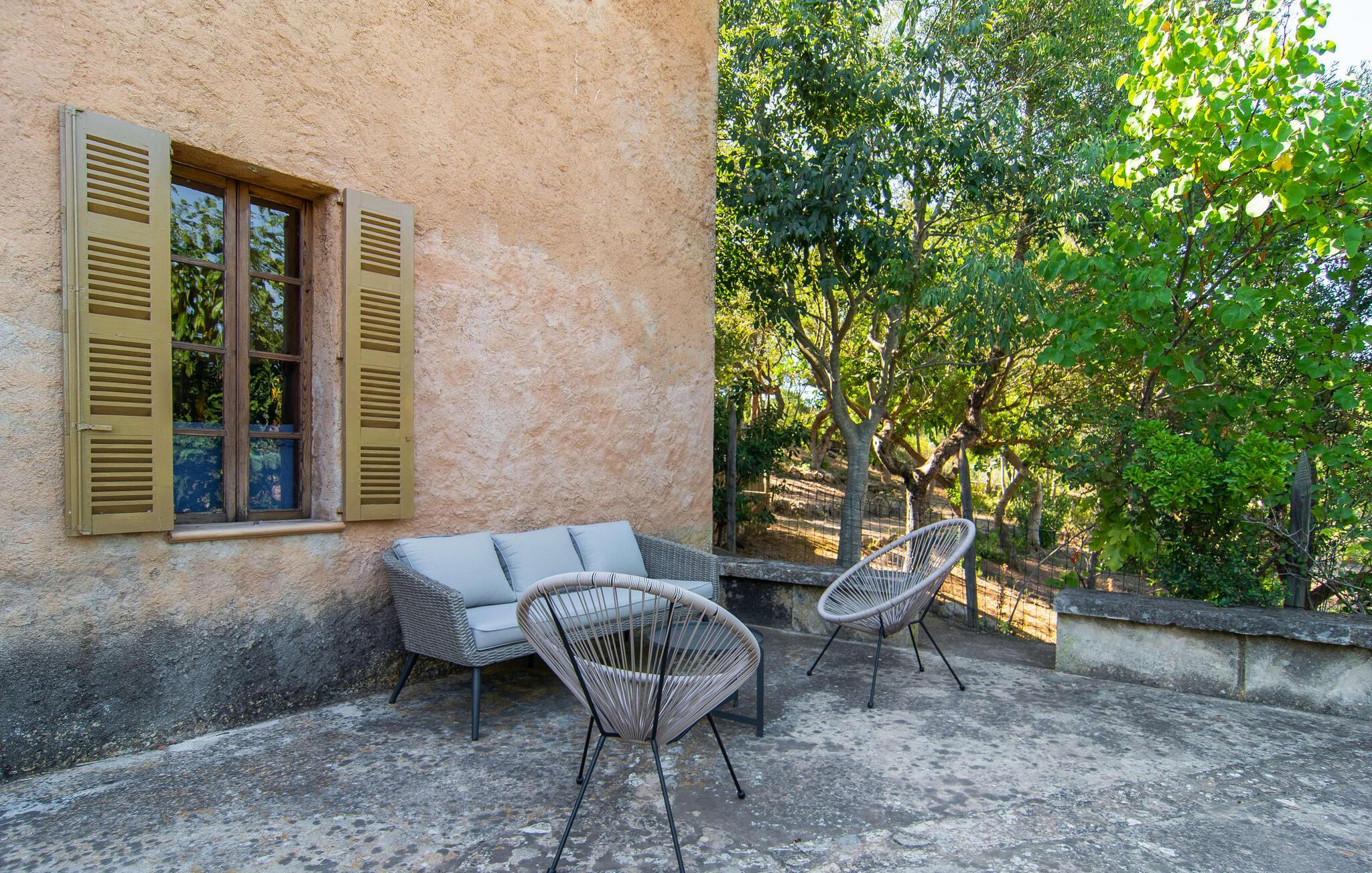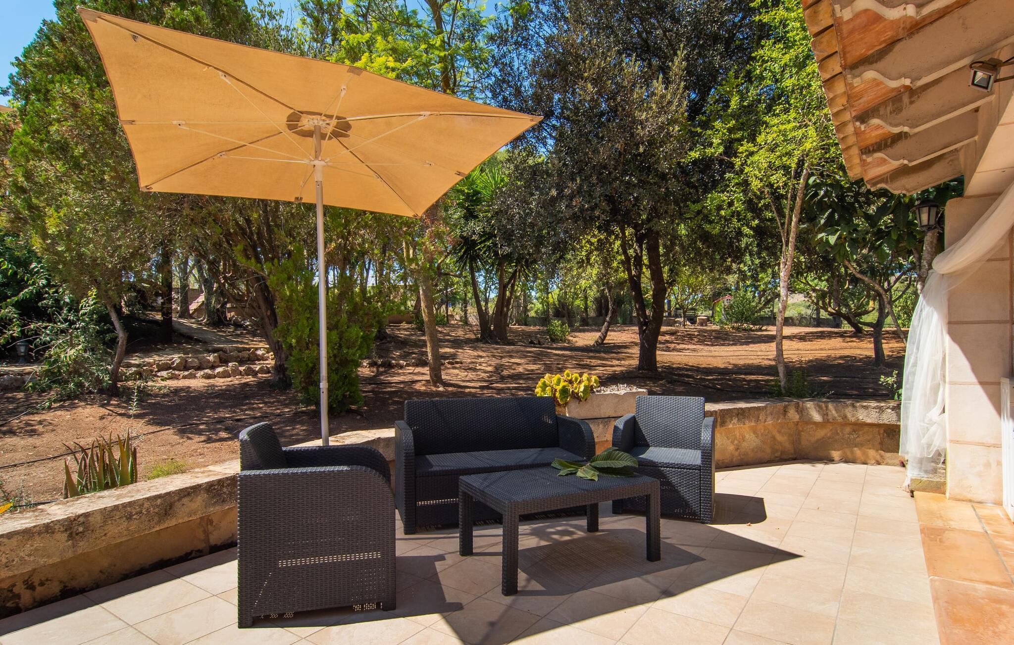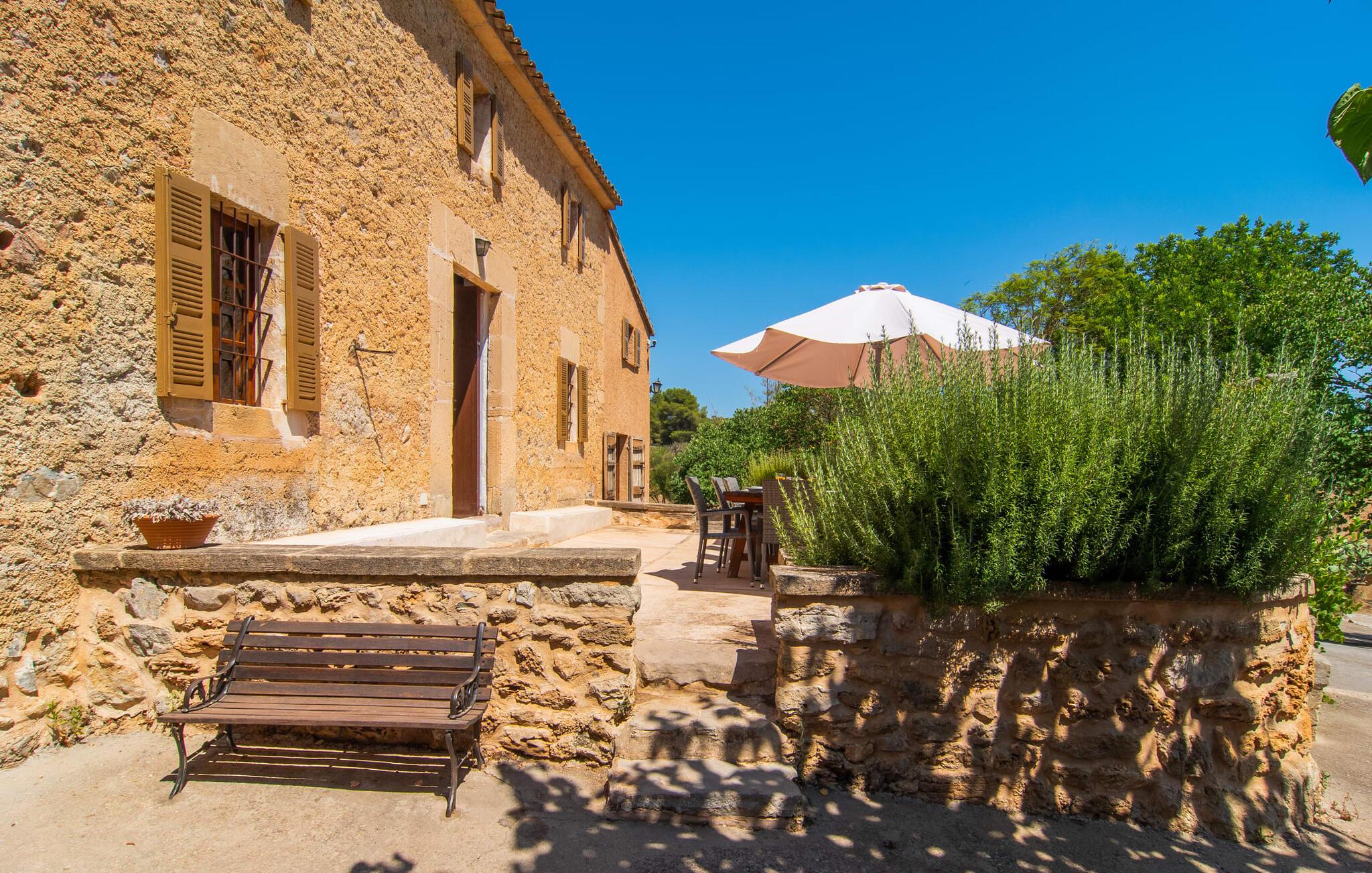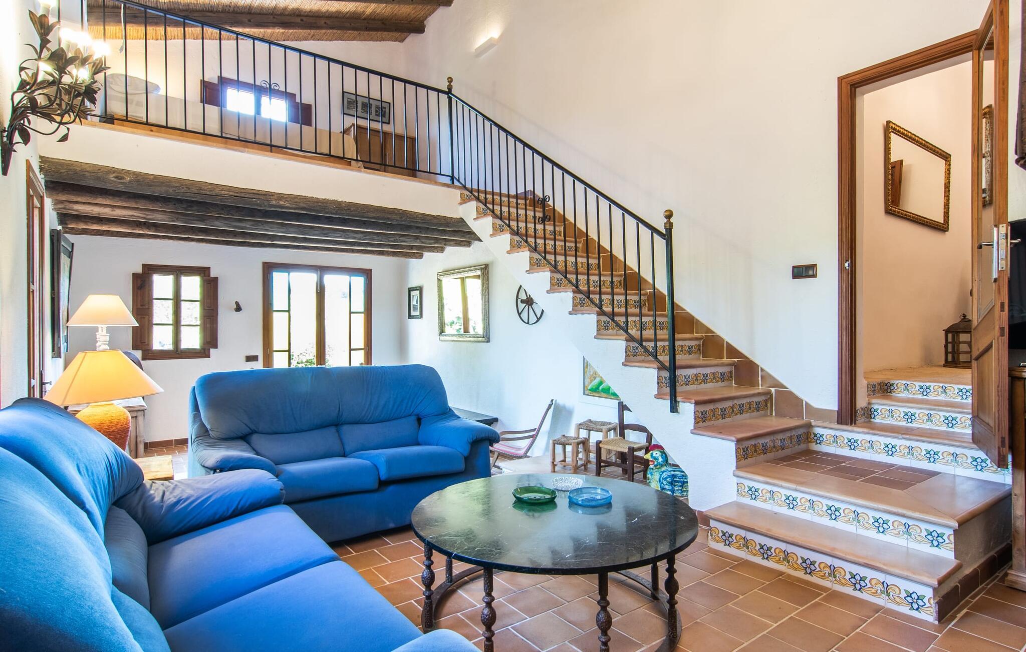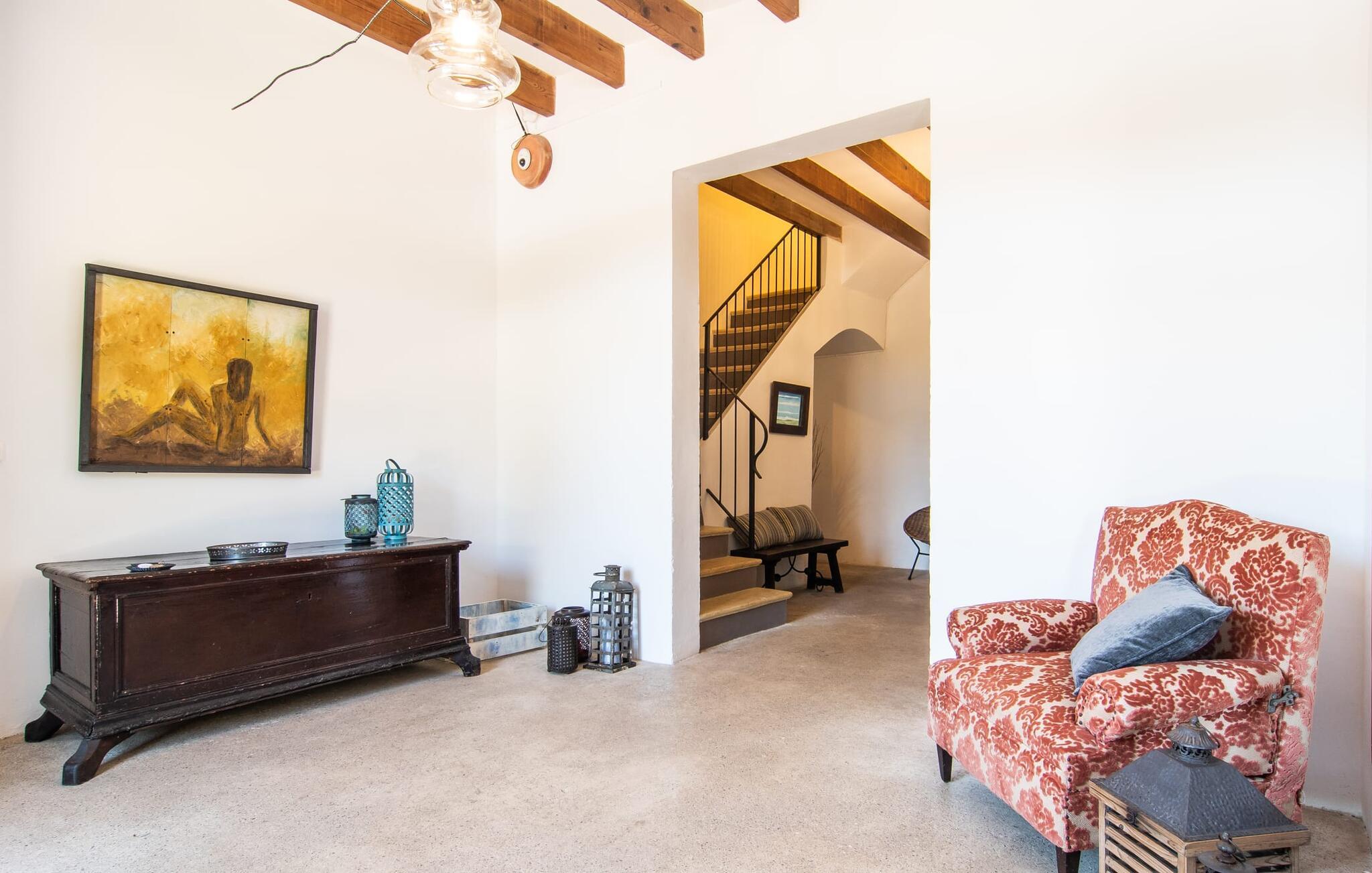 de rolige og afsondrede omgivelser i Villa "Sa Bogura" kan I nyde fortryllende omgivelser og trække jer tilbage i ordets sandeste betydning. En lille vej til villaen fører jer til denne rummelige ejendom, hvis rustikke stemning er særlig populær blandt vores gæster. Kort efter I ankommer, vil I indse, at dette er et sted, der tilbyder all-round afslapning. Her kan I nyde jeres ferie i en typisk mallorcansk atmosfære. Udearealet er præget af rummelige terrasser, rustikke trapper, nicher og vægge samt alskens middelhavsplanter. Der er endda en rutsjebane og en stor trægynge til børnene. Poolen, som er placeret lidt af vejen og tilgængelig via trapper, tilbyder et vidunderligt sted at bo. Poolen er mellem 1,20 m og 1,80 m dyb og kan nås via en stige. Liggestole og parasoller på træterrassen er perfekte til soldyrkere, der kan slappe af af hjertens lyst her ved Middelhavet og lægge hverdagen langt bag sig. Og det praktiske udendørs badeværelse gør det nemt at tilbringe hele dagen udendørs. På en af terrasserne nær huset med et stort spisebord kan I sidde afslappet og enten nyde en forfriskende drink eller fejre måltider i en hyggelig atmosfære. På varme aftener har I mulighed for at få en solid BBQ, hvor I kan lave mad og derefter prøve lækre mallorcanske råvarer. Den overdækkede grillplads på venstre side af huset er perfekt til dette, det ideelle lille sted at afslutte dagen komfortabelt. Andre indbydende siddepladser på ejendommen giver mulighed for altid at finde nye favoritpladser og trække sig tilbage et øjeblik, mens stemningen tager jer. De mange træer omkring huset byder på gode naturlige skyggeområder, hvor I kan sidde behageligt og luftigt. Det traditionelt indrettede hus har klassiske mallorcanske træbjælkelofter, lyse farver på væggene og naturstenselementer. I kombination med nogle rustikke møbler skabes en rustik stemning, der inviterer til at blive hængende. En smuk entré fører til et soveværelse fra begge sider. Længere nede i venstre side er trappen til overetagen. Ligesom badeværelserne på denne etage, har køkkenet alt hvad I behøver, inklusive en kedel og en filterkaffemaskine. Interessant nok er stuen spredt over to niveauer. Der er også en spiseplads på det nederste niveau til at nyde et måltid sammen indendørs. Her er også fladskærms-tv med satellitforbindelse installeret. I kan gøre jer godt tilpas og slappe af som I vil på de komfortable sofaer. Bøger, legetøj og en dvd-afspiller er til rådighed for jeres underholdning - selvom I næppe bliver efterladt alligevel - og det noget svage internetsignal er nok til at sende vigtige What'sapp-beskeder til jeres kære derhjemme. På øverste etage, der bruges som separat boligenhed, er der åben stue/spisestue med tilhørende lille køkken. En dør til terrassen giver jer mulighed for at gå direkte udenfor. Der er to soveværelser og et badeværelse på denne etage. Denne øverste del af huset med egen indgang er komplet indrettet i en mere moderne stil. Soveværelserne i huset er individuelt designet og formidler hver især en hjemlig atmosfære. Vi er sikre på, at alle vil finde deres eget personlige hvilested her. Badeværelserne er funktionelle og smagfuldt designet. For nemheds skyld er der et strygejern og en hårtørrer til rådighed. Da villaen er opdelt i to opholdsområder, er den ideel til flere familier, der gerne vil tilbringe deres ferie sammen og samtidig bevare et vist niveau af privatliv. Landsbyens butikker er ikke langt væk. Attraktive destinationer er Manacor (17 km) og Artà (7 km). I disse to små byer finder I alt, hvad I skal bruge til daglige indkøb; De tilbyder også et attraktivt udvalg af gode restauranter. I Sant Llorenc er der et lille ugentligt marked hver tirsdag. Strandene i Cala Millor, Sa Coma og Costa de los Pinos i den østlige del af øen er meget nemme at nå. Cala Rajada i den nordøstlige del er omkring 17 km væk. Den charmerende, store stenvilla "Sa Bogura" er en stemningsfuld ejendom på en stor, ugeneret grund på næsten 110.000 m². Villaen ligger i den smukke østlige del af øen. I Sant Llorenc (ca. 8 km væk) er der et bageri, et supermarked, et apotek og restauranter. De smukke sandstrande ved den lokale kyst er let tilgængelige.
