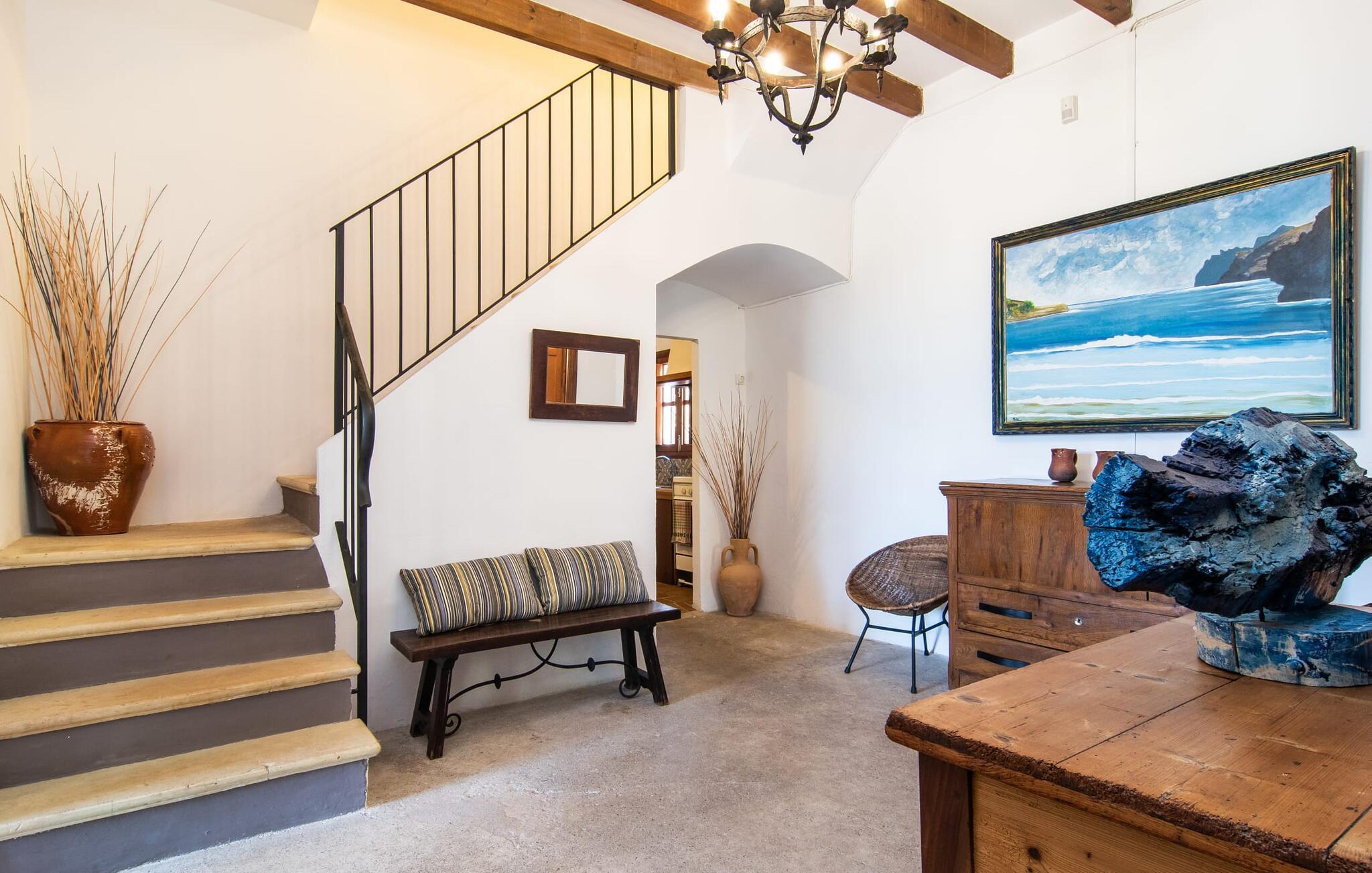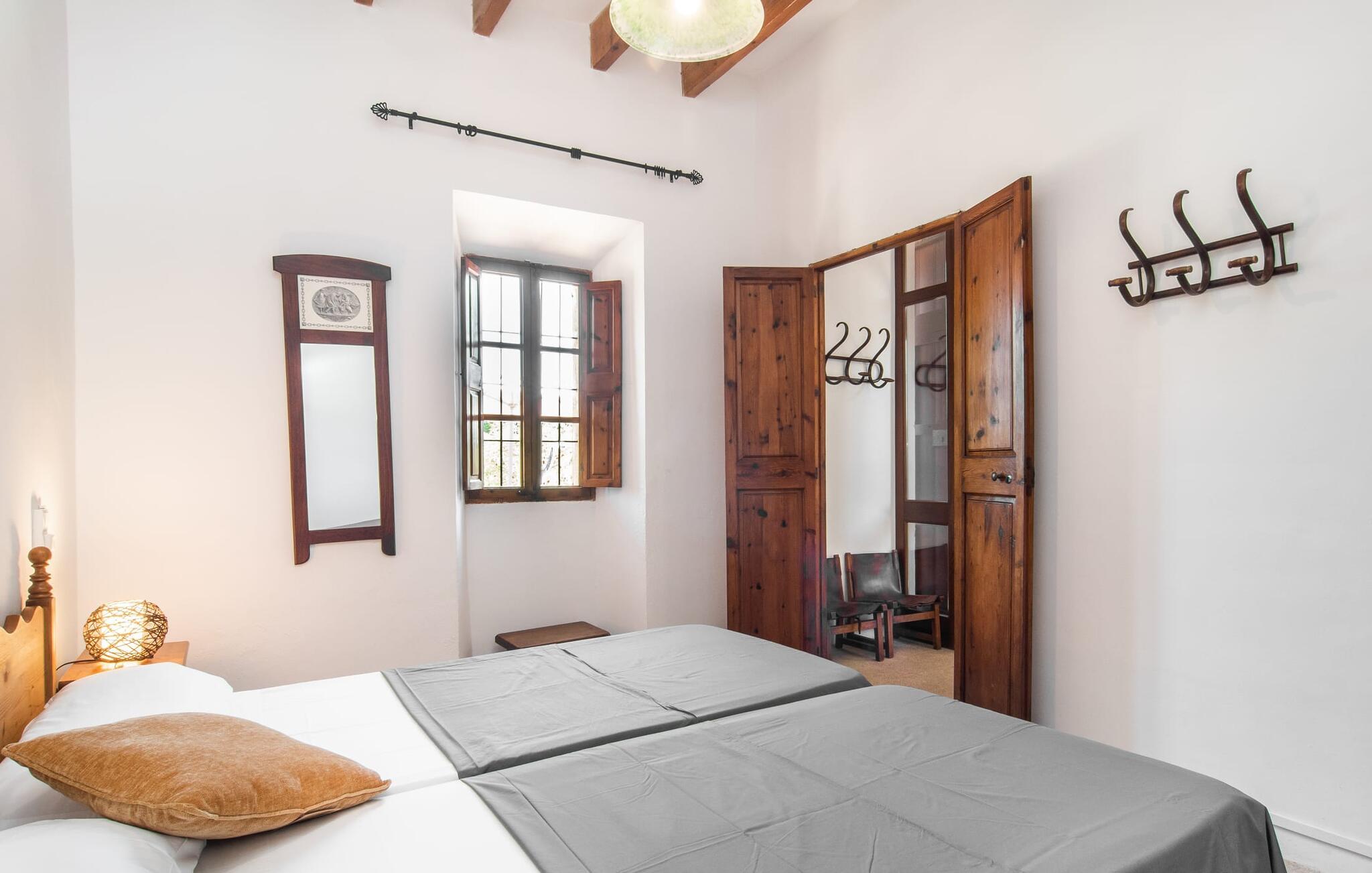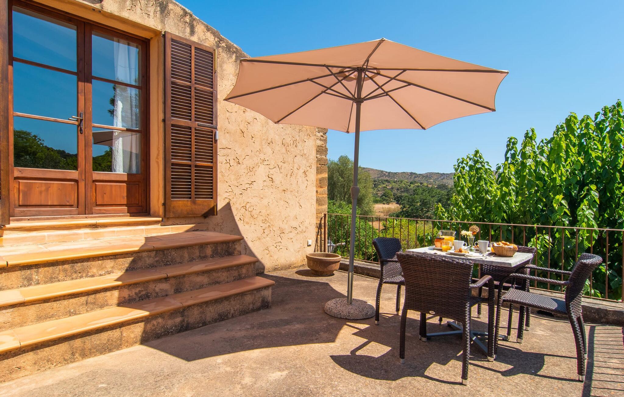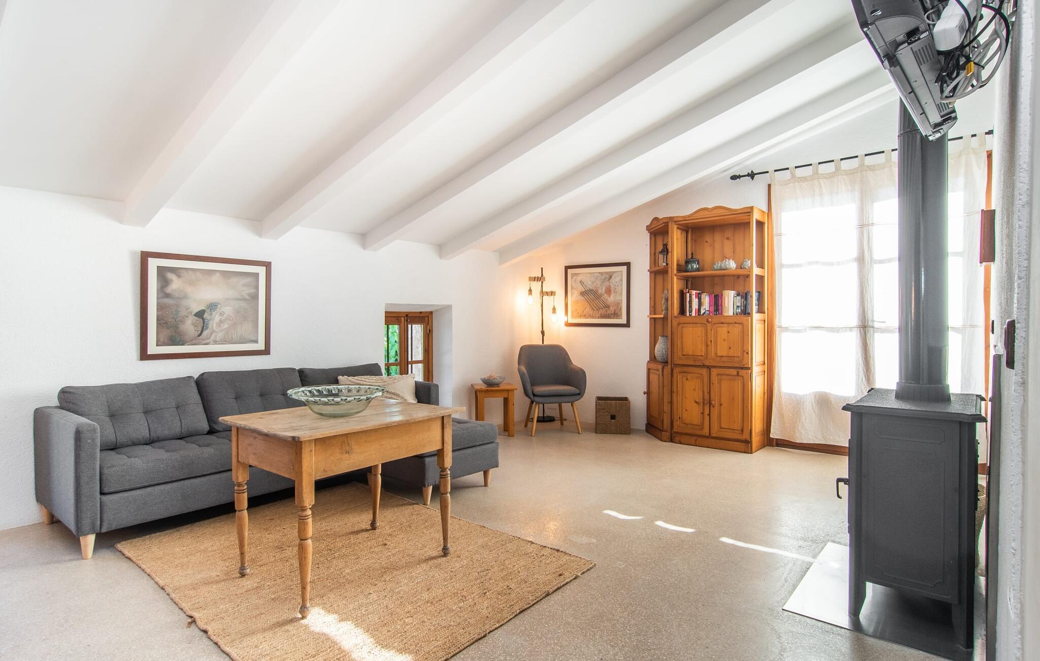 de rolige og afsondrede omgivelser i Villa "Sa Bogura" kan I nyde fortryllende omgivelser og trække jer tilbage i ordets sandeste betydning. En lille vej til villaen fører jer til denne rummelige ejendom, hvis rustikke stemning er særlig populær blandt vores gæster. Kort efter I ankommer, vil I indse, at dette er et sted, der tilbyder all-round afslapning. Her kan I nyde jeres ferie i en typisk mallorcansk atmosfære. Udearealet er præget af rummelige terrasser, rustikke trapper, nicher og vægge samt alskens middelhavsplanter. Der er endda en rutsjebane og en stor trægynge til børnene. Poolen, som er placeret lidt af vejen og tilgængelig via trapper, tilbyder et vidunderligt sted at bo. Poolen er mellem 1,20 m og 1,80 m dyb og kan nås via en stige. Liggestole og parasoller på træterrassen er perfekte til soldyrkere, der kan slappe af af hjertens lyst her ved Middelhavet og lægge hverdagen langt bag sig. Og det praktiske udendørs badeværelse gør det nemt at tilbringe hele dagen udendørs. På en af terrasserne nær huset med et stort spisebord kan I sidde afslappet og enten nyde en forfriskende drink eller fejre måltider i en hyggelig atmosfære. På varme aftener har I mulighed for at få en solid BBQ, hvor I kan lave mad og derefter prøve lækre mallorcanske råvarer. Den overdækkede grillplads på venstre side af huset er perfekt til dette, det ideelle lille sted at afslutte dagen komfortabelt. Andre indbydende siddepladser på ejendommen giver mulighed for altid at finde nye favoritpladser og trække sig tilbage et øjeblik, mens stemningen tager jer. De mange træer omkring huset byder på gode naturlige skyggeområder, hvor I kan sidde behageligt og luftigt. Det traditionelt indrettede hus har klassiske mallorcanske træbjælkelofter, lyse farver på væggene og naturstenselementer. I kombination med nogle rustikke møbler skabes en rustik stemning, der inviterer til at blive hængende. En smuk entré fører til et soveværelse fra begge sider. Længere nede i venstre side er trappen til overetagen. Ligesom badeværelserne på denne etage, har køkkenet alt hvad I behøver, inklusive en kedel og en filterkaffemaskine. Interessant nok er stuen spredt over to niveauer. Der er også en spiseplads på det nederste niveau til at nyde et måltid sammen indendørs. Her er også fladskærms-tv med satellitforbindelse installeret. I kan gøre jer godt tilpas og slappe af som I vil på de komfortable sofaer. Bøger, legetøj og en dvd-afspiller er til rådighed for jeres underholdning - selvom I næppe bliver efterladt alligevel - og det noget svage internetsignal er nok til at sende vigtige What'sapp-beskeder til jeres kære derhjemme. På øverste etage, der bruges som separat boligenhed, er der åben stue/spisestue med tilhørende lille køkken. En dør til terrassen giver jer mulighed for at gå direkte udenfor. Der er to soveværelser og et badeværelse på denne etage. Denne øverste del af huset med egen indgang er komplet indrettet i en mere moderne stil. Soveværelserne i huset er individuelt designet og formidler hver især en hjemlig atmosfære. Vi er sikre på, at alle vil finde deres eget personlige hvilested her. Badeværelserne er funktionelle og smagfuldt designet. For nemheds skyld er der et strygejern og en hårtørrer til rådighed. Da villaen er opdelt i to opholdsområder, er den ideel til flere familier, der gerne vil tilbringe deres ferie sammen og samtidig bevare et vist niveau af privatliv. Landsbyens butikker er ikke langt væk. Attraktive destinationer er Manacor (17 km) og Artà (7 km). I disse to små byer finder I alt, hvad I skal bruge til daglige indkøb; De tilbyder også et attraktivt udvalg af gode restauranter. I Sant Llorenc er der et lille ugentligt marked hver tirsdag. Strandene i Cala Millor, Sa Coma og Costa de los Pinos i den østlige del af øen er meget nemme at nå. Cala Rajada i den nordøstlige del er omkring 17 km væk. Den charmerende, store stenvilla "Sa Bogura" er en stemningsfuld ejendom på en stor, ugeneret grund på næsten 110.000 m². Villaen ligger i den smukke østlige del af øen. I Sant Llorenc (ca. 8 km væk) er der et bageri, et supermarked, et apotek og restauranter. De smukke sandstrande ved den lokale kyst er let tilgængelige.