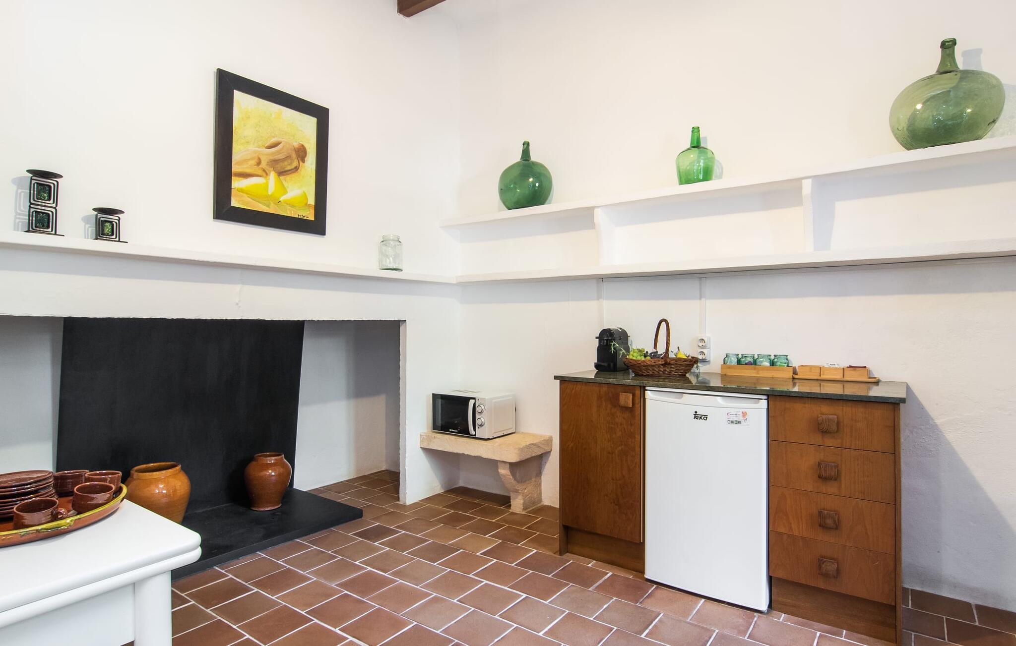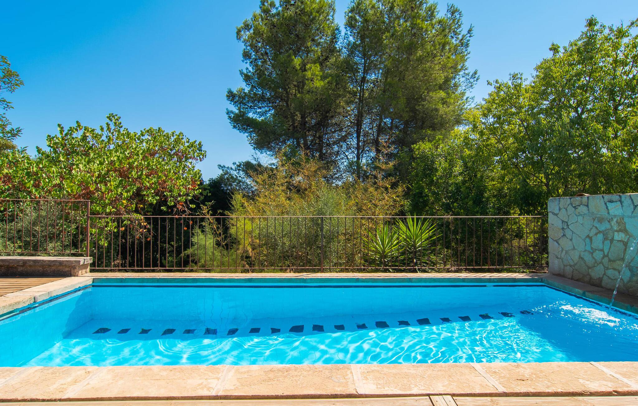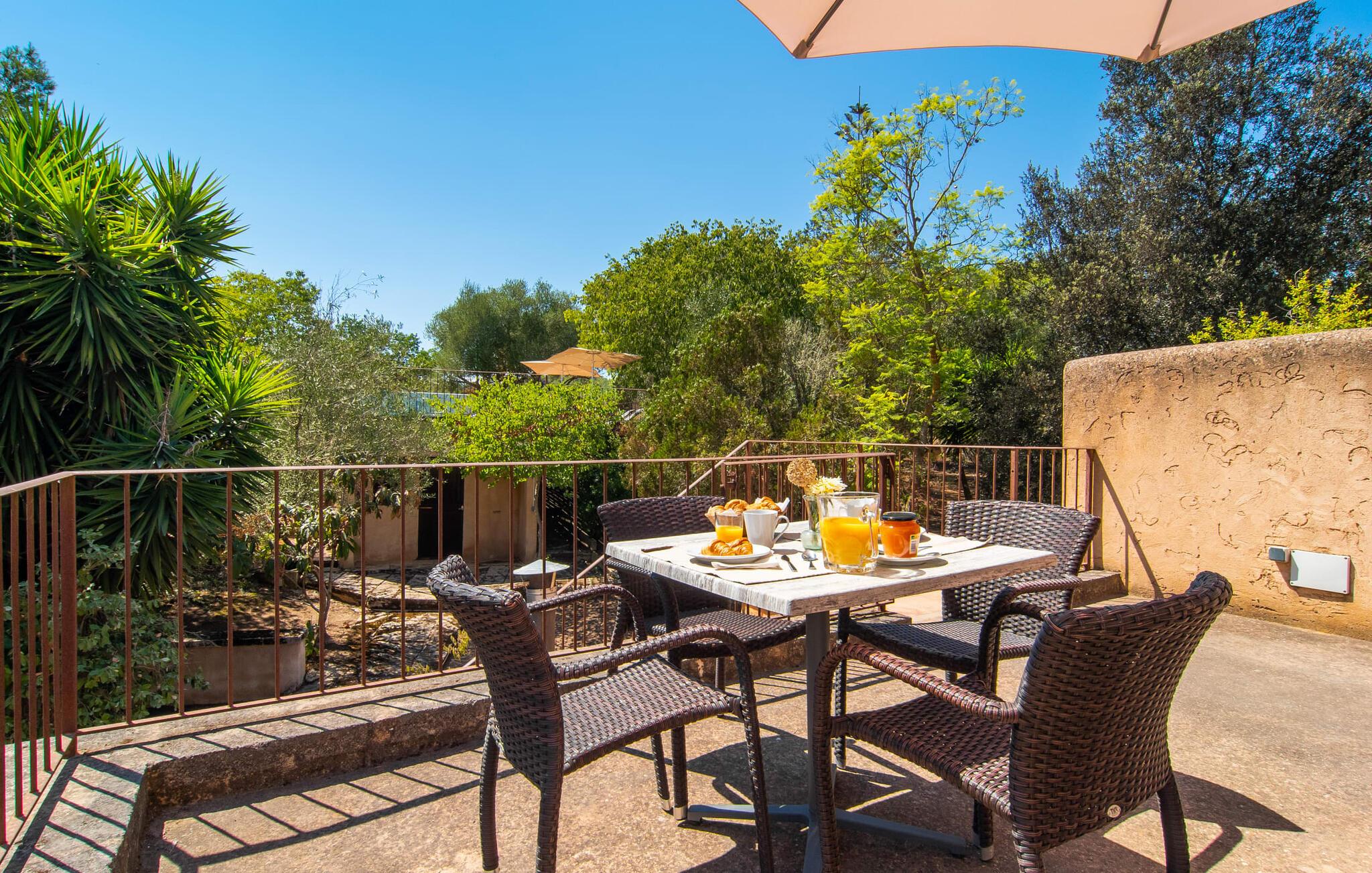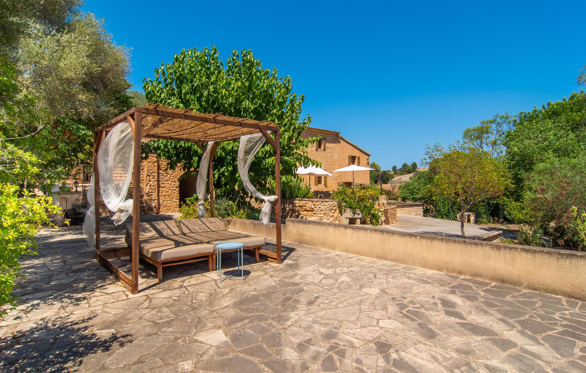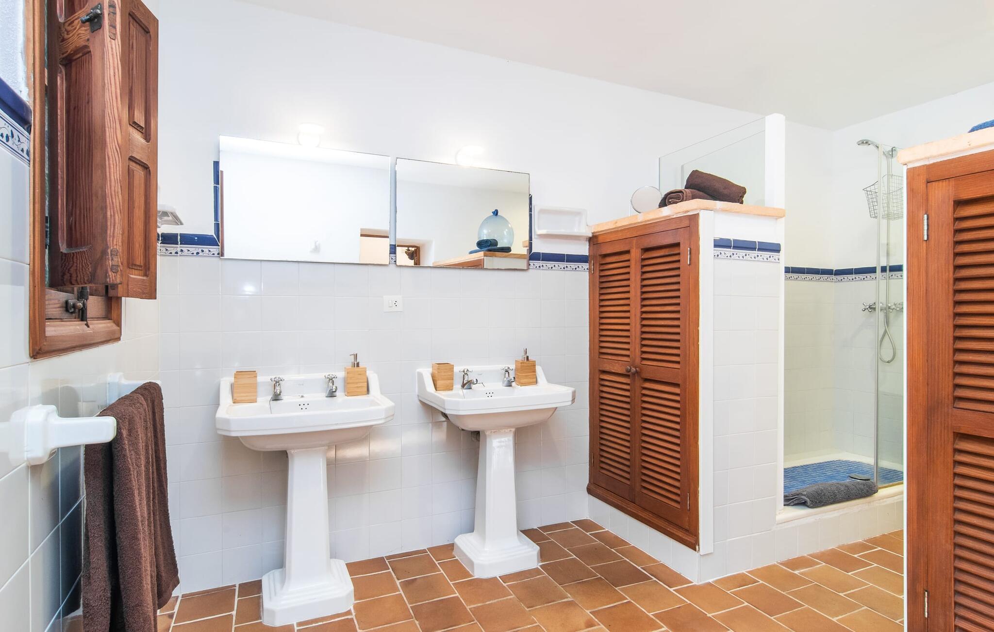 de rolige og afsondrede omgivelser i Villa "Sa Bogura" kan I nyde fortryllende omgivelser og trække jer tilbage i ordets sandeste betydning. En lille vej til villaen fører jer til denne rummelige ejendom, hvis rustikke stemning er særlig populær blandt vores gæster. Kort efter I ankommer, vil I indse, at dette er et sted, der tilbyder all-round afslapning. Her kan I nyde jeres ferie i en typisk mallorcansk atmosfære. Udearealet er præget af rummelige terrasser, rustikke trapper, nicher og vægge samt alskens middelhavsplanter. Der er endda en rutsjebane og en stor trægynge til børnene. Poolen, som er placeret lidt af vejen og tilgængelig via trapper, tilbyder et vidunderligt sted at bo. Poolen er mellem 1,20 m og 1,80 m dyb og kan nås via en stige. Liggestole og parasoller på træterrassen er perfekte til soldyrkere, der kan slappe af af hjertens lyst her ved Middelhavet og lægge hverdagen langt bag sig. Og det praktiske udendørs badeværelse gør det nemt at tilbringe hele dagen udendørs. På en af terrasserne nær huset med et stort spisebord kan I sidde afslappet og enten nyde en forfriskende drink eller fejre måltider i en hyggelig atmosfære. På varme aftener har I mulighed for at få en solid BBQ, hvor I kan lave mad og derefter prøve lækre mallorcanske råvarer. Den overdækkede grillplads på venstre side af huset er perfekt til dette, det ideelle lille sted at afslutte dagen komfortabelt. Andre indbydende siddepladser på ejendommen giver mulighed for altid at finde nye favoritpladser og trække sig tilbage et øjeblik, mens stemningen tager jer. De mange træer omkring huset byder på gode naturlige skyggeområder, hvor I kan sidde behageligt og luftigt. Det traditionelt indrettede hus har klassiske mallorcanske træbjælkelofter, lyse farver på væggene og naturstenselementer. I kombination med nogle rustikke møbler skabes en rustik stemning, der inviterer til at blive hængende. En smuk entré fører til et soveværelse fra begge sider. Længere nede i venstre side er trappen til overetagen. Ligesom badeværelserne på denne etage, har køkkenet alt hvad I behøver, inklusive en kedel og en filterkaffemaskine. Interessant nok er stuen spredt over to niveauer. Der er også en spiseplads på det nederste niveau til at nyde et måltid sammen indendørs. Her er også fladskærms-tv med satellitforbindelse installeret. I kan gøre jer godt tilpas og slappe af som I vil på de komfortable sofaer. Bøger, legetøj og en dvd-afspiller er til rådighed for jeres underholdning - selvom I næppe bliver efterladt alligevel - og det noget svage internetsignal er nok til at sende vigtige What'sapp-beskeder til jeres kære derhjemme. På øverste etage, der bruges som separat boligenhed, er der åben stue/spisestue med tilhørende lille køkken. En dør til terrassen giver jer mulighed for at gå direkte udenfor. Der er to soveværelser og et badeværelse på denne etage. Denne øverste del af huset med egen indgang er komplet indrettet i en mere moderne stil. Soveværelserne i huset er individuelt designet og formidler hver især en hjemlig atmosfære. Vi er sikre på, at alle vil finde deres eget personlige hvilested her. Badeværelserne er funktionelle og smagfuldt designet. For nemheds skyld er der et strygejern og en hårtørrer til rådighed. Da villaen er opdelt i to opholdsområder, er den ideel til flere familier, der gerne vil tilbringe deres ferie sammen og samtidig bevare et vist niveau af privatliv. Landsbyens butikker er ikke langt væk. Attraktive destinationer er Manacor (17 km) og Artà (7 km). I disse to små byer finder I alt, hvad I skal bruge til daglige indkøb; De tilbyder også et attraktivt udvalg af gode restauranter. I Sant Llorenc er der et lille ugentligt marked hver tirsdag. Strandene i Cala Millor, Sa Coma og Costa de los Pinos i den østlige del af øen er meget nemme at nå. Cala Rajada i den nordøstlige del er omkring 17 km væk. Den charmerende, store stenvilla "Sa Bogura" er en stemningsfuld ejendom på en stor, ugeneret grund på næsten 110.000 m². Villaen ligger i den smukke østlige del af øen. I Sant Llorenc (ca. 8 km væk) er der et bageri, et supermarked, et apotek og restauranter. De smukke sandstrande ved den lokale kyst er let tilgængelige.