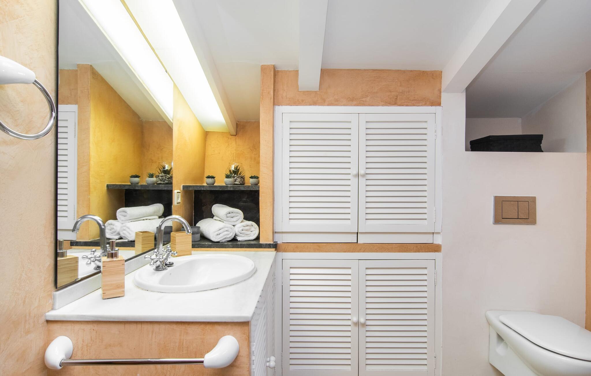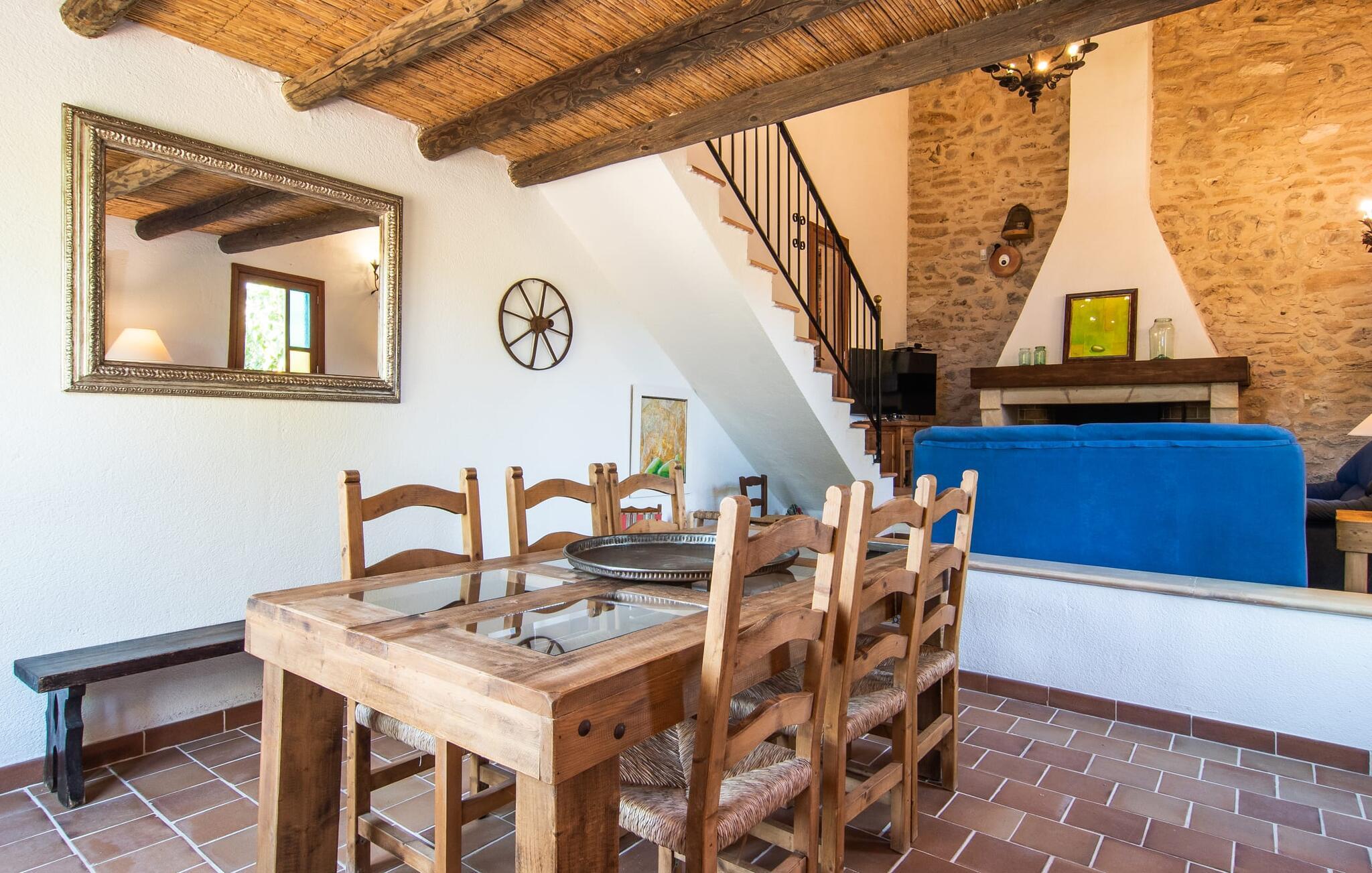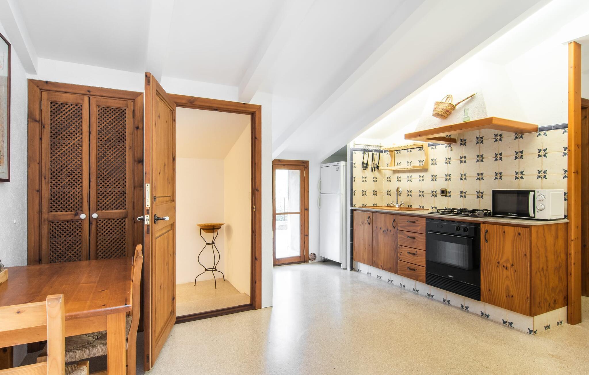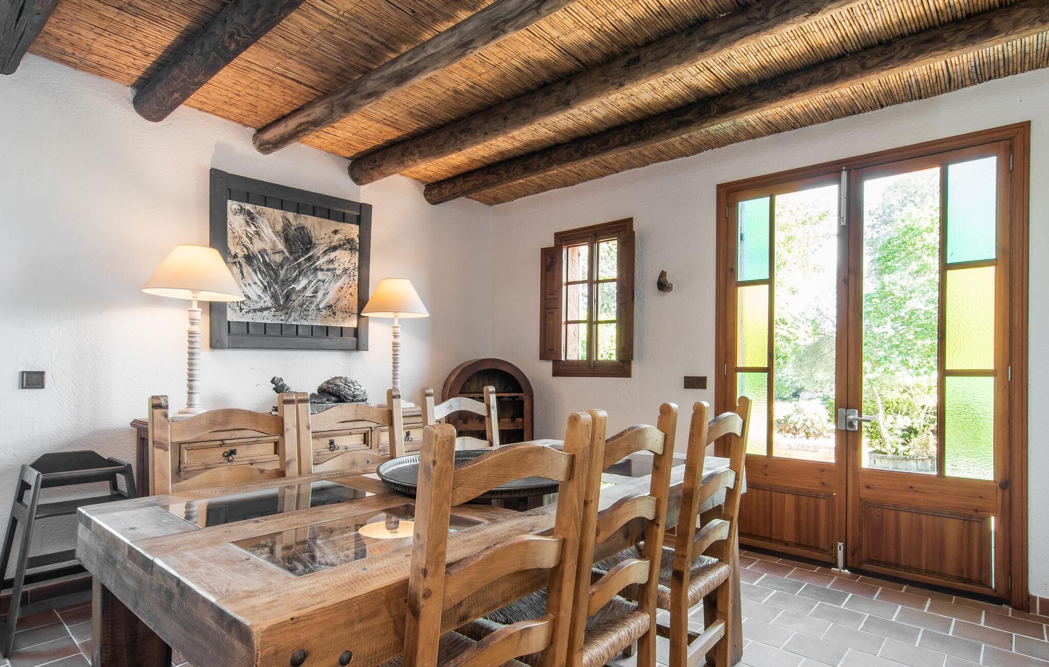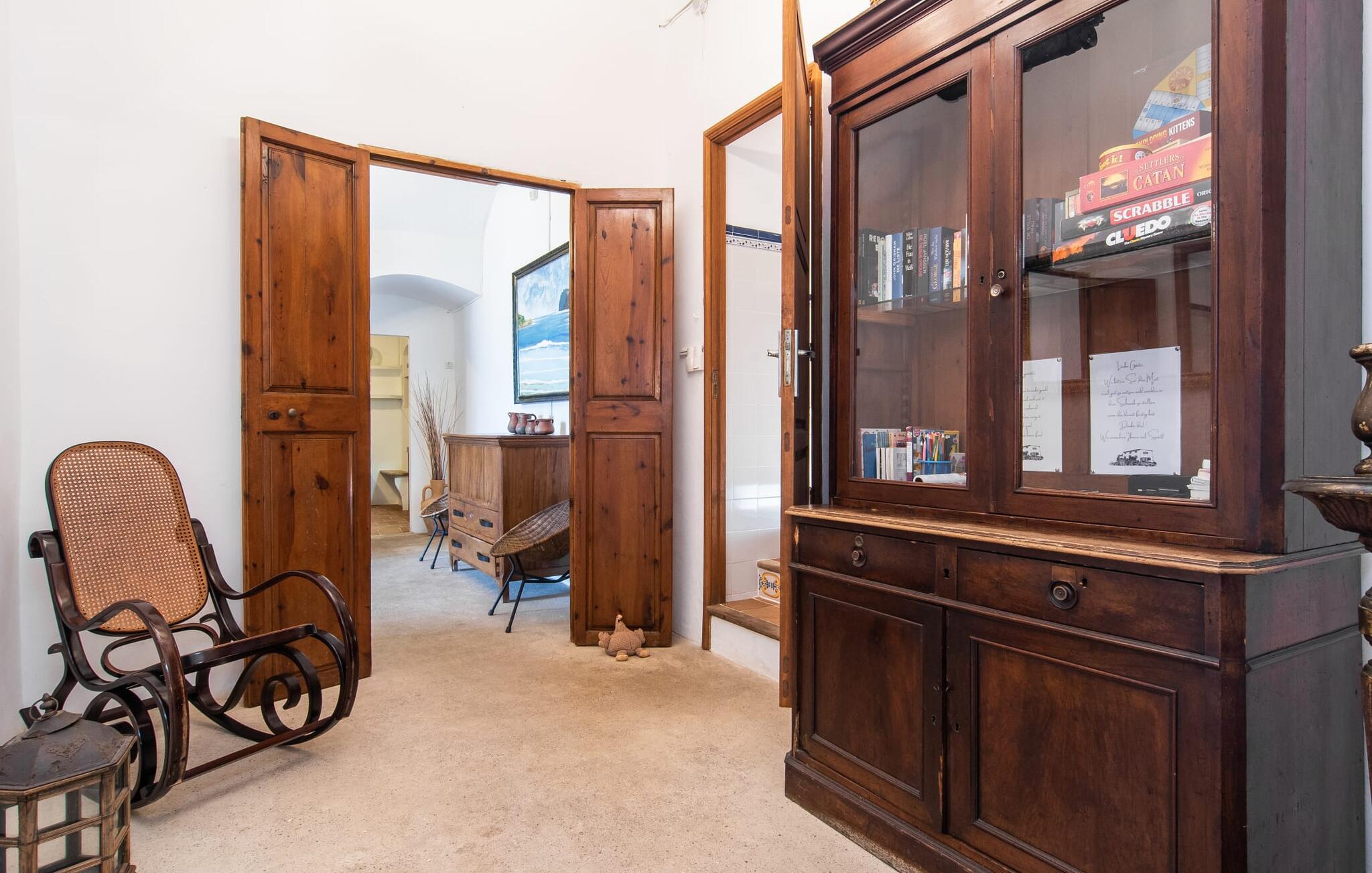 de rolige og afsondrede omgivelser i Villa "Sa Bogura" kan I nyde fortryllende omgivelser og trække jer tilbage i ordets sandeste betydning. En lille vej til villaen fører jer til denne rummelige ejendom, hvis rustikke stemning er særlig populær blandt vores gæster. Kort efter I ankommer, vil I indse, at dette er et sted, der tilbyder all-round afslapning. Her kan I nyde jeres ferie i en typisk mallorcansk atmosfære. Udearealet er præget af rummelige terrasser, rustikke trapper, nicher og vægge samt alskens middelhavsplanter. Der er endda en rutsjebane og en stor trægynge til børnene. Poolen, som er placeret lidt af vejen og tilgængelig via trapper, tilbyder et vidunderligt sted at bo. Poolen er mellem 1,20 m og 1,80 m dyb og kan nås via en stige. Liggestole og parasoller på træterrassen er perfekte til soldyrkere, der kan slappe af af hjertens lyst her ved Middelhavet og lægge hverdagen langt bag sig. Og det praktiske udendørs badeværelse gør det nemt at tilbringe hele dagen udendørs. På en af terrasserne nær huset med et stort spisebord kan I sidde afslappet og enten nyde en forfriskende drink eller fejre måltider i en hyggelig atmosfære. På varme aftener har I mulighed for at få en solid BBQ, hvor I kan lave mad og derefter prøve lækre mallorcanske råvarer. Den overdækkede grillplads på venstre side af huset er perfekt til dette, det ideelle lille sted at afslutte dagen komfortabelt. Andre indbydende siddepladser på ejendommen giver mulighed for altid at finde nye favoritpladser og trække sig tilbage et øjeblik, mens stemningen tager jer. De mange træer omkring huset byder på gode naturlige skyggeområder, hvor I kan sidde behageligt og luftigt. Det traditionelt indrettede hus har klassiske mallorcanske træbjælkelofter, lyse farver på væggene og naturstenselementer. I kombination med nogle rustikke møbler skabes en rustik stemning, der inviterer til at blive hængende. En smuk entré fører til et soveværelse fra begge sider. Længere nede i venstre side er trappen til overetagen. Ligesom badeværelserne på denne etage, har køkkenet alt hvad I behøver, inklusive en kedel og en filterkaffemaskine. Interessant nok er stuen spredt over to niveauer. Der er også en spiseplads på det nederste niveau til at nyde et måltid sammen indendørs. Her er også fladskærms-tv med satellitforbindelse installeret. I kan gøre jer godt tilpas og slappe af som I vil på de komfortable sofaer. Bøger, legetøj og en dvd-afspiller er til rådighed for jeres underholdning - selvom I næppe bliver efterladt alligevel - og det noget svage internetsignal er nok til at sende vigtige What'sapp-beskeder til jeres kære derhjemme. På øverste etage, der bruges som separat boligenhed, er der åben stue/spisestue med tilhørende lille køkken. En dør til terrassen giver jer mulighed for at gå direkte udenfor. Der er to soveværelser og et badeværelse på denne etage. Denne øverste del af huset med egen indgang er komplet indrettet i en mere moderne stil. Soveværelserne i huset er individuelt designet og formidler hver især en hjemlig atmosfære. Vi er sikre på, at alle vil finde deres eget personlige hvilested her. Badeværelserne er funktionelle og smagfuldt designet. For nemheds skyld er der et strygejern og en hårtørrer til rådighed. Da villaen er opdelt i to opholdsområder, er den ideel til flere familier, der gerne vil tilbringe deres ferie sammen og samtidig bevare et vist niveau af privatliv. Landsbyens butikker er ikke langt væk. Attraktive destinationer er Manacor (17 km) og Artà (7 km). I disse to små byer finder I alt, hvad I skal bruge til daglige indkøb; De tilbyder også et attraktivt udvalg af gode restauranter. I Sant Llorenc er der et lille ugentligt marked hver tirsdag. Strandene i Cala Millor, Sa Coma og Costa de los Pinos i den østlige del af øen er meget nemme at nå. Cala Rajada i den nordøstlige del er omkring 17 km væk. Den charmerende, store stenvilla "Sa Bogura" er en stemningsfuld ejendom på en stor, ugeneret grund på næsten 110.000 m². Villaen ligger i den smukke østlige del af øen. I Sant Llorenc (ca. 8 km væk) er der et bageri, et supermarked, et apotek og restauranter. De smukke sandstrande ved den lokale kyst er let tilgængelige.