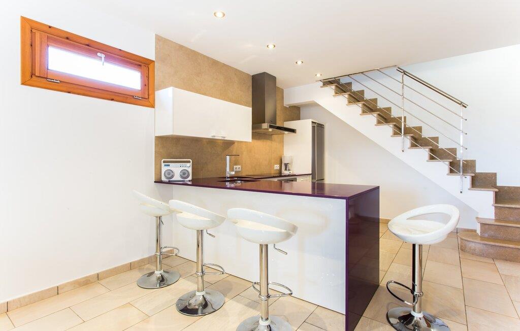 Den storslået restaurerede villa "Can Vinagrella Pera" er en særdeles attraktiv villa i vores program, som vil blæse os fuldstændig omkuld. Husets "skal" er bevaret og består af store, firkantede sandstensblokke. Villaen er omgivet af en lille have med dejlige terrassearealer, og da den ligger på en 60.000 m² stor grund, kan I slappe af i fuldstændig afsondrethed og nyde ejendommens pragt helt for jer selv. Huset ligger dog stadig kun 3 minutters kørsel fra den maleriske lille by Muro, hvor I kan købe alt, hvad I skal bruge til selvforplejning i de lokale supermarkeder eller på søndagsmarkedet. Hvis I ikke har lyst til at lave mad eller grille, er der talrige restauranter og barer i denne typiske mallorcanske by, som I helt sikkert vil besøge, selvom det bare er for en cortado-kaffe. For en dag på stranden skal I kun køre et par minutter med jeres udlejningsbil for at nå steder som Alcúdia-bugten eller Can Picafort-stranden, for blot at nævne nogle af de lange strande efter hinanden langs bugten med samme navn. Alcúdia-bugten er en rummelig strand med lavvandet sandadgang til havet, som er særligt familievenligt, og hvor I stadig kan nyde den uberørte natur. Grundet villaens velholdte ydre fremtoning vil I have store forventninger til indretningen. Vi kan forsikre jer om, at I ikke bliver skuffet. I kan endda blive overrasket over det strålende moderne, åbne design og den meget smarte og trendy indretningsstil, der samtidig skaber en stor kontrast til husets oprindelige funktion som bondehus. I stueetagen finder I den åbne stue og køkkenafdeling. Det lyse vægdesign, forsænkede belysning og hvide møbler suppleres med kunst i industriel stil, hvilket giver dette rum en utrolig trendy følelse af stil. Ved siden af stuen finder I køkkenet, som er fuldt udstyret og udstyret med alt hvad I behøver som: B. store keramiske kogeplader, et komfur, en mikroovn, en opvaskemaskine og meget mere. De hvide køkkenfronter er afsat med rustfrit stål, og det store køle/fryseskab har også et rustfrit stållook. Bordpladen og bordpladen passer godt til dette udseende, da deres højglans, midnatsblå overflader skaber en farvekontrast til de lyse farver. Der står hvide barstole ved disken og venter på at blive brugt af gæsterne. På samme etage finder vi det første af tre soveværelser samt et af de to trendy badeværelser. De to andre soveværelser er ovenpå. Alle er rummelige og komfortabelt møblerede (nogle med 2 enkeltsenge) til en fremragende standard. De to soveværelser ovenpå deler et fælles badeværelse. Badeværelserne er udstyret til en høj standard; Badeværelsesmøblet imponerer med sit iøjnefaldende moderne design, som nogle gange får en organisk form. En bruseniche fra gulv til loft i det beige badeværelse er lige så indbydende som det rummelige badeværelse med badekar og glasparti, der er udstyret med store hvide klinker og står i kontrast til sorte armaturer. På denne etage finder I desuden en rummelig solterrasse, som også kan nås fra haven via en udvendig trappe. Udendørsområdet omkring villaen består af en lille have, et ekstra lille sommerhus og en stor pool, som kan oplyses om natten og ledsages af en tilstødende solterrasse. På poolterrassen venter ergonomisk designede, yderst behagelige polyrattan liggestole på, at I kan læne jer tilbage og slappe af. På terrassen er der også et lille spisebord, hvor I kan nyde jeres morgenmad, spille et brætspil eller måske bare slappe af om aftenen med et godt glas vin. Der er talrige terrassearealer på selve huset, og på et af dem er der en lille hytte, der indeholder et fuldt udstyret køkken og en integreret grillplads - også udstyret med ovn, kogeplader, opvaskemaskine, stort køleskab osv. Den overdækkede udendørs køkken er virkelig et helt særligt højdepunkt i hele huset, hvilket kun øger vores entusiasme for denne villa. Bliver det for varmt eller for koldt at spise udenfor, har I mulighed for at bruge et ekstra kæmpe spisebord i træ inde i grillhytten. Og så i den højkvalitets og ultramoderne villa "Can Vinagrella Pera" kan I nyde en selvstændig ferie i fuldstændig fred og nyde hver dag til fulde. Vi hos Fincallorca kan kun varmt anbefale denne fantastisk smukke villa til jer. Den trendy villa "Can Vinagrella Pera" ligger på en 60.000 m² stor grund i den nordlige del af øen, nær den typiske mallorcanske landsby Muro, som kun ligger 3 minutter væk i bil. Der kan I shoppe og klare alle jeres daglige ærinder. De mange strande i Alcúdia-bugten samt de mange barer og restauranter er let tilgængelige med jeres lejebil og giver jer mulighed for at nyde timevis af nydelse ved vandet.