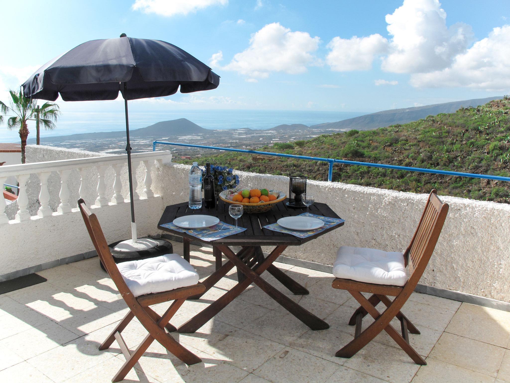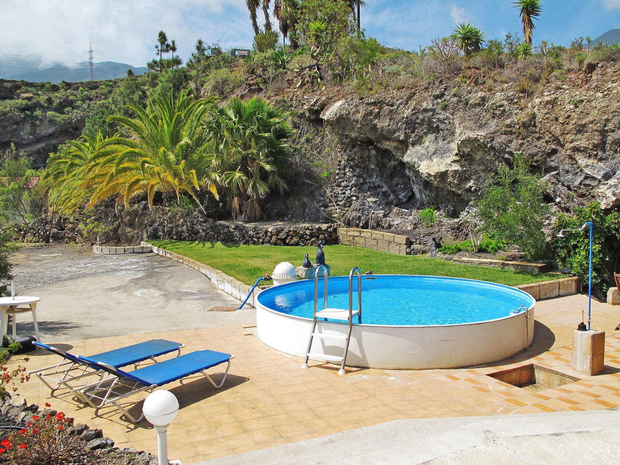 Apartment house "El Jardín en Cuevecitas", 500 m a.s.l.. 5 apartments in the property. In the district of Cuevecitas 6 km from the centre of Candelaria, 30 km from the centre of Santa Cruz, 51 km from the centre of Puerto de la Cruz, on a slope, 6 km from the sea. For shared use: natural state property 5'000 m2 with lawn and trees, swimming pool (above ground) round (4.50 m diameter, depth 140 - 140 cm, seasonal availability: 01.Jan. - 31.Dec.). Outdoor shower, barbecue. In the house: washing machine (for shared use). Parking on the premises. Shop 6 km, restaurant 1 km, bus stop "Luis Otazo Marrero" 2.6 km, sandy beach 6 km. Please note: car recommended. The owner lives in the same residence.