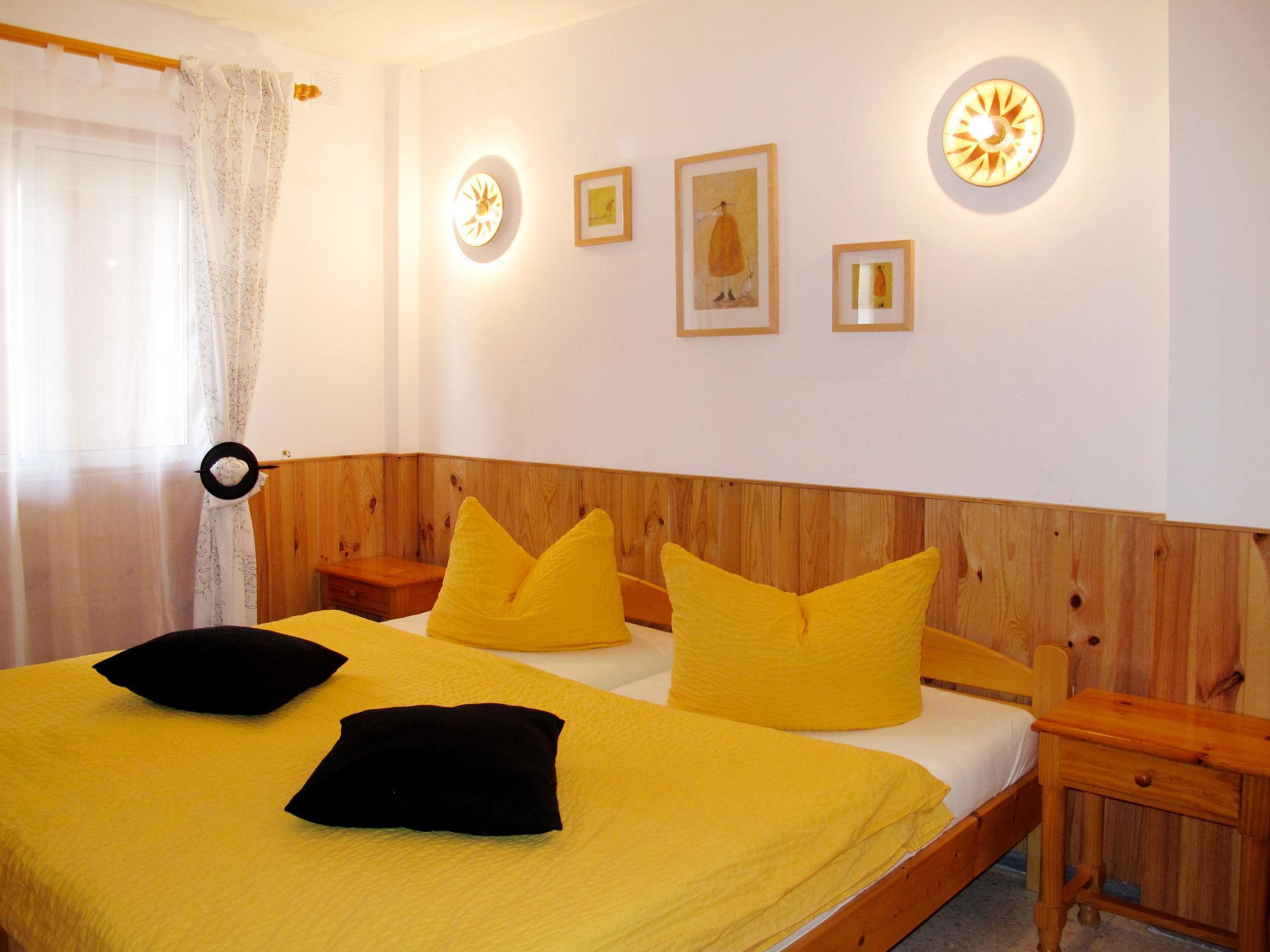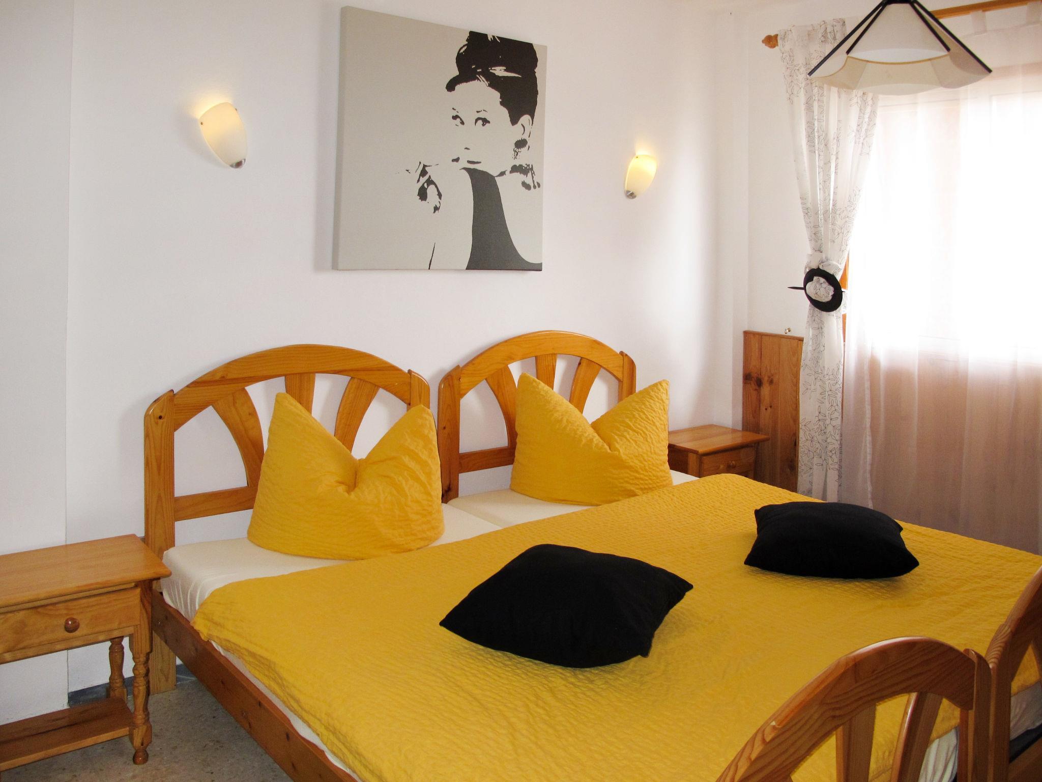 "Cuevecitas", 3-room apartment 70 m2 on 1st floor. Practical and tasteful furnishings: living/dining room with dining table, satellite TV, radio, CD-player, DVD and gas heater. Exit to the terrace. 1 room with 2 beds (length 200 cm), shower/WC. 1 room with 2 beds (length 200 cm). Open kitchen (2 hot plates, 2 gas rings, toaster, kettle, freezer, electric coffee machine). Shower/WC. No heating option. Terrace 80 m2. Terrace furniture. View of the sea. Facilities: baby cot. Internet (WiFi, free). Please note: non-smokers only. A-38/4.47900