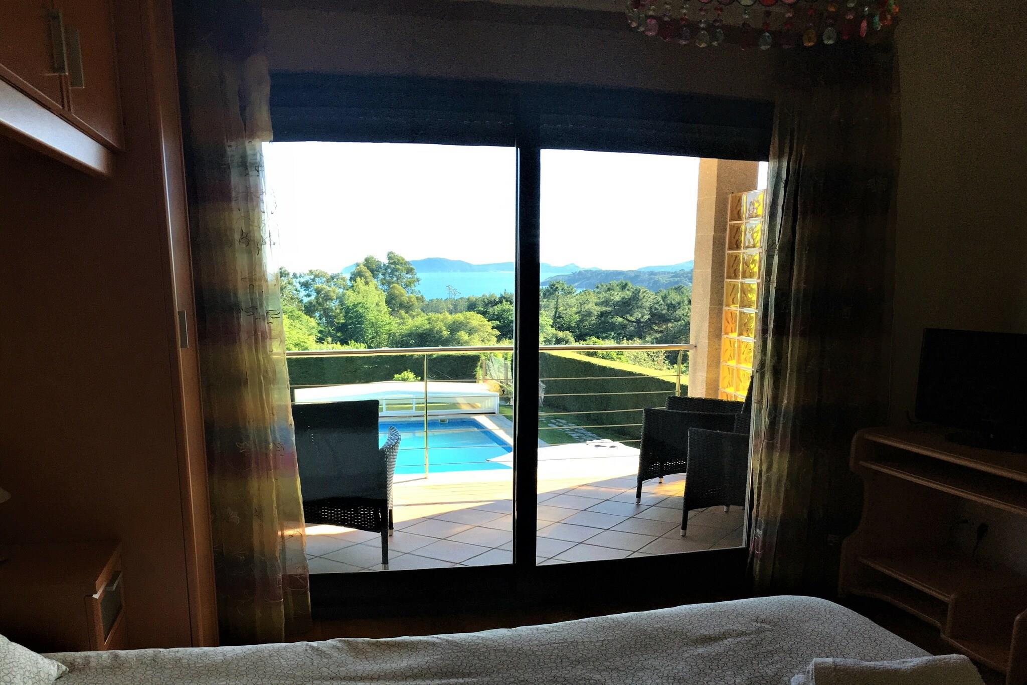 Kystkomfort Beliggende mellem Ría de Vigo og Ría de Pontevedra, tilbyder denne indbydende duplex-lejlighed en afslappet base kun 400 meter fra det gyldne sand i Playa de Viñó og Playa de Barra. Med egen indgang og privat planløsning på to etager er boligen velegnet til familier, der søger komfort og bekvemmelighed. Stueetagen åbner ind i en lys opholdsstue og fuldt udstyret køkken, med franske døre, der fører til haven og fælles pool, perfekt til en forfriskende svømmetur efter en dag på stranden. Afslappede opholdsrum Ovenpå giver to hyggelige soveværelser og et moderne badeværelse afslappende rum til at slappe af. Hjemmet er gennemtænkt designet med Wi-Fi, varme og privat parkering, hvilket gør længere ophold nemt. En terrasse med havemøbler og en grill byder på et dejligt sted til alfresco-måltider, mens den fælles pool og udendørsarealer skaber et roligt tilflugtssted. Uanset om du ønsker at genoplade efter en aktiv dag eller nyde rolige morgener med en kop kaffe, balancerer lejligheden komfort med enkelhed. Strande og smag Fra solbeskinnede strande i gåafstand til vandsport, ridning og bådudlejning i nærheden er området fyldt med muligheder for både eventyr og afslapning. Landsbyen Hío ligger kun 2 km væk, og Cangas de Morrazo, 6 km derfra, byder på supermarkeder, butikker og livlige markeder. Lokale restauranter inden for gåafstand serverer frisk galicisk fisk og skaldyr og regionale vine, hvilket gør spisning til et højdepunkt på dit ophold.