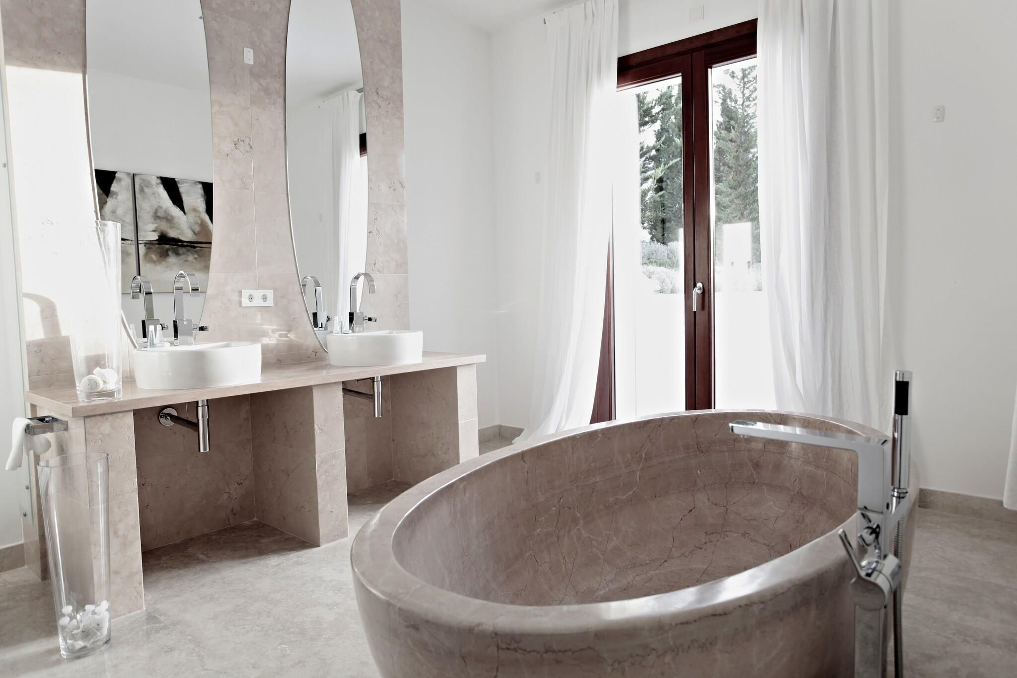 Stueetage: (entre, sofastue, Køkken(kogeplade, elkedel, brødrister, kaffemaskine, ovn, mikrobølgeovn, køle-fryseskab), stue / spisestue(Fjernsyn(parabol), spisebord(6 personer), sofahjørne), toilet, vaskerum , bryggers, klimaanlæg, terrasse(overdækket)) På 1. etage: (Soveværelse med badeværelse(dobbeltseng, badekar, bruser, 2x håndvask, toilet, bidet), Soveværelse med badeværelse(dobbeltseng, bruser, håndvask, toilet, bidet), Soveværelse med badeværelse(dobbeltseng, badekar, bruser, 2x håndvask, toilet, bidet), Repos, klimaanlæg) bruser(udendørs), have(indhegnet, anlagt have), havemøbler, solstole, parkering, Parasol, swimmingpool(privat, 9 x 5 m.)