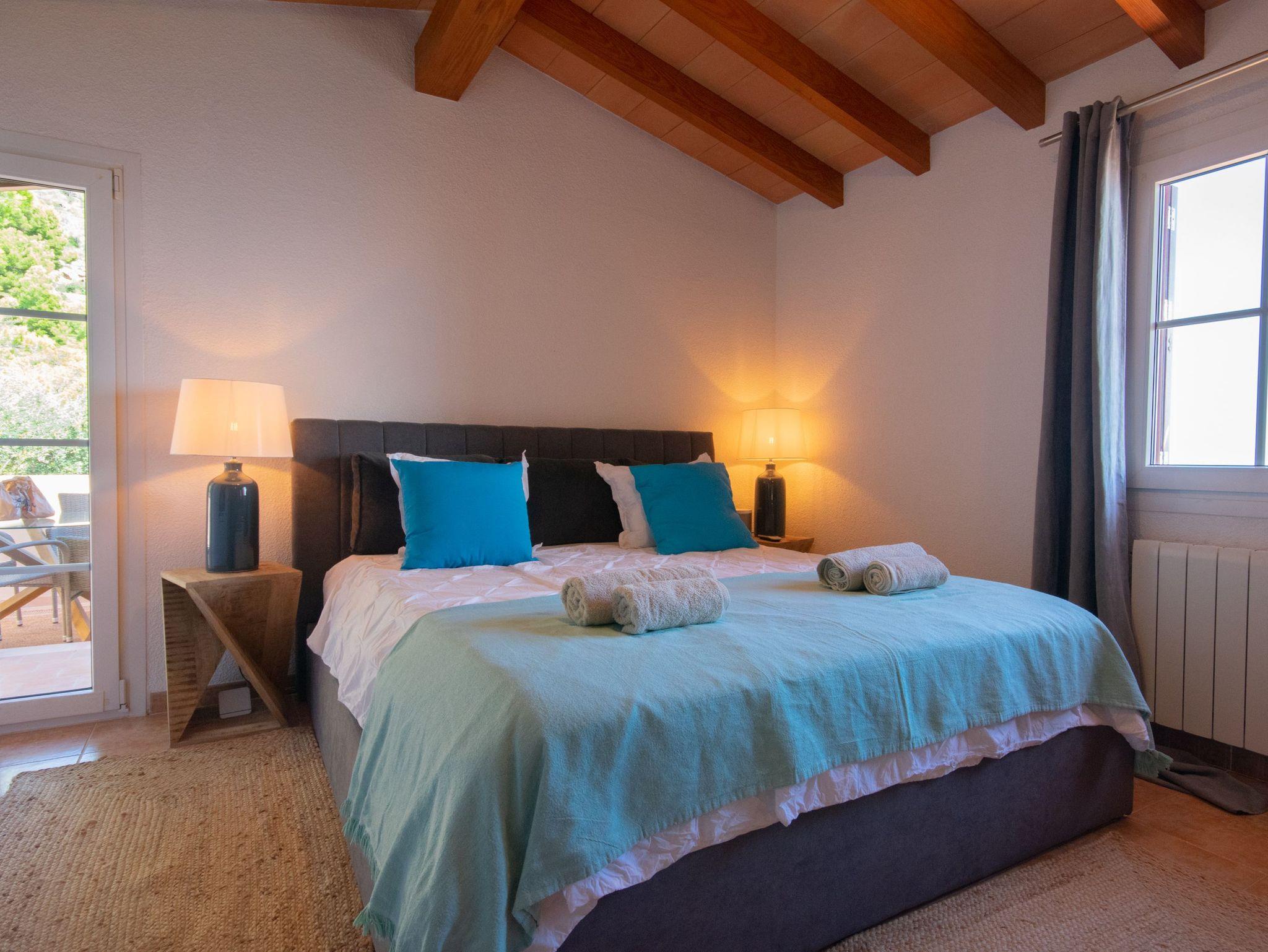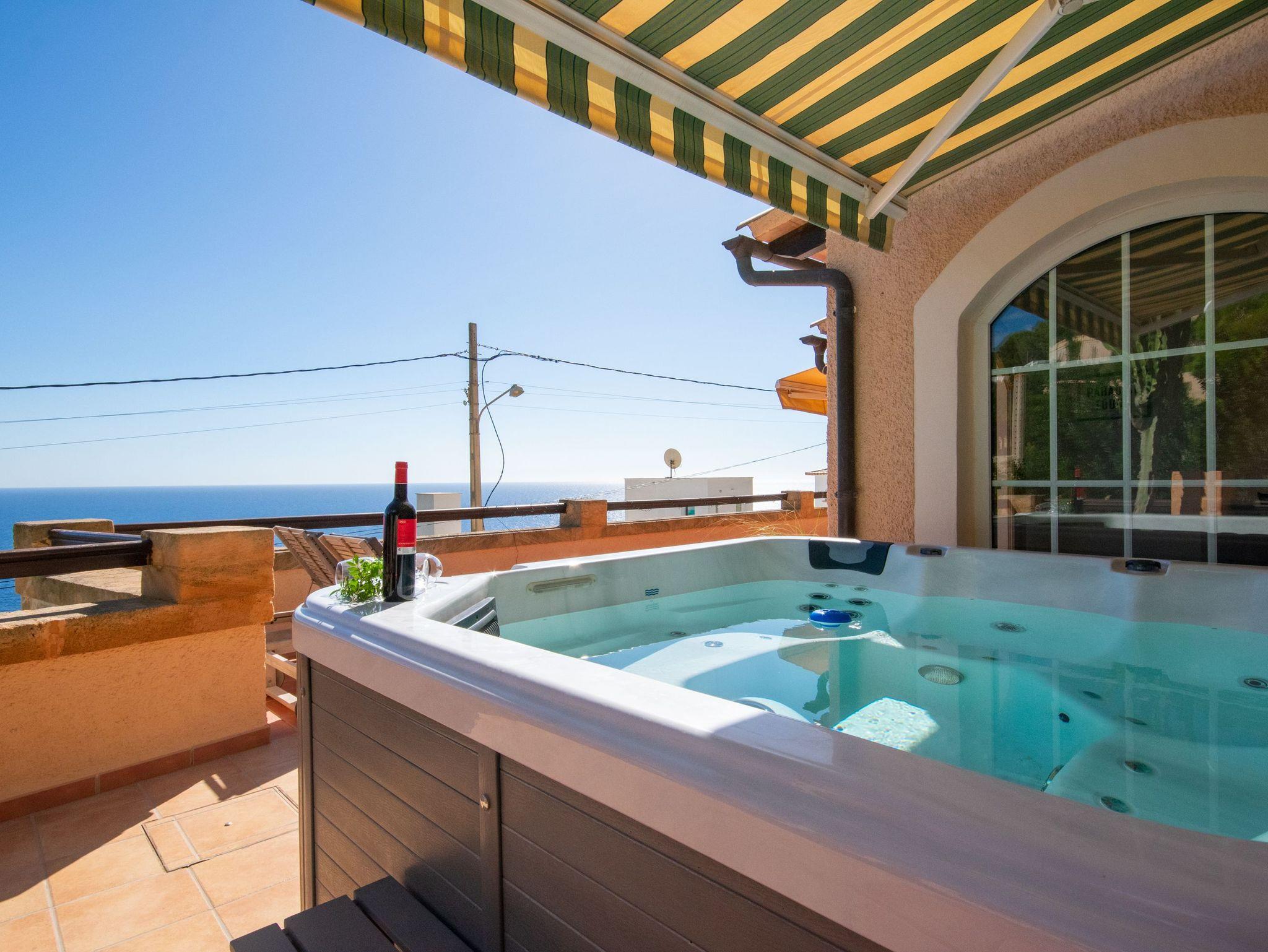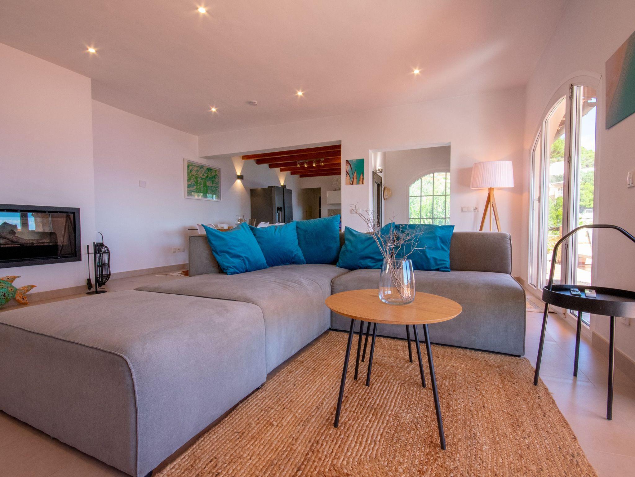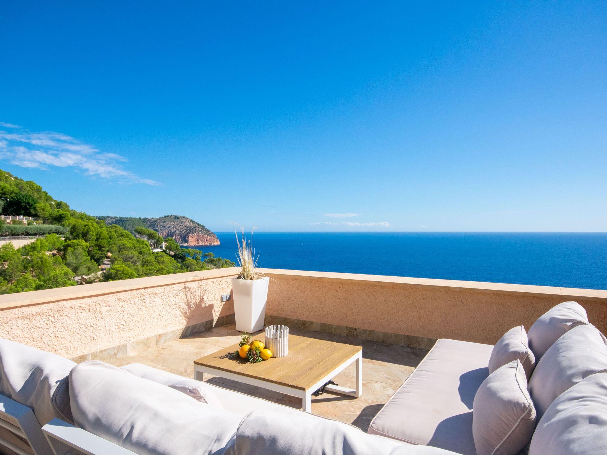 Die Villa verfügt über drei gut verteilte Schlafzimmer: eines im Erdgeschoss mit einem Doppelbett und eigenem Bad für Privatsphäre und Komfort und zwei im Obergeschoss, die sich ein Bad mit Dusche teilen. Das Hauptschlafzimmer ist besonders hervorzuheben, da es Zugang zu einer privaten Terrasse bietet, von der aus man eine außergewöhnliche Aussicht genießen kann. Die Badezimmer der Villa haben ein elegantes und modernes Design mit großzügigen Duschen und hochwertigen Oberflächen, die ein entspannendes und anspruchsvolles Ambiente schaffen. Darüber hinaus ist das Haus mit fortschrittlicher Technologie ausgestattet, wie Glasfaser-Internet, Bluetooth-Lautsprechern und Satellitenfernsehen, so dass die Gäste während ihres Aufenthalts immer in Verbindung bleiben und unterhalten werden.Das Juwel der Villa ist jedoch der atemberaubende Außenbereich. Mit seinen fünf Terrassen, die sich über mehrere Ebenen erstrecken und alle Meerblick bieten, ist er der perfekte Ort, um sich zu entspannen, im Freien zu speisen oder einfach die Landschaft zu bewundern. Für ein noch luxuriöseres Erlebnis können Sie gegen einen Aufpreis von 150 € den Jacuzzi nutzen, der Ihren Aufenthalt noch entspannender macht.