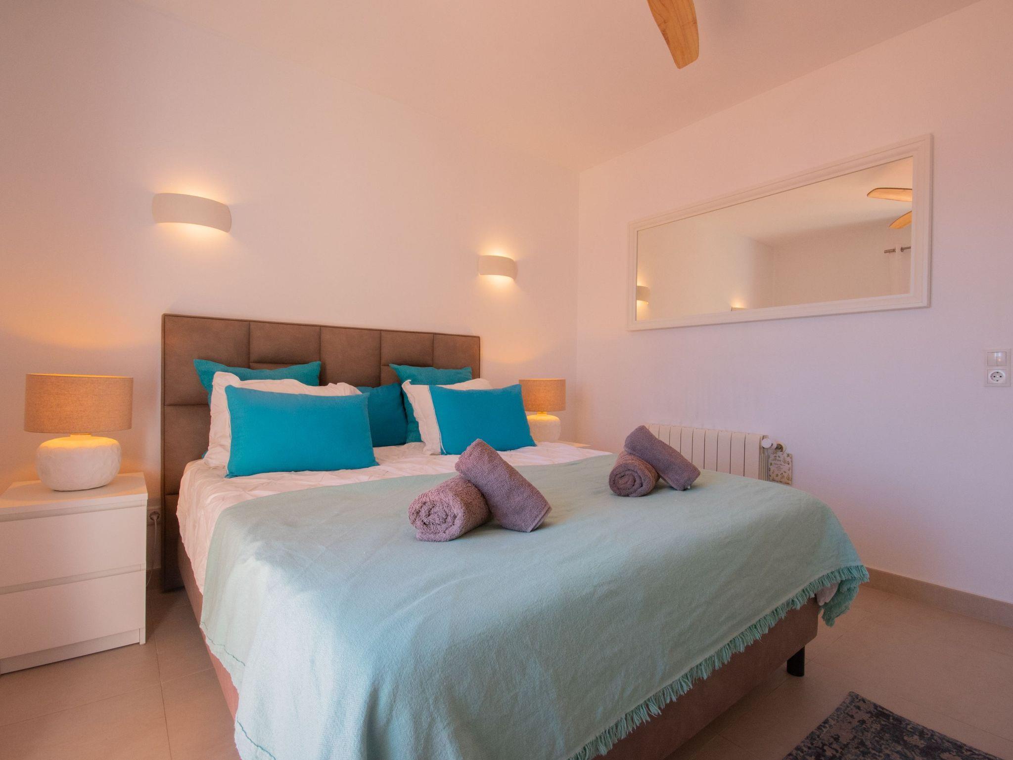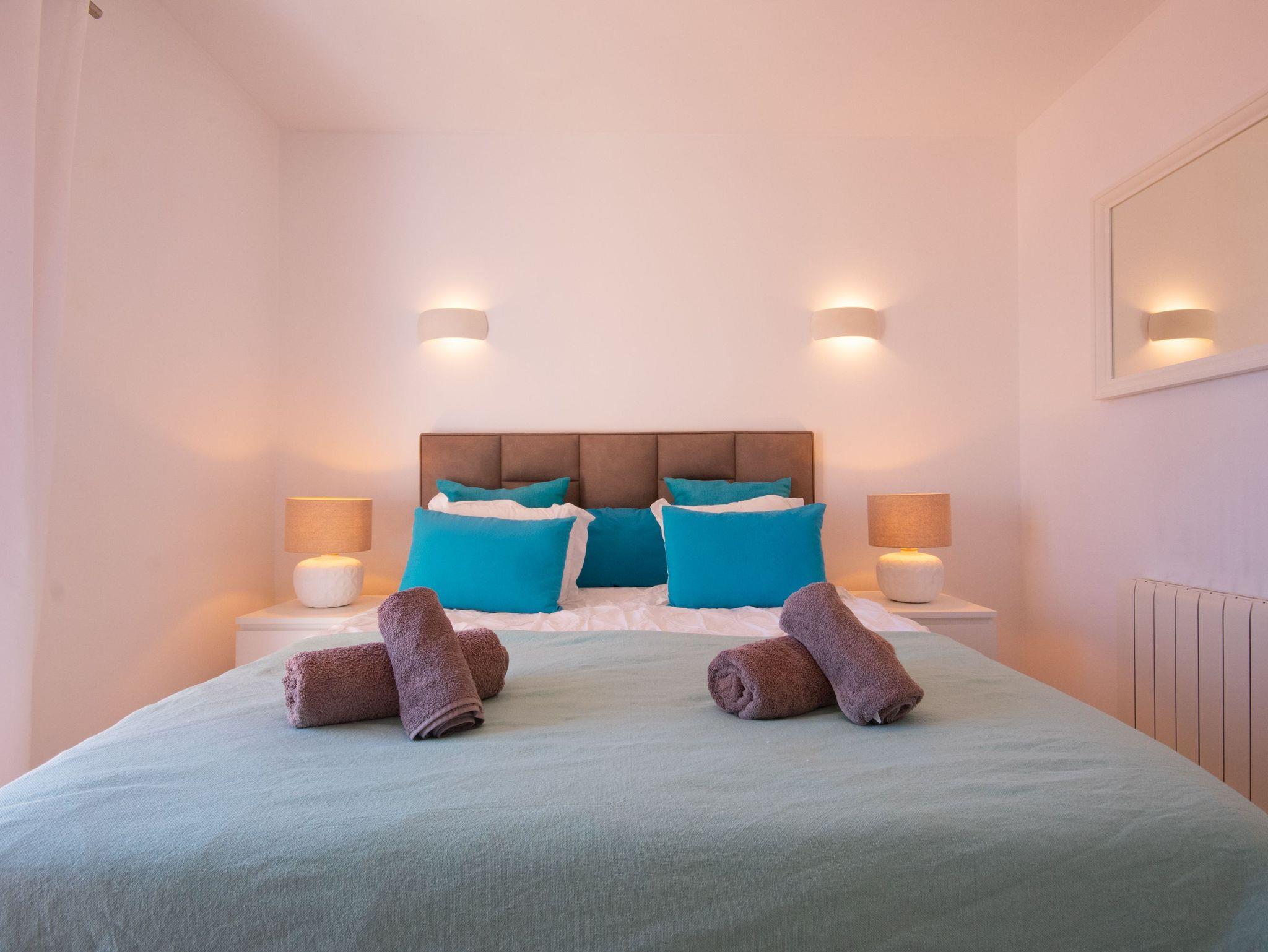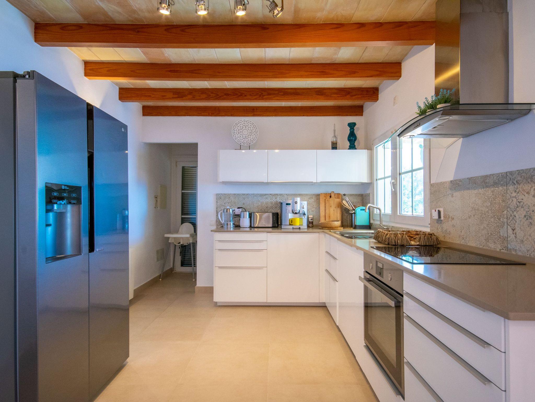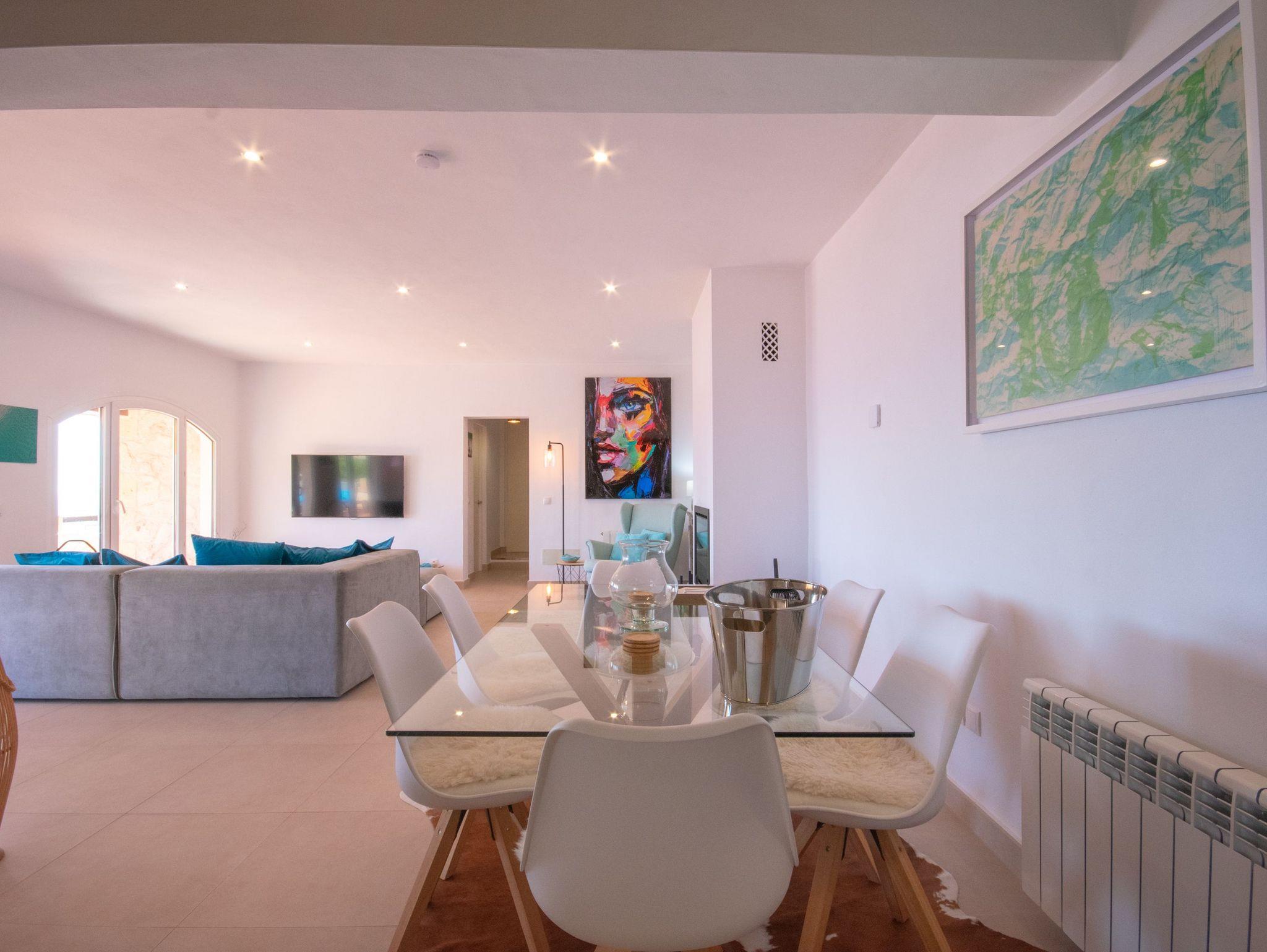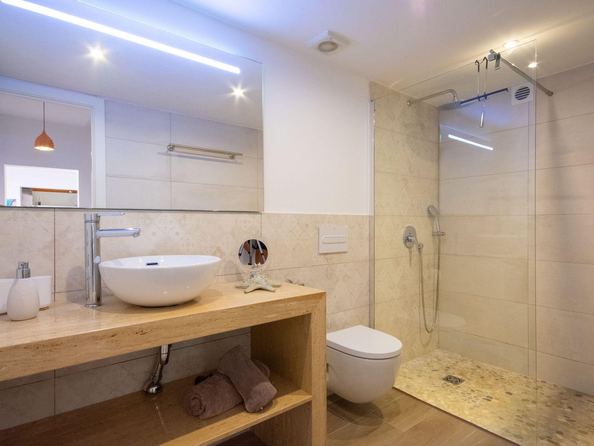 Die Villa verfügt über drei gut verteilte Schlafzimmer: eines im Erdgeschoss mit einem Doppelbett und eigenem Bad für Privatsphäre und Komfort und zwei im Obergeschoss, die sich ein Bad mit Dusche teilen. Das Hauptschlafzimmer ist besonders hervorzuheben, da es Zugang zu einer privaten Terrasse bietet, von der aus man eine außergewöhnliche Aussicht genießen kann. Die Badezimmer der Villa haben ein elegantes und modernes Design mit großzügigen Duschen und hochwertigen Oberflächen, die ein entspannendes und anspruchsvolles Ambiente schaffen. Darüber hinaus ist das Haus mit fortschrittlicher Technologie ausgestattet, wie Glasfaser-Internet, Bluetooth-Lautsprechern und Satellitenfernsehen, so dass die Gäste während ihres Aufenthalts immer in Verbindung bleiben und unterhalten werden.Das Juwel der Villa ist jedoch der atemberaubende Außenbereich. Mit seinen fünf Terrassen, die sich über mehrere Ebenen erstrecken und alle Meerblick bieten, ist er der perfekte Ort, um sich zu entspannen, im Freien zu speisen oder einfach die Landschaft zu bewundern. Für ein noch luxuriöseres Erlebnis können Sie gegen einen Aufpreis von 150 € den Jacuzzi nutzen, der Ihren Aufenthalt noch entspannender macht.