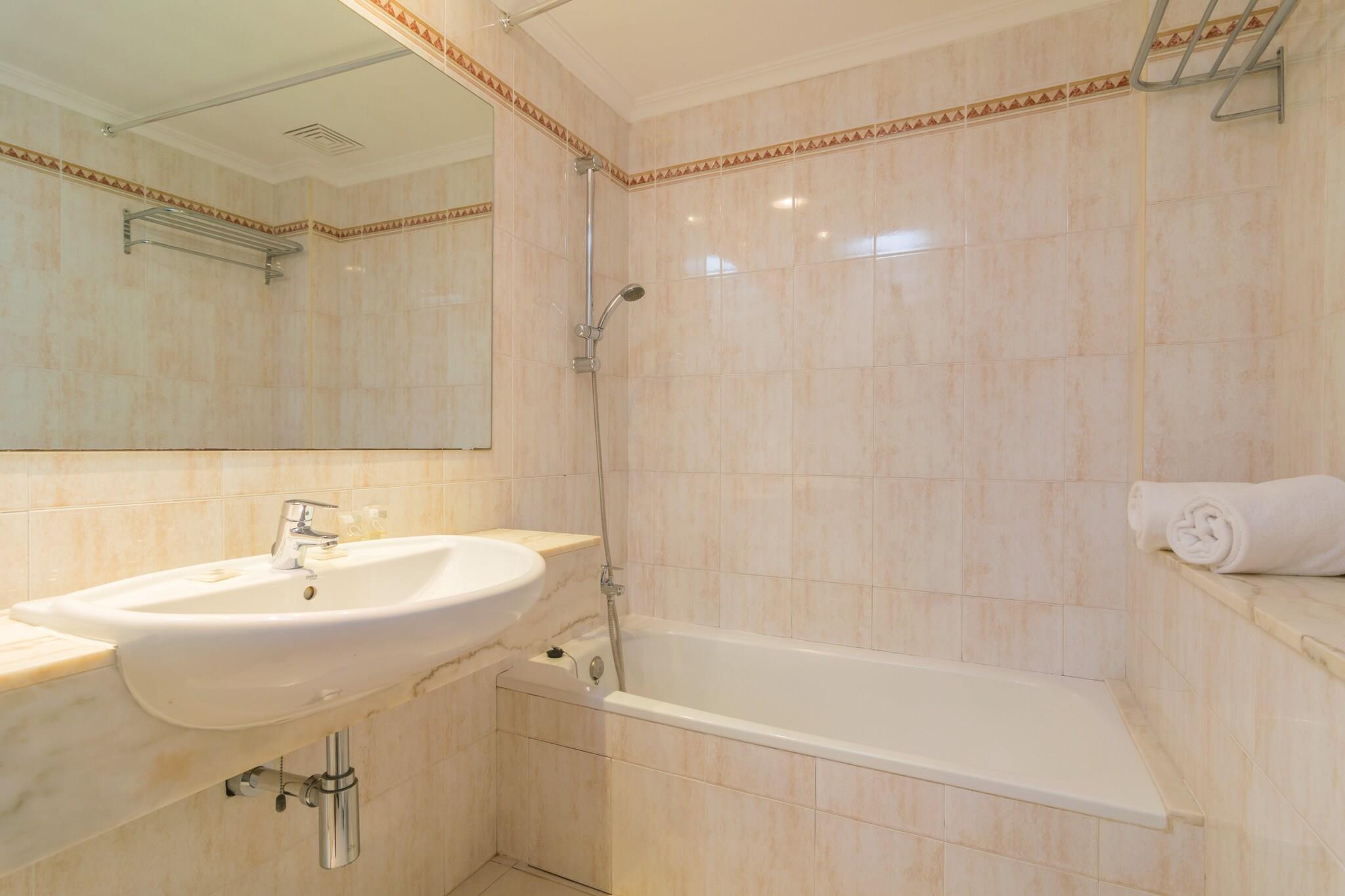 Stue(enkeltsovesofa), Køkken(komfur, kaffemaskine, mikrobølgeovn), soveværelse(2x enkeltseng), soveværelse(enkeltseng, enkeltseng), badeværelse, køle-fryseskab, badekar, håndvask, toilet, klimaanlæg, klimaanlæg, barneseng, barnestol