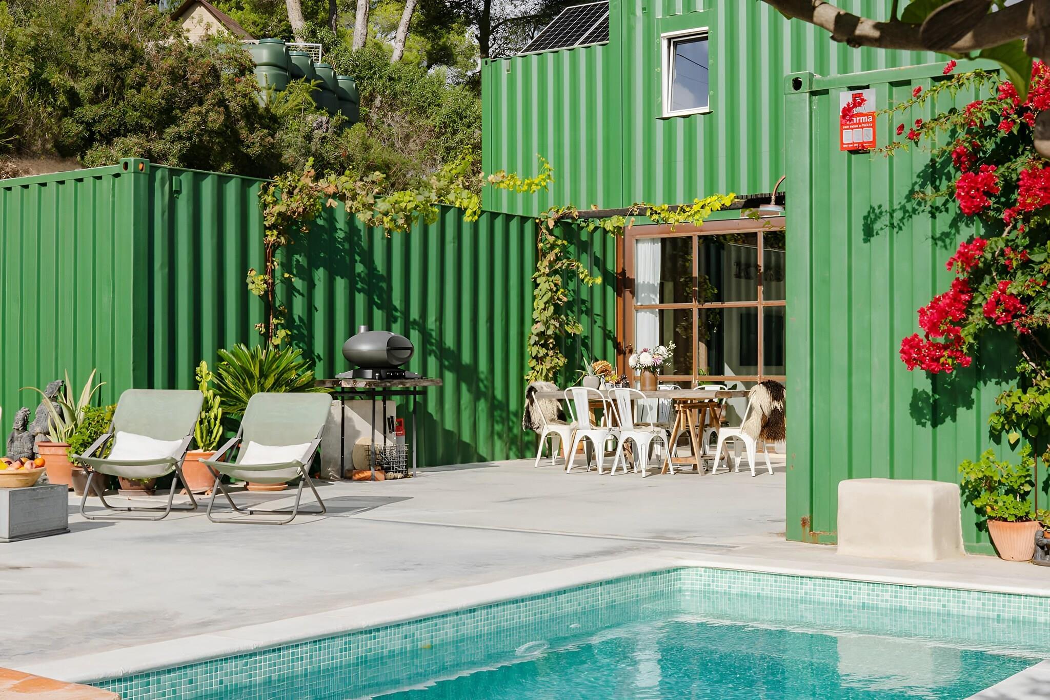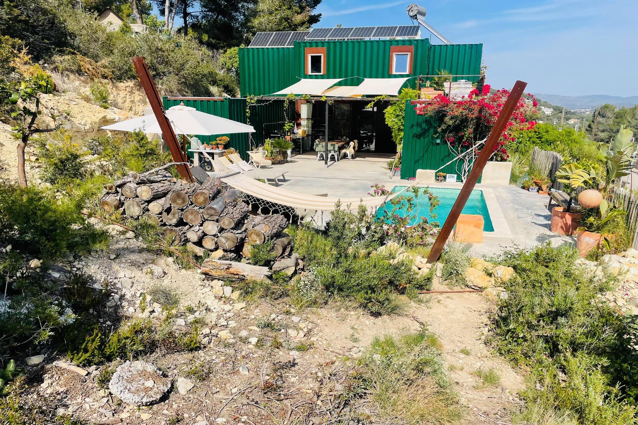 Flygt til et helt unikt tilflugtssted og nyd et uforglemmeligt ophold med din elskede, venner eller familie i dette rummelige og bæredygtige designercontainerhus. Ideelt beliggende kun 30 minutter fra Barcelona-El Prat Lufthavn og kun 15 minutter fra den pulserende kystby Sitges, tilbyder det den perfekte balance mellem afslapning, privatliv og kystcharme. Dette slående hus på 115 m² er bygget af fire sammenhængende skibscontainere og blander dristig industriel arkitektur med varmt og indbydende interiør. Det er fordelt på to etager og har tre stilfulde soveværelser, lyse, åbne opholdsrum og en balkon med smuk havudsigt. Det sande højdepunkt er det generøse udendørsområde - din egen private middelhavsoase. Slap af ved saltvandspoolen, slap af i saunaen, saml dig omkring bålstedet under stjernerne, eller nyd lange sommeraftener på terrassen. Dette udendørsområde er designet til både forbindelse og ro og inviterer dig til at sætte farten ned og nyde hvert øjeblik. Selv på de varmeste sommerdage forbliver huset vidunderligt køligt og behageligt, hvilket gør det til en perfekt flugt året rundt. Moderne, kreativ og fuld af karakter. Dette unikke kystnære gemmested sætter scenen for uforglemmelige ferier i Spanien. Bemærk venligst: Swimmingpoolen er ikke sikret, og ejendommen er derfor ikke egnet til små børn.