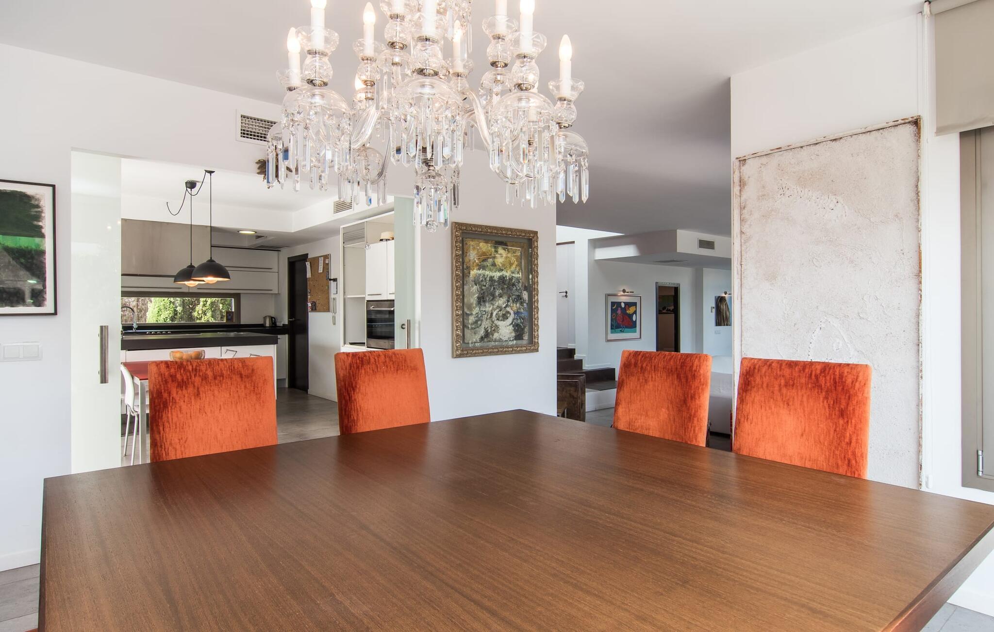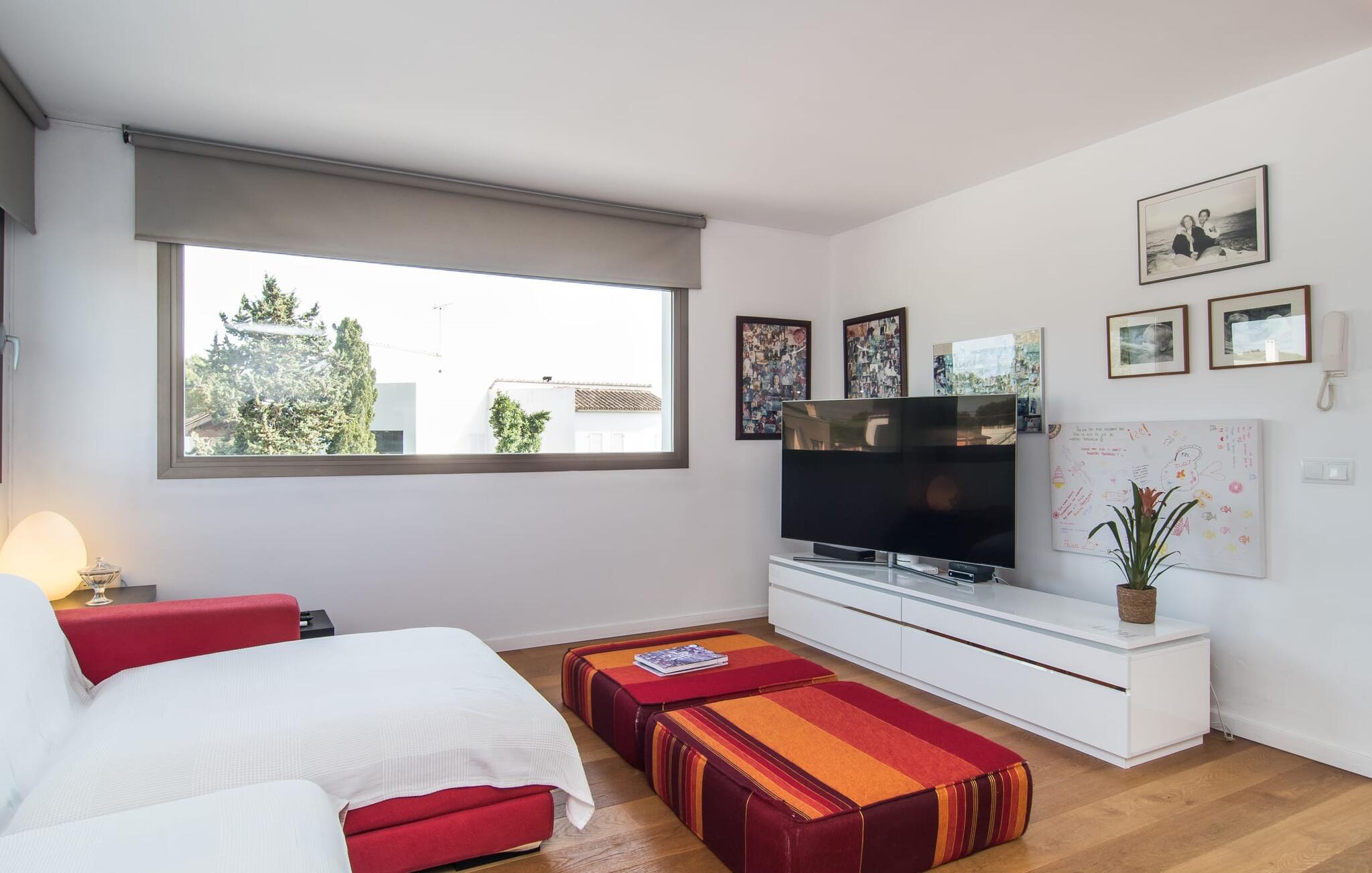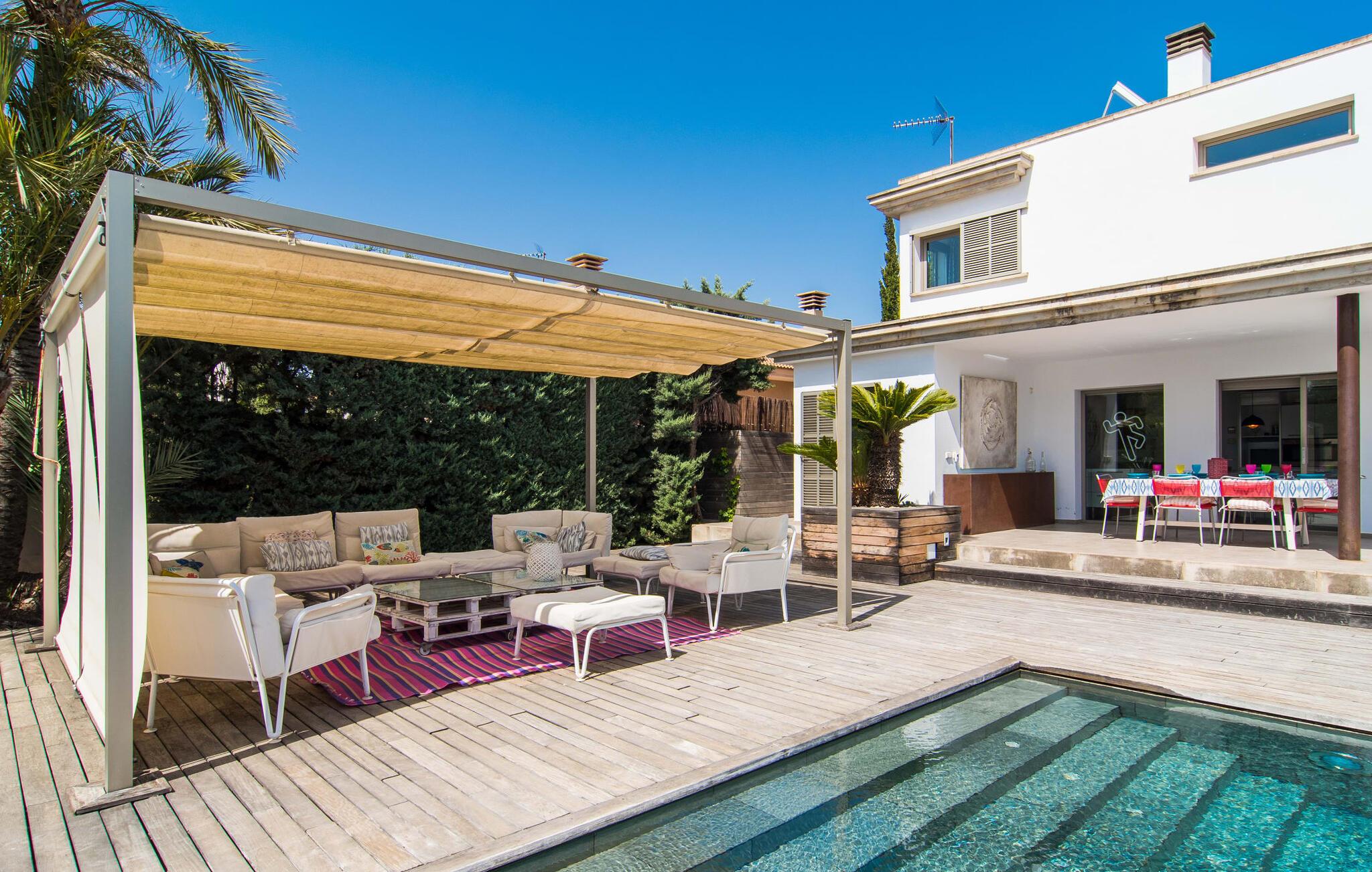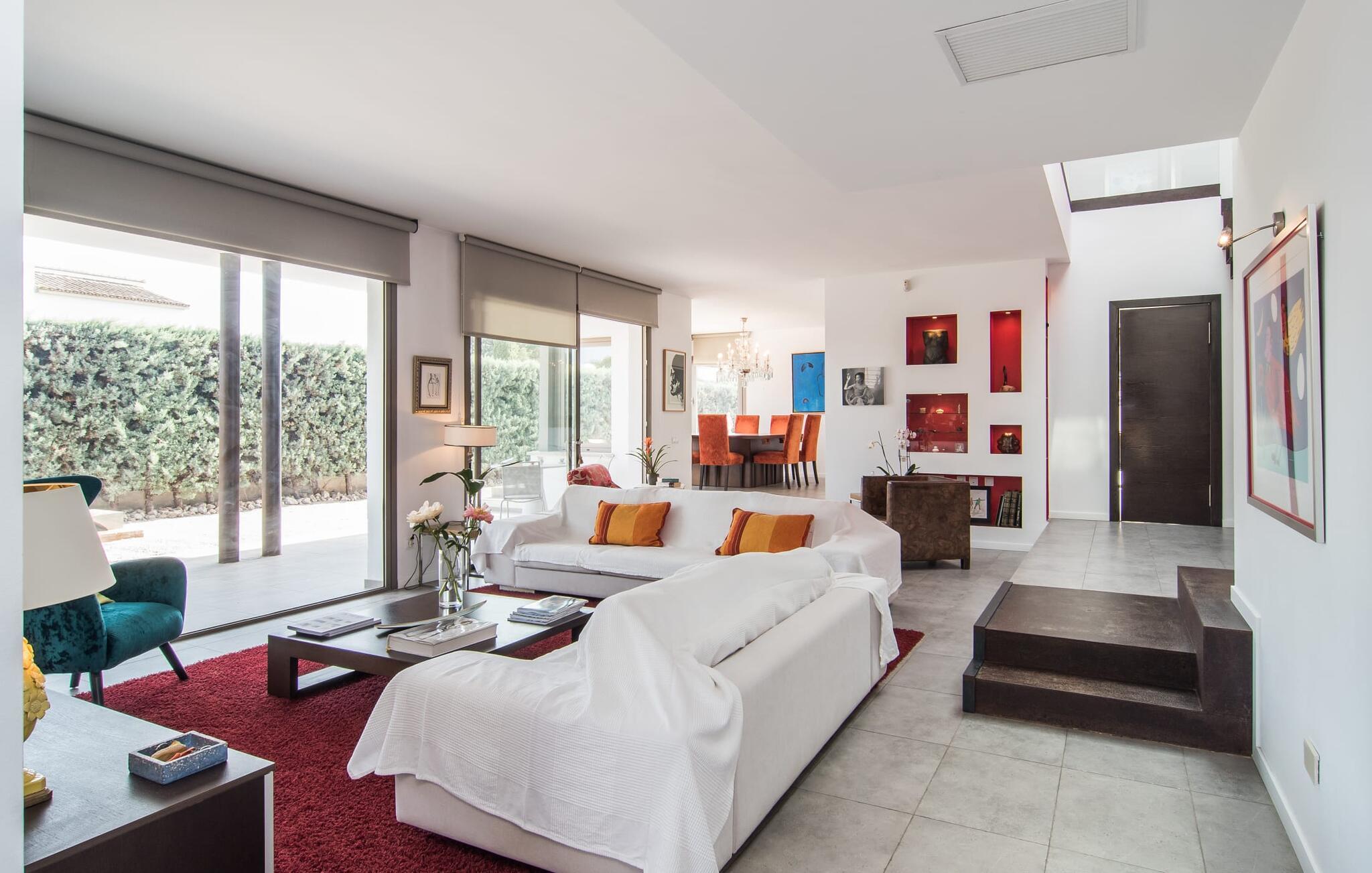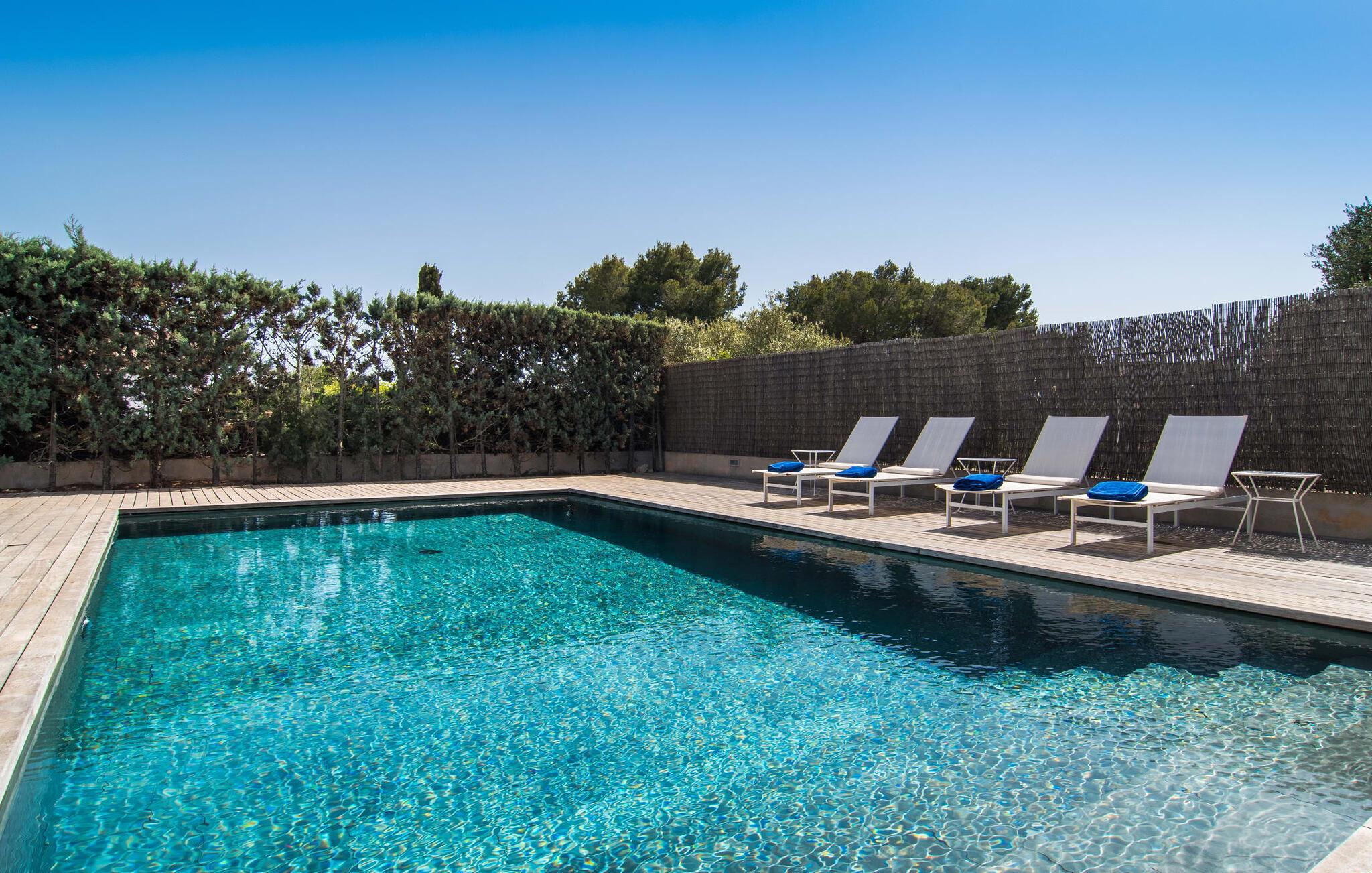 Vi er glade for at kunne præsentere jer for dette helt enestående feriehus; Ikke alene imponerede den os fuldstændig på alle måder, den er også fuldstændig uovertruffen med hensyn til originalitet og luksuriøs stemning. Enhver, der vægter komfort og æstetik højt på ferien, vil finde denne ejendom yderst attraktiv, især hvis nærhed til stranden og gode forbindelser til øens infrastruktur er vigtige for dem. Villa "Cap d'Olla" opfylder alle disse krav på den mest behagelige måde, man kan forestille sig. Beliggende på en smuk hjørnegrund i en boligbebyggelse og omgivet af hække og cypresser, bare ved at kigge på uderummet kan I se, at dette sted byder på nogle gode muligheder for en eksklusiv bolig. Foran huset strækker en overdækket terrasse sig mod poolen; Det er en dejlig ramme for al fresco spisning. Der er plads nok ved det hvide spisebord, så alle i jeres gruppe kan spise sammen når som helst på dagen. Herfra fører kun to trin ned til poolen, som er helt omgivet af en skøn træterrasse. Under en baldakin finder I et dejligt udendørs loungeområde med komfortable hvide sofaer og lænestole samt et stilfuldt glasbord og forsendelsespaller; Forkæl jer selv med lidt luksus, mens I sidder herude med en kølig drink i hånden og kigger ud over poolens glitrende turkise vand. Det lette tag er også justerbart, så I selv kan bestemme, hvor meget tid I vil bruge i solen eller i skyggen. Poolen, der er foret med usædvanligt store fliser, tilbyder unge og gamle et dejligt sted at slappe af og køle af på varme dage. Brede trin fører blidt ned i det behagelige, hudplejende saltvand. I vil måske også have fat i en god bog at læse, mens I ligger på en af de komfortable liggestole. Mens udendørsområdet udstråler sin del af luksus, er villaens indre fyldt til randen med en atmosfære af sofistikeret elegance. Den modtagelse, der venter gæster, når de træder ind i bygningen, kan kun beskrives som betagende. Helt oversvømmet med lys og rig på stærke farver, det brede, åbne rum fanger jer og inviterer jer til straks at gå i gang med at udforske de forskellige rum. Indretningen er domineret af røde og hvide toner, som skaber en fantastisk effekt i kombination med andre accentfarver og materialer. Stuen er foret med store panoramavinduer og har et stort udvalg af utroligt komfortable sofaer i midten. Det er helt sikkert stedet, hvor I vil tilbringe det meste af jeres tid indendørs. Fuld af farver og dekoreret med alle slags kunst, er det et fremragende sted at sidde og slappe af. Uanset hvor I kigger hen, fremtryller iøjnefaldende dekorative stykker en atmosfære, der er helt unik og skaber en helt særlig visuel oplevelse. Hvis I nogensinde bliver træt af at spise udenfor, er der en spiseplads to trin over stuen, hvor I kan spise jeres måltider med stil og nyde den ekstra smag, der følger med den elegante atmosfære. Det rummelige, moderne køkken er bekvemt placeret et værelse længere væk. En central ø gør det endnu sjovere at tilberede måltider sammen, og variationen og kvaliteten af faciliteter gør dette køkken til et sandt kokkens paradis. Der er endda plads til et ekstra spisebord, hvor I kan nyde en hurtig snack sammen. I stueetagen er der også et soveværelse med eget badeværelse og et ekstra toilet. En yderst elegant flydende trappe fører til øverste etage, som er luksuriøst indrettet og har en anden stue, et stort soveværelse med en-suite badeværelse (inklusive badekar og bruser som mulighed for sauna) og yderligere to soveværelser, der deler et badeværelse mellem dem. Det fantastiske ved den anden stue er, at I kan bruge lidt alenetid væk fra jeres feriegruppe eller endda dele jer op i mindre grupper for at lave forskellige aktiviteter uden at forstyrre hinanden. Nyd en god film på fladskærms-tv'et, mens I slapper af på den store røde sofa eller på en af de farverige gulvpuder. De klimatiserede, individuelt designede og farverige værelser udstråler et strejf af ekstravagance, der gør afslapning i disse værelser til en uforlignelig oplevelse. Vi er sikre på, at alle vil finde det perfekte sted at sove her. Badeværelserne, som også har deres egen charme, har naturligt lys og er udstyret med faciliteter af høj kvalitet som hårtørrere og nok plads til alle i gruppen. Sa Ràpita, en lille fiskerby langt væk fra folkemængderne, er et godt udgangspunkt for at udforske øen og opdage det "rigtige" Mallorca. Byen grænser op til et naturreservat, og to af øens smukkeste strande ligger praktisk talt lige uden for døren: Ses Covetes og den uberørte naturstrand Es Trenc. Da en af Sa Ràpitas hovedattraktioner er yachtklubben, omfatter fritidsaktiviteter en række vandsportsaktiviteter som surfing, sejlads og dykning, men der er også masser at lave for golfspillere og vandreentusiaster. Den super stilfulde villa “Cap d'Olla” ligger i et sommerhusområde i Sa Ràpita og er omgivet af et skønt, velholdt udeområde. Indkøb af dagligvarer og andre daglige fornødenheder, restauranter ved havet og selve havet er alle inden for gåafstand. Den attraktive Platja Sa Ràpita-strand ligger kun 2 km væk, og der er flere andre smukke strande i nærheden.