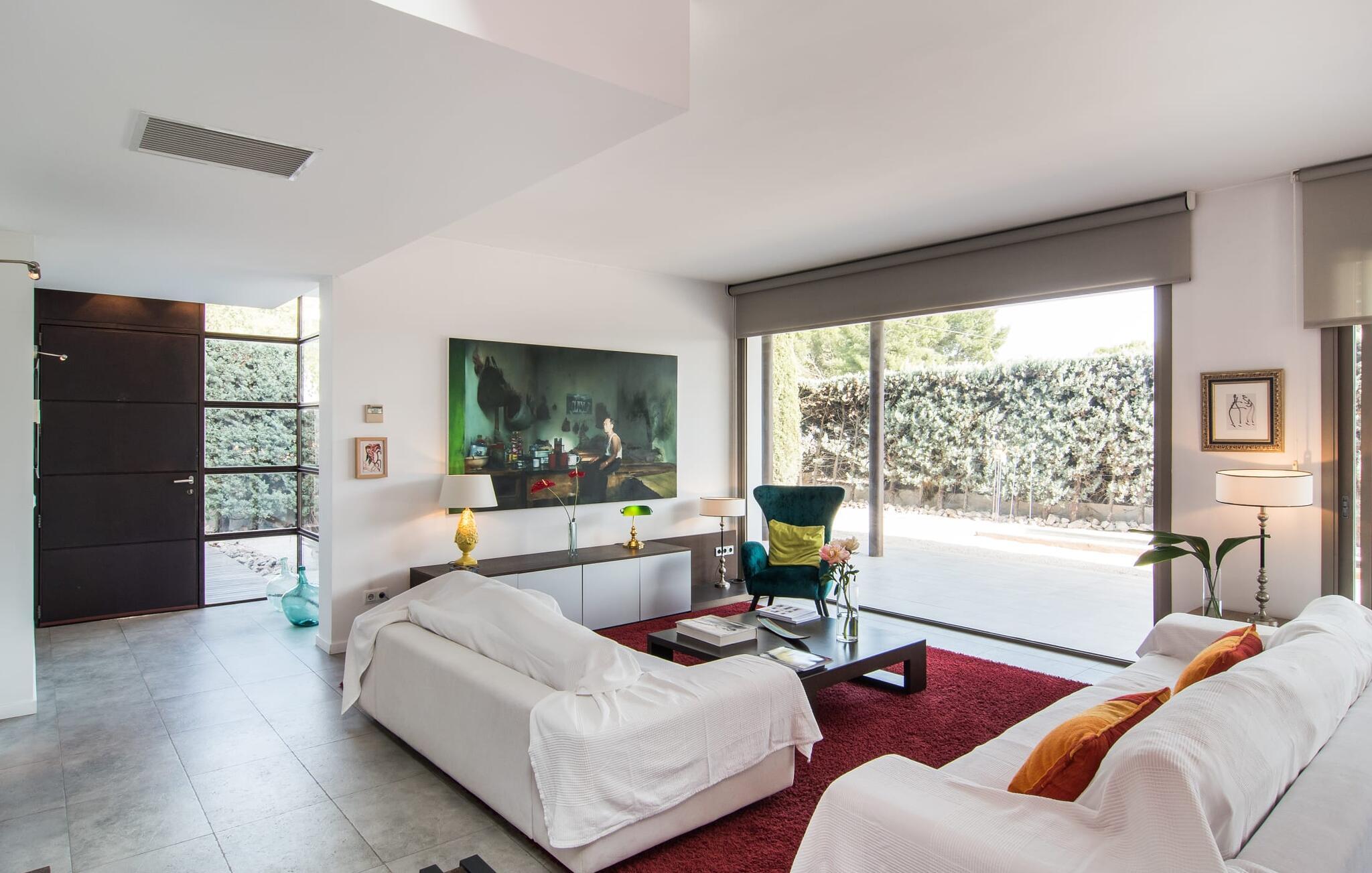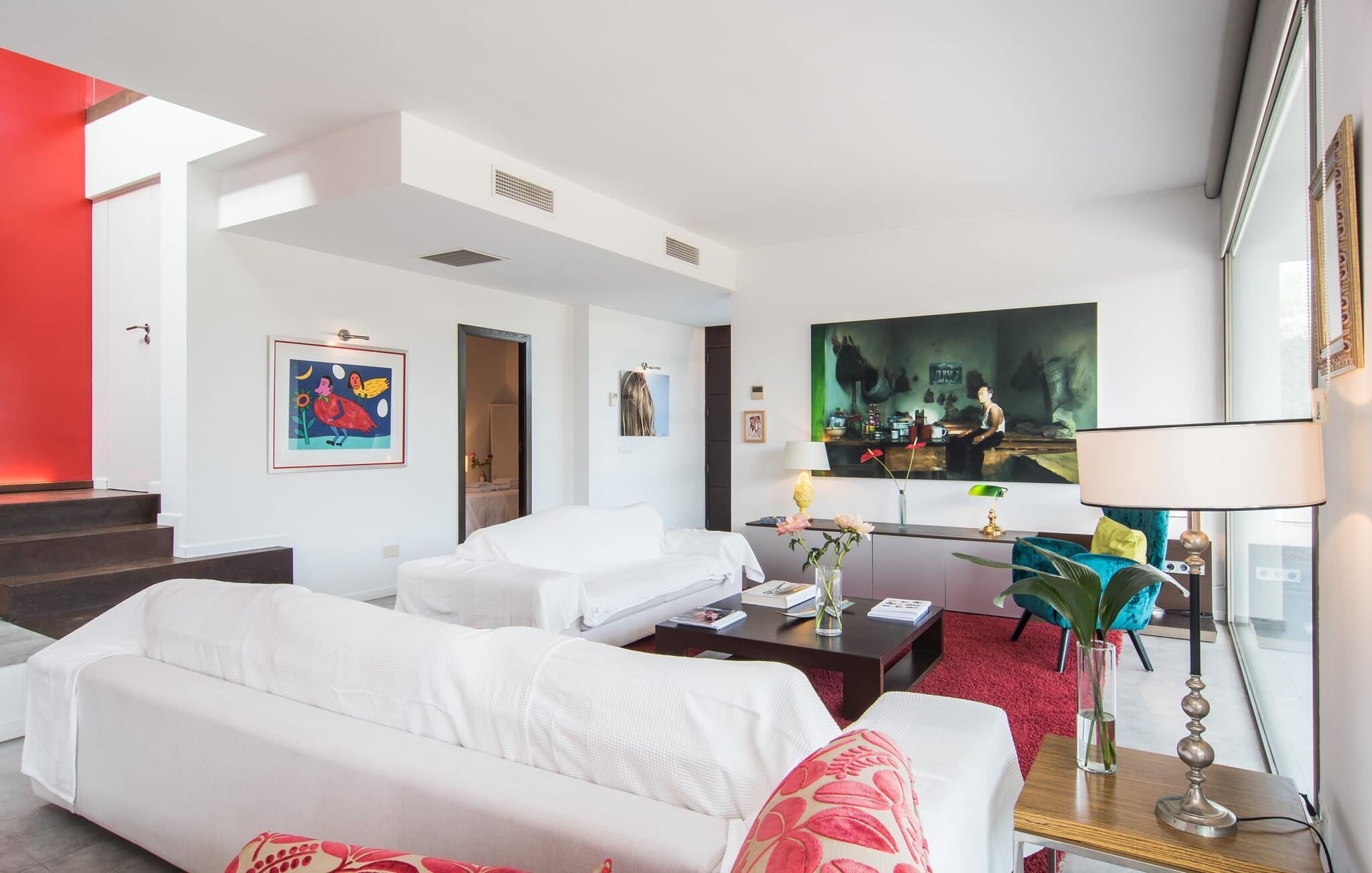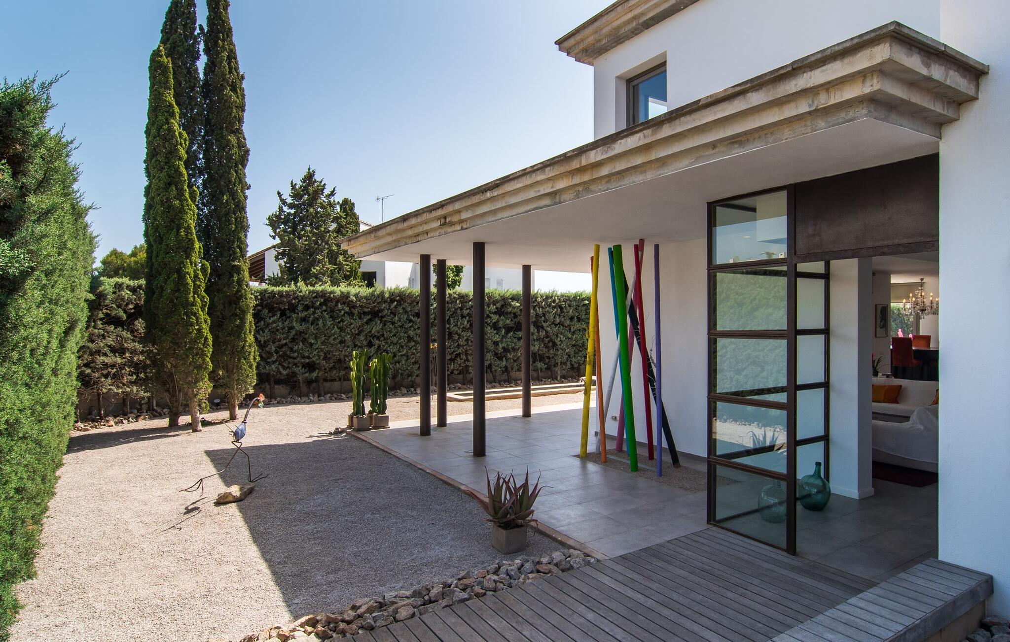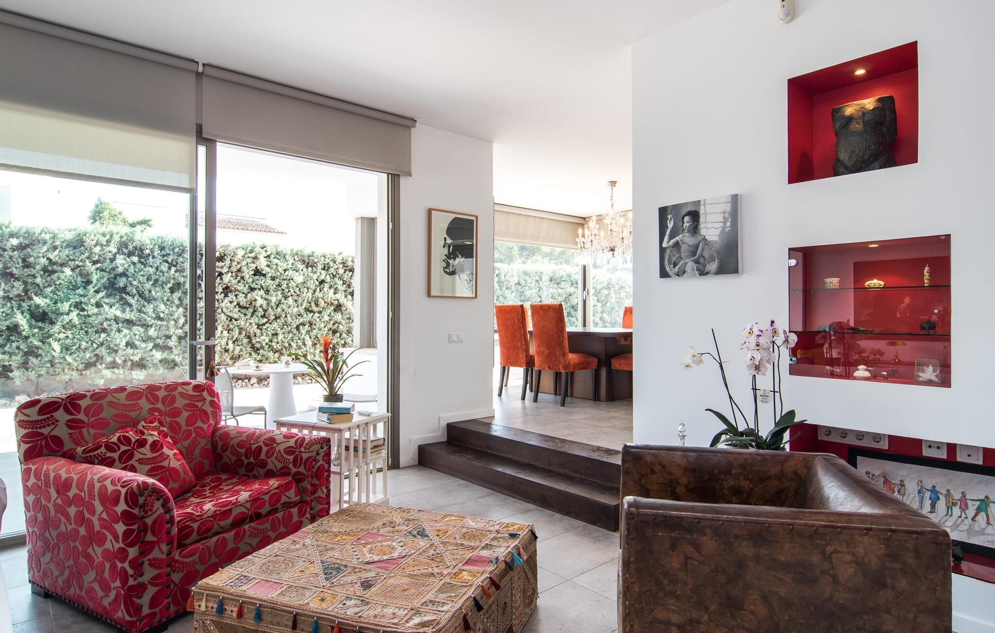 Vi er glade for at kunne præsentere jer for dette helt enestående feriehus; Ikke alene imponerede den os fuldstændig på alle måder, den er også fuldstændig uovertruffen med hensyn til originalitet og luksuriøs stemning. Enhver, der vægter komfort og æstetik højt på ferien, vil finde denne ejendom yderst attraktiv, især hvis nærhed til stranden og gode forbindelser til øens infrastruktur er vigtige for dem. Villa "Cap d'Olla" opfylder alle disse krav på den mest behagelige måde, man kan forestille sig. Beliggende på en smuk hjørnegrund i en boligbebyggelse og omgivet af hække og cypresser, bare ved at kigge på uderummet kan I se, at dette sted byder på nogle gode muligheder for en eksklusiv bolig. Foran huset strækker en overdækket terrasse sig mod poolen; Det er en dejlig ramme for al fresco spisning. Der er plads nok ved det hvide spisebord, så alle i jeres gruppe kan spise sammen når som helst på dagen. Herfra fører kun to trin ned til poolen, som er helt omgivet af en skøn træterrasse. Under en baldakin finder I et dejligt udendørs loungeområde med komfortable hvide sofaer og lænestole samt et stilfuldt glasbord og forsendelsespaller; Forkæl jer selv med lidt luksus, mens I sidder herude med en kølig drink i hånden og kigger ud over poolens glitrende turkise vand. Det lette tag er også justerbart, så I selv kan bestemme, hvor meget tid I vil bruge i solen eller i skyggen. Poolen, der er foret med usædvanligt store fliser, tilbyder unge og gamle et dejligt sted at slappe af og køle af på varme dage. Brede trin fører blidt ned i det behagelige, hudplejende saltvand. I vil måske også have fat i en god bog at læse, mens I ligger på en af de komfortable liggestole. Mens udendørsområdet udstråler sin del af luksus, er villaens indre fyldt til randen med en atmosfære af sofistikeret elegance. Den modtagelse, der venter gæster, når de træder ind i bygningen, kan kun beskrives som betagende. Helt oversvømmet med lys og rig på stærke farver, det brede, åbne rum fanger jer og inviterer jer til straks at gå i gang med at udforske de forskellige rum. Indretningen er domineret af røde og hvide toner, som skaber en fantastisk effekt i kombination med andre accentfarver og materialer. Stuen er foret med store panoramavinduer og har et stort udvalg af utroligt komfortable sofaer i midten. Det er helt sikkert stedet, hvor I vil tilbringe det meste af jeres tid indendørs. Fuld af farver og dekoreret med alle slags kunst, er det et fremragende sted at sidde og slappe af. Uanset hvor I kigger hen, fremtryller iøjnefaldende dekorative stykker en atmosfære, der er helt unik og skaber en helt særlig visuel oplevelse. Hvis I nogensinde bliver træt af at spise udenfor, er der en spiseplads to trin over stuen, hvor I kan spise jeres måltider med stil og nyde den ekstra smag, der følger med den elegante atmosfære. Det rummelige, moderne køkken er bekvemt placeret et værelse længere væk. En central ø gør det endnu sjovere at tilberede måltider sammen, og variationen og kvaliteten af faciliteter gør dette køkken til et sandt kokkens paradis. Der er endda plads til et ekstra spisebord, hvor I kan nyde en hurtig snack sammen. I stueetagen er der også et soveværelse med eget badeværelse og et ekstra toilet. En yderst elegant flydende trappe fører til øverste etage, som er luksuriøst indrettet og har en anden stue, et stort soveværelse med en-suite badeværelse (inklusive badekar og bruser som mulighed for sauna) og yderligere to soveværelser, der deler et badeværelse mellem dem. Det fantastiske ved den anden stue er, at I kan bruge lidt alenetid væk fra jeres feriegruppe eller endda dele jer op i mindre grupper for at lave forskellige aktiviteter uden at forstyrre hinanden. Nyd en god film på fladskærms-tv'et, mens I slapper af på den store røde sofa eller på en af de farverige gulvpuder. De klimatiserede, individuelt designede og farverige værelser udstråler et strejf af ekstravagance, der gør afslapning i disse værelser til en uforlignelig oplevelse. Vi er sikre på, at alle vil finde det perfekte sted at sove her. Badeværelserne, som også har deres egen charme, har naturligt lys og er udstyret med faciliteter af høj kvalitet som hårtørrere og nok plads til alle i gruppen. Sa Ràpita, en lille fiskerby langt væk fra folkemængderne, er et godt udgangspunkt for at udforske øen og opdage det "rigtige" Mallorca. Byen grænser op til et naturreservat, og to af øens smukkeste strande ligger praktisk talt lige uden for døren: Ses Covetes og den uberørte naturstrand Es Trenc. Da en af Sa Ràpitas hovedattraktioner er yachtklubben, omfatter fritidsaktiviteter en række vandsportsaktiviteter som surfing, sejlads og dykning, men der er også masser at lave for golfspillere og vandreentusiaster. Den super stilfulde villa “Cap d'Olla” ligger i et sommerhusområde i Sa Ràpita og er omgivet af et skønt, velholdt udeområde. Indkøb af dagligvarer og andre daglige fornødenheder, restauranter ved havet og selve havet er alle inden for gåafstand. Den attraktive Platja Sa Ràpita-strand ligger kun 2 km væk, og der er flere andre smukke strande i nærheden.