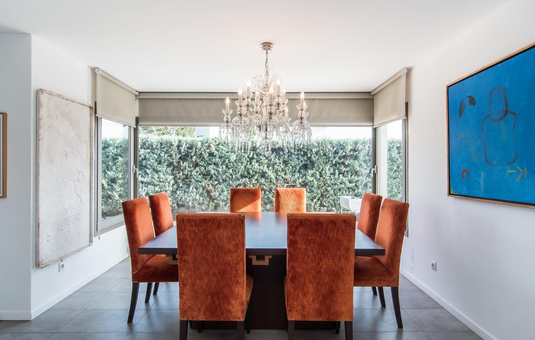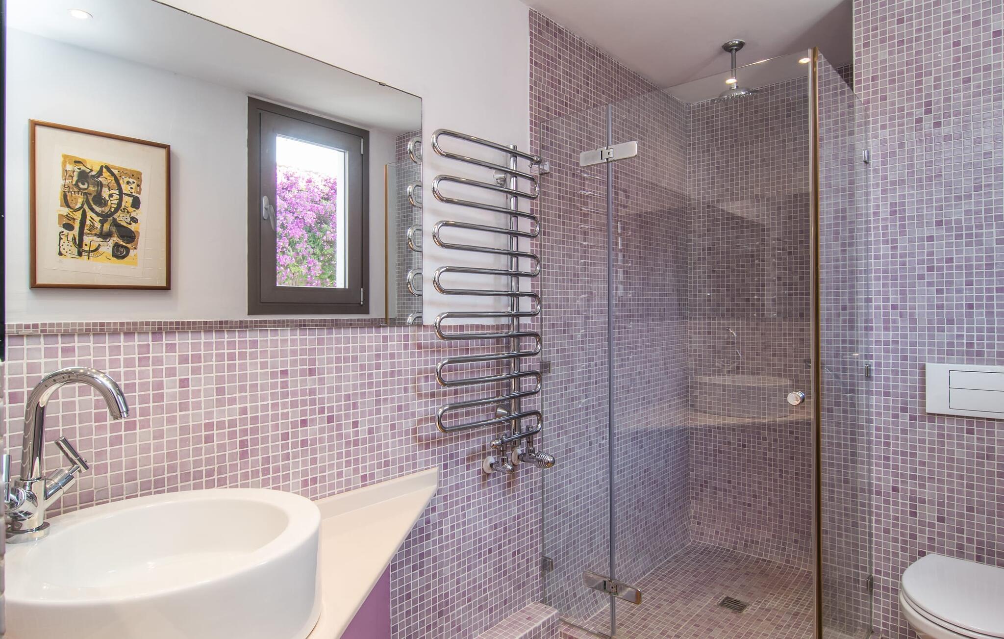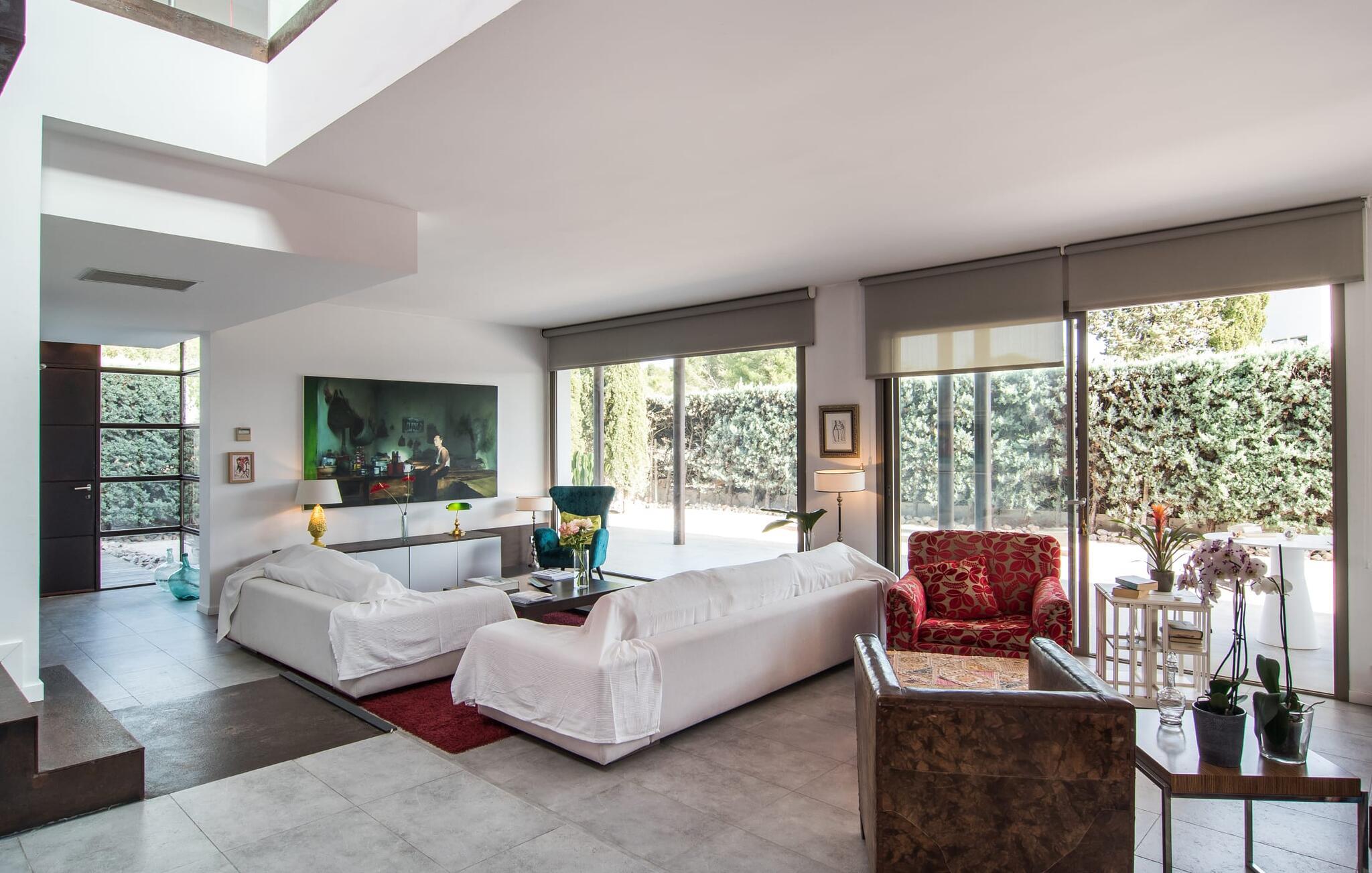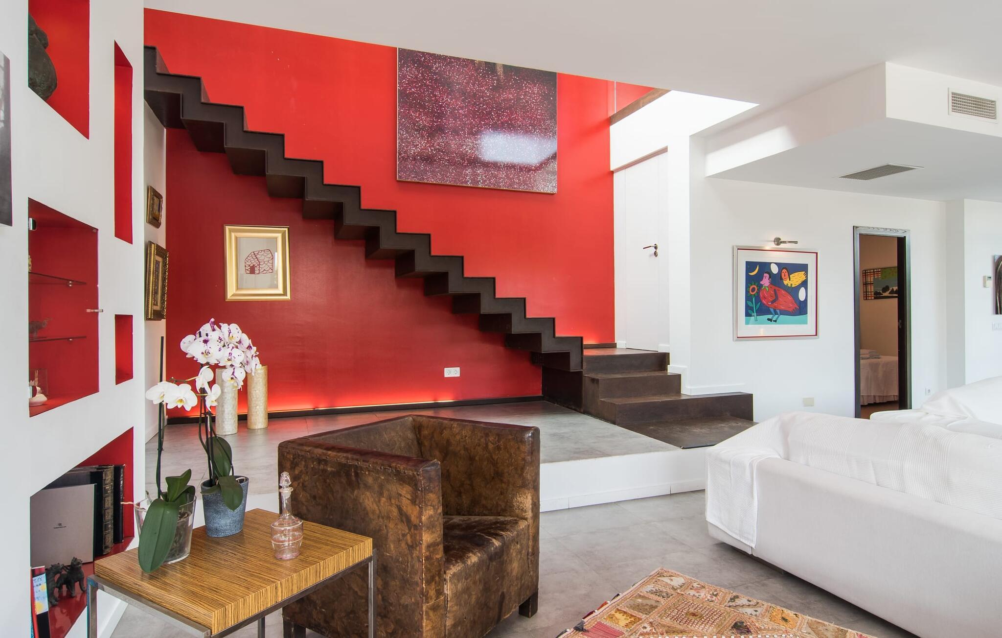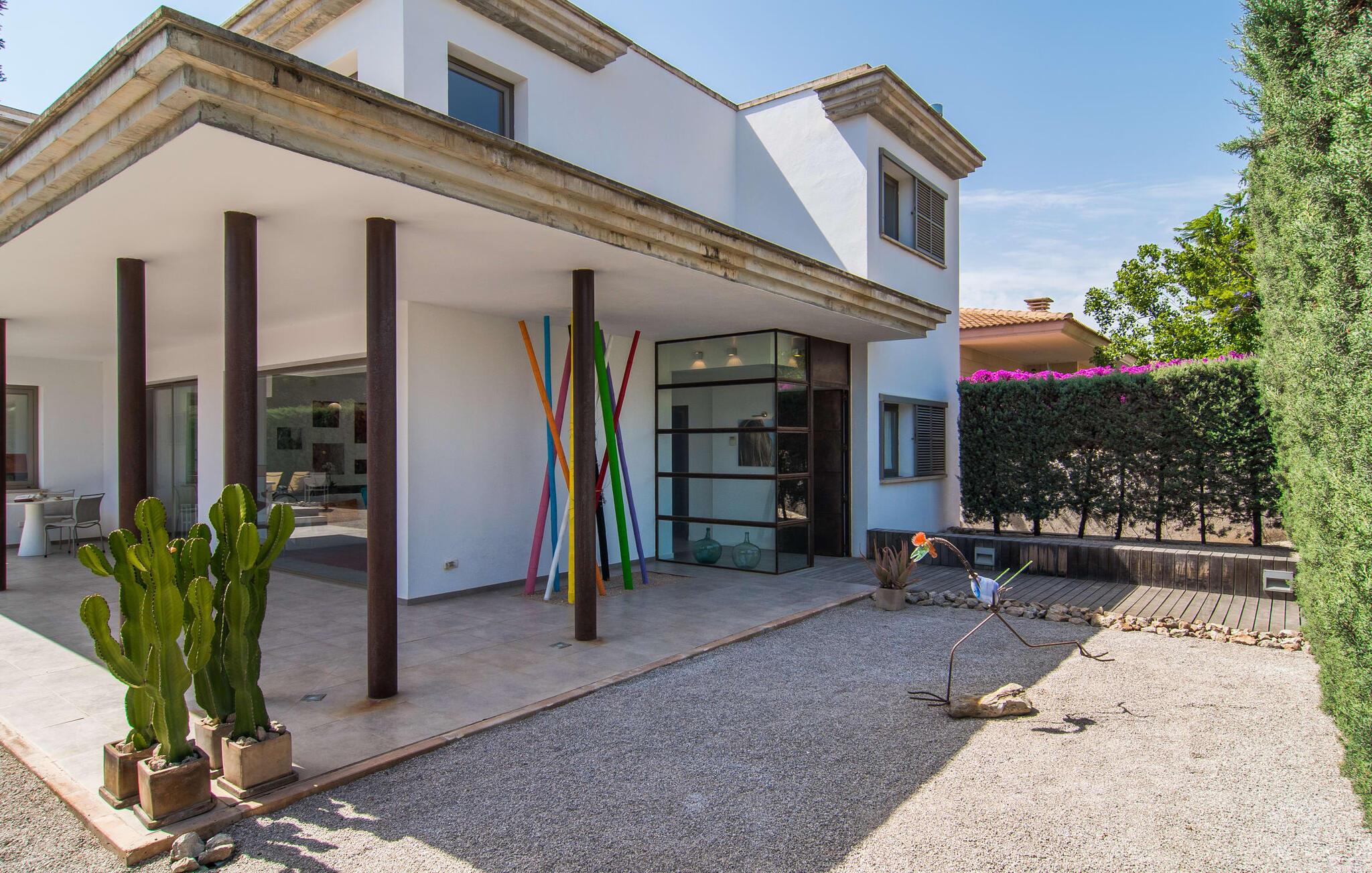 Vi er glade for at kunne præsentere jer for dette helt enestående feriehus; Ikke alene imponerede den os fuldstændig på alle måder, den er også fuldstændig uovertruffen med hensyn til originalitet og luksuriøs stemning. Enhver, der vægter komfort og æstetik højt på ferien, vil finde denne ejendom yderst attraktiv, især hvis nærhed til stranden og gode forbindelser til øens infrastruktur er vigtige for dem. Villa "Cap d'Olla" opfylder alle disse krav på den mest behagelige måde, man kan forestille sig. Beliggende på en smuk hjørnegrund i en boligbebyggelse og omgivet af hække og cypresser, bare ved at kigge på uderummet kan I se, at dette sted byder på nogle gode muligheder for en eksklusiv bolig. Foran huset strækker en overdækket terrasse sig mod poolen; Det er en dejlig ramme for al fresco spisning. Der er plads nok ved det hvide spisebord, så alle i jeres gruppe kan spise sammen når som helst på dagen. Herfra fører kun to trin ned til poolen, som er helt omgivet af en skøn træterrasse. Under en baldakin finder I et dejligt udendørs loungeområde med komfortable hvide sofaer og lænestole samt et stilfuldt glasbord og forsendelsespaller; Forkæl jer selv med lidt luksus, mens I sidder herude med en kølig drink i hånden og kigger ud over poolens glitrende turkise vand. Det lette tag er også justerbart, så I selv kan bestemme, hvor meget tid I vil bruge i solen eller i skyggen. Poolen, der er foret med usædvanligt store fliser, tilbyder unge og gamle et dejligt sted at slappe af og køle af på varme dage. Brede trin fører blidt ned i det behagelige, hudplejende saltvand. I vil måske også have fat i en god bog at læse, mens I ligger på en af de komfortable liggestole. Mens udendørsområdet udstråler sin del af luksus, er villaens indre fyldt til randen med en atmosfære af sofistikeret elegance. Den modtagelse, der venter gæster, når de træder ind i bygningen, kan kun beskrives som betagende. Helt oversvømmet med lys og rig på stærke farver, det brede, åbne rum fanger jer og inviterer jer til straks at gå i gang med at udforske de forskellige rum. Indretningen er domineret af røde og hvide toner, som skaber en fantastisk effekt i kombination med andre accentfarver og materialer. Stuen er foret med store panoramavinduer og har et stort udvalg af utroligt komfortable sofaer i midten. Det er helt sikkert stedet, hvor I vil tilbringe det meste af jeres tid indendørs. Fuld af farver og dekoreret med alle slags kunst, er det et fremragende sted at sidde og slappe af. Uanset hvor I kigger hen, fremtryller iøjnefaldende dekorative stykker en atmosfære, der er helt unik og skaber en helt særlig visuel oplevelse. Hvis I nogensinde bliver træt af at spise udenfor, er der en spiseplads to trin over stuen, hvor I kan spise jeres måltider med stil og nyde den ekstra smag, der følger med den elegante atmosfære. Det rummelige, moderne køkken er bekvemt placeret et værelse længere væk. En central ø gør det endnu sjovere at tilberede måltider sammen, og variationen og kvaliteten af faciliteter gør dette køkken til et sandt kokkens paradis. Der er endda plads til et ekstra spisebord, hvor I kan nyde en hurtig snack sammen. I stueetagen er der også et soveværelse med eget badeværelse og et ekstra toilet. En yderst elegant flydende trappe fører til øverste etage, som er luksuriøst indrettet og har en anden stue, et stort soveværelse med en-suite badeværelse (inklusive badekar og bruser som mulighed for sauna) og yderligere to soveværelser, der deler et badeværelse mellem dem. Det fantastiske ved den anden stue er, at I kan bruge lidt alenetid væk fra jeres feriegruppe eller endda dele jer op i mindre grupper for at lave forskellige aktiviteter uden at forstyrre hinanden. Nyd en god film på fladskærms-tv'et, mens I slapper af på den store røde sofa eller på en af de farverige gulvpuder. De klimatiserede, individuelt designede og farverige værelser udstråler et strejf af ekstravagance, der gør afslapning i disse værelser til en uforlignelig oplevelse. Vi er sikre på, at alle vil finde det perfekte sted at sove her. Badeværelserne, som også har deres egen charme, har naturligt lys og er udstyret med faciliteter af høj kvalitet som hårtørrere og nok plads til alle i gruppen. Sa Ràpita, en lille fiskerby langt væk fra folkemængderne, er et godt udgangspunkt for at udforske øen og opdage det "rigtige" Mallorca. Byen grænser op til et naturreservat, og to af øens smukkeste strande ligger praktisk talt lige uden for døren: Ses Covetes og den uberørte naturstrand Es Trenc. Da en af Sa Ràpitas hovedattraktioner er yachtklubben, omfatter fritidsaktiviteter en række vandsportsaktiviteter som surfing, sejlads og dykning, men der er også masser at lave for golfspillere og vandreentusiaster. Den super stilfulde villa “Cap d'Olla” ligger i et sommerhusområde i Sa Ràpita og er omgivet af et skønt, velholdt udeområde. Indkøb af dagligvarer og andre daglige fornødenheder, restauranter ved havet og selve havet er alle inden for gåafstand. Den attraktive Platja Sa Ràpita-strand ligger kun 2 km væk, og der er flere andre smukke strande i nærheden.