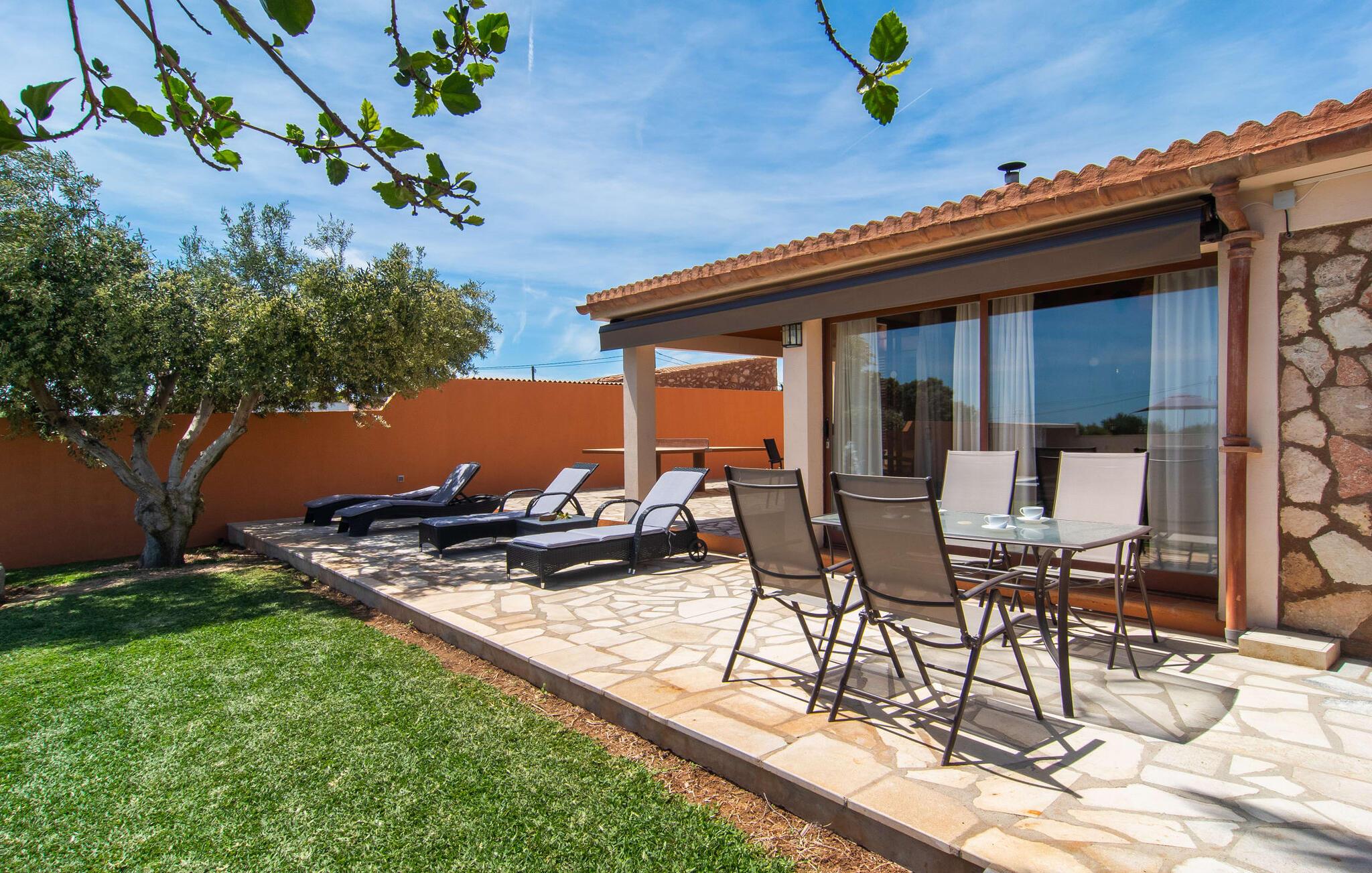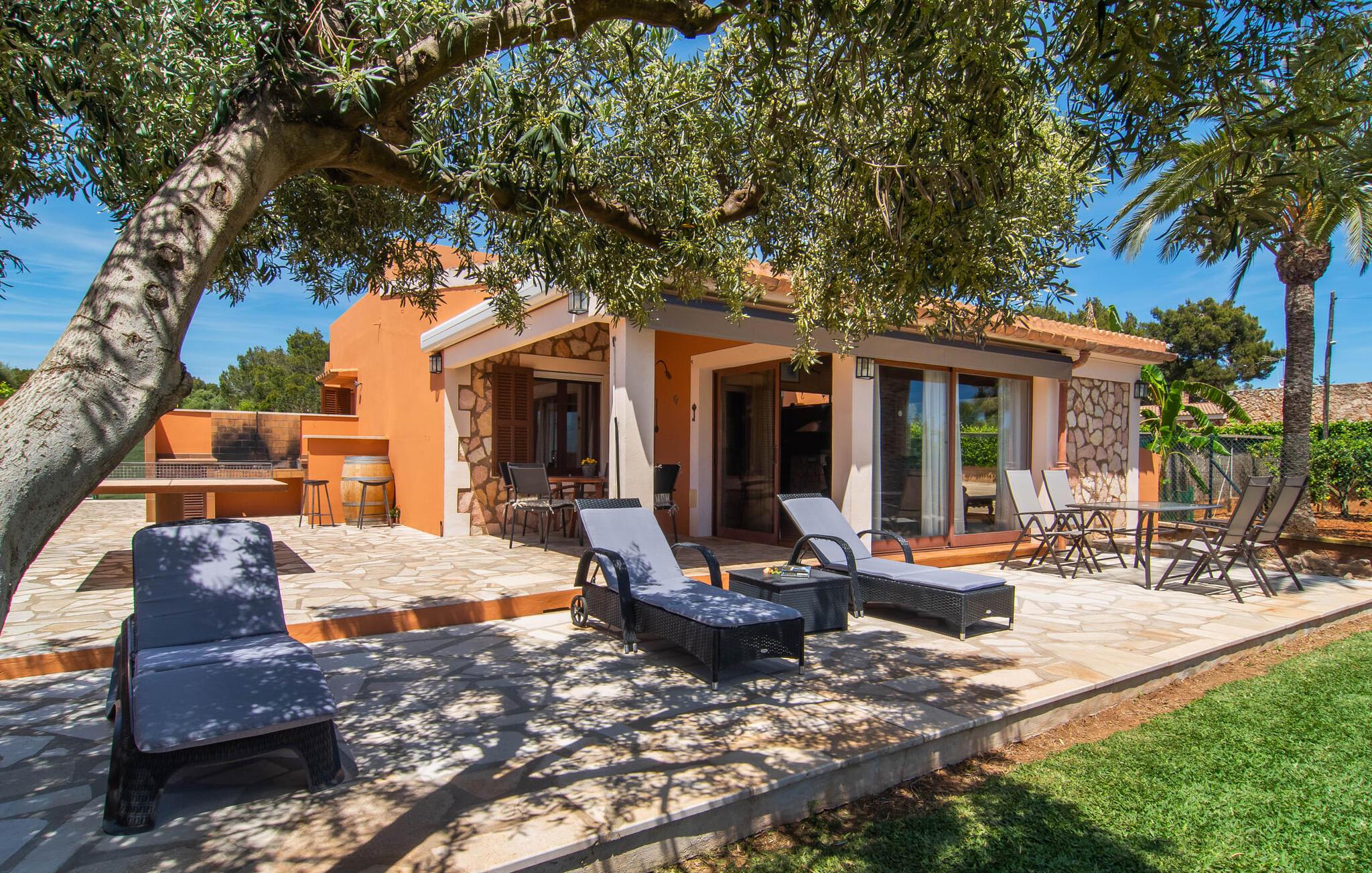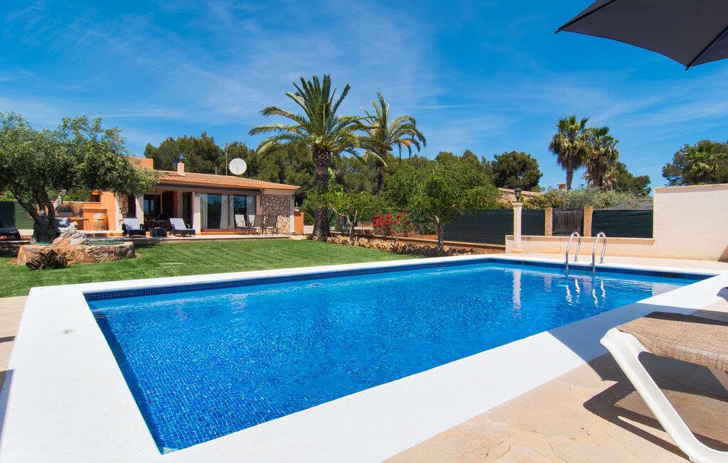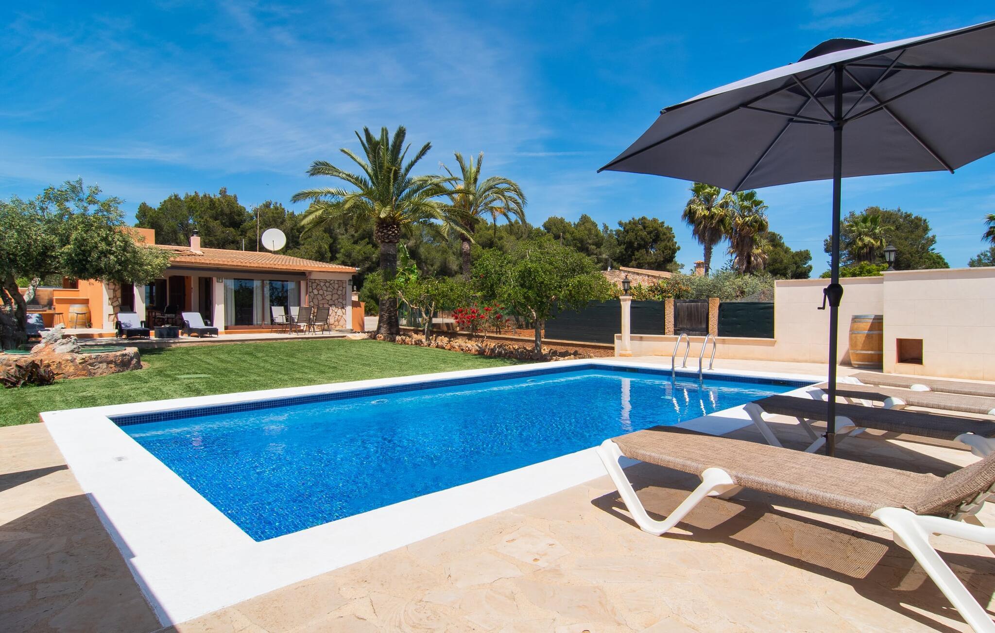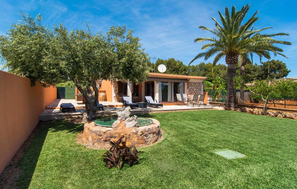 Villa “Capricho” i den sydøstlige del af Mallorca lover en afslappende fincaferie midt i en meget velholdt have, tæt på flere smukke sandstrande. Udendørsområdet er udstyret med komfortable liggestole ved huset og ved siden af den store pool. Der er en lille overdækket terrasse med spiseplads, som tilgås via stuen. Ved siden af villaen er der sommerkøkken med grill, spiseplads og bordtennisbord. Der er en mursten udendørs bruser lige ved siden af poolen. Et lille trin fører til den overdækkede terrasse, hvor der er forskellige siddemuligheder. En lille udvendig trappe fører til en smuk tagterrasse med havudsigt. Villaens stue ligger i stueetagen. En bred glasskydedør fører fra haven direkte ind i en hyggelig opholds- og spisestue med pejs. Det moderne, veludstyrede landhuskøkken er åbent til opholdsstuen. Sandstensvægge, terracottagulve og åbne bjælkelofter skaber en hyggelig, rustik atmosfære. Der er også tre indbydende, smagfuldt indrettede dobbeltværelser, som automatisk har aircondition fra 21.30 til 10.30. Et af soveværelserne har eget badeværelse, et andet har direkte adgang til haven og der er endnu et stort badeværelse med bruser. Villaen "Capricho" er beliggende i en rolig finca-bebyggelse, 4 minutter i bil fra havnebyen Portocolom. Der er et supermarked og små restauranter her. Sandbugten Cala Marçal ligger 6 minutter derfra i bil. Der er andre smukke strande inden for en radius af 10-15 km. Et livligt natteliv kan findes i feriestedet Cala D'Or, 15 minutters kørsel sydpå.