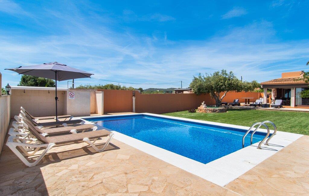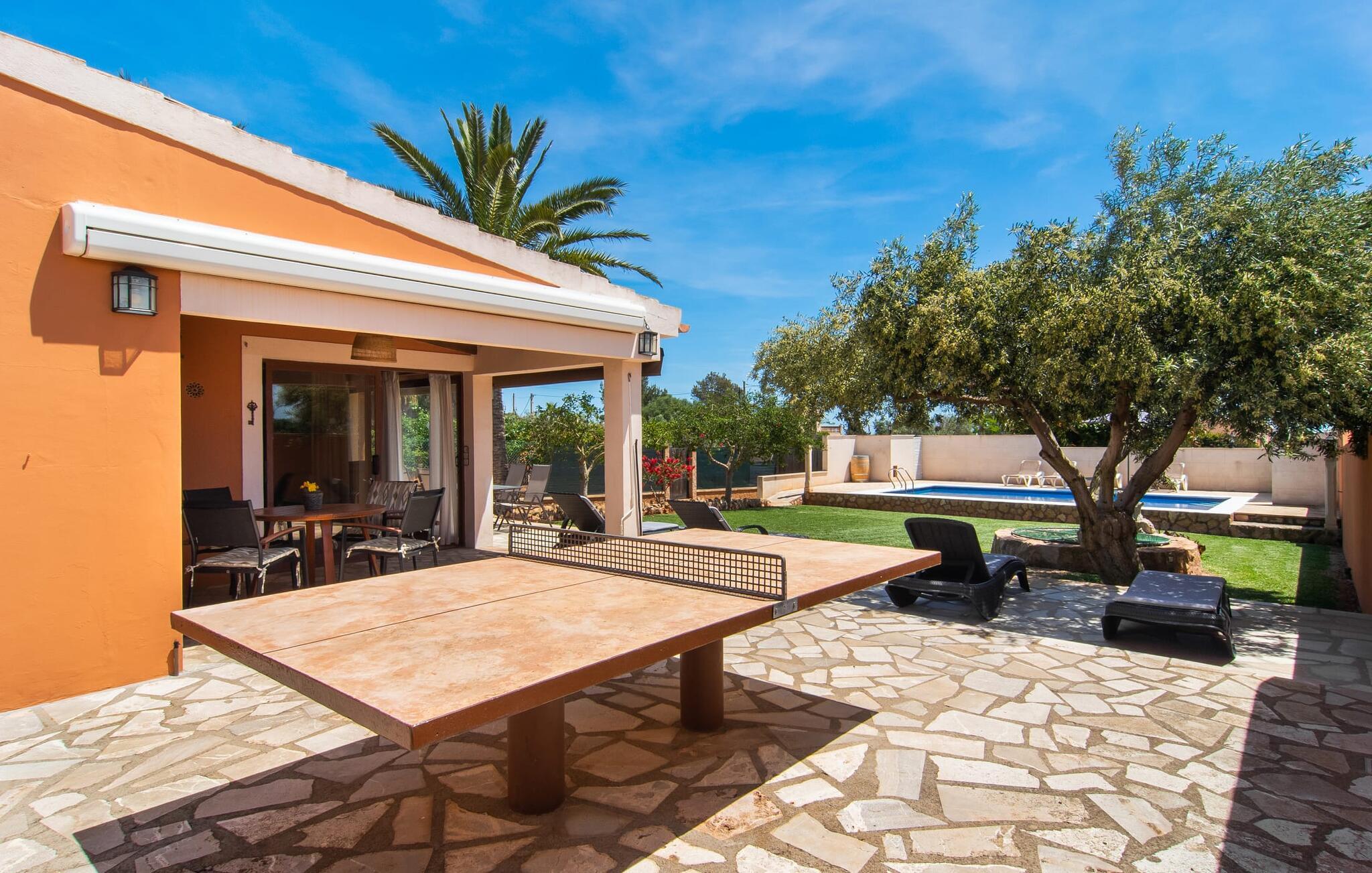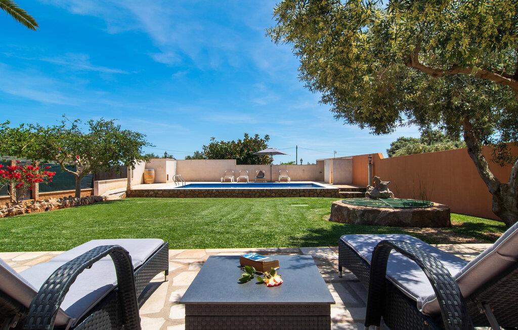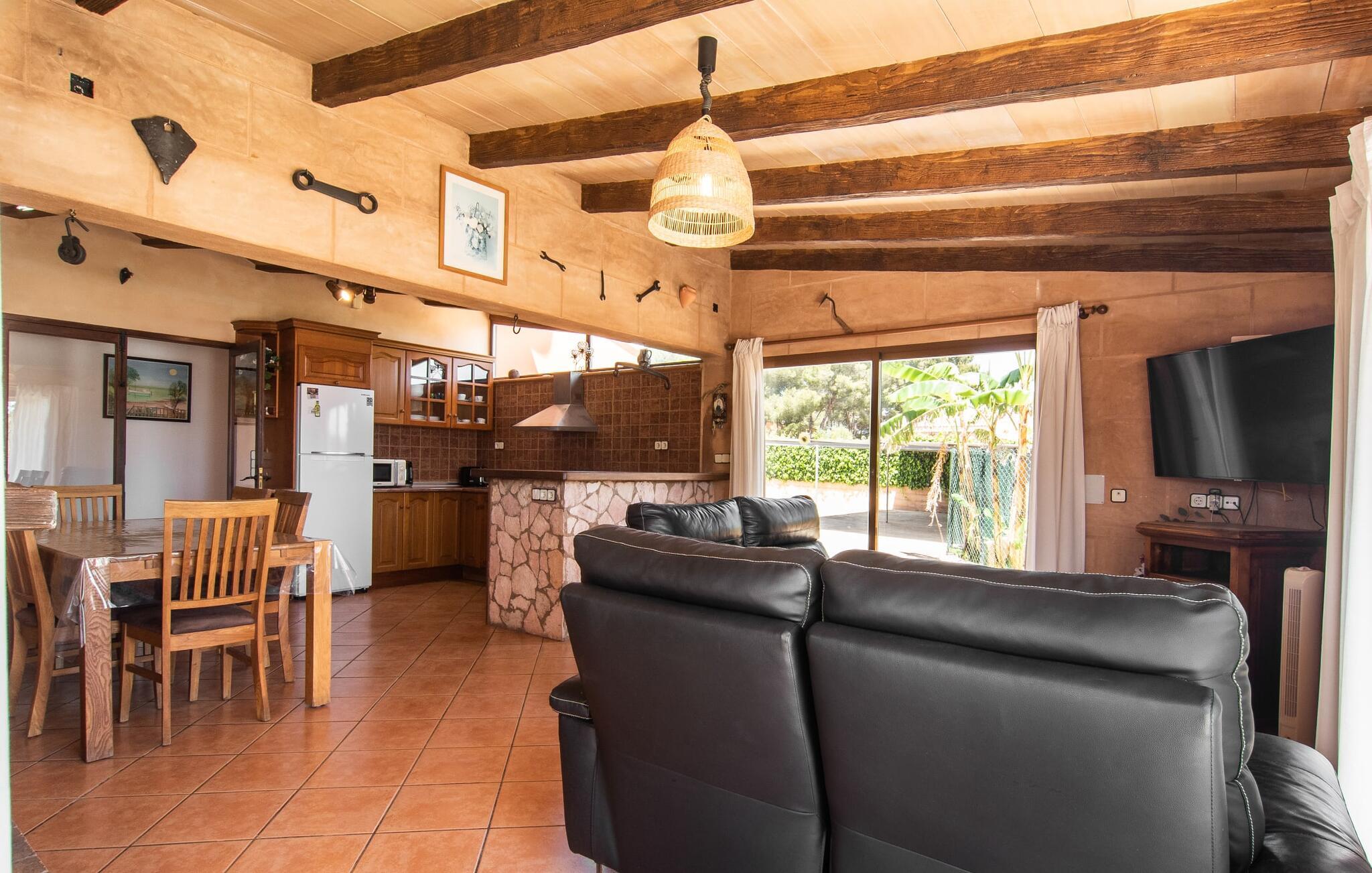Villa “Capricho” i den sydøstlige del af Mallorca lover en afslappende fincaferie midt i en meget velholdt have, tæt på flere smukke sandstrande. Udendørsområdet er udstyret med komfortable liggestole ved huset og ved siden af den store pool. Der er en lille overdækket terrasse med spiseplads, som tilgås via stuen. Ved siden af villaen er der sommerkøkken med grill, spiseplads og bordtennisbord. Der er en mursten udendørs bruser lige ved siden af poolen. Et lille trin fører til den overdækkede terrasse, hvor der er forskellige siddemuligheder. En lille udvendig trappe fører til en smuk tagterrasse med havudsigt. Villaens stue ligger i stueetagen. En bred glasskydedør fører fra haven direkte ind i en hyggelig opholds- og spisestue med pejs. Det moderne, veludstyrede landhuskøkken er åbent til opholdsstuen. Sandstensvægge, terracottagulve og åbne bjælkelofter skaber en hyggelig, rustik atmosfære. Der er også tre indbydende, smagfuldt indrettede dobbeltværelser, som automatisk har aircondition fra 21.30 til 10.30. Et af soveværelserne har eget badeværelse, et andet har direkte adgang til haven og der er endnu et stort badeværelse med bruser. Villaen "Capricho" er beliggende i en rolig finca-bebyggelse, 4 minutter i bil fra havnebyen Portocolom. Der er et supermarked og små restauranter her. Sandbugten Cala Marçal ligger 6 minutter derfra i bil. Der er andre smukke strande inden for en radius af 10-15 km. Et livligt natteliv kan findes i feriestedet Cala D'Or, 15 minutters kørsel sydpå.