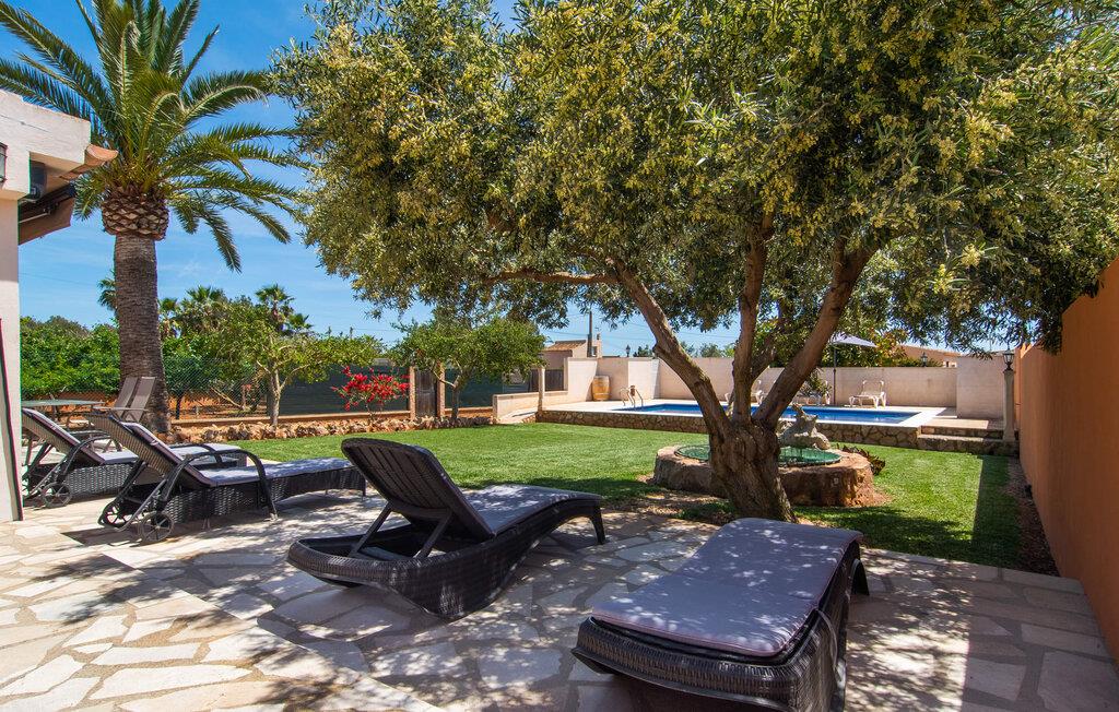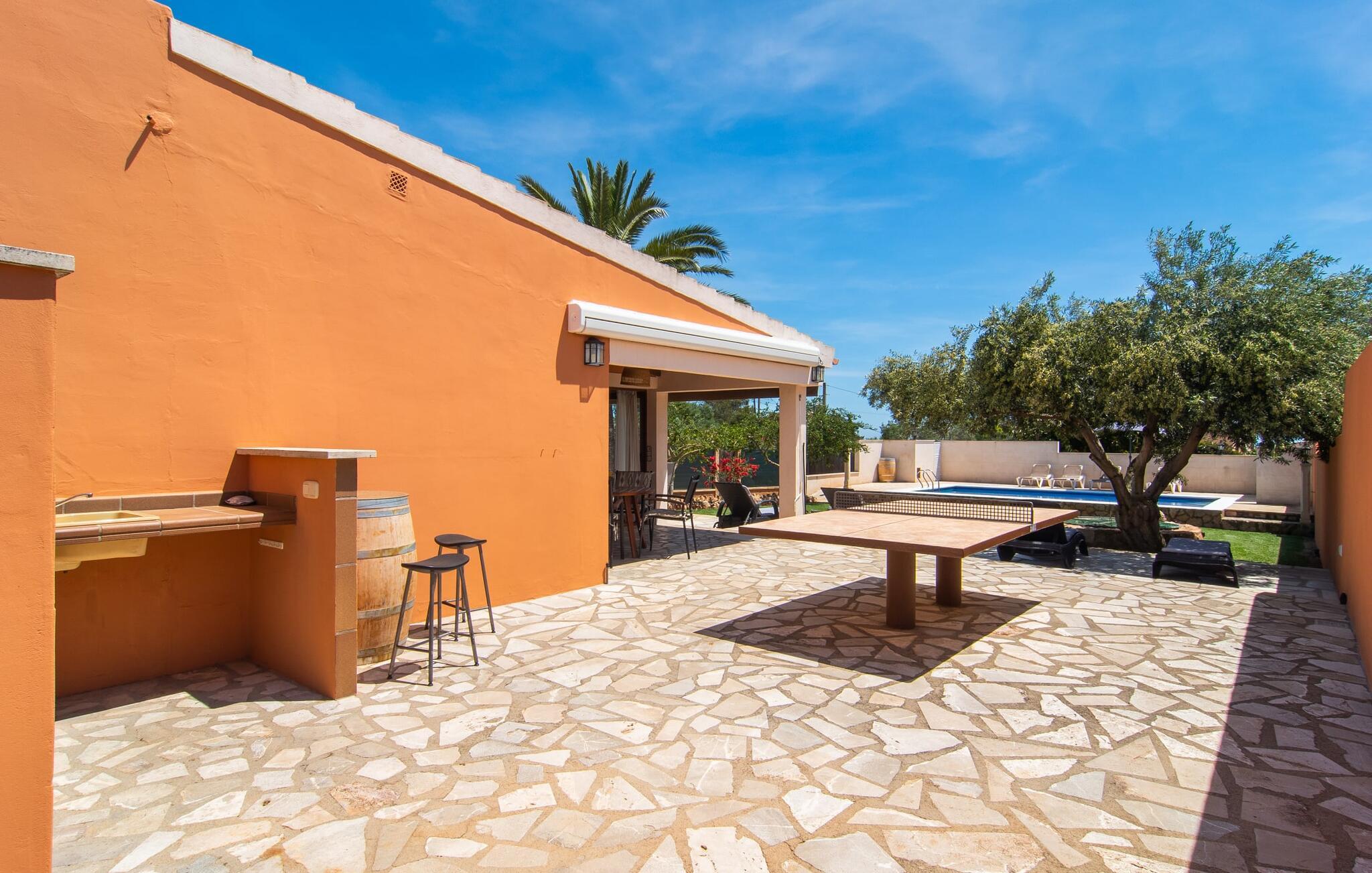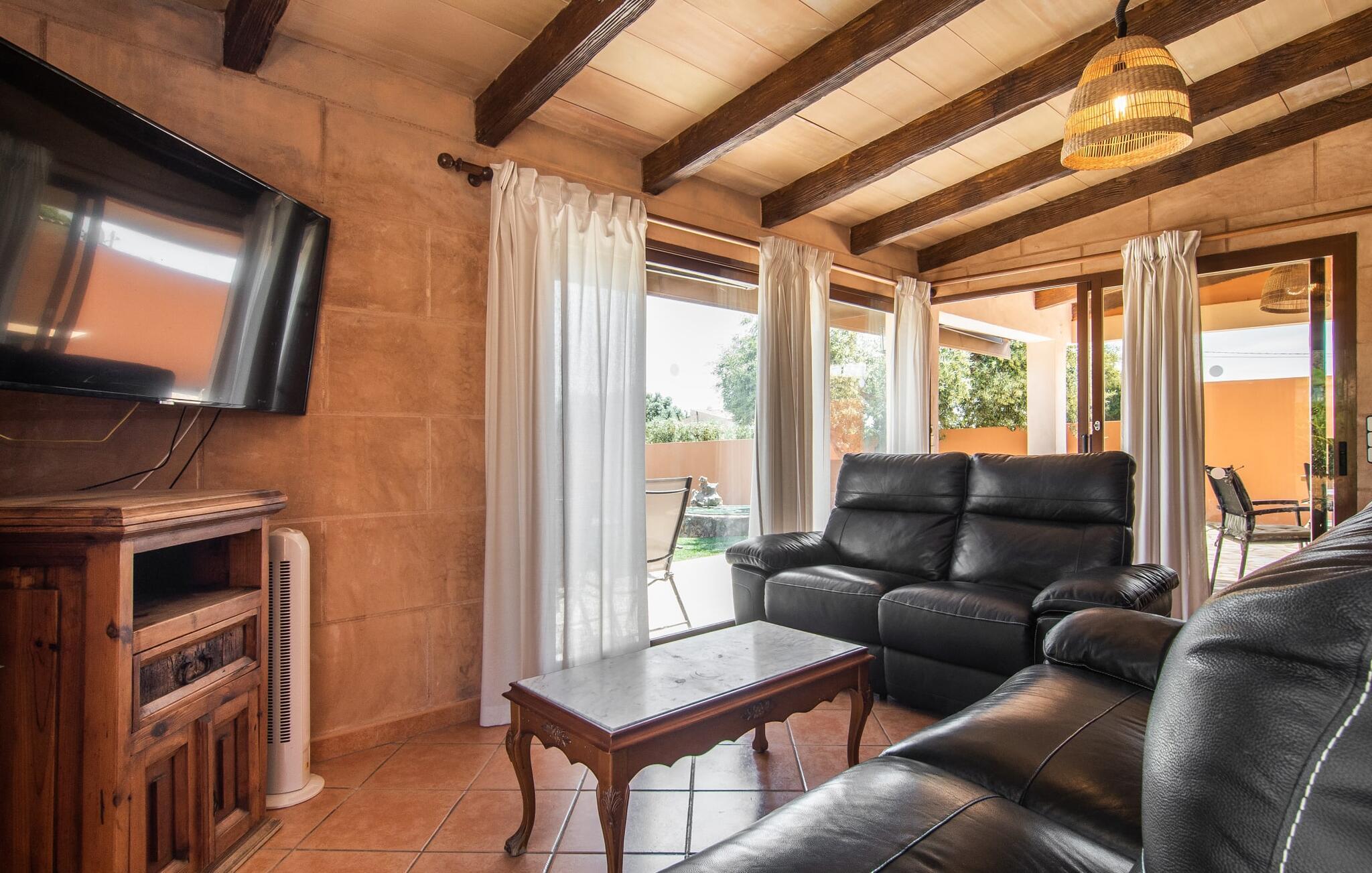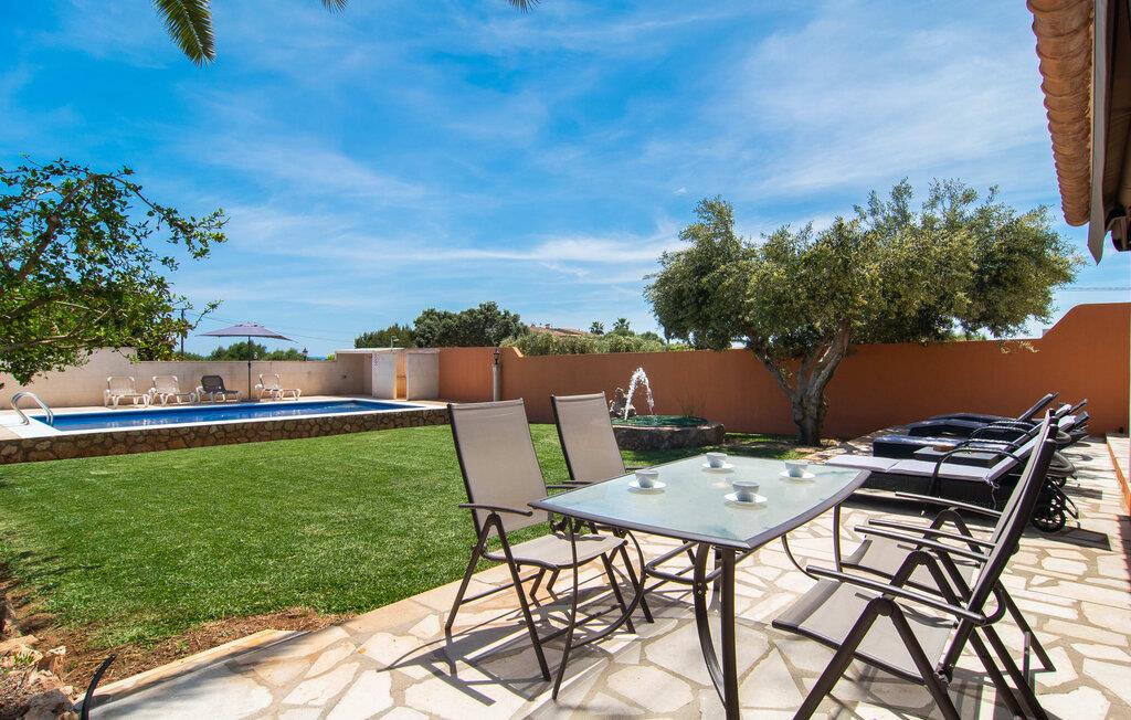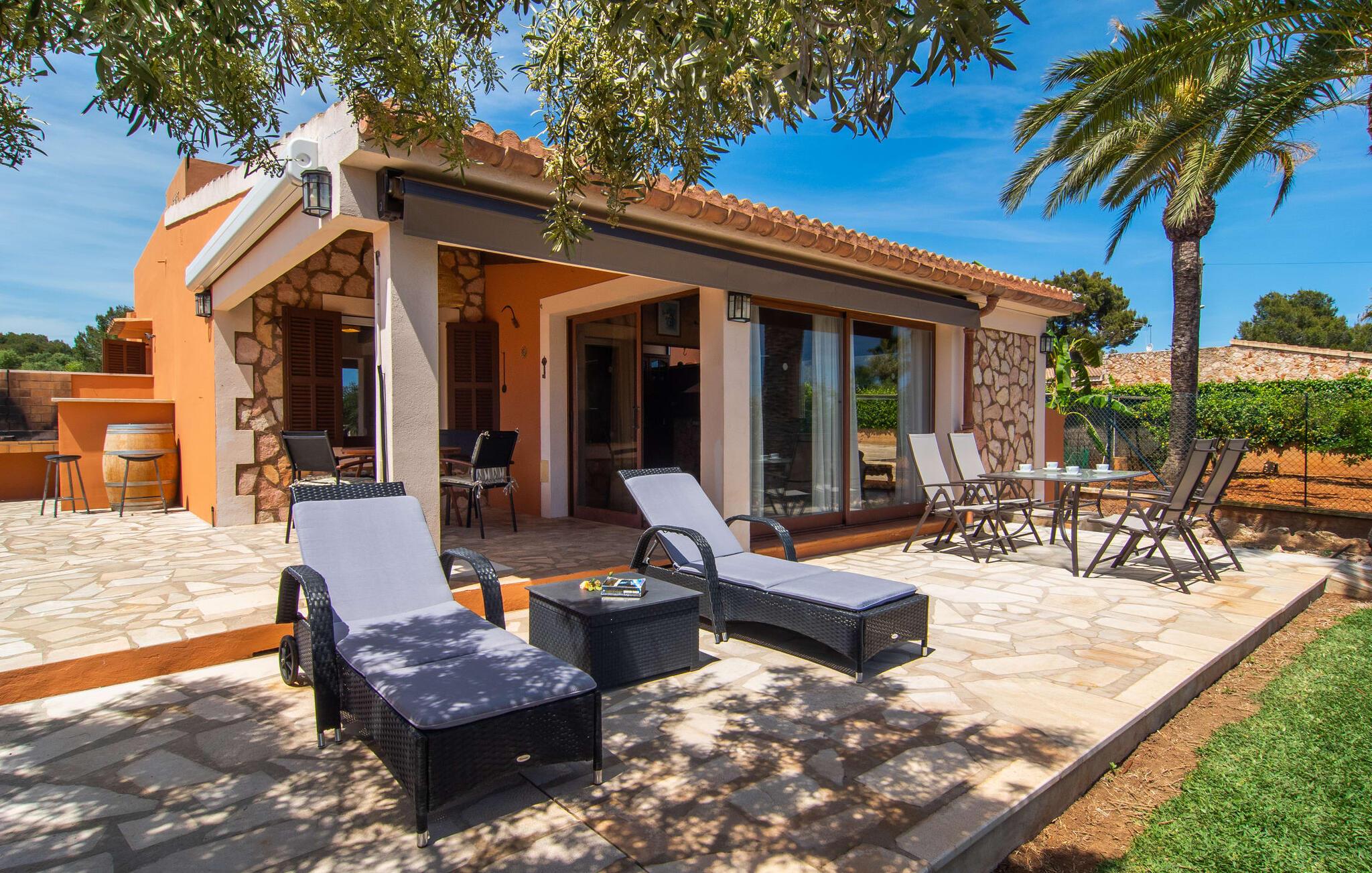 Villa “Capricho” i den sydøstlige del af Mallorca lover en afslappende fincaferie midt i en meget velholdt have, tæt på flere smukke sandstrande. Udendørsområdet er udstyret med komfortable liggestole ved huset og ved siden af den store pool. Der er en lille overdækket terrasse med spiseplads, som tilgås via stuen. Ved siden af villaen er der sommerkøkken med grill, spiseplads og bordtennisbord. Der er en mursten udendørs bruser lige ved siden af poolen. Et lille trin fører til den overdækkede terrasse, hvor der er forskellige siddemuligheder. En lille udvendig trappe fører til en smuk tagterrasse med havudsigt. Villaens stue ligger i stueetagen. En bred glasskydedør fører fra haven direkte ind i en hyggelig opholds- og spisestue med pejs. Det moderne, veludstyrede landhuskøkken er åbent til opholdsstuen. Sandstensvægge, terracottagulve og åbne bjælkelofter skaber en hyggelig, rustik atmosfære. Der er også tre indbydende, smagfuldt indrettede dobbeltværelser, som automatisk har aircondition fra 21.30 til 10.30. Et af soveværelserne har eget badeværelse, et andet har direkte adgang til haven og der er endnu et stort badeværelse med bruser. Villaen "Capricho" er beliggende i en rolig finca-bebyggelse, 4 minutter i bil fra havnebyen Portocolom. Der er et supermarked og små restauranter her. Sandbugten Cala Marçal ligger 6 minutter derfra i bil. Der er andre smukke strande inden for en radius af 10-15 km. Et livligt natteliv kan findes i feriestedet Cala D'Or, 15 minutters kørsel sydpå.