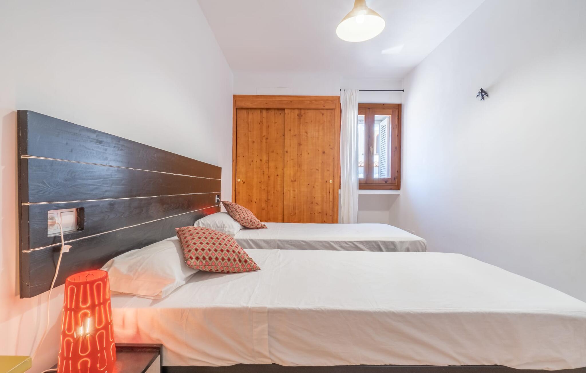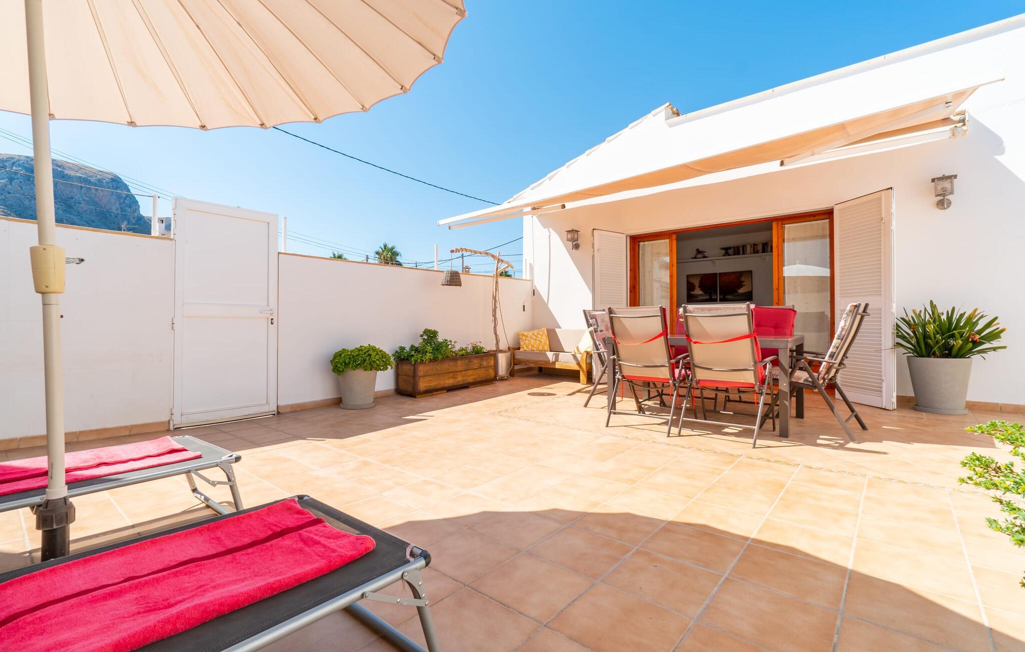 Rækkehuset "Cas Bessons", som er kendetegnet ved et moderne arkitektonisk design, kunne også kaldes "hus ved havet". Selvom det ligger midt i det rolige feriested Colònia de Sant Pere, er det stadig kun et stenkast fra havet, og man kan mærke den maritime magi i designet af den lyse hvide bygning. På terrassen er der plads nok til spisebord, liggestole, den obligatoriske parasol og subtilt duftende grønt og blomstrende planter. Her kan I nyde stressfrie måltider i en privat atmosfære. Har I forkælet jer selv med lidt for meget sol, kan I også forlænge forteltet, som giver en behagelig beskyttelse. En grill er tilgængelig, så I kan vælge mellem madlavning eller grillning eller blot kombinere begge dele. Det gør selvforplejningsdelen af jeres feriefamilie sjov, og det er netop, hvad dette kompakte feriehus byder på, især fordi vi kan tilbyde jer en yderst attraktiv lejepris. En pool ville være overflødig her - stien til byens hovedstrand er trods alt så kort, at I kan nyde den børnevenlige, let skrånende indgang til havet i klipklappere. Interiøret i "Cas Bessons" byder jer velkommen med en frisk og ukompliceret stil og et strejf af mallorcansk tradition. De naturlige materialer som terracotta fliser, trædøre og vinduer danner en moderne symbiose med de hvide vægge, som står i kontrast til soveværelsernes subtile farver. Subtile dekorative genstande med en knivspids rustik flotsam understreger den behagelige strandatmosfære i dette indbydende hus. Derudover imponerer det med et meget behageligt, ryddeligt, åbent design af den hyggelige stue og det fuldt udstyrede køkken med et centralt placeret spisebord. Med et gulv til loft-vindue, der åbner ud til gården, udviskes grænserne mellem inde- og udendørsliv behageligt. Hvis det bliver for varmt, så luk dørene og nyd køligheden i den airconditionerede opholdsstue. I det bagerste område af huset finder I de fire rummelige soveværelser med nok opbevaringsplads til jeres feriegarderobe. I bestemmer selv, hvilken konstellation I gerne vil rejse i - med tre dobbeltværelser (hvoraf det ene har to enkeltsenge) og et enkeltværelse finder I det rigtige arrangement til enhver konstellation, også med tre generationer. To moderne badeværelser, det ene med badekar og det andet som en-suite badeværelse, fuldender husets tilbud. "Cas Bessons" ligger i hjertet af den rolige by Colònia de Sant Pere, som byder på en havn med berømte lystbåde og talrige fiskerbåde tidligt om morgenen. En gåtur langs strandpromenaden er umagen værd når som helst på dagen og kan nemt kombineres med en drink eller snack på en af de hyggelige caféer og restauranter med lokalt præg. På grund af den centrale beliggenhed i bymidten behøver I kun jeres lejebil til udflugter, medmindre det er korte vandreture eller gåture. Alcúdia-bugten byder på adskillige attraktive strande over en længde på 16 km. Men I bør bestemt også tage på ture til de omkringliggende middelalderbyer som Artà eller Capdepera. Huset tilbyder flere cykler til en cykeltur. Den bedste måde at se Mallorca på! Det nybyggede rækkehus "Cas Bessons" ligger på en uimodståelig attraktiv beliggenhed i den østlige del af øen ved Alcúdia-bugten. Takket være sin beliggenhed midt i den populære kystby Colònia de Sant Pere, kan I nyde bekvemmeligheden ved korte ture til indkøbsmuligheder, gode restauranter og hyggelige caféer, som alle ligger i gåafstand. Byens smukke hovedstrand ligger kun 140 m væk. Andre strande, herunder Son Serra de Marina, ligger mindre end 3 km derfra.