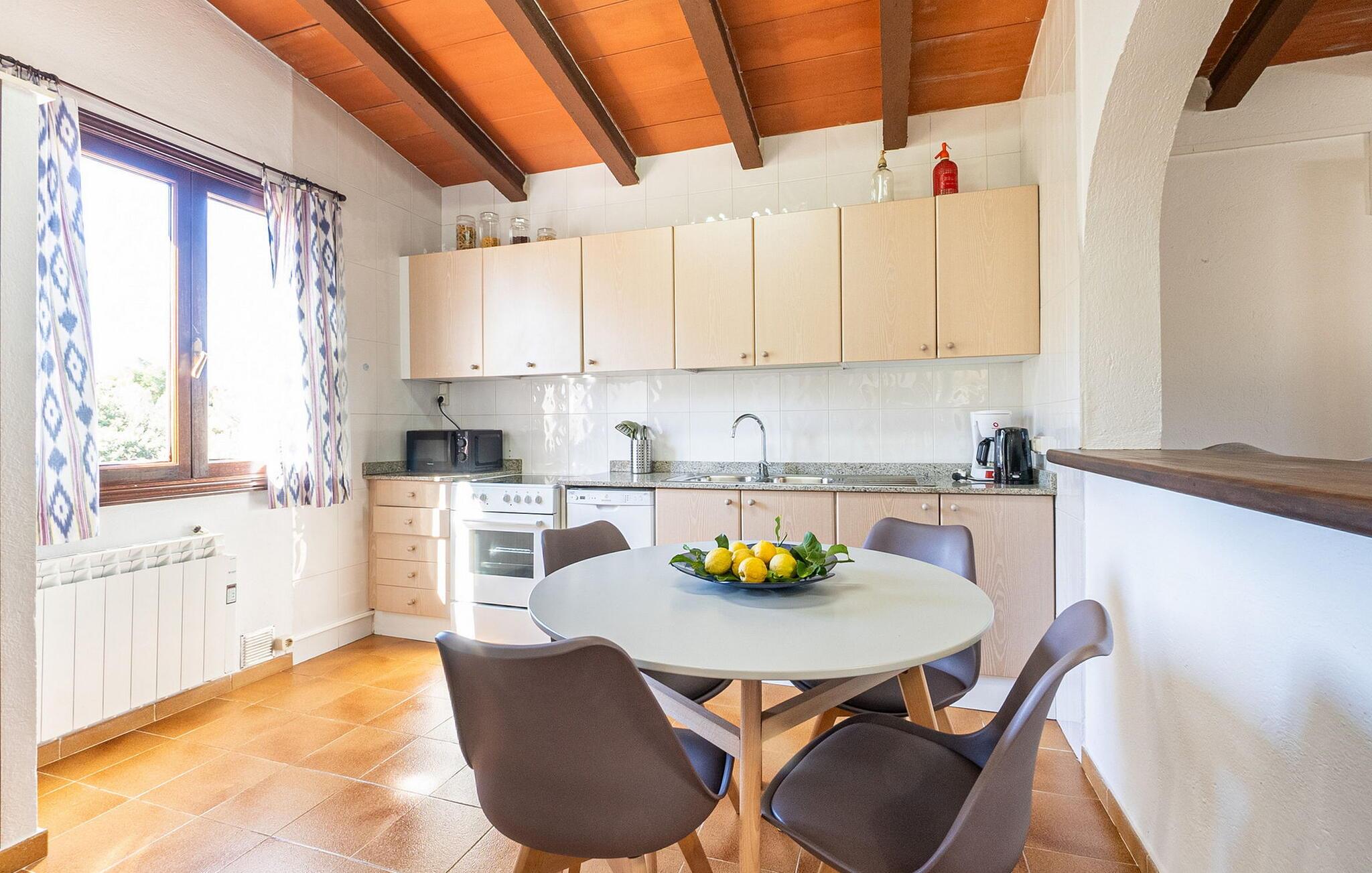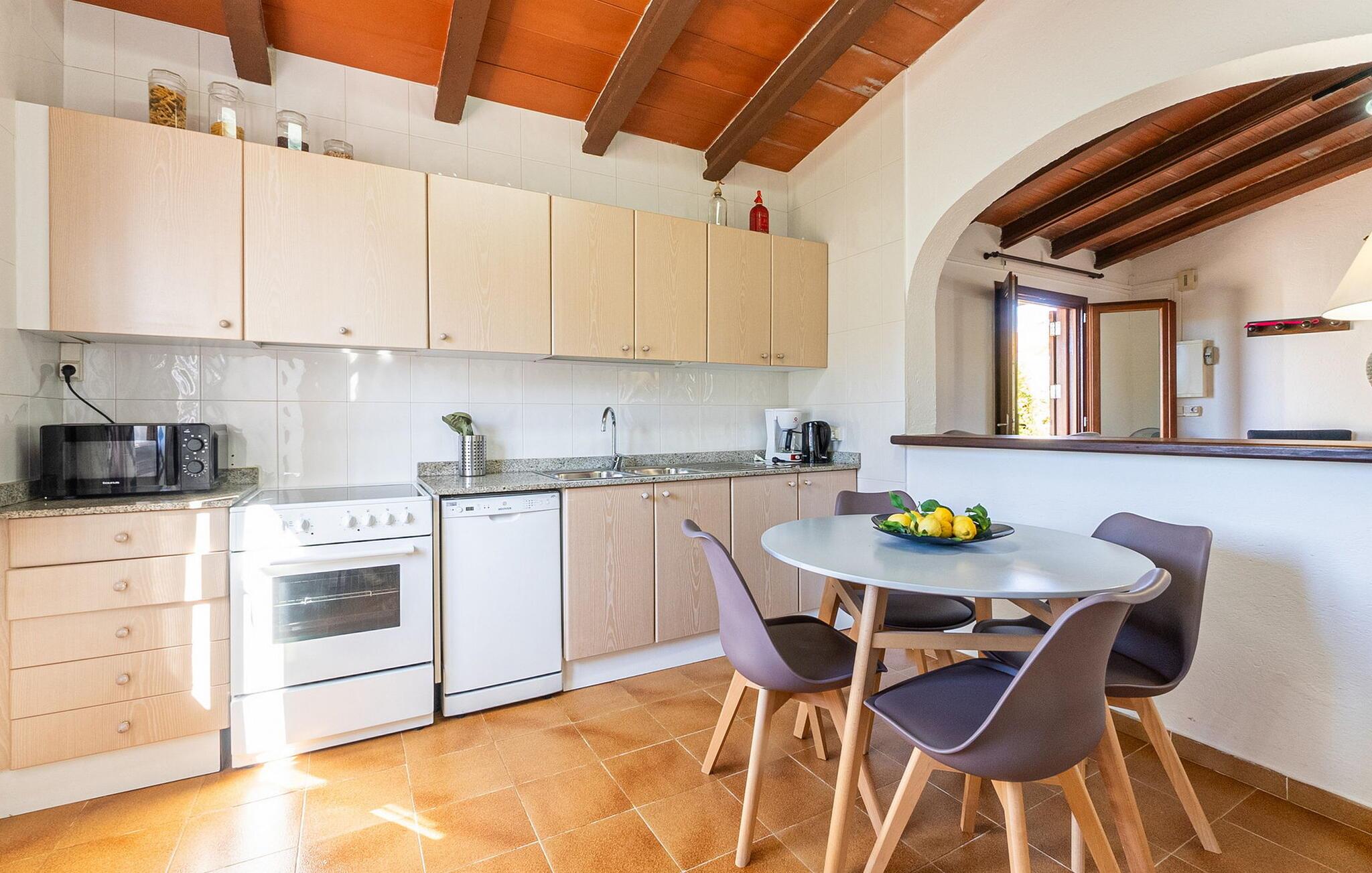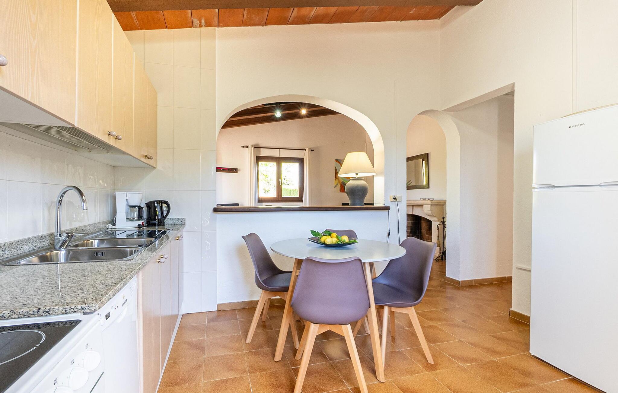Lille og ganske enkelt charmerende: Hvis I ikke har brug for en masse luksus på ferien, men ønsker at føle jer godt tilpas og beskyttet i jeres private rum, så vil I helt sikkert føle jer hjemme i denne bungalow med separat pool og skyggefulde træer. "Cas Boter" er også den perfekte størrelse for solorejsende - plus, takket være dens nærhed til de andre villaer, kan I bo roligt og stadig ikke føle jer helt alene. Fra lufthavnen kan I nemt nå den populære by Artà i bil; Kom, stil jeres bagage i hjørnet og opdag først de mange siddepladser i haven. Stenbænken er særligt indbydende i sollys: Læn jeres trætte ryg mod husets varme væg, tag en dyb indånding, drik noget te - enhver stress forsvinder med det samme. De komfortable stole under palmetaget er også attraktive - ægte luksus er at kunne finde glæde i livets små ting, ikke? Dette omfatter også poolen, som er omgivet af grønne områder og er helt privat. I kan endda svømme et par omgange i vandet uden noget tøj. Apropos udstyr: Det store, runde stenbord er perfekt til en aftengrill - det er ikke noget problem, hvis spareribsene glider ud af hånden på jer. Ingen vil se det alligevel... Lille og praktisk – her kan I simpelthen ikke fare vild. Alt hvad I behøver er på ét niveau og tæt på. Terrassen leder ind i en hyggelig stue med en blå sofa og en rygvenlig gyngestol. Med så stor en åben pejs håber man faktisk, at det bliver lidt køligere om aftenen, så man har en grund til at se flammerne og drømme sig væk. Lige ved siden af ligger det lyse køkken med spiseplads – og kokken er inden for rækkevidde; I kan nemt afgive jeres ordrer (og hvis I er heldig, vil kokken endda give jer det, I har bestilt nede i lugen). Entreen fører jer til de to lyse og hyggelige soveværelser, som deler badeværelse med brus. I kan dog bestemme, om I vil sove sammen eller hver for sig eller under sart bambus eller en munter flok hunde. Hvis badeværelset er optaget, kan I hurtigt vågne op i udendørsbruseren og hoppe i poolen inden morgenmaden. Måske venter en friskbrygget kaffe på jer som belønning for jeres tidlige morgenmotion. Livet kan være så enkelt – og så smukt. Eller som Sokrates engang sagde: "Der er så mange ting, som jeg ikke har brug for." Salvador dens pilgrimskirke omgivet af imponerende mure og ni tårne. Uanset om I bestiger toppen til fods, i bil eller på cykel, vil I blive belønnet med en af de smukkeste udsigter på øen. I de snoede gader finder I butikker, hvor I kan købe hatte, kurve og tasker lavet af vævede palmeblade. Køb en rygsæk og oplev omgivelserne: Naturparken på Llevant-halvøen og naturreservaterne Cap de Ferrutx og Cap des Freu inviterer jer til at vandre og slappe af, mens den 25 km lange kystlinje med sandstrande og klitter byder på mange afsondrede bugter er hyppig over asfalterede stier og er sjældent overfyldt. Palma – Manacor – Artà: Feriedestinationen kan hurtigt nås. Den lille villa "Cas Boter" ligger i en absolut rolig beliggenhed, kun 2 km fra byens centrum og i begyndelsen af Cami de Carrossa. Selvom det er omgivet af andre genstande, tilbyder det fuldstændig privatliv. Alene kunst- og kunsthåndværksbyen Artà er en tur værd; Men den betagende smukke øst/nordøstlige del af Mallorca med en uberørt kyst, vidunderlige sandstrande og naturreservater samt livlige turistcentre som Cala Ratjada, Can Picafort eller Port d'Alcúdia kan også ideelt opdages herfra.