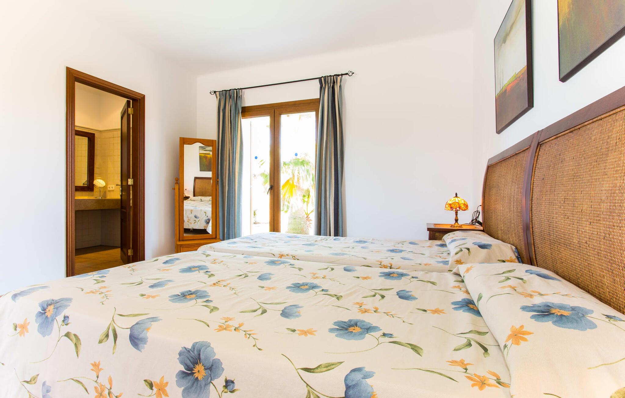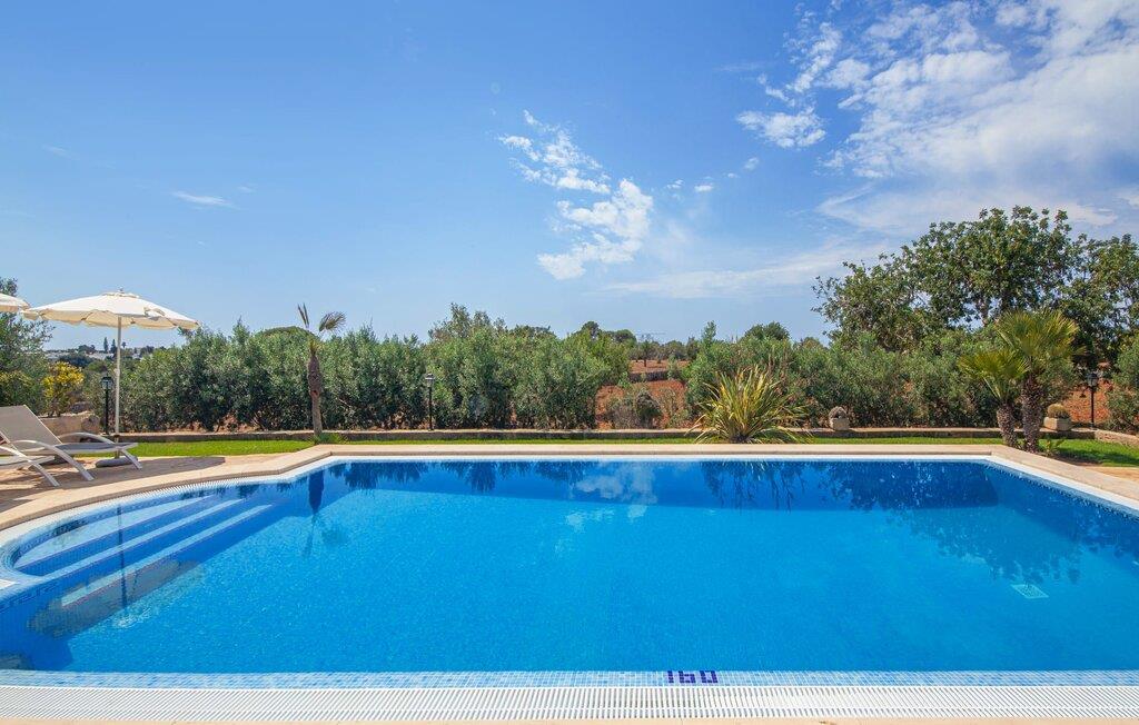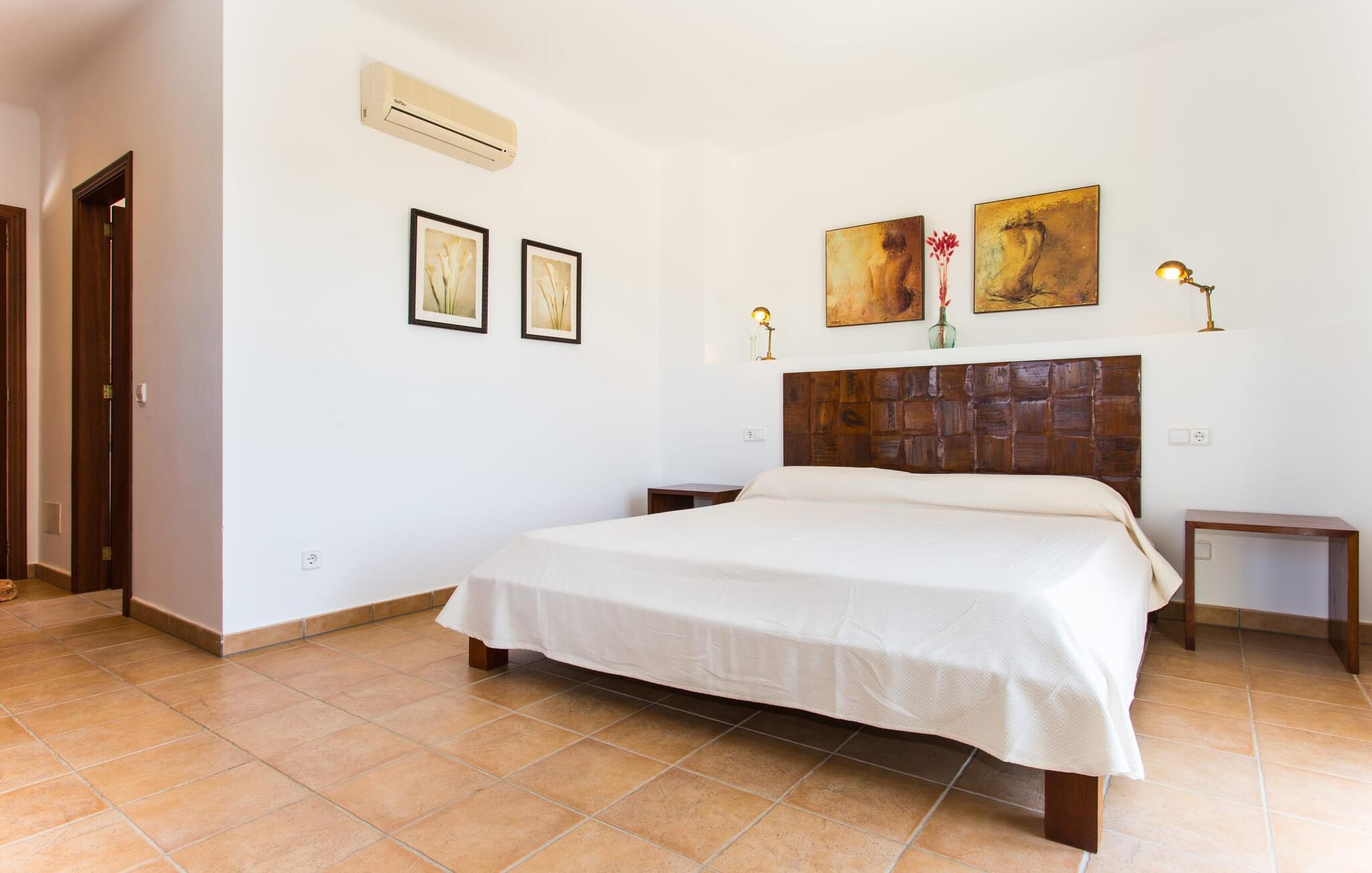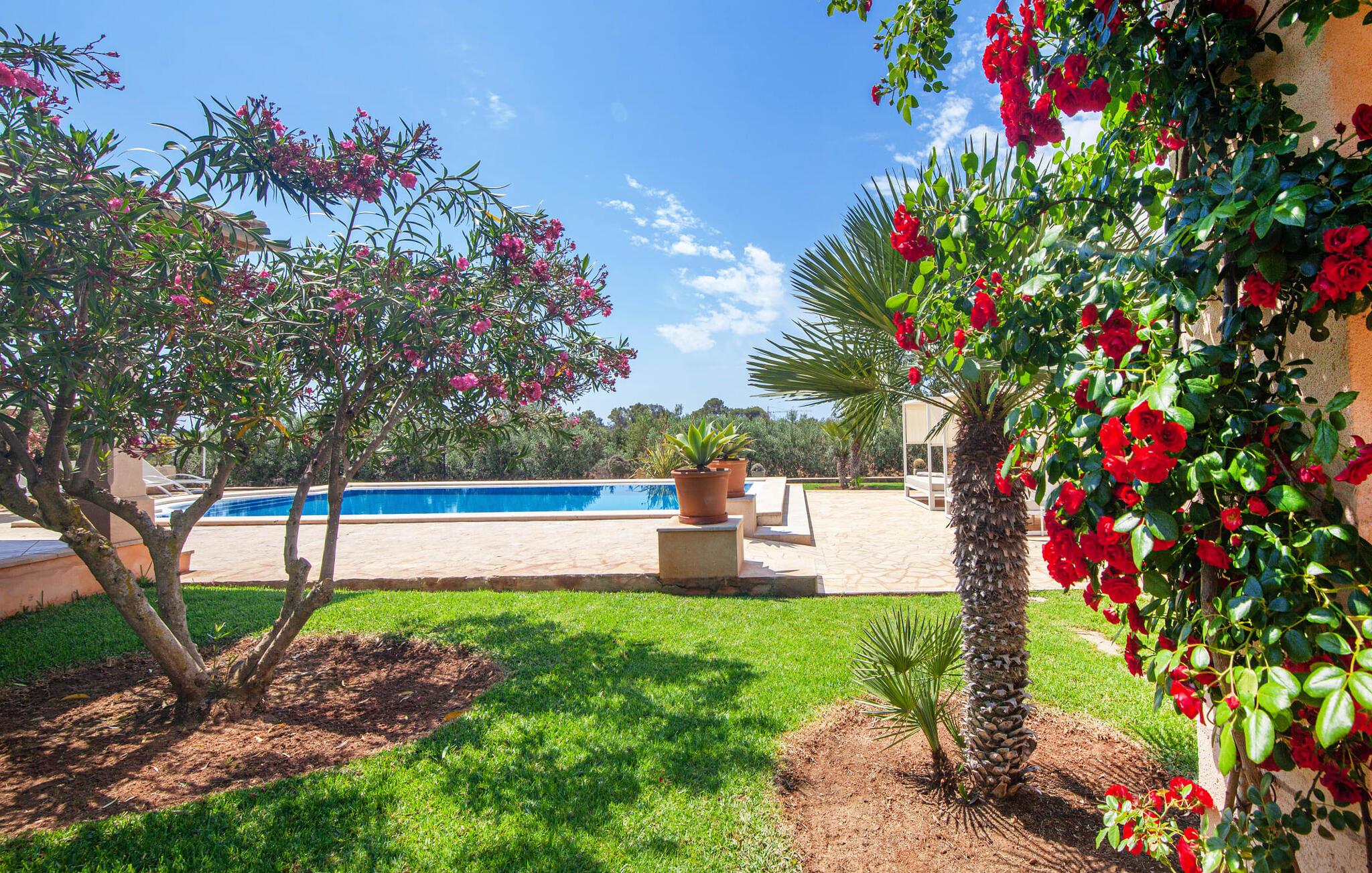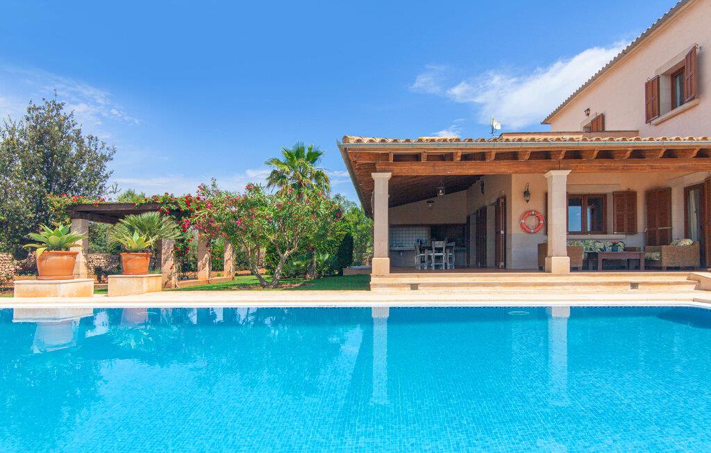 På en klar solskinsdag tager vi til villaen "Cas Fidever" efter at være blevet inviteret på en sightseeingtur af ejeren Miquel. Efter en dejlig køretur gennem landskabet omkring villaen er vi nysgerrige på ejendommen og bliver mødt med en varm velkomst. Det er et yderst smukt sommerhus og fremstår meget velholdt. Det første Miquel viser os er det utroligt alsidige udendørsområde. Ejendommen er omgivet af frodigt middelhavsgrønt og har nogle spektakulære områder til at tilbringe hele dagen udendørs, som vi bestemt skal se nærmere på. Mellem huset og poolen er der en stor overdækket terrasse, der omkranser en del af bygningen. Det er lidt forhøjet og byder på en fantastisk udsigt over poolen og haven. På den ene side af terrassen er der et stort, rustikt spisebord, på den anden side er der et opholdsområde med nogle meget behagelige rattanstole. Begge områder er indbydende på hver deres måde, alt efter om I vil spise behageligt udendørs eller slappe af med en kølig drink. I nærheden af spisebordet er der også et lille udekøkken med en muret grill, hvor I kan tilberede lækre måltider om aftenen. Udenfor i haven er der et luftigt, overdækket, pavillonlignende område - her kan I spille bordtennis. Efter et intenst spil bordtennis kan I skylle af i den praktiske udendørs bruser og derefter hoppe direkte ind i den luksuriøse swimmingpool, som er et rigtigt syn med sine udsmykkede flisetrin og mørkeblå trim. Bassinets dybde varierer mellem 1,20 m og 1,85 m. Når I er klar til at slappe af, kan I finde jer tilpas på græsplænen eller på de lidt mere behagelige liggestole ved poolkanten, evt. med parasoller. Og I skal nok finde en måde at afgøre, hvem der må ligge på den smukke udendørs daybed smukt placeret foran en bred naturstensmur. Nu er vi virkelig spændte på at se indersiden af dette hus. Er indersiden af villaen lige så smuk som det, vi lige har set her? Det er det bestemt! Det første, vi bemærker, er, hvor let og behagelig atmosfæren er her. De lyse hvide vægge i kombination med møblernes overvejende naturlige brune toner skaber en stemning af afslappet komfort, der tiltrækker og inviterer jer til at blive hængende. I stueetagen er der det primære opholds- og spiseområde, et stort køkken og tre smagfuldt indrettede soveværelser med aircondition samt tre moderne badeværelser. Sofaer med leopardtryk skaber en slags safaristemning i stuen, hvor I kan slappe af og læse lidt, lytte til musik, se en god film på tv eller surfe på internettet – her er mere end nok at lave. Og på køligere aftener bidrager en pejs til den hyggelige atmosfære. En bred stenbuegang fører til en ret statelig spiseplads, hvis I kunne tænke jer at nyde et lækkert måltid indendørs. Herfra er der kun få skridt til det rummelige køkken, som er fuldt udstyret med komfur, ovn, mikroovn, køleskab, opvaskemaskine, elkedel og Melitta kaffemaskine. Den er rummelig nok til, at flere personer kan tilberede gode måltider sammen. Der er endda plads til et ekstra spisebord, der komfortabelt kan rumme op til seks personer. Ovenpå er der endnu et indbydende, airconditioneret soveværelse med en-suite badeværelse og en lille tagterrasse med spektakulær udsigt. Placeringen af denne villa kunne ikke være bedre, da kystområdet omkring den sydlige spids af øen er spækket med unikke bugter med fine sandstrande, der skråner blidt ud i havet. Der er desuden en landevej ca. 300 m fra boligen, som giver mulighed for hurtigt at nå mange smukke udflugtsmål i området. Ud over Cala d'Or (4,5 km) er Santanyí (11 km) og S'Horta (4 km) større byer i nærheden, som begge byder på fremragende shoppingmuligheder. I er også meget tæt på "Parc natural de Mondragó", som med sine seværdigheder som sjældne orkideer og over 70 forskellige fuglearter gør dette naturreservat unikt og absolut et besøg værd. Villaen "Cas Fidever" ligger på en 9.000 m² stor grund i det sydlige Mallorcas landskab, direkte ved indgangen til Cala d'Or. Havet ligger kun godt en kilometer fra dette feriehus. Det er kun omkring 5 minutter i bil til det smukke feriested Cala d'Or, et dejligt sted at slentre eller spise i en af restauranterne. I umiddelbar nærhed er der talrige attraktive sandbugter som Cala Gran og Cala Esmeralda, hver mellem 4 og 5 km væk.