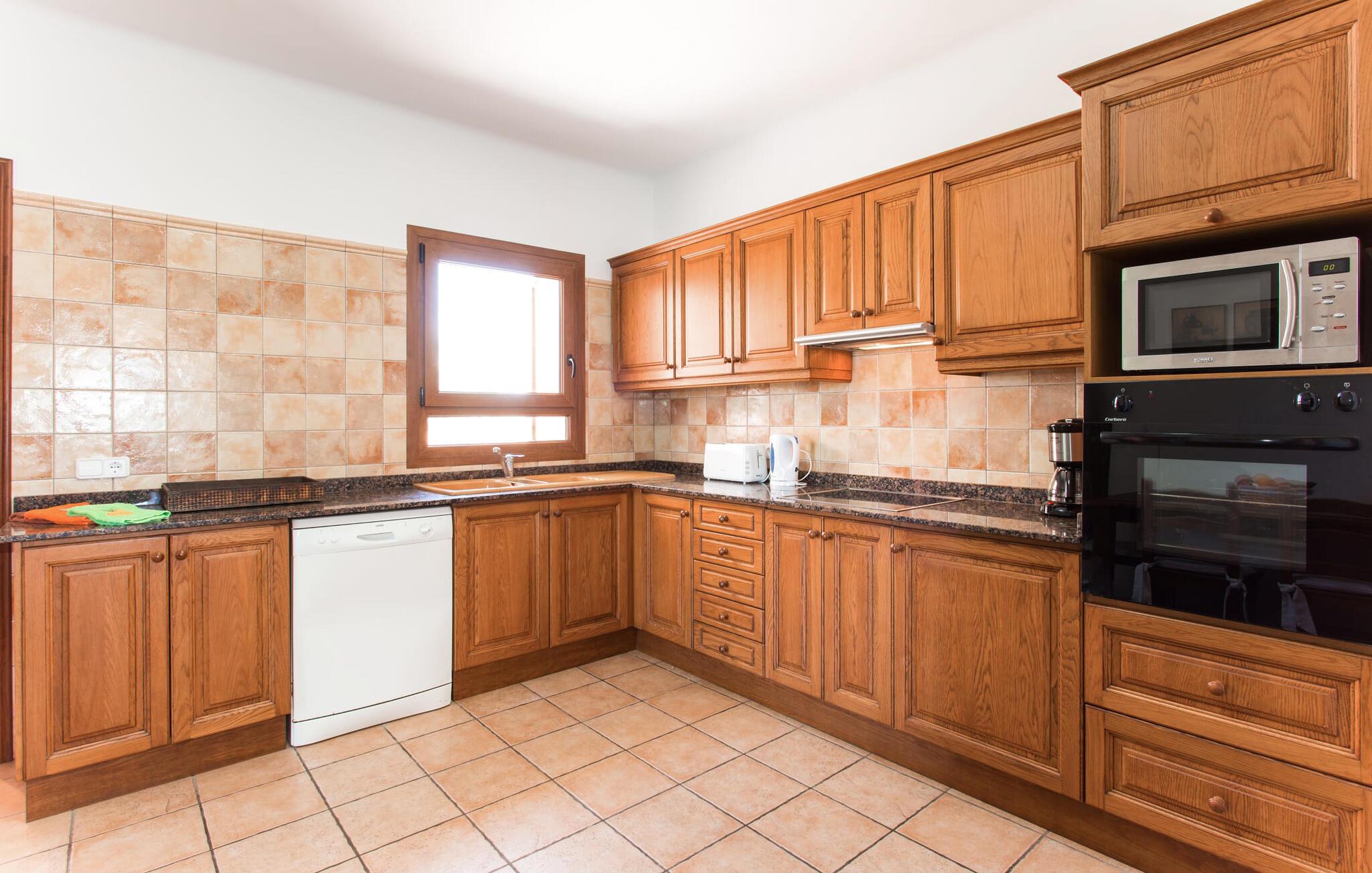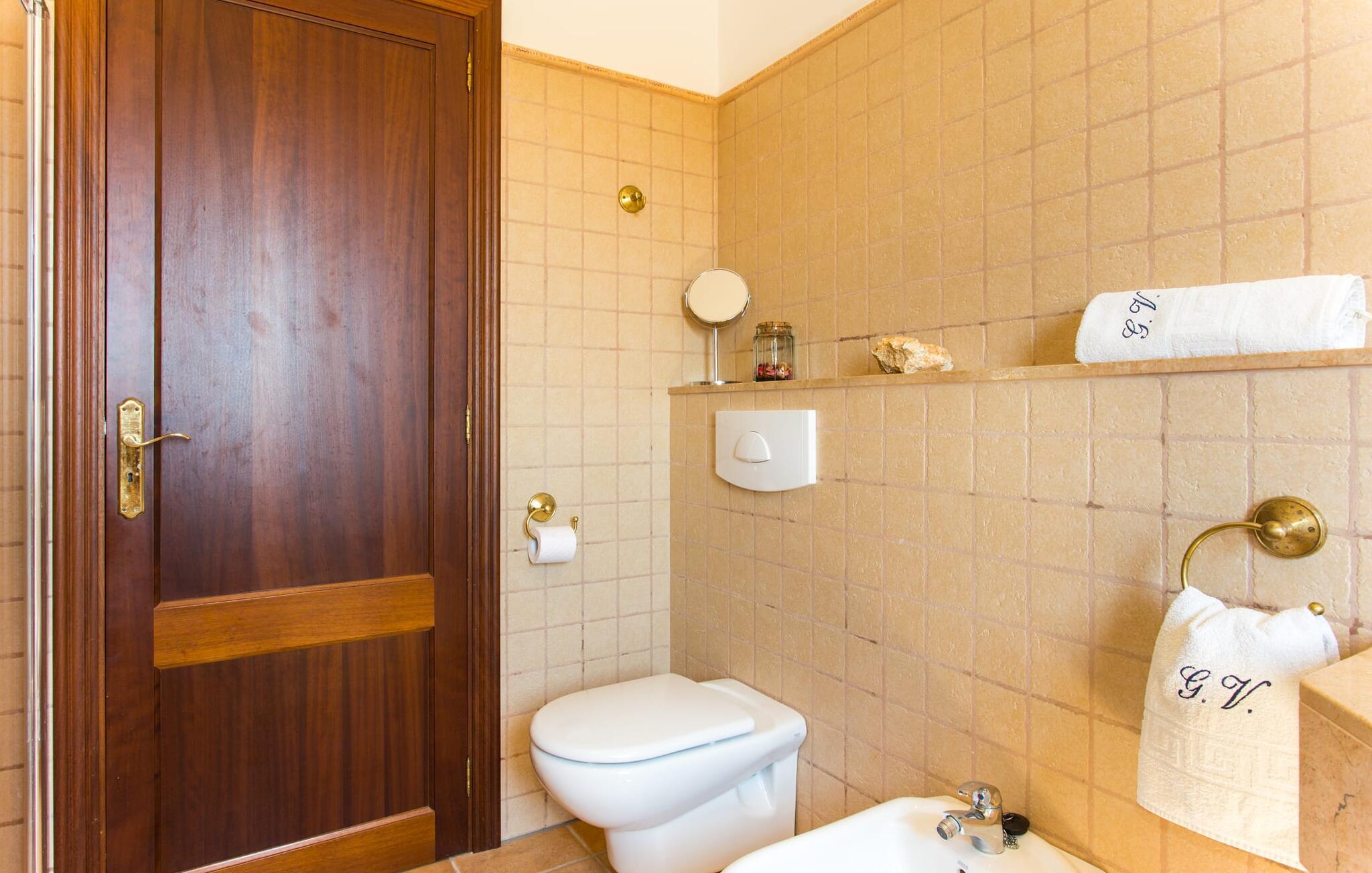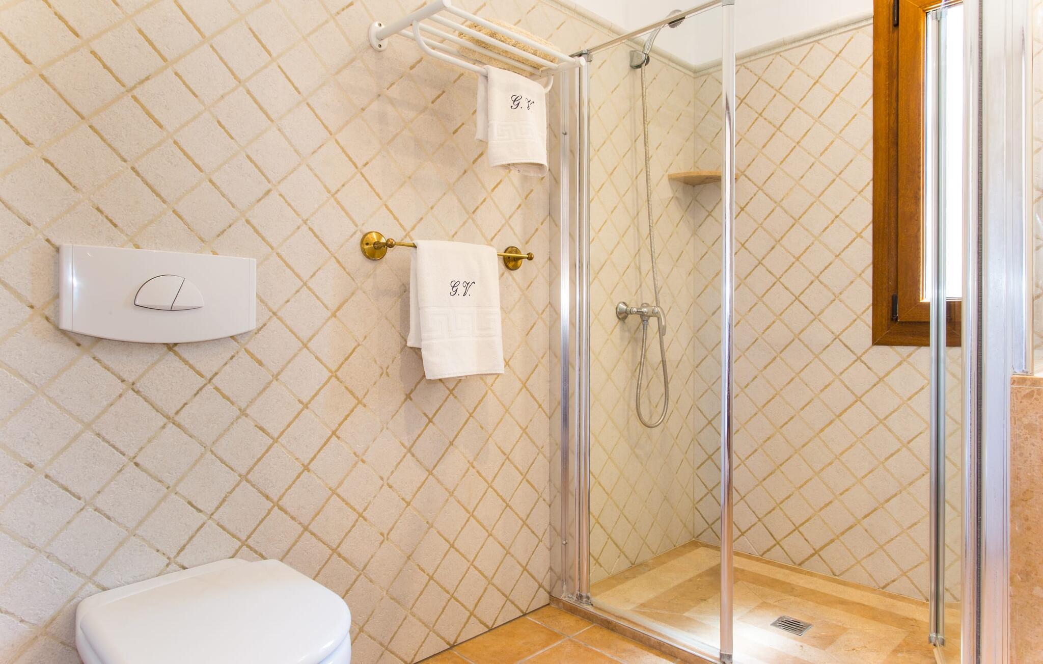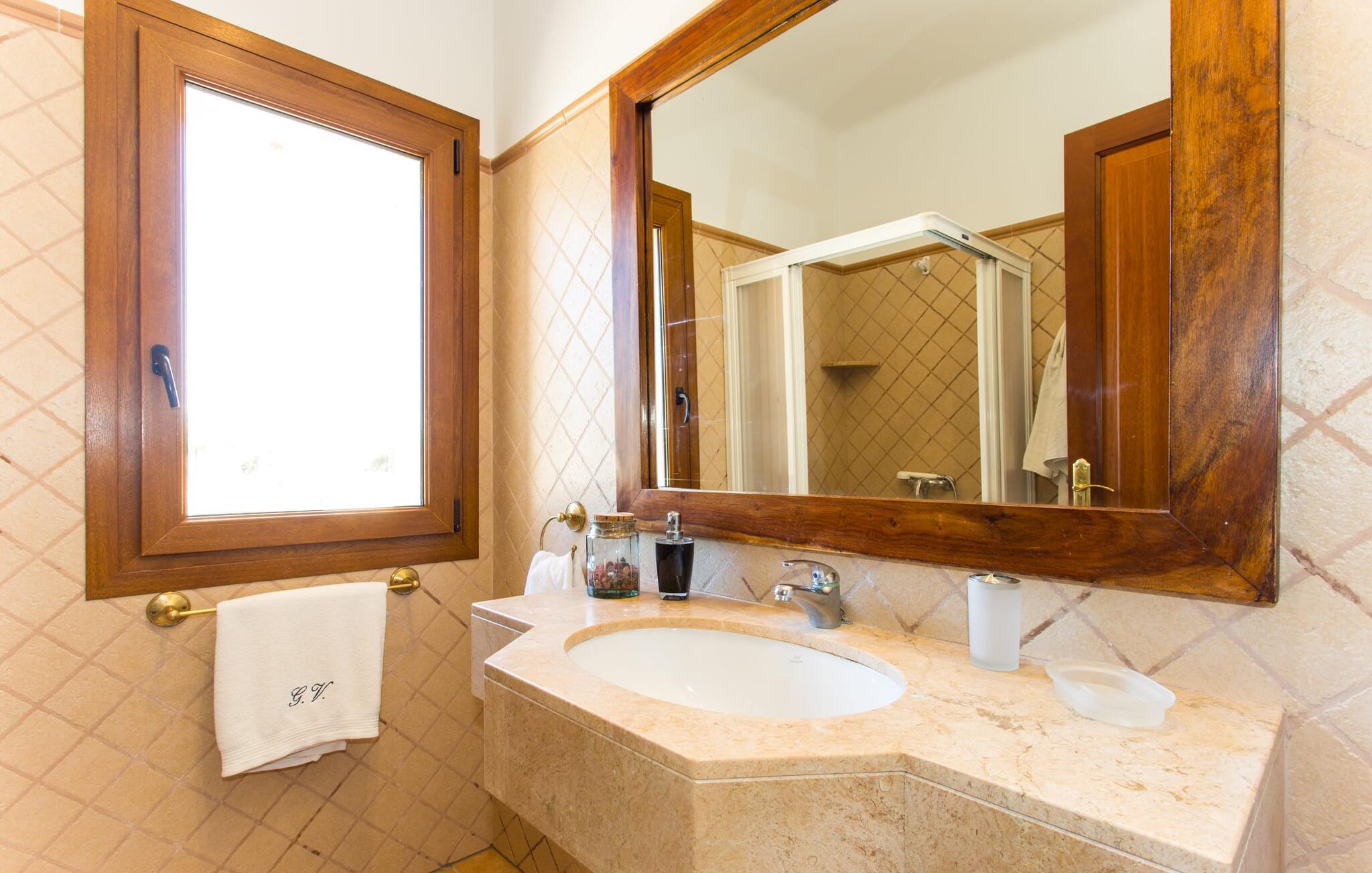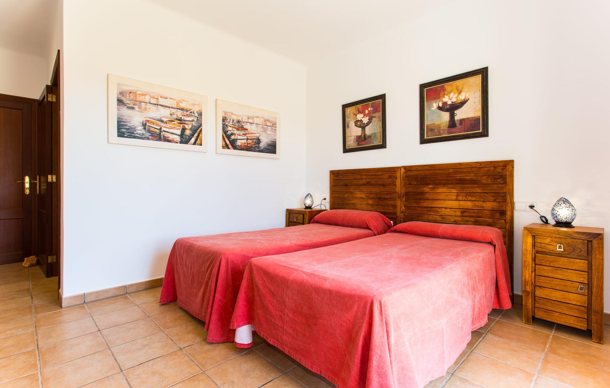 På en klar solskinsdag tager vi til villaen "Cas Fidever" efter at være blevet inviteret på en sightseeingtur af ejeren Miquel. Efter en dejlig køretur gennem landskabet omkring villaen er vi nysgerrige på ejendommen og bliver mødt med en varm velkomst. Det er et yderst smukt sommerhus og fremstår meget velholdt. Det første Miquel viser os er det utroligt alsidige udendørsområde. Ejendommen er omgivet af frodigt middelhavsgrønt og har nogle spektakulære områder til at tilbringe hele dagen udendørs, som vi bestemt skal se nærmere på. Mellem huset og poolen er der en stor overdækket terrasse, der omkranser en del af bygningen. Det er lidt forhøjet og byder på en fantastisk udsigt over poolen og haven. På den ene side af terrassen er der et stort, rustikt spisebord, på den anden side er der et opholdsområde med nogle meget behagelige rattanstole. Begge områder er indbydende på hver deres måde, alt efter om I vil spise behageligt udendørs eller slappe af med en kølig drink. I nærheden af spisebordet er der også et lille udekøkken med en muret grill, hvor I kan tilberede lækre måltider om aftenen. Udenfor i haven er der et luftigt, overdækket, pavillonlignende område - her kan I spille bordtennis. Efter et intenst spil bordtennis kan I skylle af i den praktiske udendørs bruser og derefter hoppe direkte ind i den luksuriøse swimmingpool, som er et rigtigt syn med sine udsmykkede flisetrin og mørkeblå trim. Bassinets dybde varierer mellem 1,20 m og 1,85 m. Når I er klar til at slappe af, kan I finde jer tilpas på græsplænen eller på de lidt mere behagelige liggestole ved poolkanten, evt. med parasoller. Og I skal nok finde en måde at afgøre, hvem der må ligge på den smukke udendørs daybed smukt placeret foran en bred naturstensmur. Nu er vi virkelig spændte på at se indersiden af dette hus. Er indersiden af villaen lige så smuk som det, vi lige har set her? Det er det bestemt! Det første, vi bemærker, er, hvor let og behagelig atmosfæren er her. De lyse hvide vægge i kombination med møblernes overvejende naturlige brune toner skaber en stemning af afslappet komfort, der tiltrækker og inviterer jer til at blive hængende. I stueetagen er der det primære opholds- og spiseområde, et stort køkken og tre smagfuldt indrettede soveværelser med aircondition samt tre moderne badeværelser. Sofaer med leopardtryk skaber en slags safaristemning i stuen, hvor I kan slappe af og læse lidt, lytte til musik, se en god film på tv eller surfe på internettet – her er mere end nok at lave. Og på køligere aftener bidrager en pejs til den hyggelige atmosfære. En bred stenbuegang fører til en ret statelig spiseplads, hvis I kunne tænke jer at nyde et lækkert måltid indendørs. Herfra er der kun få skridt til det rummelige køkken, som er fuldt udstyret med komfur, ovn, mikroovn, køleskab, opvaskemaskine, elkedel og Melitta kaffemaskine. Den er rummelig nok til, at flere personer kan tilberede gode måltider sammen. Der er endda plads til et ekstra spisebord, der komfortabelt kan rumme op til seks personer. Ovenpå er der endnu et indbydende, airconditioneret soveværelse med en-suite badeværelse og en lille tagterrasse med spektakulær udsigt. Placeringen af denne villa kunne ikke være bedre, da kystområdet omkring den sydlige spids af øen er spækket med unikke bugter med fine sandstrande, der skråner blidt ud i havet. Der er desuden en landevej ca. 300 m fra boligen, som giver mulighed for hurtigt at nå mange smukke udflugtsmål i området. Ud over Cala d'Or (4,5 km) er Santanyí (11 km) og S'Horta (4 km) større byer i nærheden, som begge byder på fremragende shoppingmuligheder. I er også meget tæt på "Parc natural de Mondragó", som med sine seværdigheder som sjældne orkideer og over 70 forskellige fuglearter gør dette naturreservat unikt og absolut et besøg værd. Villaen "Cas Fidever" ligger på en 9.000 m² stor grund i det sydlige Mallorcas landskab, direkte ved indgangen til Cala d'Or. Havet ligger kun godt en kilometer fra dette feriehus. Det er kun omkring 5 minutter i bil til det smukke feriested Cala d'Or, et dejligt sted at slentre eller spise i en af restauranterne. I umiddelbar nærhed er der talrige attraktive sandbugter som Cala Gran og Cala Esmeralda, hver mellem 4 og 5 km væk.