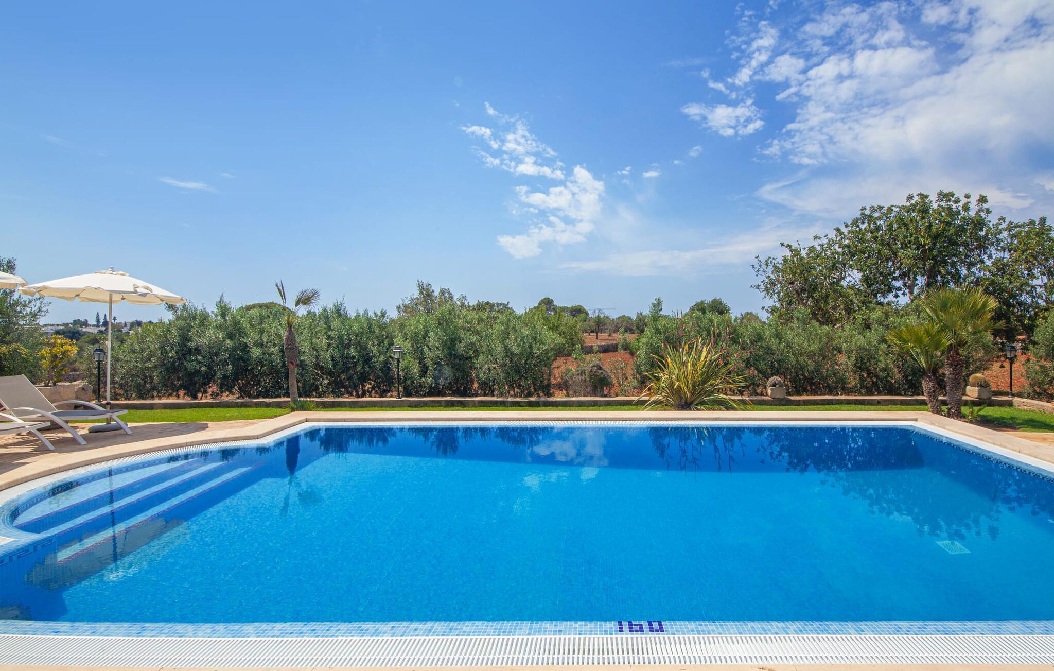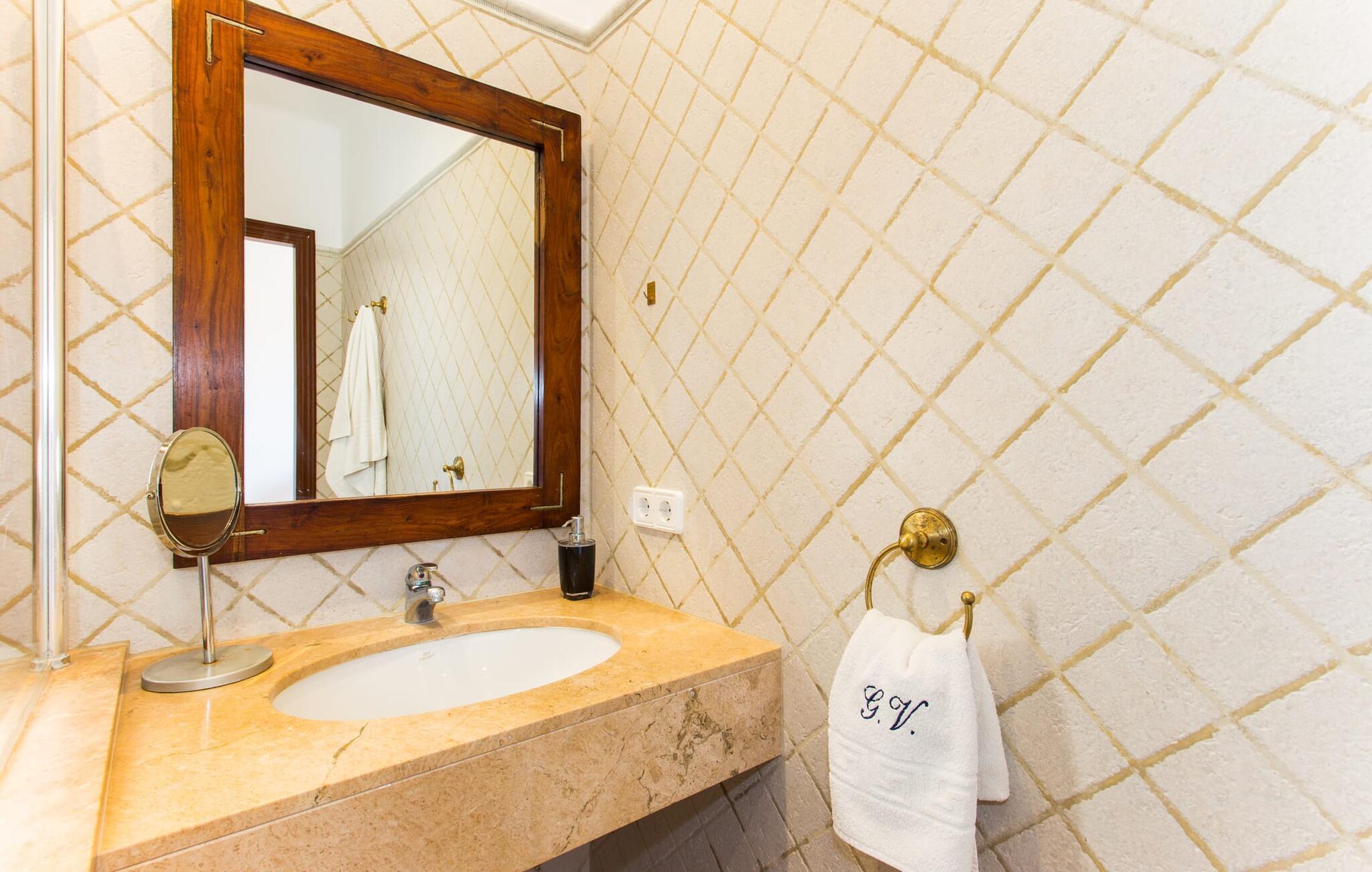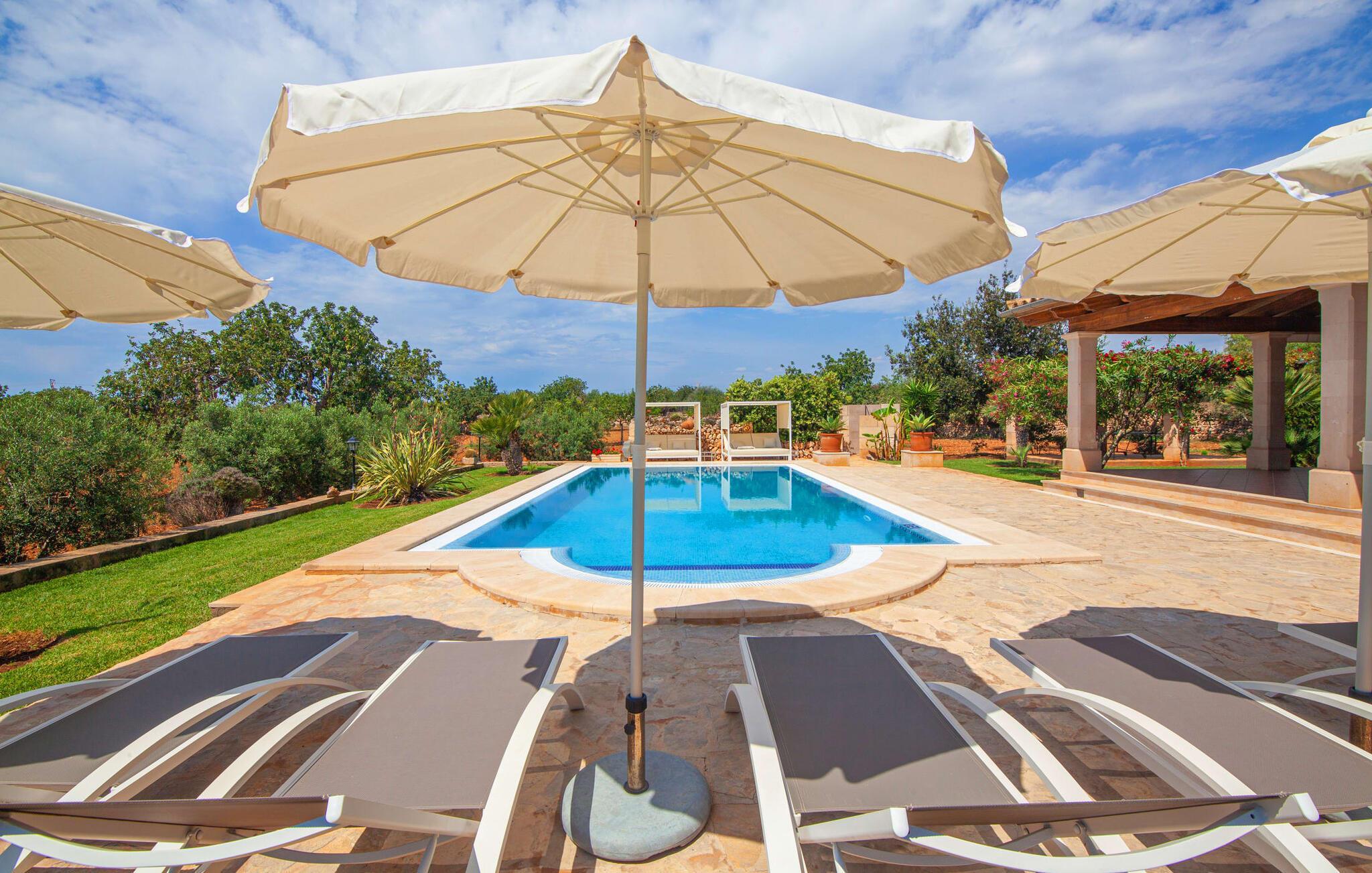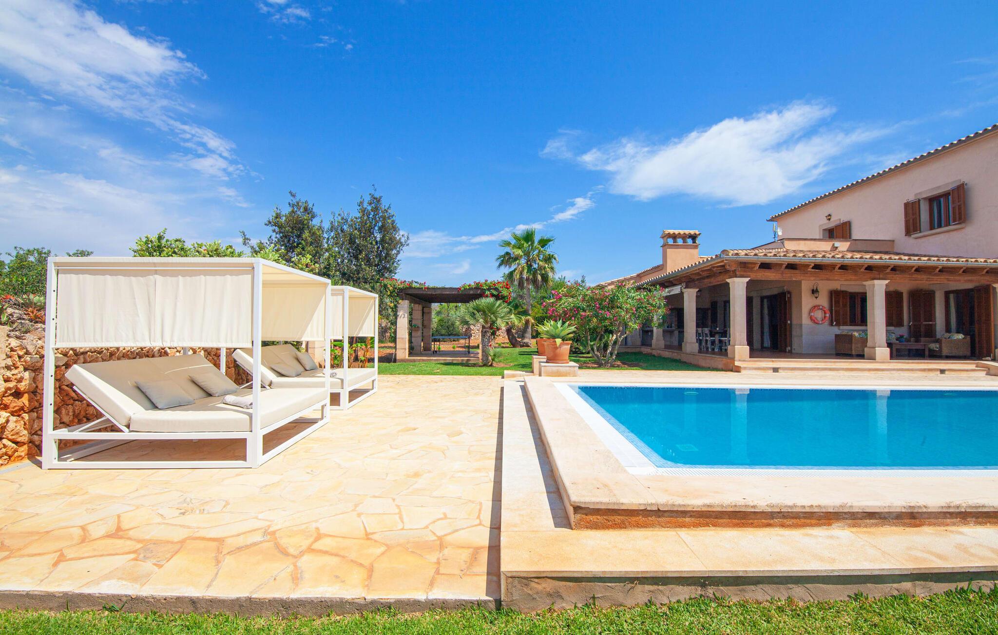 På en klar solskinsdag tager vi til villaen "Cas Fidever" efter at være blevet inviteret på en sightseeingtur af ejeren Miquel. Efter en dejlig køretur gennem landskabet omkring villaen er vi nysgerrige på ejendommen og bliver mødt med en varm velkomst. Det er et yderst smukt sommerhus og fremstår meget velholdt. Det første Miquel viser os er det utroligt alsidige udendørsområde. Ejendommen er omgivet af frodigt middelhavsgrønt og har nogle spektakulære områder til at tilbringe hele dagen udendørs, som vi bestemt skal se nærmere på. Mellem huset og poolen er der en stor overdækket terrasse, der omkranser en del af bygningen. Det er lidt forhøjet og byder på en fantastisk udsigt over poolen og haven. På den ene side af terrassen er der et stort, rustikt spisebord, på den anden side er der et opholdsområde med nogle meget behagelige rattanstole. Begge områder er indbydende på hver deres måde, alt efter om du vil spise behageligt udendørs eller slappe af med en kølig drink. I nærheden af spisebordet er der også et lille udekøkken med en muret grill, hvor du kan tilberede lækre måltider om aftenen. Udenfor i haven er der et luftigt, overdækket, pavillonlignende område - her kan du spille bordtennis. Efter et intenst spil bordtennis kan du skylle af i den praktiske udendørs bruser og derefter hoppe direkte ind i den luksuriøse swimmingpool, som er et rigtigt syn med sine udsmykkede flisetrin og mørkeblå trim. Bassinets dybde varierer mellem 1,20 m og 1,85 m. Når du er klar til at slappe af, kan du finde dig tilpas på græsplænen eller på de lidt mere behagelige liggestole ved poolkanten, evt. med parasoller. Og du skal nok finde en måde at afgøre, hvem der må ligge på den smukke udendørs daybed smukt placeret foran en bred naturstensmur. Dette er et Fincallorca feriehus. Nu er vi virkelig spændte på at se indersiden af dette hus. Er indersiden af villaen lige så smuk som det, vi lige har set her? Det er det bestemt! Det første, vi bemærker, er, hvor let og behagelig atmosfæren er her. De lyse hvide vægge i kombination med møblernes overvejende naturlige brune toner skaber en stemning af afslappet komfort, der tiltrækker og inviterer dig til at blive hængende. I stueetagen er der det primære opholds- og spiseområde, et stort køkken og tre smagfuldt indrettede soveværelser med aircondition samt tre moderne badeværelser. Sofaer med leopardtryk skaber en slags safaristemning i stuen, hvor du kan slappe af og læse lidt, lytte til musik, se en god film på tv eller surfe på internettet – her er mere end nok at lave. Og på køligere aftener bidrager en pejs til den hyggelige atmosfære. En bred stenbuegang fører til en ret statelig spiseplads, hvis du kunne tænke dig at nyde et lækkert måltid indendørs. Herfra er der kun få skridt til det rummelige køkken, som er fuldt udstyret med komfur, ovn, mikroovn, køleskab, opvaskemaskine, elkedel og Melitta kaffemaskine. Den er rummelig nok til, at flere personer kan tilberede gode måltider sammen. Der er endda plads til et ekstra spisebord, der komfortabelt kan rumme op til seks personer. Ovenpå er der endnu et indbydende, airconditioneret soveværelse med en-suite badeværelse og en lille tagterrasse med spektakulær udsigt. Placeringen af denne villa kunne ikke være bedre, da kystområdet omkring den sydlige spids af øen er spækket med unikke bugter med fine sandstrande, der skråner blidt ud i havet. Der er desuden en landevej ca. 300 m fra boligen, som giver mulighed for hurtigt at nå mange smukke udflugtsmål i området. Ud over Cala d'Or (4,5 km) er Santanyí (11 km) og S'Horta (4 km) større byer i nærheden, som begge byder på fremragende shoppingmuligheder. Du er også meget tæt på "Parc natural de Mondragó", som med sine seværdigheder som sjældne orkideer og over 70 forskellige fuglearter gør dette naturreservat unikt og absolut et besøg værd. Villaen "Cas Fidever" ligger på en 9.000 m² stor grund i det sydlige Mallorcas landskab, direkte ved indgangen til Cala d'Or. Havet ligger kun godt en kilometer fra dette feriehus. Det er kun omkring 5 minutter i bil til det smukke feriested Cala d'Or, et dejligt sted at slentre eller spise i en af restauranterne. I umiddelbar nærhed er der talrige attraktive sandbugter såsom Cala Gran og Cala Esmeralda, hver mellem 4 og 5 km væk.