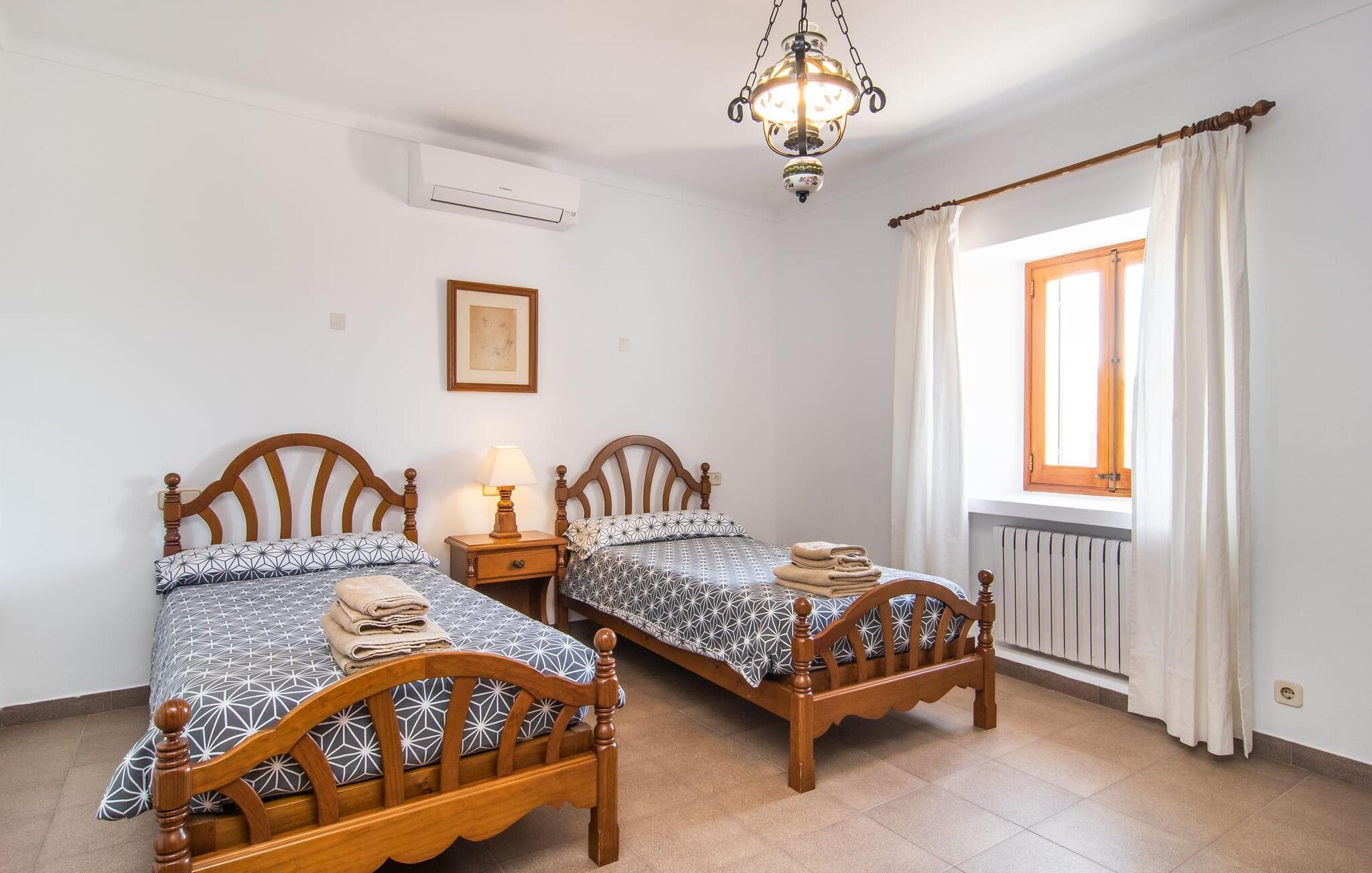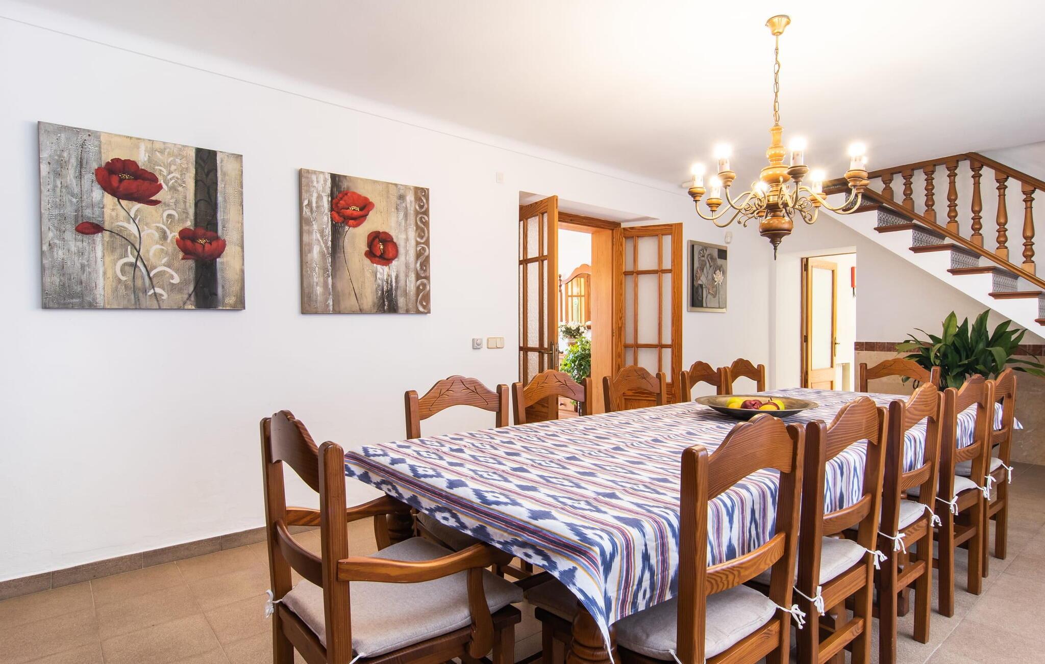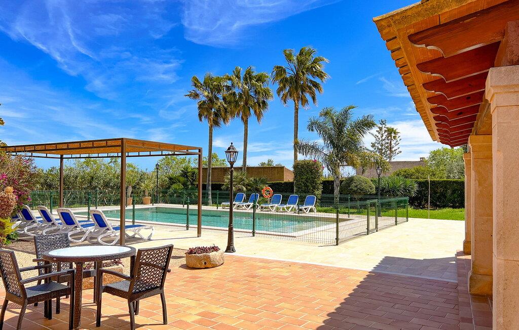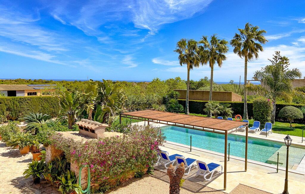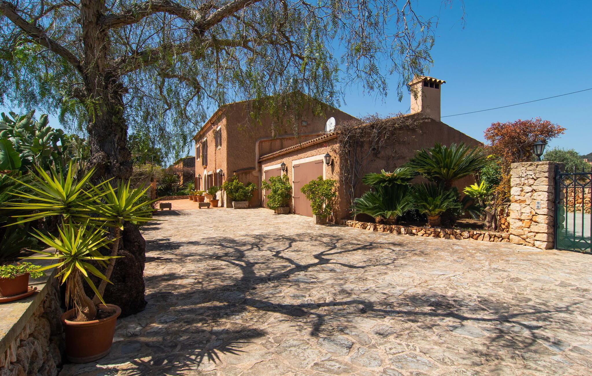 “Cas Munji er et glimrende eksempel på et mallorcinsk feriehus til familierejser. Det er kendetegnet ved et rummeligt, to-etagers landsted, der har en omfattende naturstenterrasse, en stor pool og et smukt anlagt haveområde. Farverig bougainvillea og majestætiske palmer. Engager jer med andre arter af palmetræer og kaktusser. På de delvist overdækkede terrasser finder I masser af siddepladser til alle sammen eller som et retræte til en god snak. Venligt, da der er en bekvem trappeindgang, og området er sikret af et hegn, er bordtennisbordet yderligere sjovt for unge og gamle, mens nogle kan slappe af i solen på en af liggestolene eller spille et spil bordtennis, mens andre kan svømme i poolen Gæsterne er allerede ved at forberede grillaftenen og middagen sammen. På denne måde vil I føle jer hjemme på ferien og kan helt hengive jer til luksuriøs afslapning. Mallorca venter på jer - ikke kun med middelhavsoverfloden i denne betagende smukke region, men også med de traditionelle møbler i dette familievenlige landsted. Med opdelingen i et master bedroom og et børneværelse pr. etage samt et femte dobbeltværelse har I og to familier og venner et rummeligt feriehus i mallorcansk tradition til rådighed. De veludstyrede afslapningsrum har naturligvis alle aircondition. De smarte badeværelser (fire i alt plus et femte udendørs badeværelse) imponerer også med deres varierede farvemøbler. Mallorcansk hygge med traditionelle indretningselementer venter jer også i de to hyggelige stuer - en på hver etage. Hvis I ikke ønsker at bruge udekøkkenet, finder I her et fremragende udstyret køkken, der vil give jer ren glæde, mens I laver mad. Hyggelighed – uanset om det er ved langbordet indenfor eller under den overdækkede terrasse – og afslappet ferienydelse for venner og familie er meget vigtigt på "Cas Munji". Hvad venter I på? Med det klassiske bondehus "Cas Munji" går drømmen om et idyllisk pool-feriehus til to familier i opfyldelse. Det traditionelle landsted har en førsteklasses beliggenhed i den sydøstlige del af Mallorca nær S'Horta. Stedet, der er blevet skånet for masseturisme, bevarer sin autenticitet og byder samtidig på indkøbsmuligheder og hyggelige caféer. Det er kun 5 minutters kørsel til havet, som også er inden for synsvidde. Drømmebugter som Sa Nau eller Cala d'Or venter jer der, omgivet af duftende fyrretræer.