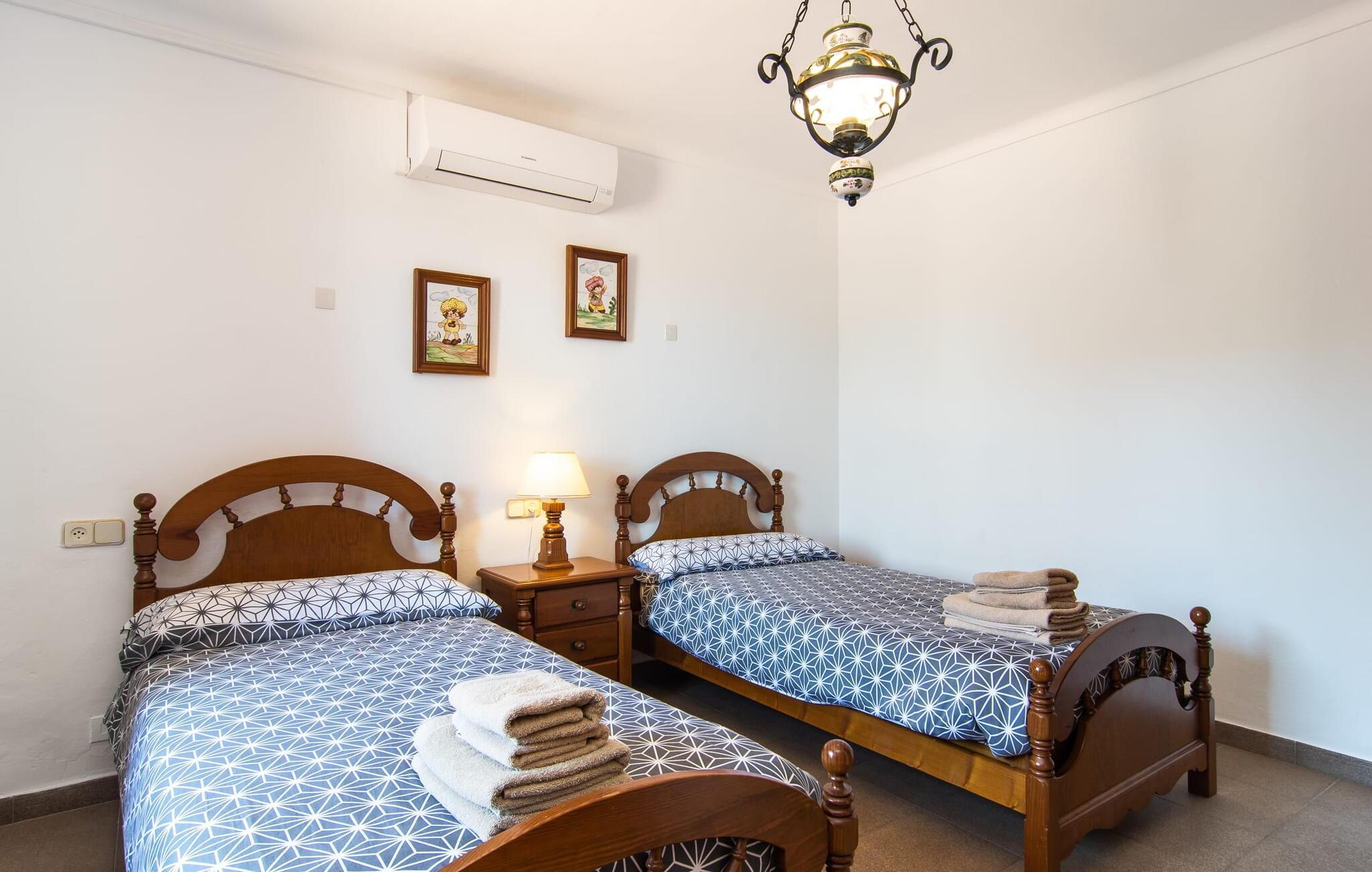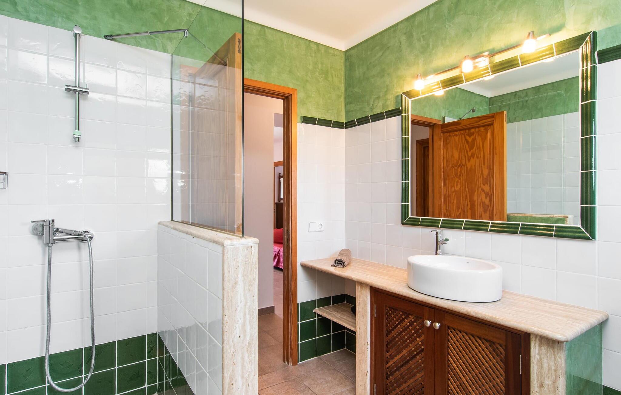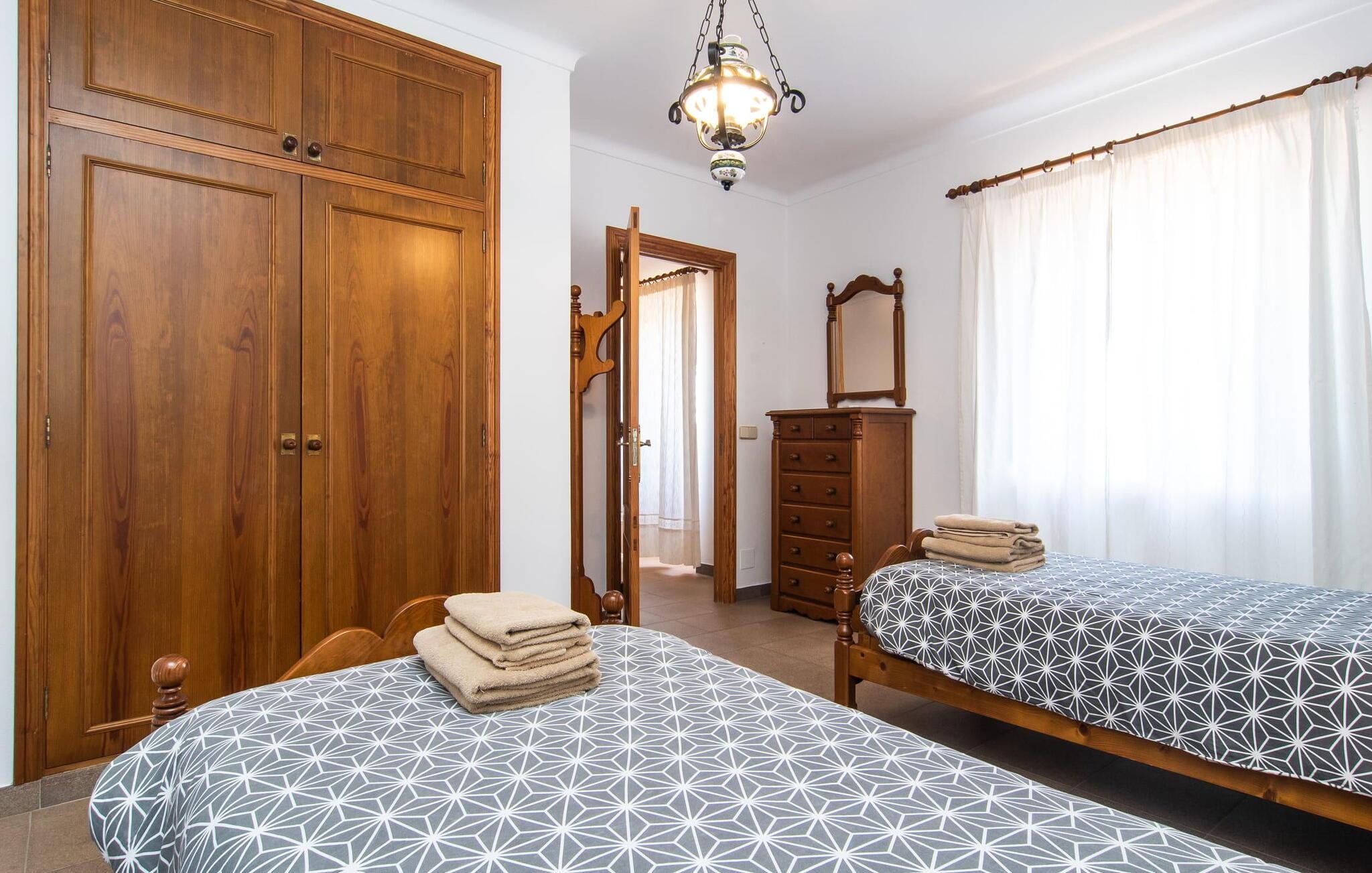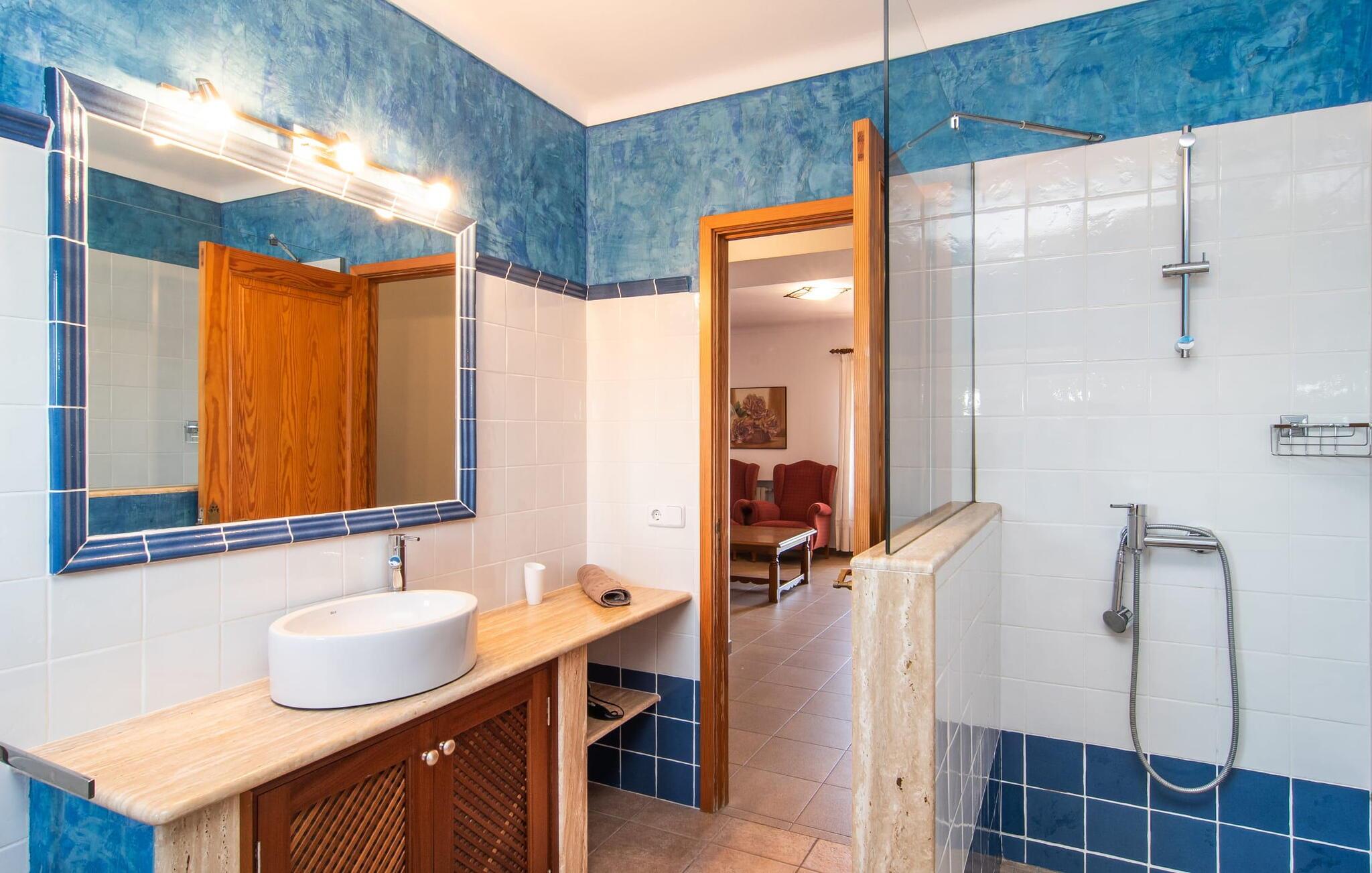 “Cas Munji er et glimrende eksempel på et mallorcinsk feriehus til familierejser. Det er kendetegnet ved et rummeligt, to-etagers landsted, der har en omfattende naturstenterrasse, en stor pool og et smukt anlagt haveområde. Farverig bougainvillea og majestætiske palmer. Engager jer med andre arter af palmetræer og kaktusser. På de delvist overdækkede terrasser finder I masser af siddepladser til alle sammen eller som et retræte til en god snak. Venligt, da der er en bekvem trappeindgang, og området er sikret af et hegn, er bordtennisbordet yderligere sjovt for unge og gamle, mens nogle kan slappe af i solen på en af liggestolene eller spille et spil bordtennis, mens andre kan svømme i poolen Gæsterne er allerede ved at forberede grillaftenen og middagen sammen. På denne måde vil I føle jer hjemme på ferien og kan helt hengive jer til luksuriøs afslapning. Mallorca venter på jer - ikke kun med middelhavsoverfloden i denne betagende smukke region, men også med de traditionelle møbler i dette familievenlige landsted. Med opdelingen i et master bedroom og et børneværelse pr. etage samt et femte dobbeltværelse har I og to familier og venner et rummeligt feriehus i mallorcansk tradition til rådighed. De veludstyrede afslapningsrum har naturligvis alle aircondition. De smarte badeværelser (fire i alt plus et femte udendørs badeværelse) imponerer også med deres varierede farvemøbler. Mallorcansk hygge med traditionelle indretningselementer venter jer også i de to hyggelige stuer - en på hver etage. Hvis I ikke ønsker at bruge udekøkkenet, finder I her et fremragende udstyret køkken, der vil give jer ren glæde, mens I laver mad. Hyggelighed – uanset om det er ved langbordet indenfor eller under den overdækkede terrasse – og afslappet ferienydelse for venner og familie er meget vigtigt på "Cas Munji". Hvad venter I på? Med det klassiske bondehus "Cas Munji" går drømmen om et idyllisk pool-feriehus til to familier i opfyldelse. Det traditionelle landsted har en førsteklasses beliggenhed i den sydøstlige del af Mallorca nær S'Horta. Stedet, der er blevet skånet for masseturisme, bevarer sin autenticitet og byder samtidig på indkøbsmuligheder og hyggelige caféer. Det er kun 5 minutters kørsel til havet, som også er inden for synsvidde. Drømmebugter som Sa Nau eller Cala d'Or venter jer der, omgivet af duftende fyrretræer.