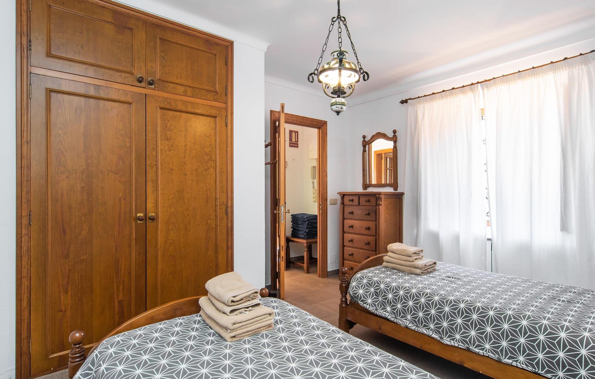 “Cas Munji er et glimrende eksempel på et mallorcinsk feriehus til familierejser. Det er kendetegnet ved et rummeligt, to-etagers landsted, der har en omfattende naturstenterrasse, en stor pool og et smukt anlagt haveområde. Farverig bougainvillea og majestætiske palmer. Engager dig med andre arter af palmetræer og kaktusser. På de delvist overdækkede terrasser finder I masser af siddepladser til alle sammen eller som et retræte til en god snak. Venligt, da der er en bekvem trappeindgang, og området er sikret af et hegn, er bordtennisbordet yderligere sjovt for unge og gamle, mens nogle kan slappe af i solen på en af liggestolene eller spille et spil bordtennis, mens andre kan svømme i poolen Gæsterne er allerede ved at forberede grillaftenen og middagen sammen. På denne måde vil du føle dig hjemme på ferien og kan helt hengive dig til luksuriøs afslapning. Dette er et Fincallorca feriehus. Mallorca venter på dig - ikke kun med middelhavsoverfloden i denne betagende smukke region, men også med de traditionelle møbler i dette familievenlige landsted. Med opdelingen i et master bedroom og et børneværelse pr. etage samt et femte dobbeltværelse har du og to familier og venner et rummeligt feriehus i mallorcansk tradition til rådighed. De veludstyrede afslapningsrum har naturligvis alle aircondition. De smarte badeværelser (fire i alt plus et femte udendørs badeværelse) imponerer også med deres varierede farvemøbler. Mallorcansk hygge med traditionelle indretningselementer venter dig også i de to hyggelige stuer - en på hver etage. Hvis du ikke ønsker at bruge udekøkkenet, finder du her et fremragende udstyret køkken, der vil give dig ren glæde, mens du laver mad. Hyggelighed – uanset om det er ved langbordet indenfor eller under den overdækkede terrasse – og afslappet ferienydelse for venner og familie er meget vigtigt på "Cas Munji". Hvad venter du på? Med det klassiske bondehus "Cas Munji" går drømmen om et idyllisk pool-feriehus til to familier i opfyldelse. Det traditionelle landsted har en førsteklasses beliggenhed i den sydøstlige del af Mallorca nær S'Horta. Stedet, der er blevet skånet for masseturisme, bevarer sin autenticitet og byder samtidig på indkøbsmuligheder og hyggelige caféer. Det er kun 5 minutters kørsel til havet, som også er inden for synsvidde. Drømmebugter som Sa Nau eller Cala d'Or venter dig der, omgivet af duftende fyrretræer.