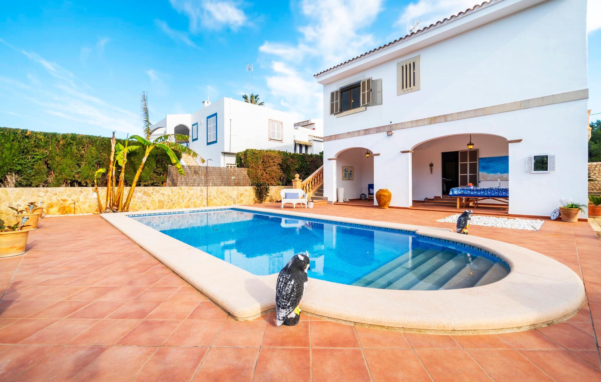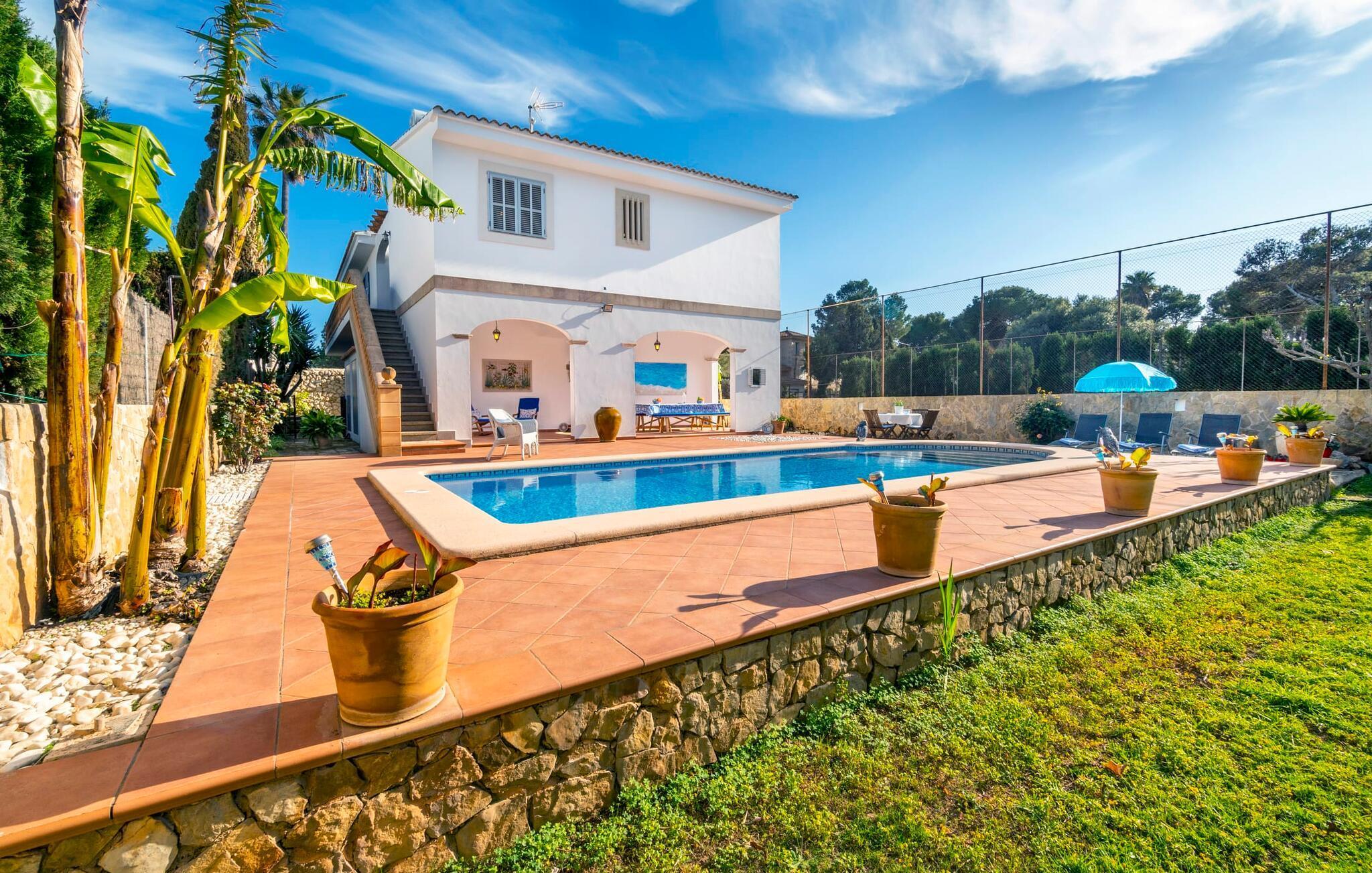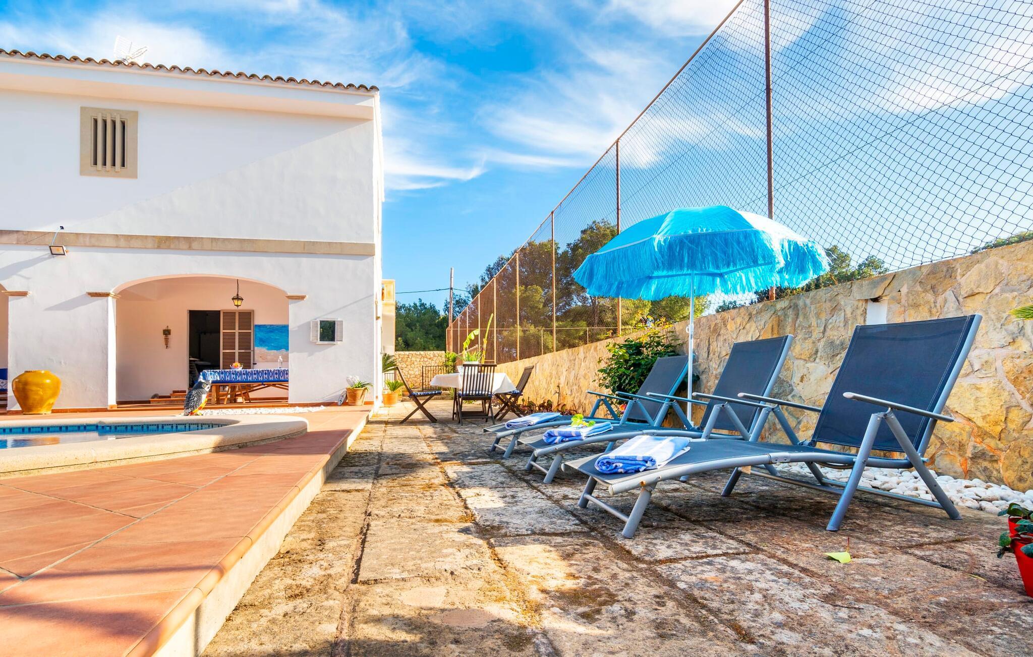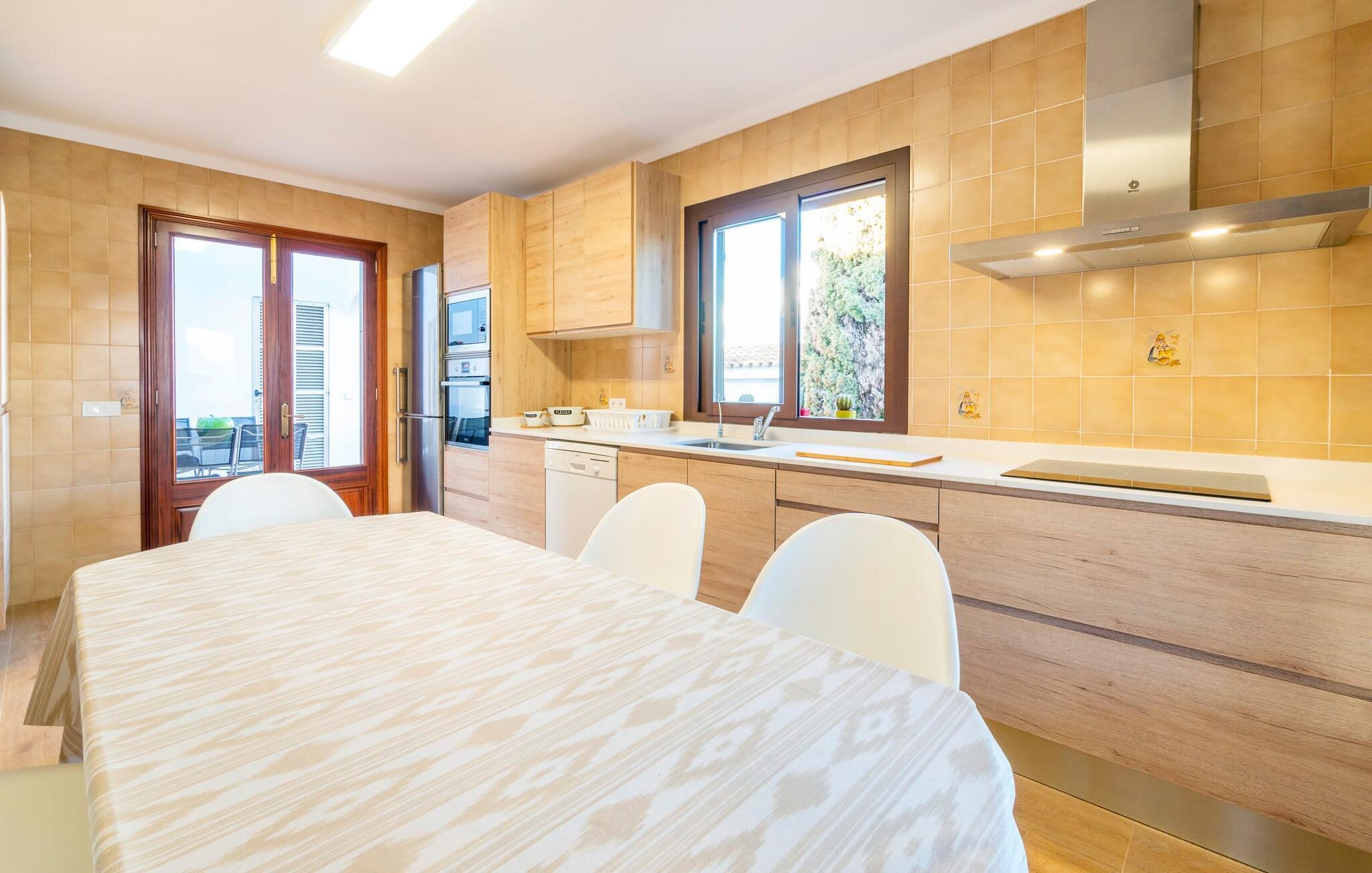 Kystvillaen "Cas Nin des Port" ligger på en udsat beliggenhed i havnebyen Porto Cristo og nær de berømte dragehuler på et næs ved fyrtårnet. Den maritime charme præger ikke kun naturhavnen, men har også en varig indflydelse på karakteren af det lyse hvide sommerhus. På trods af beliggenheden i en urbanisering, kan du nyde privatlivets fred i en solid Mallorca-villa, der er adskilt fra naboerne og beskyttet mod udsigt. Mosaikpoolen med komfortable trapper er havens centrum og fungerer som et behageligt sted at køle af. De komfortable liggestole kan placeres på den tilstødende græsplæne eller på solterrassen. Du kan slappe skønt af på den skyggefulde terrasse under stuen. Overordnet set er der talrige siddemuligheder, som naturligvis også egner sig til en afslappet grillaften. Udfordr dine medrejsende til et spil bordtennis – selv i skyggen og beskyttet mod vejret. Til siden af haveniveauet fører en trappe til en tagterrasse med spiseplads. Fra tagterrasserne er der direkte adgang til det indvendige område, som udelukkende ligger på øverste etage. Det moderne og fuldt udstyrede køkken med al mulig teknisk komfort er direkte forbundet med den udendørs spiseplads. På den anden halvdel af terrassen er der en hyggelig lounge med havudsigt, som er forbundet med stuen via en dobbeltdør. Det fine og lyse feriehus imponerer med en smuk blanding af mallorcansk tradition, som sikrer komfort og er behageligt kombineret med moderne elegance. Boligarealet er smart opdelt, så en til to familier eller seks personer kan slappe perfekt sammen. Ud over tre soveværelser med aircondition, er der et trendy indendørs badeværelse med bruseniche, et separat gæstetoilet og et udendørs badeværelse. Oplev ren feriefølelse i det private, familievenlige og veludstyrede rækkehus "Cas Nin des Port" og nyd jeres tid sammen med afslapning på Mallorca - hele året rundt og til en absolut overkommelig pris, især i den attraktive lavsæson. Den elegante villa "Cas Nin des Port" emmer af maritim charme som rækkehus med pool, grøn gårdhave og tagterrasse. Nyd havudsigten på kanten af en velholdt urbanisering. Dette er beliggende i det sydlige område af kystbyen Porto Cristo. Du kan nå havet eller den smukke by med dens naturlige havn til fods. Nærheden til promenaden med talrige barer og pubber er det, der gør dette klassiske feriehus så attraktivt. Ud over den nærmeste bystrand i Porto Cristo, venter andre fantastiske bugter på dig efter en kort køretur. Dette er et Fincallorca feriehus.