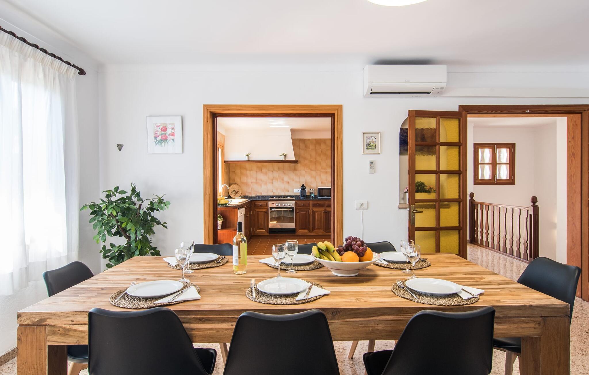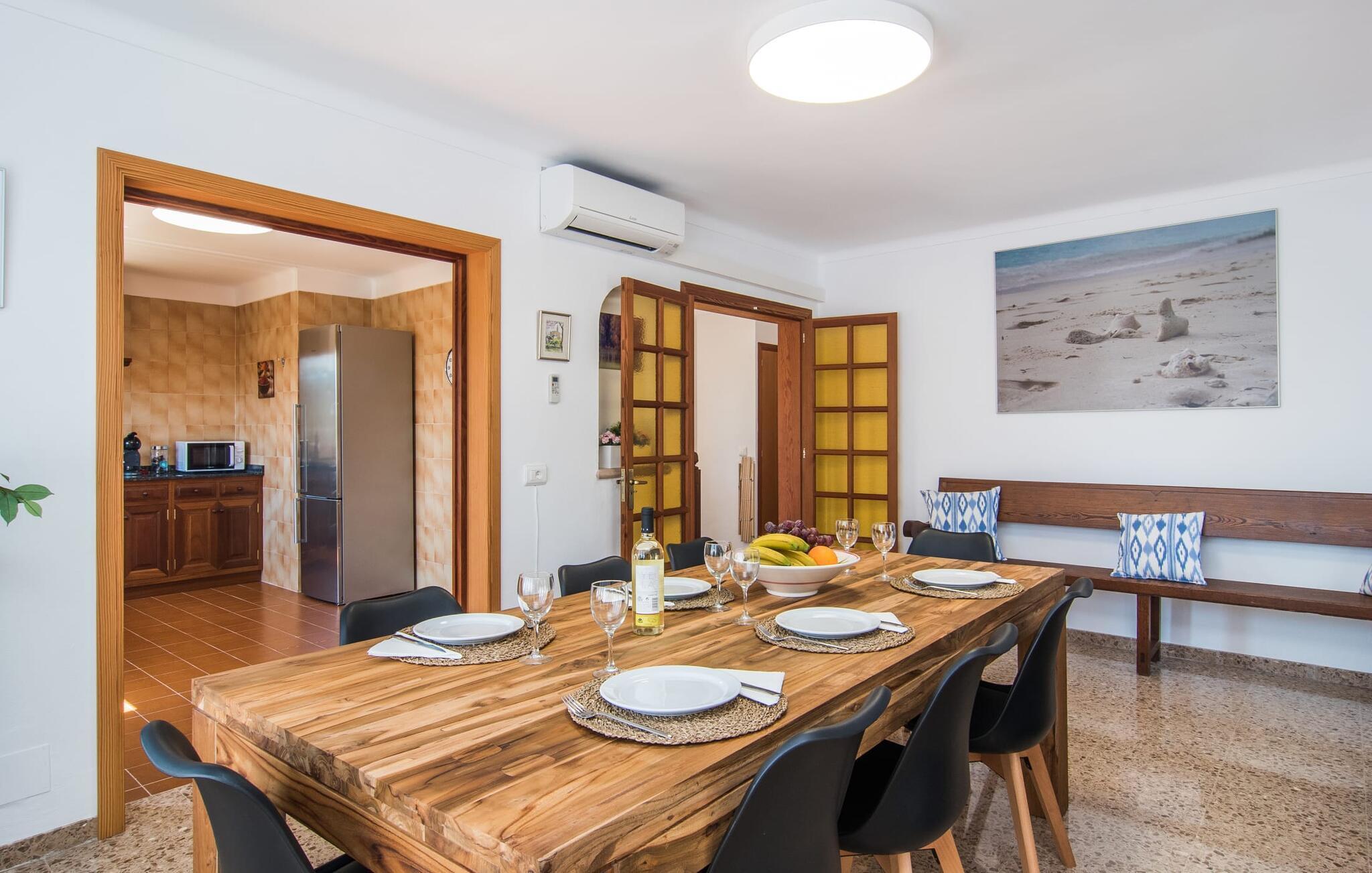 Et charmerende hus, nænsomt renoveret og med alle de bekvemmeligheder du kan ønske dig på ferien, kombineret med en ufattelig smuk beliggenhed - villaen "Cas Padrins de Cala Figuera" er placeret over den smukke lille bugt Cala Figuera og dens talrige, delvist overdækkede bugter og terrasseområder giver dig enestående udsigt over det turkise vand, der glitrer i solen, og bådene, der blidt vugger på bølgerne. For eksempel kan du spise din morgenmad udendørs med udsigt over havet! Men det bliver endnu bedre: Bakkehuset har rummelige havearealer med masser af plads til leg for børn og en privat sti ned til havet. Derfor kan du slappe af og tage en forfriskende svømmetur væk fra øens offentlige strande. Og på vej tilbage via en muret trappe kan du bruge den udendørs bruser til at skylle saltvandet af med det samme. Har du lyst til en kort siesta efter det forfriskende Middelhav? Gå derefter til den store tagterrasse med komfortable liggestole. Her kan du lade solen varme dig og simpelthen flygte fra hverdagen. Dette er et Fincallorca feriehus. Interiøret i "Cas Padrins de Cala Figuera" er vidunderligt lyst og åbent; Alle værelser er bekvemt placeret på én etage. Hele huset er indrettet i frisk hvidt, og indretningen er en lige så vellykket og unik kombination af rustik mallorcansk og moderne chic. Indgangen leder ind i den åbne stue og spisestue - her er der ikke kun to indbydende og komfortable sofaer, hvor du kan tilbringe en aften eller to med at se tv, men også det store spisebord parret med smagfulde og elegante stole. Dette skaber en visuel overgang til det åbne køkken, som er smukt vedligeholdt og udstyret med udstyr af høj kvalitet: Det byder på alt, der ville gøre en spirende kok glad. Føler du dig lidt træt efter en lang, solrig dag på Mallorca, kan du blot tage til et af de tre stilfulde og diskret indrettede dobbeltværelser, som hver har et stort indbygget klædeskab til din mangfoldige feriegarderobe. De to velholdte og meget rene badeværelser ligger på samme gang mellem soveværelserne. Hver har sit eget badekar. Dit sommerhus ligger ikke kun ved den smukke bugt Cala Figuera med sit turkisblå vand, som kan nås direkte fra huset via en privat sti. Det er også indlejret i et typisk middelhavslandskab, som er perfekt til lange, afslappende gåture. Du finder adskillige butikker, restauranter af høj kvalitet og smukke caféer i både den lille fiskerby Cala Figuera, som nemt kan nås med din lejebil kun 4,1 km væk via en tydeligt hørbar vej (afhængig af vindretningen), og Cala Santanyí 4,5 km væk. Denne klassiske strand- og badeby har en familievenlig sandstrand i en beskyttet bugt, ideel til svømning og snorkling. En charmerende villa på en bjergskråning med udsigt over en malerisk bugt og privat adgang til det glitrende turkise vand - "Cas Padrins de Cala Figuera" er en drømmeferie, der går i opfyldelse! Dette nænsomt renoverede hus har en uforlignelig beliggenhed direkte ved havet i den sydlige del af Mallorca, omgivet af et smukt middelhavslandskab. Du skal køre mindre end 5 km med din lejebil til både butikkerne og den smukke sandstrand Cala Santanyí.