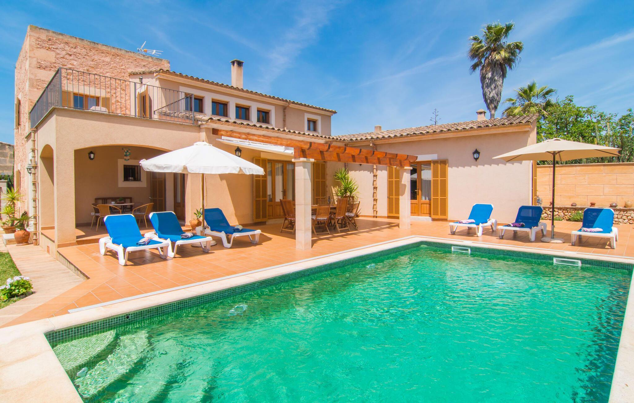 Omgivet af et idyllisk landskab og en vidunderlig middelhavshave byder villaen "Cas Padrins de Campos" nær Campos sine gæster velkommen. Udendørsområdet er kendetegnet ved en have og poolterrasse omgivet af palmer, der tilbyder en række attraktive steder at slappe af. Plænen er et fantastisk sted for børn at lege. Der er endda en lille rutsjebane og venter på de små. Medfølgende forældre kan slappe af lige ved siden af eller i den store pool, som også er ideel til vandlege og plaske. Hvis du ikke vil hoppe i det kølige vand, kan du nemt komme ind i poolen via en halvcirkelformet trappe. Bagefter kan du slappe af og solbade på en af de medfølgende liggestole. To store parasoller giver skygge, så du kan slappe af efter hjertens lyst og bare slappe af. To overdækkede terrasser tilbyder luftige rum med udsigt over den smukt velplejede og velholdte have. Når vejret er godt, kan I nyde alle måltider sammen omkring en imponerende spisegruppe i træ. Til et solidt måltid er der en muret grill til din rådighed, hvor du kan tilberede friske lokale delikatesser efter din smag. Klassisk, traditionel og mallorcansk – det er de ord, der bedst beskriver villaens indre. Men hvis du straks tænker på noget mørkt, gammelt og malerisk, har du den forkerte idé. Selvom træ er det dominerende element i villaen - i form af lofter, vinduer, døre og indretning - fremstår huset i fremragende stand, rent, lyst, moderne og tidssvarende. Yderligere stilistiske elementer på begge etager omfatter et flisebelagt terracottagulv og lyse vægge overalt. Til dels upudsede brudstensvægge, ældre møbler og en støbejernsovn, hvis rør fører fra stuen via galleriet på anden sal til taget, sætter attraktive accenter. I stueetagen er der udover indgangsområdet den åbne spise- og opholdsstue, det veludstyrede køkken med udgang til terrassen ved poolen, to soveværelser med dobbeltsenge og to badeværelser (en af dem en-suite). Et tilstødende galleri ved siden af stuen, yderligere to soveværelser med dobbeltsenge og et badeværelse fuldender interiøret på øverste etage. Tagterrassen med en vidunderlig panoramaudsigt over det omkringliggende landskab er prikken over i'et. Idyllisk, landligt og afsondret ligger den traditionelle stenbrudsvilla "Cas Padrins de Campos" kun 4 km sydøst for Campos i den sydlige del af øen. Adskillige supermarkeder kan nås i den nærmeste by, kun 10 minutter væk i bil. Der er marked torsdage og lørdage. De paradisiske strande på syd- og sydøstkysten, såsom den naturlige strand Es Trenc eller Cala Mondragó, er kun en kort køretur væk. Øens hovedstad Palma og lufthavnen kan også nås hurtigt via den nærliggende Ma-19-motorvej. Dette er et Fincallorca feriehus.