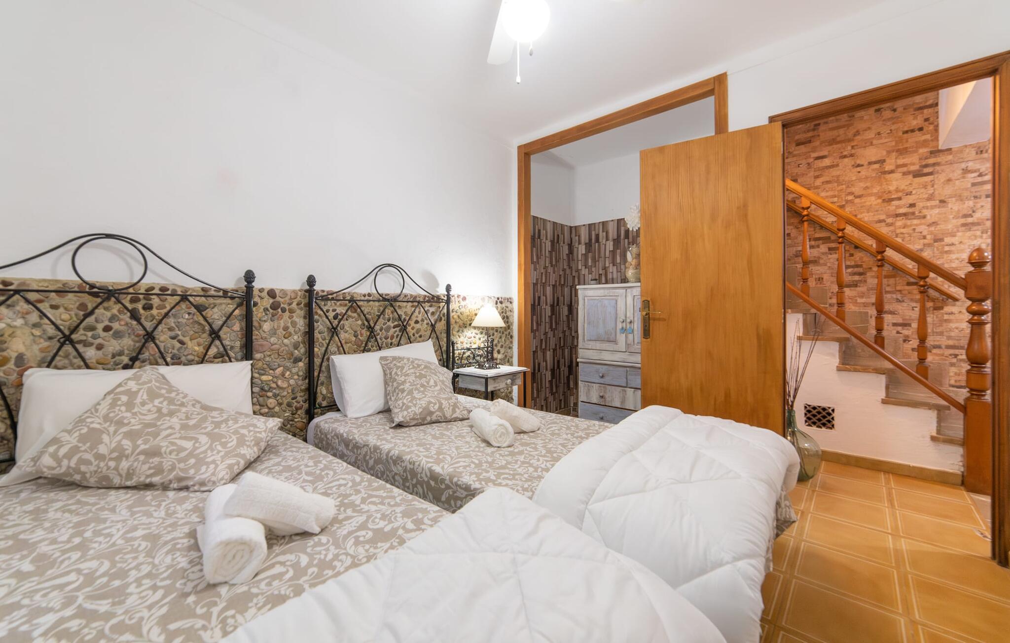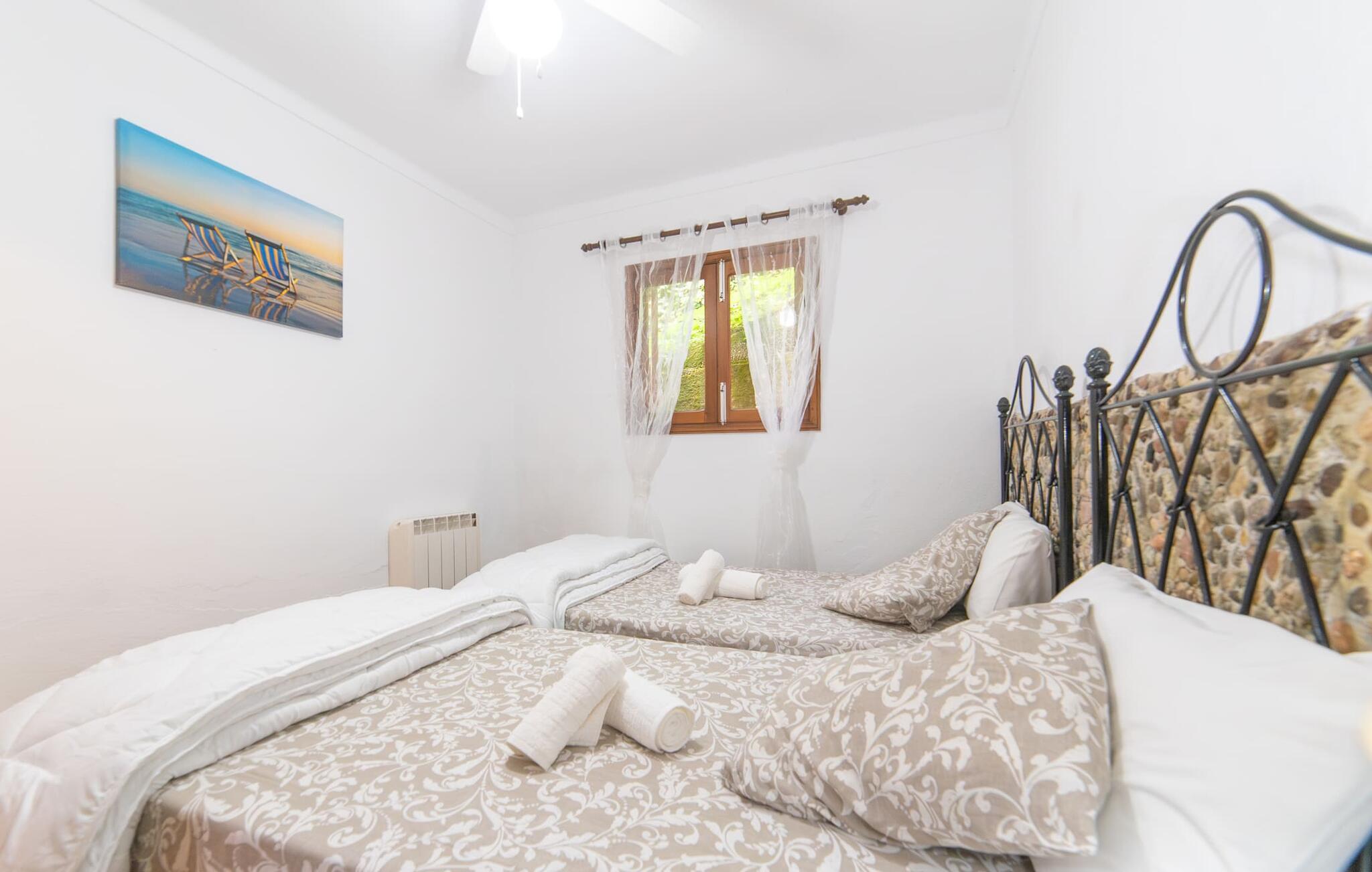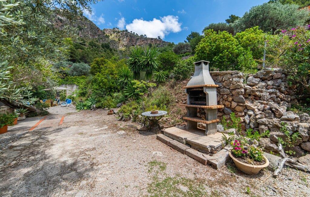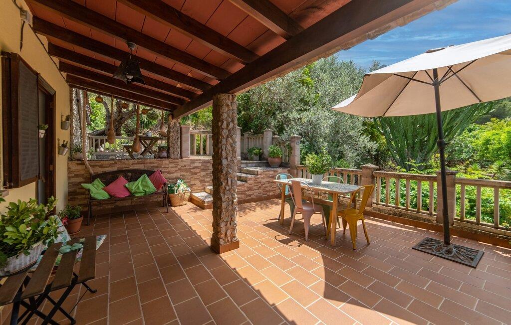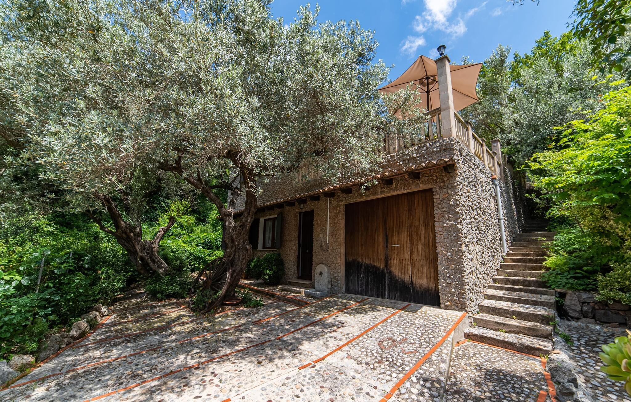 Bjerghytten "Cas Sito" i den nordlige del af Mallorca ligger i den vilde natur i Tramuntana-bjergene. Det giver jer den sjældne mulighed for at vågne op midt i et spektakulært verdensarvssted. Gamle oliventræer og frodige grønne planter danner en skyggefuld jungle omkring de afsondrede terrasser på bjergsidens ejendom, hvilket gør det nemt at slappe af. Selv i de varme sommermåneder. Adgang til ejendommen sker via en indkørsel og de to terrasser på forsiden af huset. Mens den første terrasse byder på en rustik spiseplads i skyggen af frodig vegetation, tilbyder den anden terrasse en fantastisk udsigt over den imponerende bjergfront. Haven byder på en muret grill, et solrigt, afskærmet område med liggestole og flere andre komfortable spisepladser. Indenfor strækker opholdsrummet sig over to plan. Hovedindgangen fører til det øverste niveau med en åben opholdsstue med pejs, spiseplads og et rummeligt, fuldt udstyret køkken. Området har varm/kold aircondition. En trappe fører jer ned til underetagen. Takket være beliggenheden på bjergsiden har de tre dobbeltværelser også udsigt til haven. De tre velholdte soveområder deler et moderne badeværelse med brus. Huset er udstyret med radiatorer, så vandrere og cyklister kan finde et hyggeligt fristed efter lange ture. Bjerghuset ligger på en bjergskråning med frodig natur i centrum af Tramuntana-bjergene i den nordlige del af Mallorca. Cala Tuent-bugten og dens restaurant ligger 13 minutters gang eller 3 minutter i bil. Der er interessante cykel- og vandreruter, for eksempel til reservoirerne Gorg Blau og Cúber.