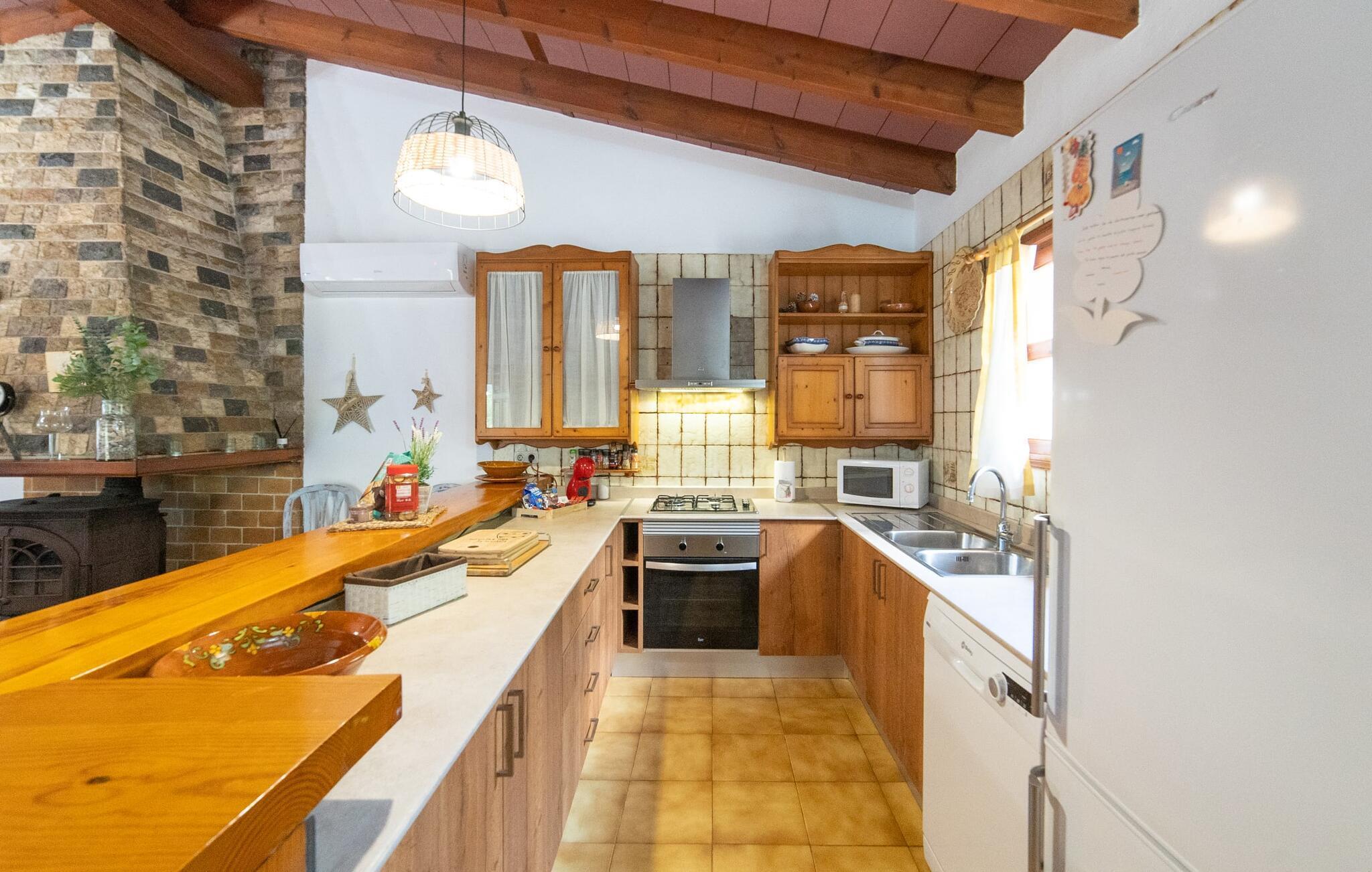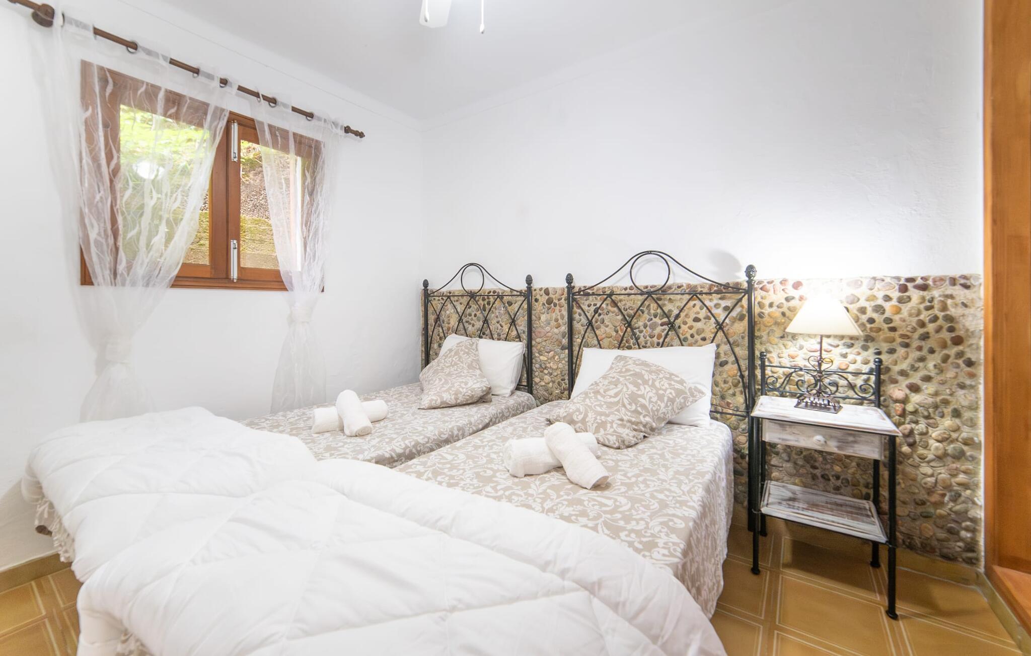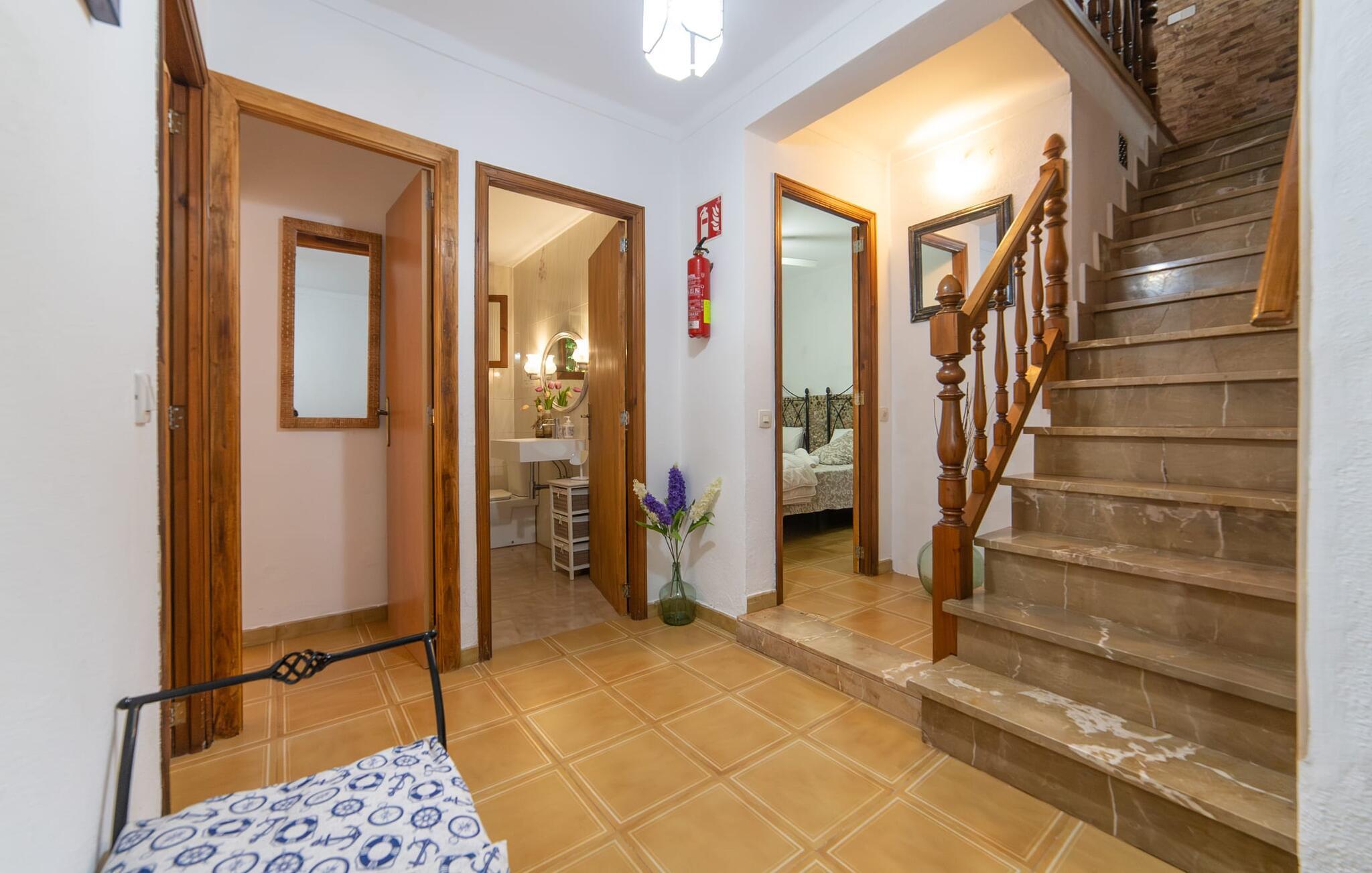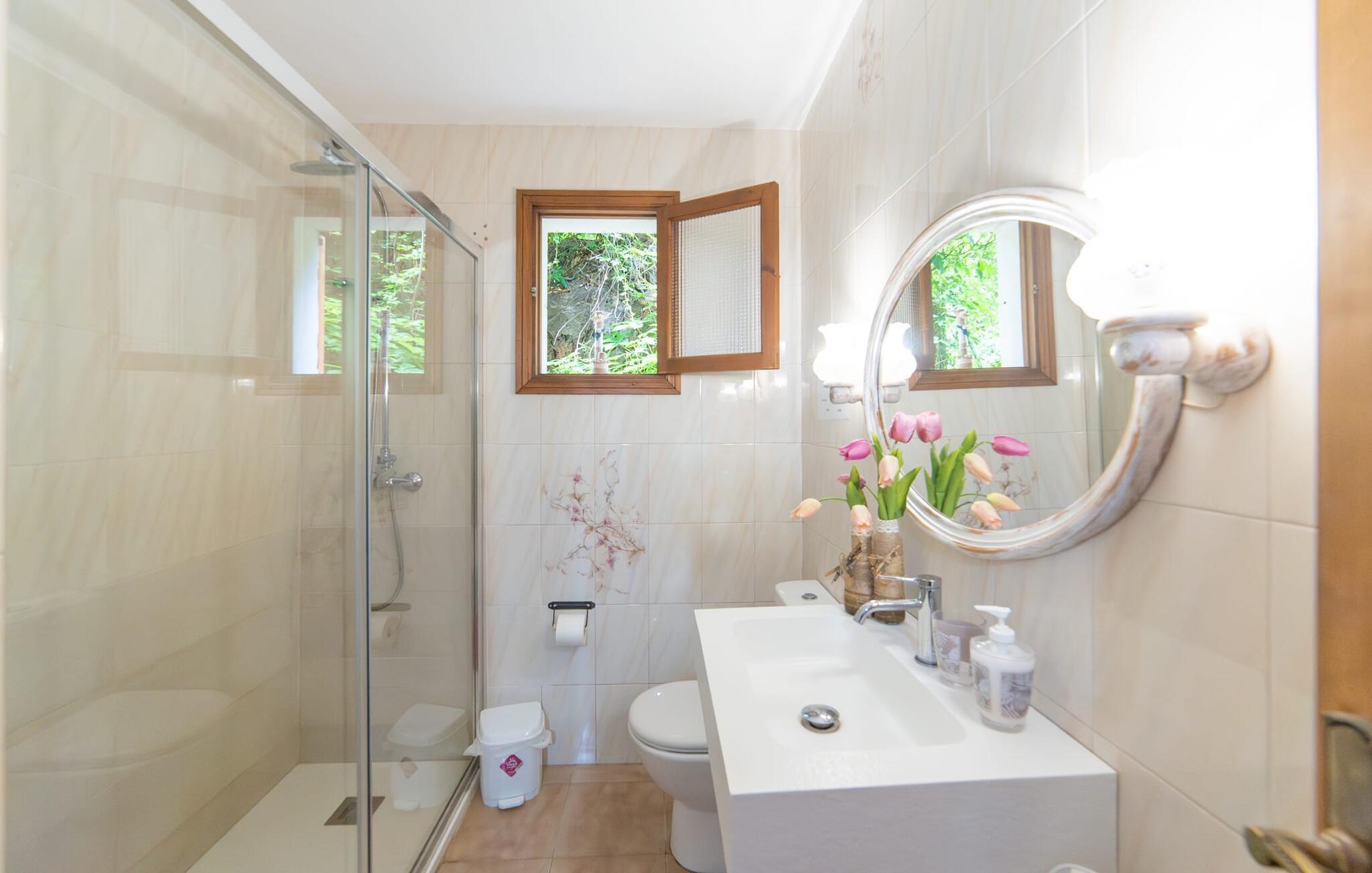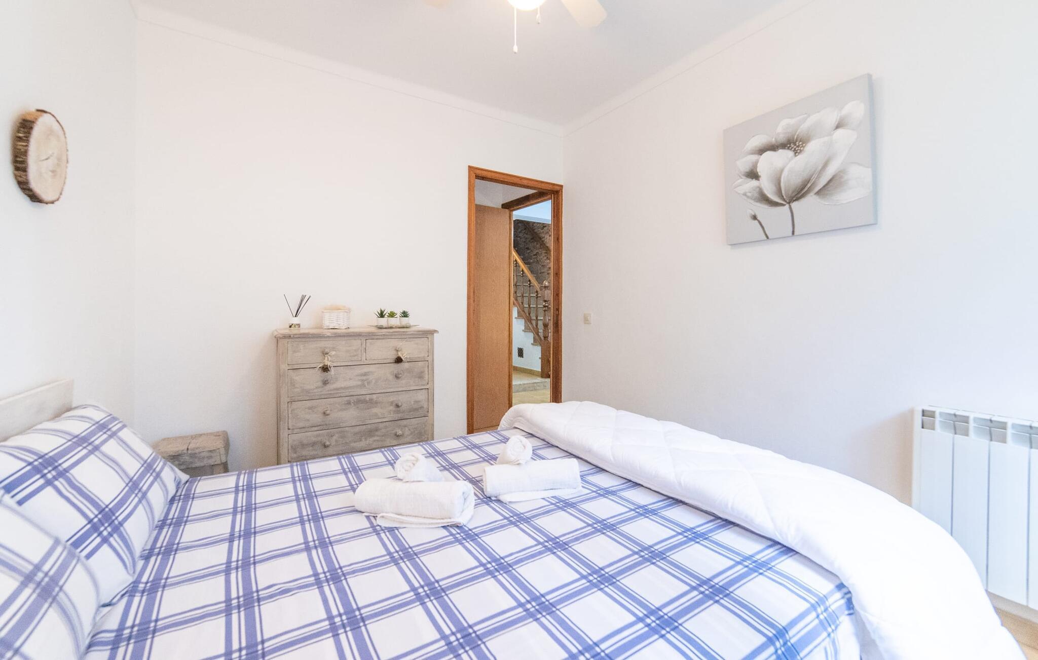 Bjerghytten "Cas Sito" i den nordlige del af Mallorca ligger i den vilde natur i Tramuntana-bjergene. Det giver dig den sjældne mulighed for at vågne op midt i et spektakulært verdensarvssted. Dette er et feriehus i Fincallorca. Gamle oliventræer og frodige grønne planter danner en skyggefuld jungle omkring de afsondrede terrasser på bjergsidens ejendom, hvilket gør det nemt at slappe af. Selv i de varme sommermåneder. Adgang til ejendommen sker via en indkørsel og de to terrasser på forsiden af huset. Mens den første terrasse byder på en rustik spiseplads i skyggen af frodig vegetation, tilbyder den anden terrasse en fantastisk udsigt over den imponerende bjergfront. Haven byder på en muret grill, et solrigt, afskærmet område med liggestole og flere andre komfortable spisepladser. Indenfor strækker opholdsrummet sig over to plan. Hovedindgangen fører til det øverste niveau med en åben opholdsstue med pejs, spiseplads og et rummeligt, fuldt udstyret køkken. Området har varm/kold aircondition. En trappe fører dig ned til underetagen. Takket være beliggenheden på bjergsiden har de tre dobbeltværelser også udsigt til haven. De tre velholdte soveområder deler et moderne badeværelse med brus. Huset er udstyret med radiatorer, så vandrere og cyklister kan finde et hyggeligt fristed efter lange ture. Bjerghuset ligger på en bjergskråning med frodig natur i centrum af Tramuntana-bjergene i den nordlige del af Mallorca. Cala Tuent-bugten og dens restaurant ligger 13 minutters gang eller 3 minutter i bil. Der er interessante cykel- og vandreruter, for eksempel til reservoirerne Gorg Blau og Cúber.