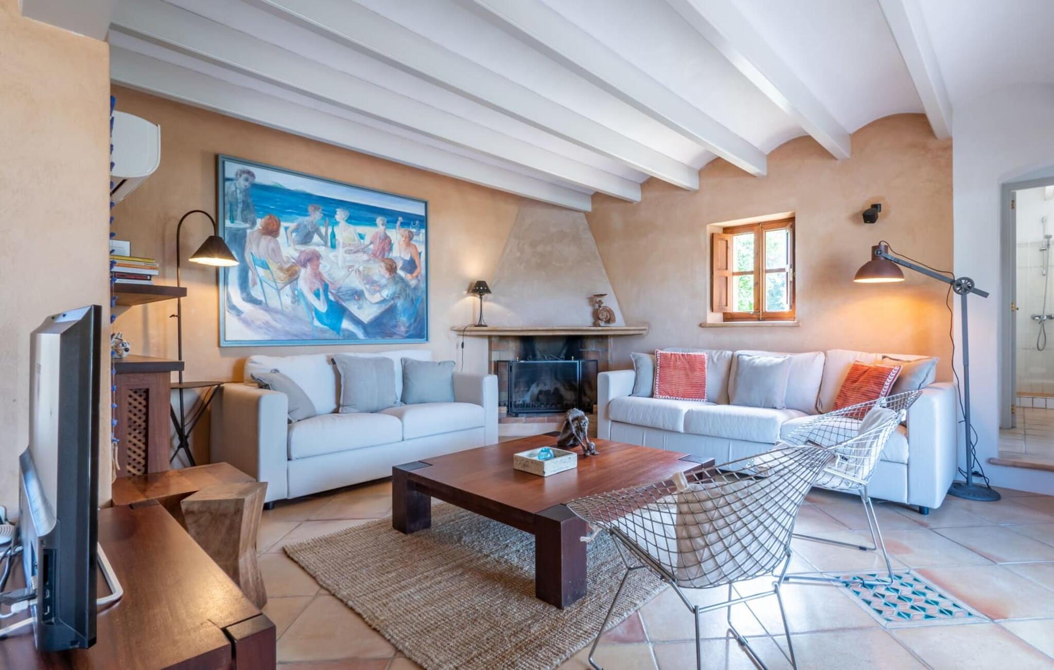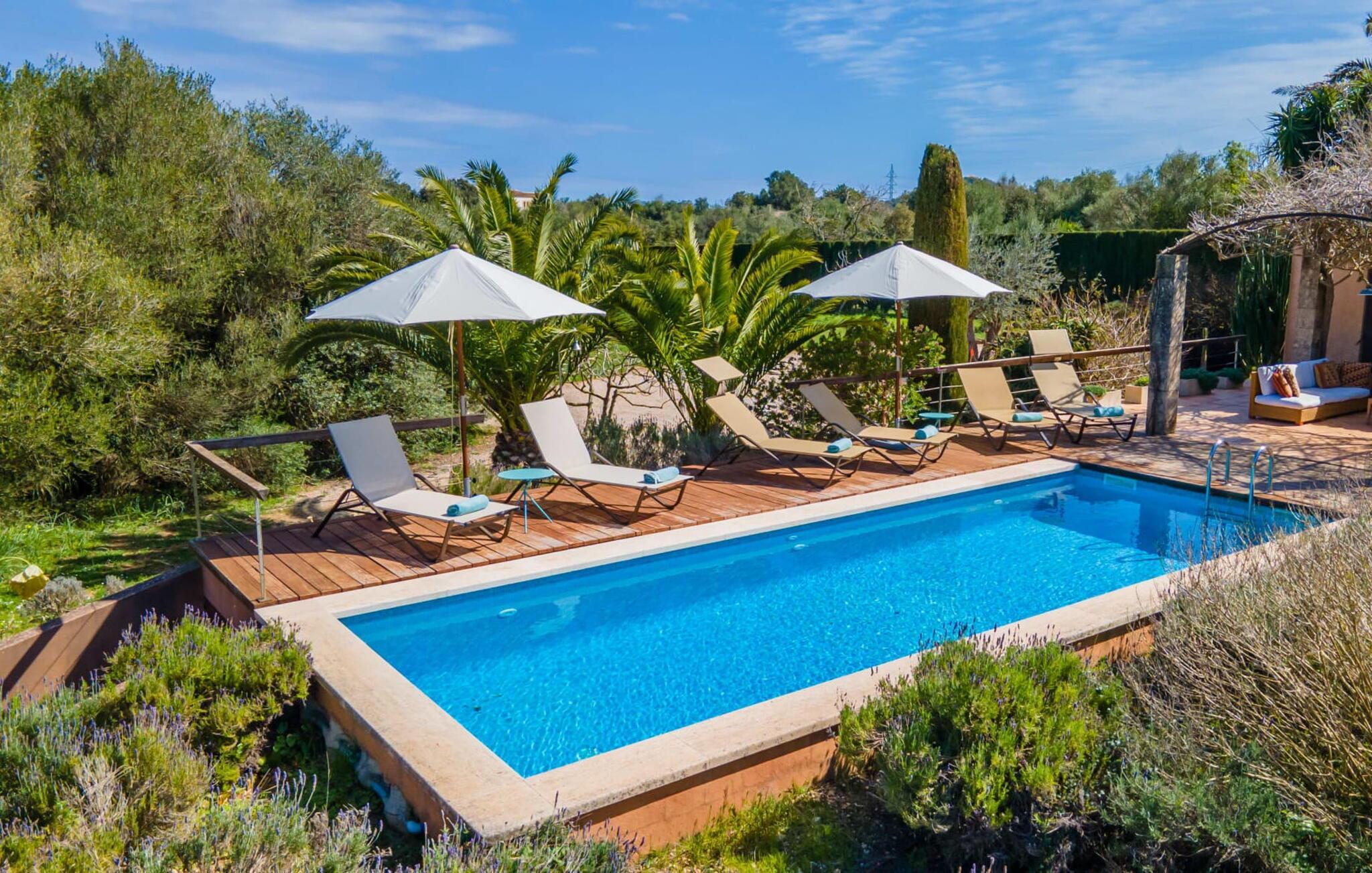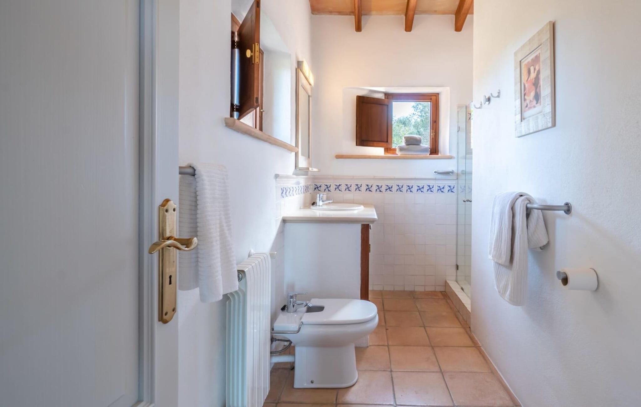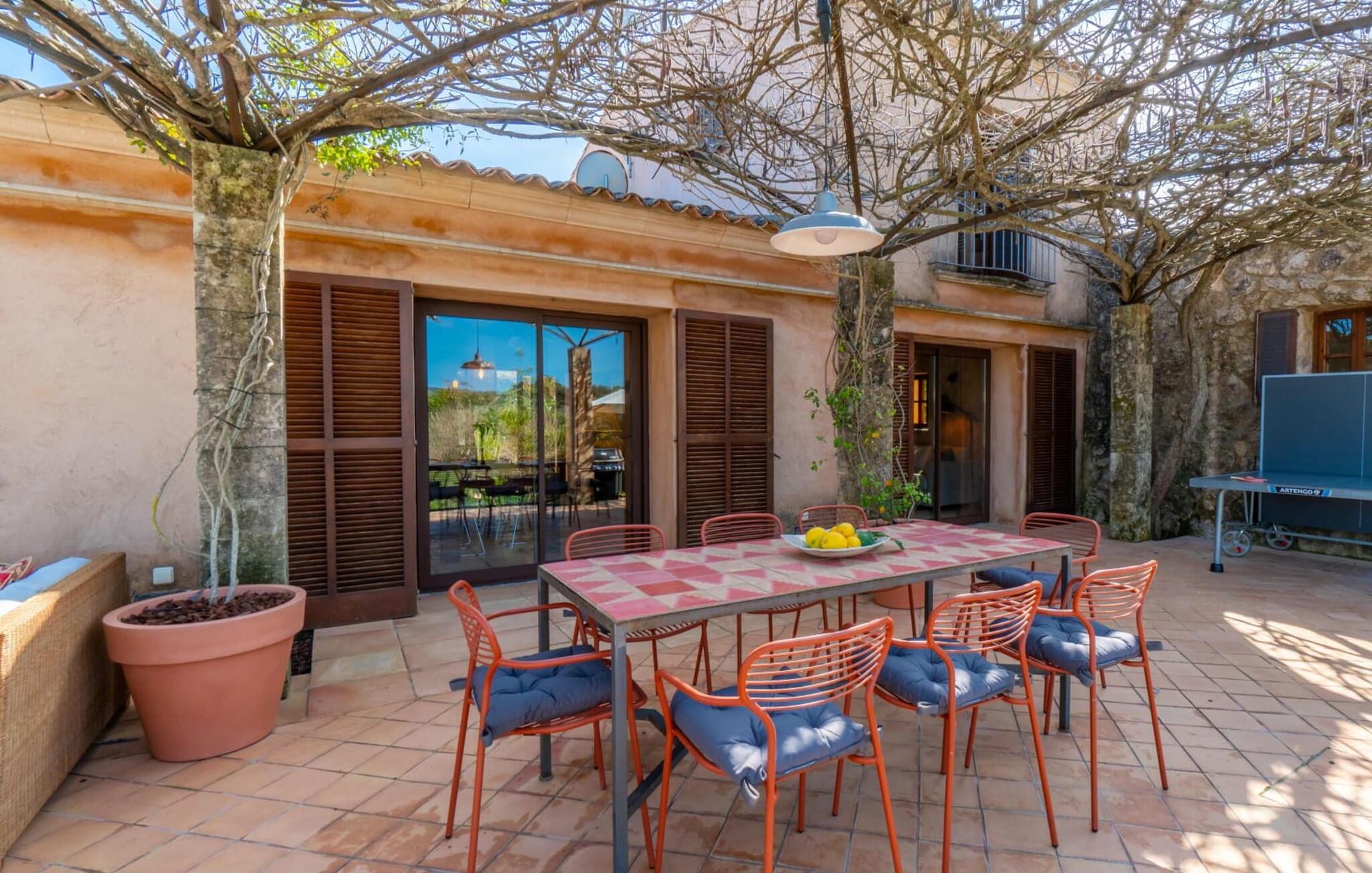 Rustik og charmerende villa "Casa Alma" er beliggende i det smukke landskab på østsiden af øen. Det typiske mallorcanske hus ligger på en 7.000 m² stor grund i en absolut rolig beliggenhed kun 2 km syd for byen Artà. Det er omgivet af omfattende oliven- og mandeltræer, og dets autentiske landlige stil passer perfekt til det lokale ømiljø. Dette feriehus er omgivet af en stor naturhave og har 300 m² varierede terrasser, som rummer en pool på nordsiden af bygningen. Denne er let forhøjet og omgivet af en smuk træterrasse (med rækværk). Det ligner et flot soldæk ombord. Ind mod huset overgår træfladen til sten, der strækker sig i hele ejendommens bredde. Der er et hyggeligt spisebord under en vinstokke, det ideelle sted at spise sammen. Der er også en solid mursten udendørs grill, så du kan nyde din middag udendørs. Hvad kunne være bedre end en varm sommernat på Mallorca? En indbygget glashylde, messingfigurer, kinesiske vægplader, naturstensforskydninger, æstetiske møbler - alle disse detaljer og mere afspejler den dygtige stil, som denne villa er indrettet med. Ejendommen blev designet og bygget af en arkitekt, der bor på den baleariske ø Formentera og har bragt dette lille stykke paradis til live med stor sans for detaljer. Dette gør hvert ophold her til en særlig oplevelse. Terrassen åbner ind i husets enorme opholdsrum gennem store glasdøre, mens selve indgangspartiet er på sydsiden af ejendommen. Stuen forbinder det åbne køkken med spiseplads og et stort sofahjørne i arabisk stil med tv, cd-afspiller og aircondition. Det massive bord er også et godt sted at spise sammen indendørs. Køkkenet er naturligvis fuldt udstyret med opvaskemaskine og stort køleskab med fryserum. Bag køkkenet er der et overskueligt bryggers med vaskemaskine. Fra den åbne opholdsstue er der direkte adgang til de tre soveområder, som ligger diametralt over for hinanden i stueetagen og tilbyder gæsterne et højt niveau af privatliv. Hvert af disse rolige værelser i stueetagen består af et soveværelse med dobbeltseng med eget badeværelse en-suite. Det tredje soveværelse, et andet soveværelse med dobbeltseng og en-suite badeværelse, er placeret på øverste etage. Dette har aircondition. Fra stuen fører trappen op til det øverste niveau. Vi vil også gerne fremhæve den exceptionelle pris per nat, som er fremragende i betragtning af villaens overordnede stil. Vi anbefaler derfor dette hus til en familie med børn (fra 6 år), som værdsætter høj kvalitet på en ferie nær stranden på Mallorca. Uforstyrret fred kendetegner denne smukke ejendoms flair. Byen Artà ligger knap 2 km derfra. Gå en tur gennem farmers market, nyd travlheden og find en dejlig souvenir. Tag en pause i en af de mange caféer og restauranter. Et besøg på sandstrandene i Alcúdia-bugten er lige så nemt som en tur til en af de afsondrede naturstrande, såsom Cala Torta. Cala Ratjada har flere smarte restauranter lige ved stranden og havnepromenaden, som virkelig kommer til live om aftenen. Den fabelagtige, arkitektonisk udsøgte villa "Casa Alma" er beliggende i en meget rolig beliggenhed ved porten til byen Artà, kun få minutters kørsel fra flere fine sandstrande og fire golfbaner. Villaen ligger på en 7.000 m² stor grund, der byder på en vidunderlig udsigt over de grønne omgivelser og de smukke bakker i selve Artà. Shopping, shopping og spisemuligheder i byen ligger mindre end 2 km væk i bil. Du kan også nå den smukke havnepromenade i Cala Ratjada på ingen tid, hvor du finder utallige barer og restauranter langs havet. Dette er et Fincallorca feriehus.