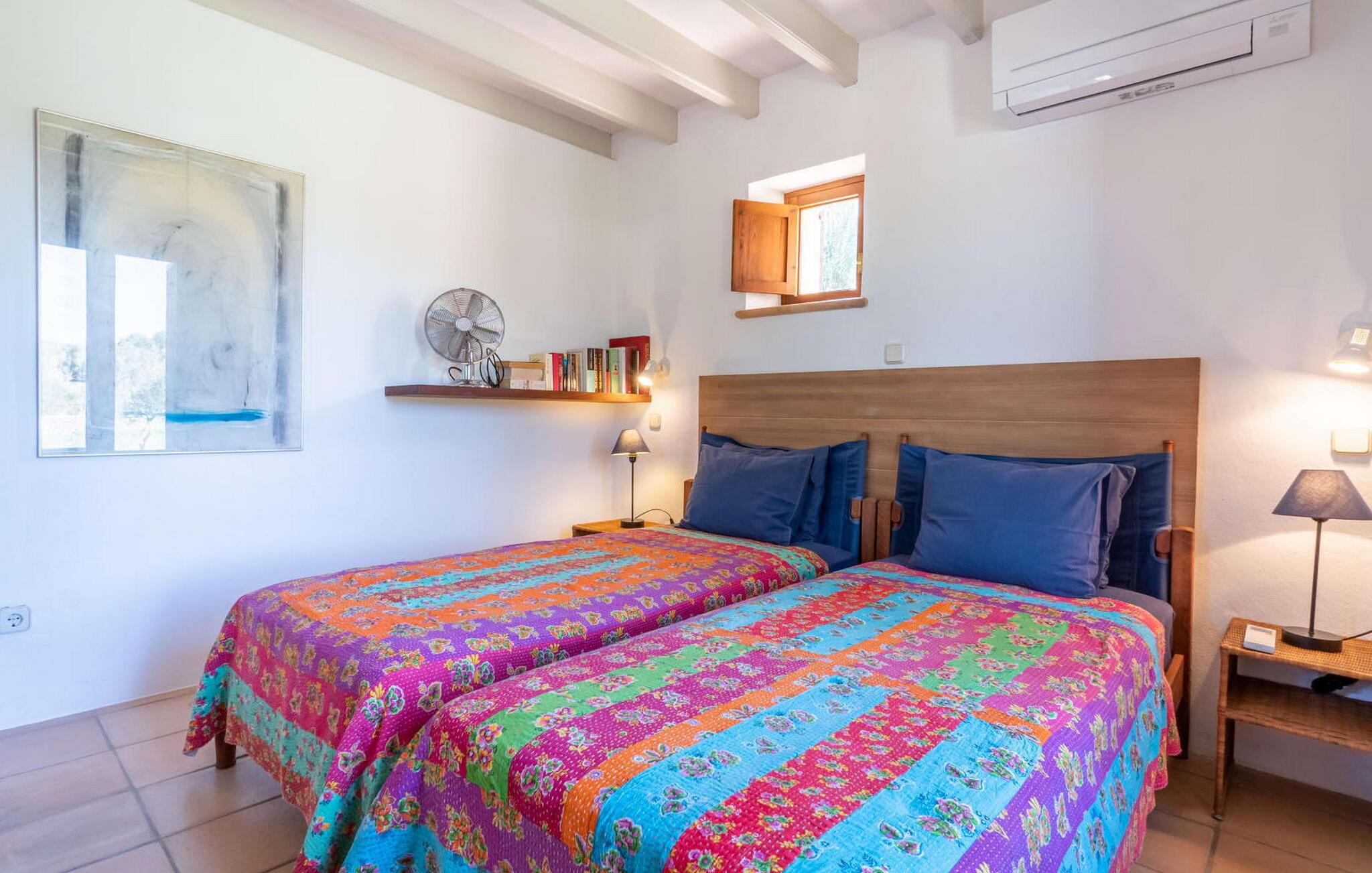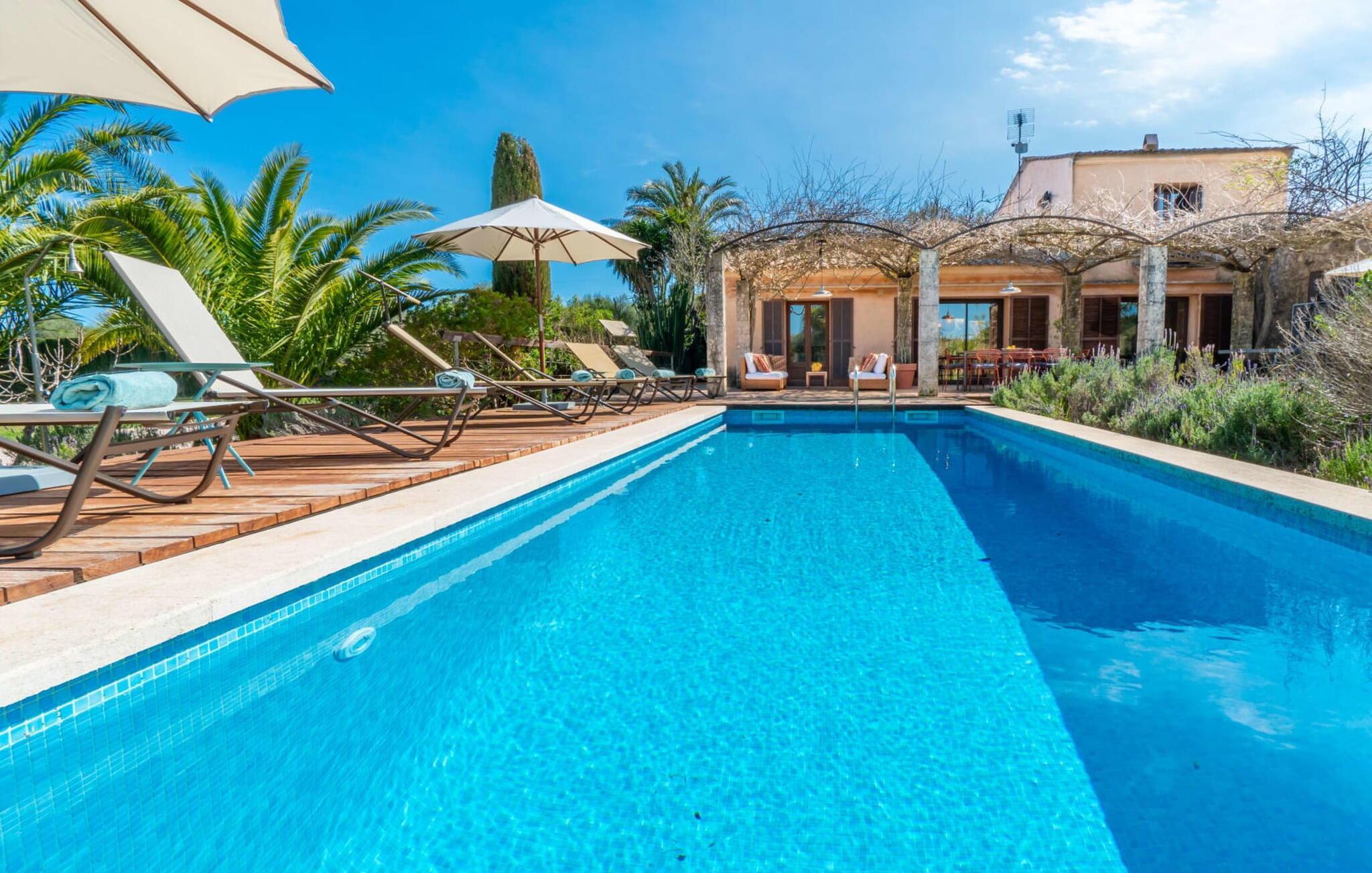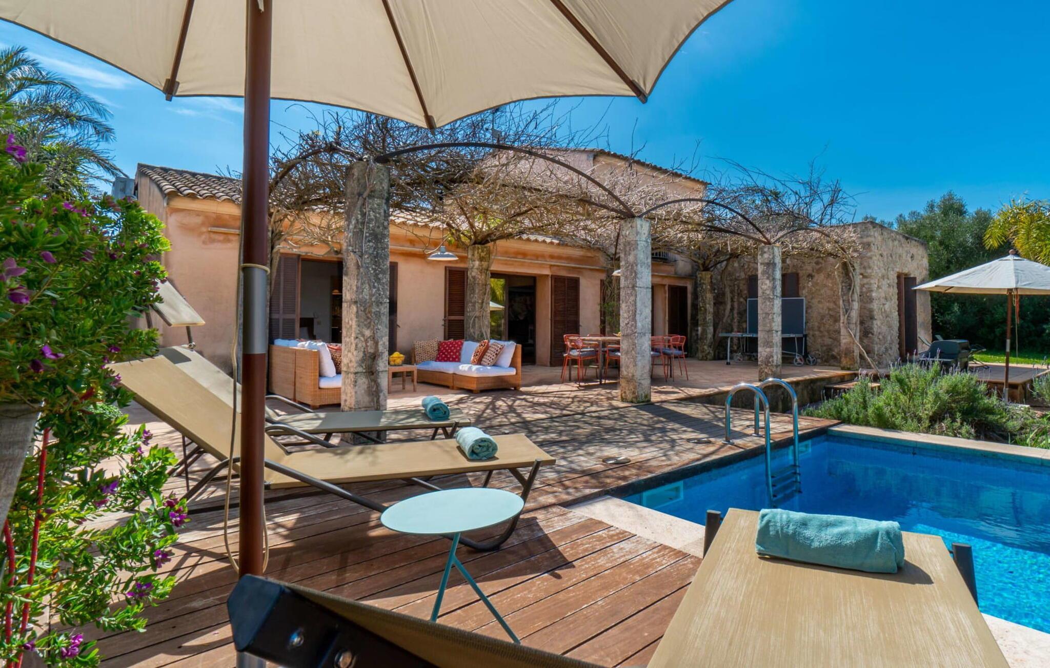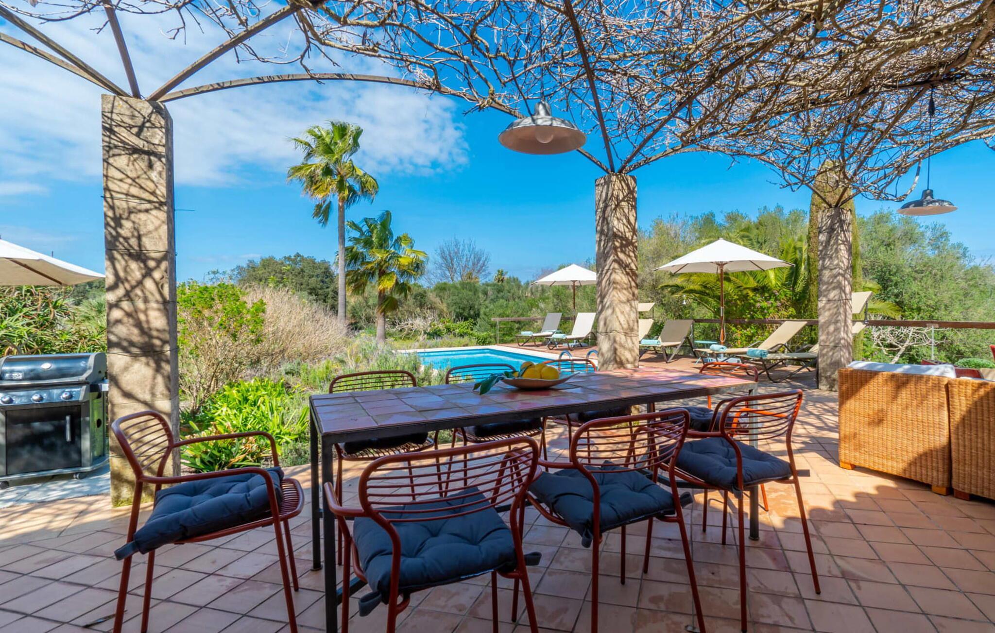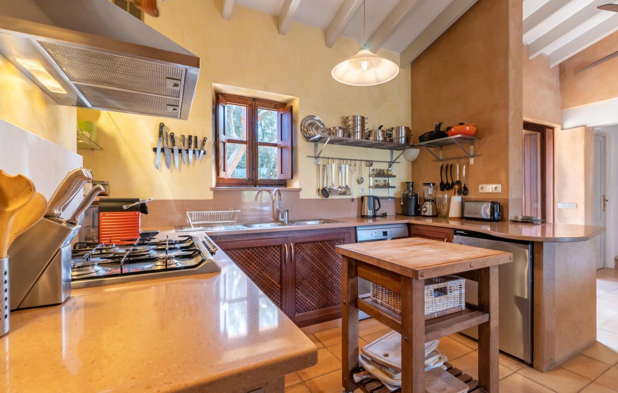 Rustik og charmerende villa "Casa Alma" er beliggende i det smukke landskab på østsiden af øen. Det typiske mallorcanske hus ligger på en 7.000 m² stor grund i en absolut rolig beliggenhed kun 2 km syd for byen Artà. Det er omgivet af omfattende oliven- og mandeltræer, og dets autentiske landlige stil passer perfekt til det lokale ømiljø. Dette feriehus er omgivet af en stor naturhave og har 300 m² varierede terrasser, som rummer en pool på nordsiden af bygningen. Denne er let forhøjet og omgivet af en smuk træterrasse (med rækværk). Det ligner et flot soldæk ombord. Ind mod huset overgår træfladen til sten, der strækker sig i hele ejendommens bredde. Der er et hyggeligt spisebord under en vinstokke, det ideelle sted at spise sammen. Der er også en solid mursten udendørs grill, så du kan nyde din middag udendørs. Hvad kunne være bedre end en varm sommernat på Mallorca? En indbygget glashylde, messingfigurer, kinesiske vægplader, naturstensforskydninger, æstetiske møbler - alle disse detaljer og mere afspejler den dygtige stil, som denne villa er indrettet med. Ejendommen blev designet og bygget af en arkitekt, der bor på den baleariske ø Formentera og har bragt dette lille stykke paradis til live med stor sans for detaljer. Dette gør hvert ophold her til en særlig oplevelse. Terrassen åbner ind i husets enorme opholdsrum gennem store glasdøre, mens selve indgangspartiet er på sydsiden af ejendommen. Stuen forbinder det åbne køkken med spiseplads og et stort sofahjørne i arabisk stil med tv, cd-afspiller og aircondition. Det massive bord er også et godt sted at spise sammen indendørs. Køkkenet er naturligvis fuldt udstyret med opvaskemaskine og stort køleskab med fryserum. Bag køkkenet er der et overskueligt bryggers med vaskemaskine. Fra den åbne opholdsstue er der direkte adgang til de tre soveområder, som ligger diametralt over for hinanden i stueetagen og tilbyder gæsterne et højt niveau af privatliv. Hvert af disse rolige værelser i stueetagen består af et soveværelse med dobbeltseng med eget badeværelse en-suite. Det tredje soveværelse, et andet soveværelse med dobbeltseng og en-suite badeværelse, er placeret på øverste etage. Dette har aircondition. Fra stuen fører trappen op til det øverste niveau. Vi vil også gerne fremhæve den exceptionelle pris per nat, som er fremragende i betragtning af villaens overordnede stil. Vi anbefaler derfor dette hus til en familie med børn (fra 6 år), som værdsætter høj kvalitet på en ferie nær stranden på Mallorca. Uforstyrret fred kendetegner denne smukke ejendoms flair. Byen Artà ligger knap 2 km derfra. Gå en tur gennem farmers market, nyd travlheden og find en dejlig souvenir. Tag en pause i en af de mange caféer og restauranter. Et besøg på sandstrandene i Alcúdia-bugten er lige så nemt som en tur til en af de afsondrede naturstrande, såsom Cala Torta. Cala Ratjada har flere smarte restauranter lige ved stranden og havnepromenaden, som virkelig kommer til live om aftenen. Den fabelagtige, arkitektonisk udsøgte villa "Casa Alma" er beliggende i en meget rolig beliggenhed ved porten til byen Artà, kun få minutters kørsel fra flere fine sandstrande og fire golfbaner. Villaen ligger på en 7.000 m² stor grund, der byder på en vidunderlig udsigt over de grønne omgivelser og de smukke bakker i selve Artà. Shopping, shopping og spisemuligheder i byen ligger mindre end 2 km væk i bil. Du kan også nå den smukke havnepromenade i Cala Ratjada på ingen tid, hvor du finder utallige barer og restauranter langs havet. Dette er et Fincallorca feriehus.