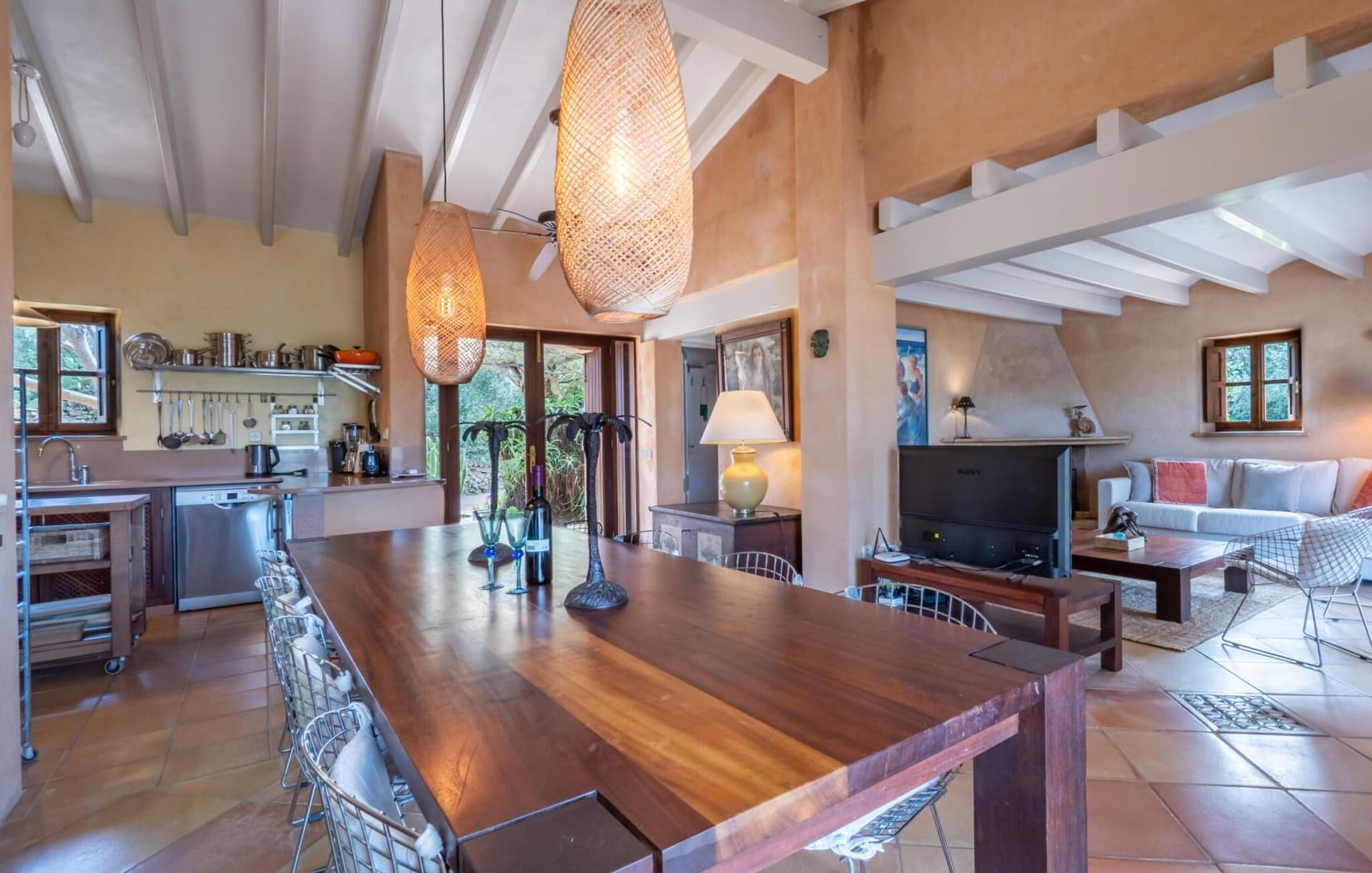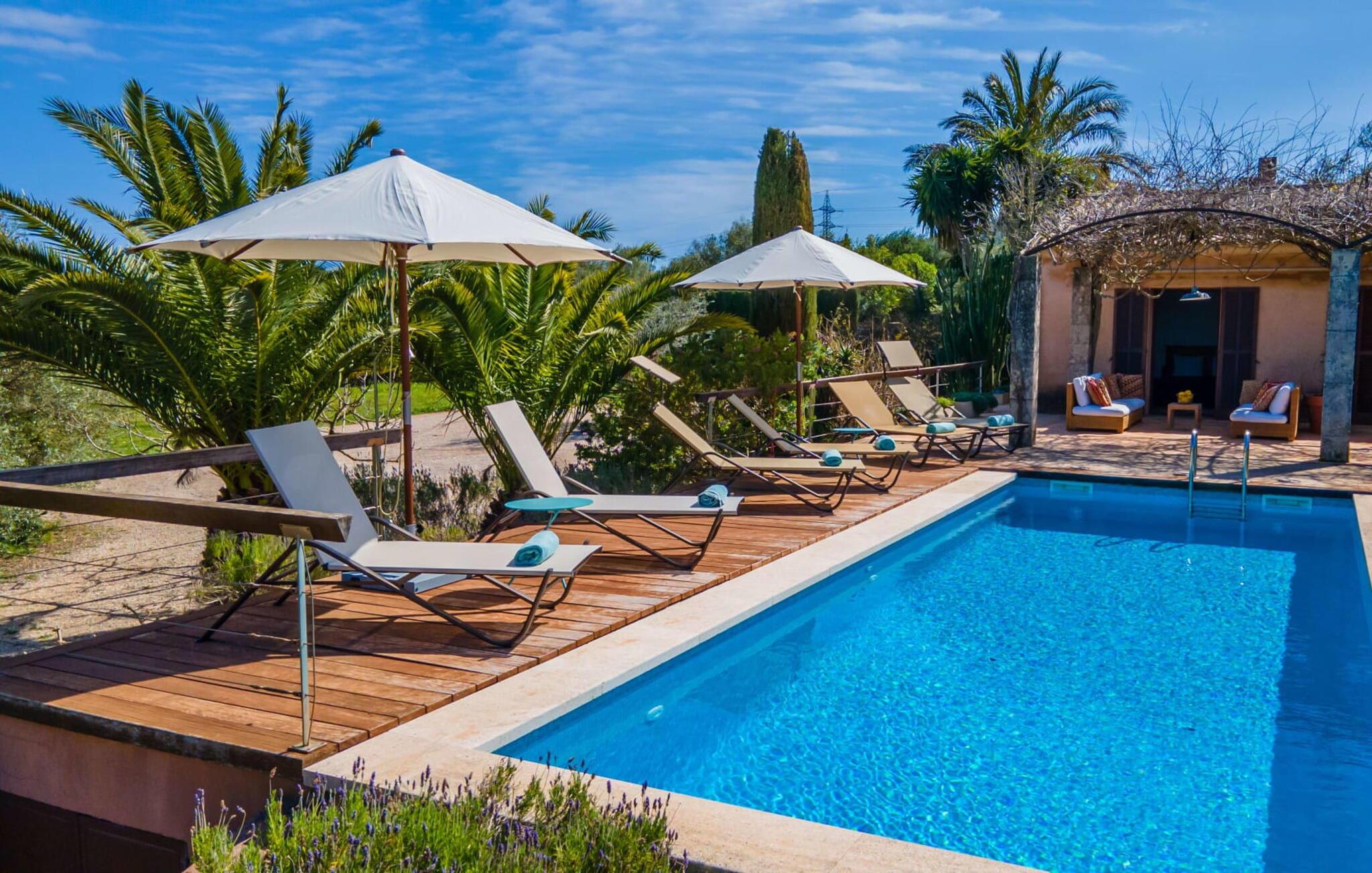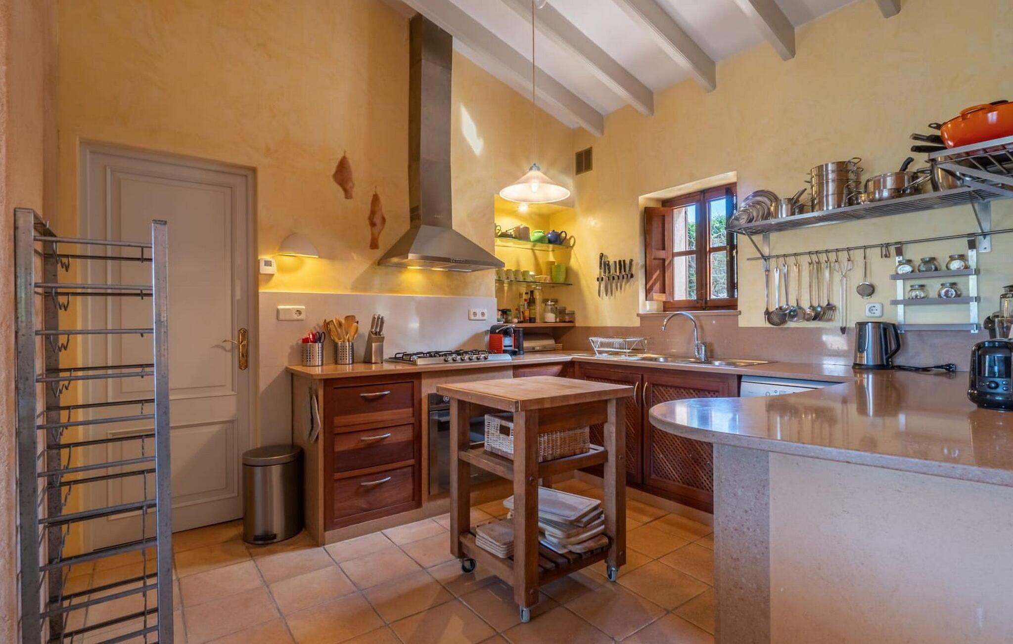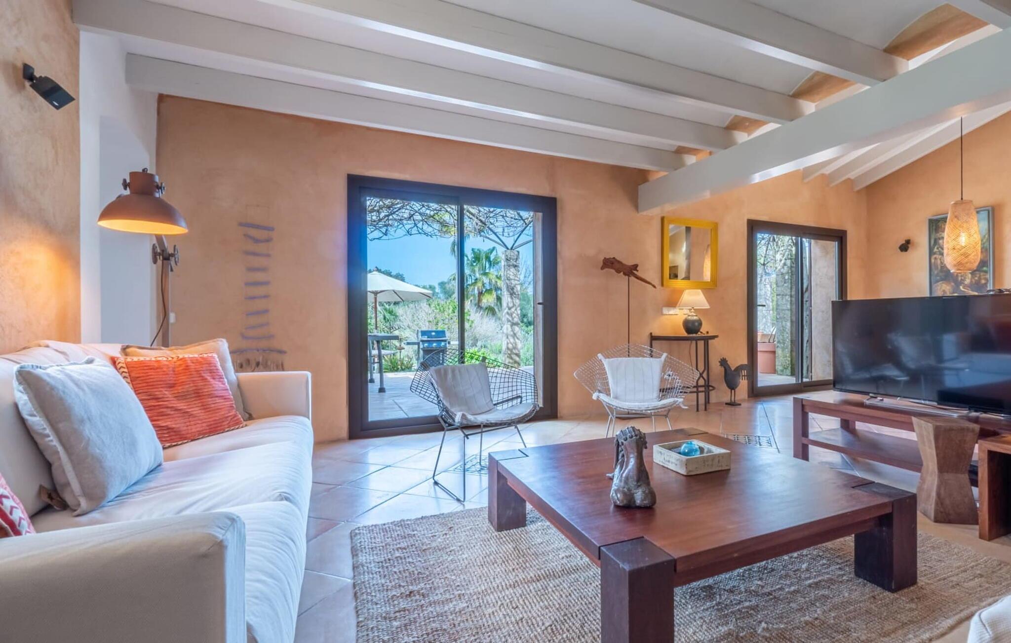 Rustik og charmerende villa "Casa Alma" er beliggende i det smukke landskab på østsiden af øen. Det typiske mallorcanske hus ligger på en 7.000 m² stor grund i en absolut rolig beliggenhed kun 2 km syd for byen Artà. Det er omgivet af omfattende oliven- og mandeltræer, og dets autentiske landlige stil passer perfekt til det lokale ømiljø. Dette feriehus er omgivet af en stor naturhave og har 300 m² varierede terrasser, som rummer en pool på nordsiden af bygningen. Denne er let forhøjet og omgivet af en smuk træterrasse (med rækværk). Det ligner et flot soldæk ombord. Ind mod huset overgår træfladen til sten, der strækker sig i hele ejendommens bredde. Der er et hyggeligt spisebord under en vinstokke, det ideelle sted at spise sammen. Der er også en solid mursten udendørs grill, så du kan nyde din middag udendørs. Hvad kunne være bedre end en varm sommernat på Mallorca? En indbygget glashylde, messingfigurer, kinesiske vægplader, naturstensforskydninger, æstetiske møbler - alle disse detaljer og mere afspejler den dygtige stil, som denne villa er indrettet med. Ejendommen blev designet og bygget af en arkitekt, der bor på den baleariske ø Formentera og har bragt dette lille stykke paradis til live med stor sans for detaljer. Dette gør hvert ophold her til en særlig oplevelse. Terrassen åbner ind i husets enorme opholdsrum gennem store glasdøre, mens selve indgangspartiet er på sydsiden af ejendommen. Stuen forbinder det åbne køkken med spiseplads og et stort sofahjørne i arabisk stil med tv, cd-afspiller og aircondition. Det massive bord er også et godt sted at spise sammen indendørs. Køkkenet er naturligvis fuldt udstyret med opvaskemaskine og stort køleskab med fryserum. Bag køkkenet er der et overskueligt bryggers med vaskemaskine. Fra den åbne opholdsstue er der direkte adgang til de tre soveområder, som ligger diametralt over for hinanden i stueetagen og tilbyder gæsterne et højt niveau af privatliv. Hvert af disse rolige værelser i stueetagen består af et soveværelse med dobbeltseng med eget badeværelse en-suite. Det tredje soveværelse, et andet soveværelse med dobbeltseng og en-suite badeværelse, er placeret på øverste etage. Dette har aircondition. Fra stuen fører trappen op til det øverste niveau. Vi vil også gerne fremhæve den exceptionelle pris per nat, som er fremragende i betragtning af villaens overordnede stil. Vi anbefaler derfor dette hus til en familie med børn (fra 6 år), som værdsætter høj kvalitet på en ferie nær stranden på Mallorca. Uforstyrret fred kendetegner denne smukke ejendoms flair. Byen Artà ligger knap 2 km derfra. Gå en tur gennem farmers market, nyd travlheden og find en dejlig souvenir. Tag en pause i en af de mange caféer og restauranter. Et besøg på sandstrandene i Alcúdia-bugten er lige så nemt som en tur til en af de afsondrede naturstrande, såsom Cala Torta. Cala Ratjada har flere smarte restauranter lige ved stranden og havnepromenaden, som virkelig kommer til live om aftenen. Den fabelagtige, arkitektonisk udsøgte villa "Casa Alma" er beliggende i en meget rolig beliggenhed ved porten til byen Artà, kun få minutters kørsel fra flere fine sandstrande og fire golfbaner. Villaen ligger på en 7.000 m² stor grund, der byder på en vidunderlig udsigt over de grønne omgivelser og de smukke bakker i selve Artà. Shopping, shopping og spisemuligheder i byen ligger mindre end 2 km væk i bil. Du kan også nå den smukke havnepromenade i Cala Ratjada på ingen tid, hvor du finder utallige barer og restauranter langs havet. Dette er et Fincallorca feriehus.