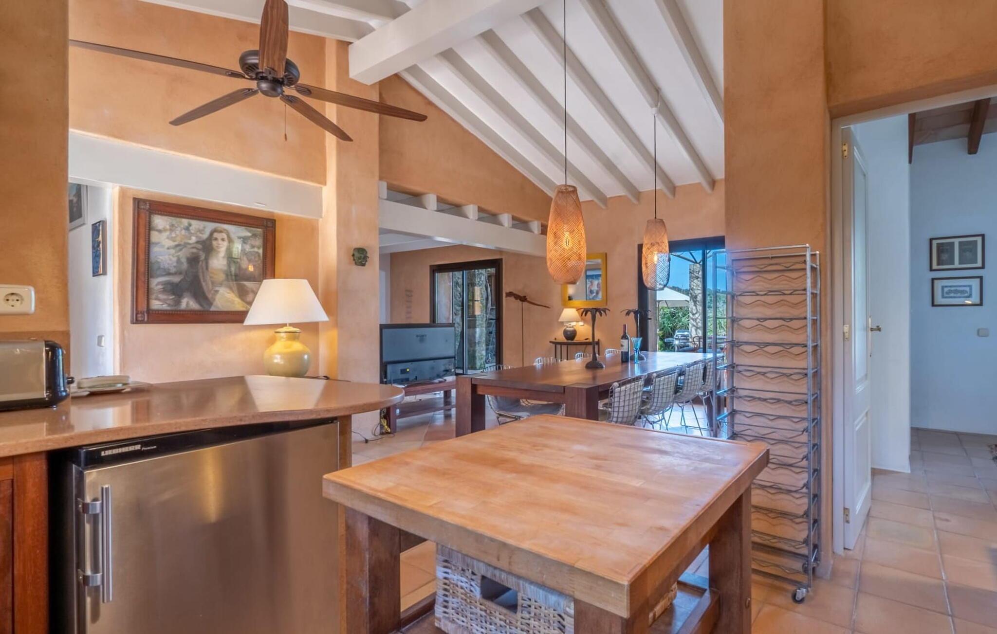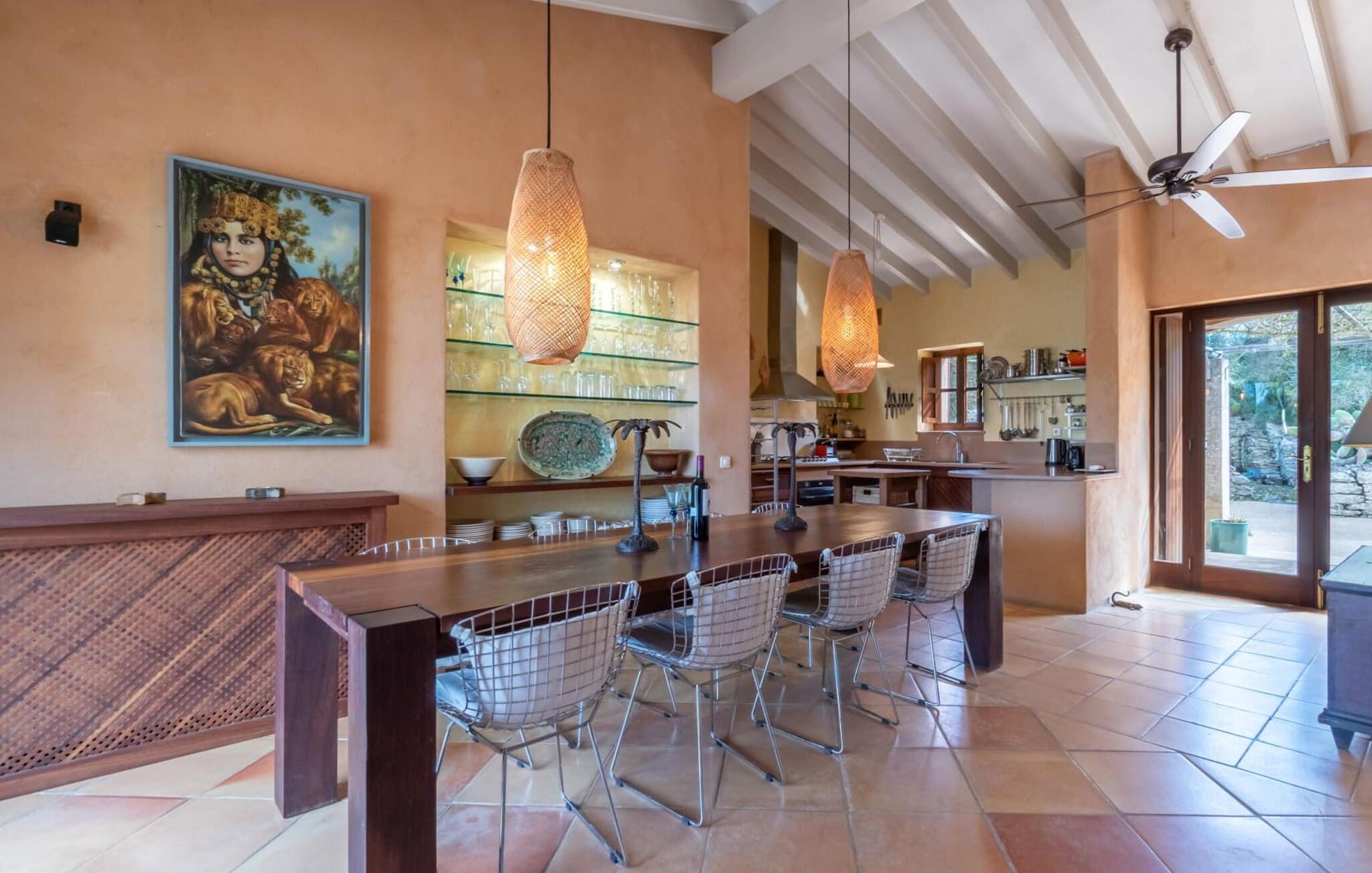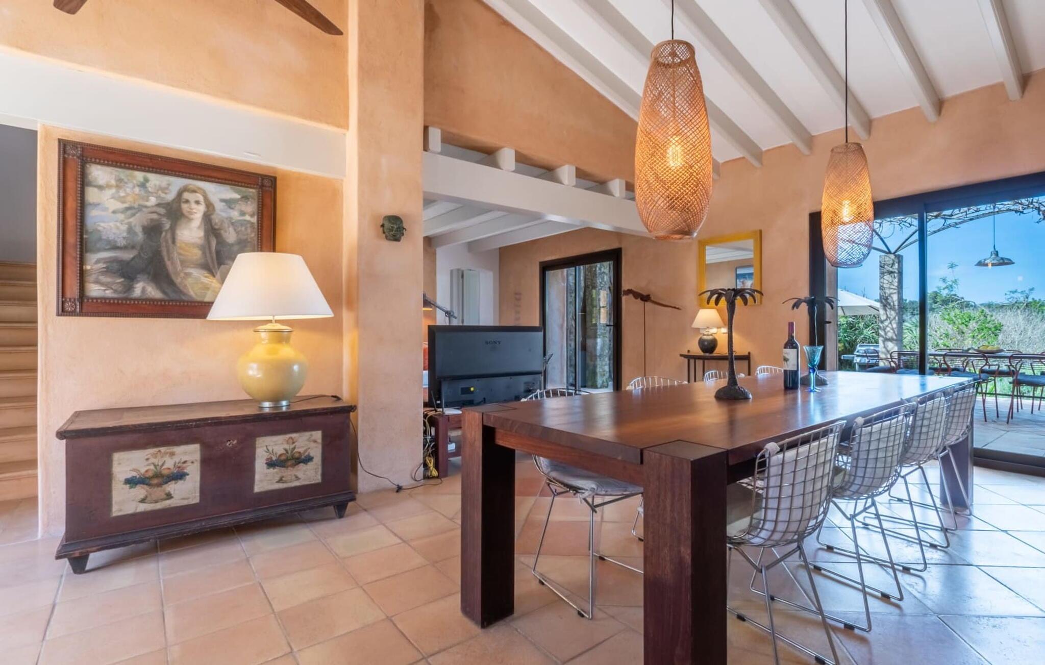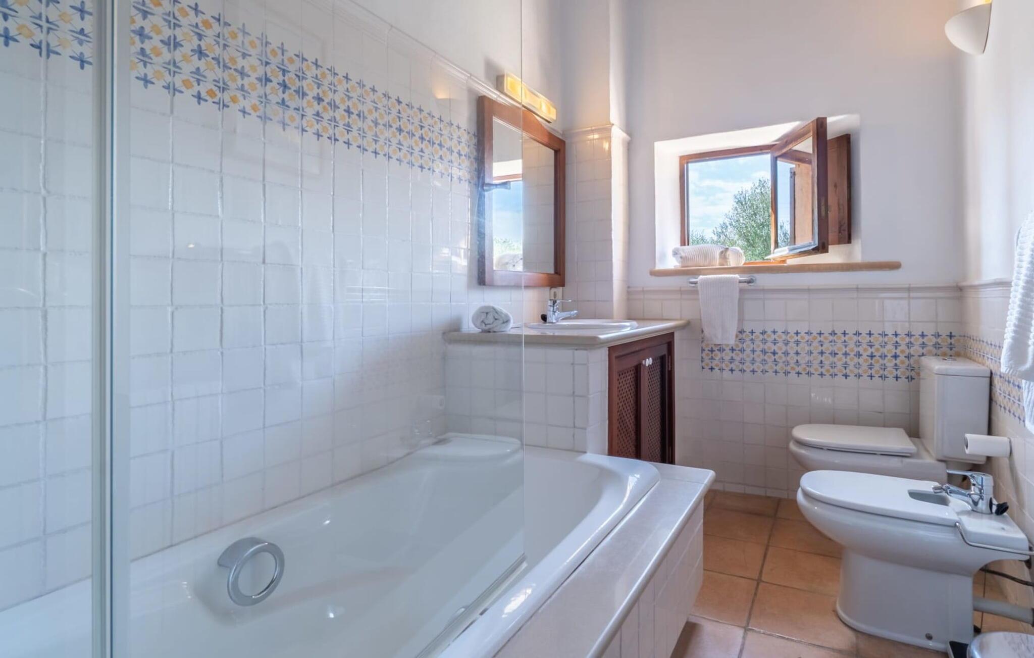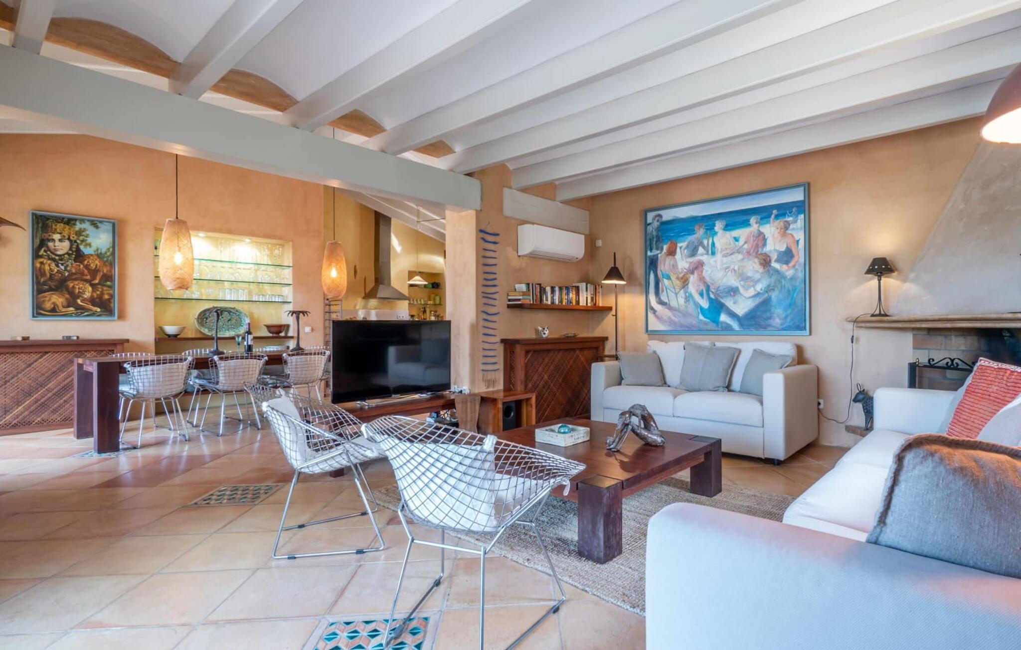Rustik og charmerende villa "Casa Alma" er beliggende i det smukke landskab på østsiden af øen. Det typiske mallorcanske hus ligger på en 7.000 m² stor grund i en absolut rolig beliggenhed kun 2 km syd for byen Artà. Det er omgivet af omfattende oliven- og mandeltræer, og dets autentiske landlige stil passer perfekt til det lokale ømiljø. Dette feriehus er omgivet af en stor naturhave og har 300 m² varierede terrasser, som rummer en pool på nordsiden af bygningen. Denne er let forhøjet og omgivet af en smuk træterrasse (med rækværk). Det ligner et flot soldæk ombord. Ind mod huset overgår træfladen til sten, der strækker sig i hele ejendommens bredde. Der er et hyggeligt spisebord under en vinstokke, det ideelle sted at spise sammen. Der er også en solid mursten udendørs grill, så du kan nyde din middag udendørs. Hvad kunne være bedre end en varm sommernat på Mallorca? En indbygget glashylde, messingfigurer, kinesiske vægplader, naturstensforskydninger, æstetiske møbler - alle disse detaljer og mere afspejler den dygtige stil, som denne villa er indrettet med. Ejendommen blev designet og bygget af en arkitekt, der bor på den baleariske ø Formentera og har bragt dette lille stykke paradis til live med stor sans for detaljer. Dette gør hvert ophold her til en særlig oplevelse. Terrassen åbner ind i husets enorme opholdsrum gennem store glasdøre, mens selve indgangspartiet er på sydsiden af ejendommen. Stuen forbinder det åbne køkken med spiseplads og et stort sofahjørne i arabisk stil med tv, cd-afspiller og aircondition. Det massive bord er også et godt sted at spise sammen indendørs. Køkkenet er naturligvis fuldt udstyret med opvaskemaskine og stort køleskab med fryserum. Bag køkkenet er der et overskueligt bryggers med vaskemaskine. Fra den åbne opholdsstue er der direkte adgang til de tre soveområder, som ligger diametralt over for hinanden i stueetagen og tilbyder gæsterne et højt niveau af privatliv. Hvert af disse rolige værelser i stueetagen består af et soveværelse med dobbeltseng med eget badeværelse en-suite. Det tredje soveværelse, et andet soveværelse med dobbeltseng og en-suite badeværelse, er placeret på øverste etage. Dette har aircondition. Fra stuen fører trappen op til det øverste niveau. Vi vil også gerne fremhæve den exceptionelle pris per nat, som er fremragende i betragtning af villaens overordnede stil. Vi anbefaler derfor dette hus til en familie med børn (fra 6 år), som værdsætter høj kvalitet på en ferie nær stranden på Mallorca. Uforstyrret fred kendetegner denne smukke ejendoms flair. Byen Artà ligger knap 2 km derfra. Gå en tur gennem farmers market, nyd travlheden og find en dejlig souvenir. Tag en pause i en af de mange caféer og restauranter. Et besøg på sandstrandene i Alcúdia-bugten er lige så nemt som en tur til en af de afsondrede naturstrande, såsom Cala Torta. Cala Ratjada har flere smarte restauranter lige ved stranden og havnepromenaden, som virkelig kommer til live om aftenen. Den fabelagtige, arkitektonisk udsøgte villa "Casa Alma" er beliggende i en meget rolig beliggenhed ved porten til byen Artà, kun få minutters kørsel fra flere fine sandstrande og fire golfbaner. Villaen ligger på en 7.000 m² stor grund, der byder på en vidunderlig udsigt over de grønne omgivelser og de smukke bakker i selve Artà. Shopping, shopping og spisemuligheder i byen ligger mindre end 2 km væk i bil. Du kan også nå den smukke havnepromenade i Cala Ratjada på ingen tid, hvor du finder utallige barer og restauranter langs havet. Dette er et Fincallorca feriehus.