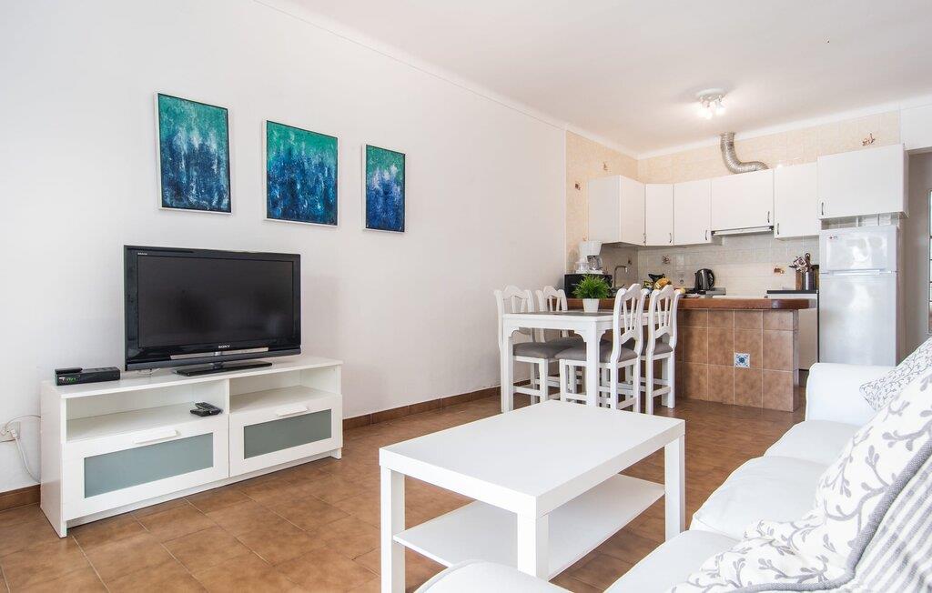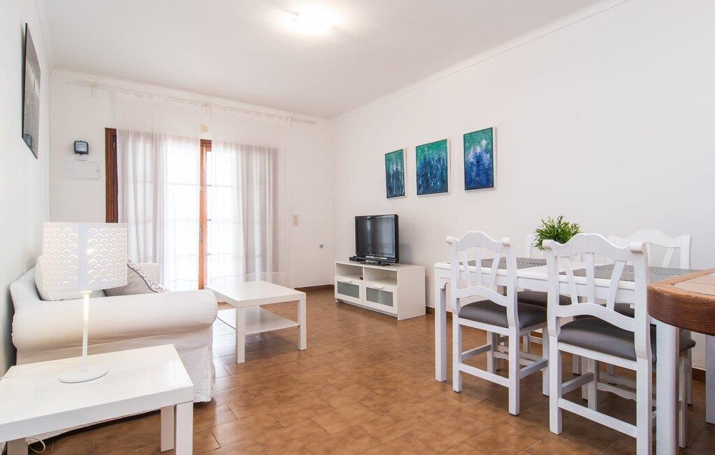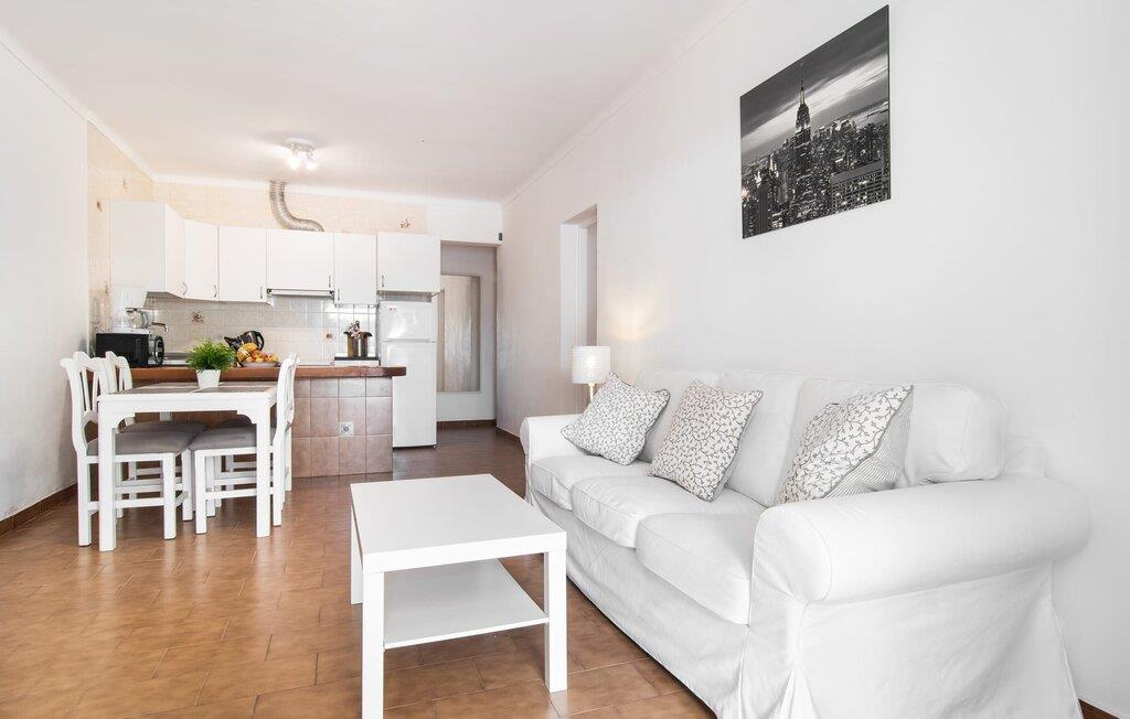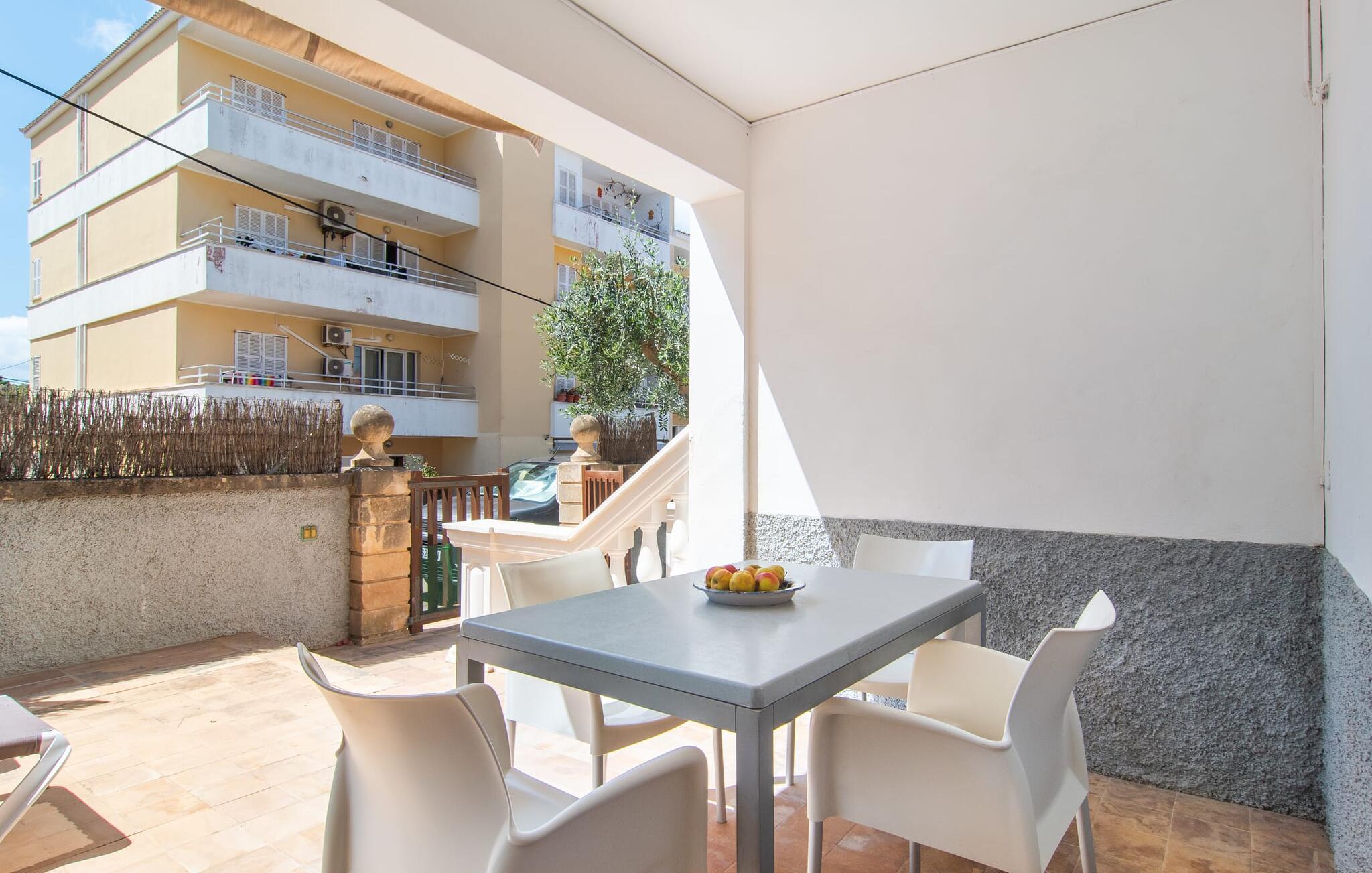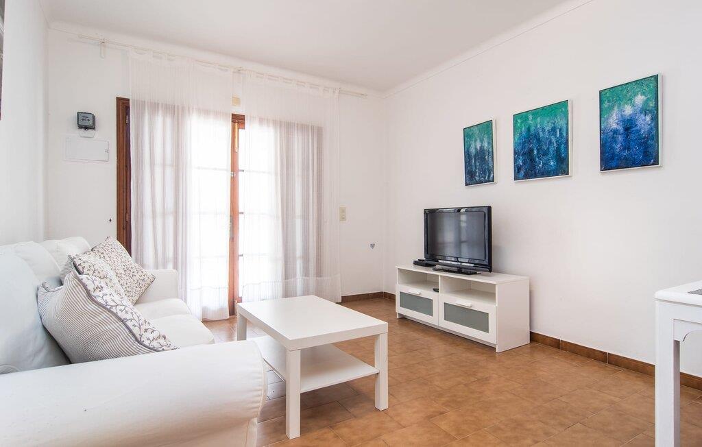 Udover den attraktive beliggenhed af denne ferielejlighed på Mallorca, venter et hyggeligt lille rige på jer, hvor I kan føle jer helt privat med op til fire feriegæster. På den møblerede terrasse finder I et hyggeligt sted til socialt samvær, for eksempel ved morgenmaden eller en aftengrill. I kan f.eks. få solide, friske råvarer på det ugentlige marked. Afhængig af solens placering og individuelle behov kan I blot placere spisebordet direkte under middelhavshimlen eller under et tag i nærheden af huset. Herfra er afstanden til opholdsområdet behageligt kort. Et gulv-til-loft vindue danner overgangen mellem ude og inde og leder ind i det flisebelagte åbne rum, hvor opholdsstue, spisestue og madlavning er placeret. En sofa og fjernsyn er en selvfølge her, ligesom et spisebord til indendørs måltider. Trådløst, hurtigt internet er selvfølgelig også tilgængeligt. Lyse vægge og møbler kombineret med dekorative vægmalerier skaber en venlig atmosfære. Det praktiske, fuldt udstyrede køkken er perfekt til selvforplejning under jeres ferie på Mallorca. I kan sove godt i de to hyggelige soveværelser, der hver er udstyret med en loftsventilator. Et badeværelse med bruser fuldender boligkomforten i denne ferielejlighed på vores yndlingsø. Feriehuset "Casa Ángela II Terraza" er beliggende i en bymæssig beliggenhed i udkanten af Es Pelats-distriktet. Boligområdet byder på indkøbs- og spisemuligheder inden for gåafstand. Den smukke promenade og havneområdet med caféer inviterer til slentre om aftenen. Smukke sandbugter som Cala Agulla eller Cala Gat kan nås med lejebil på få minutter. Cala Rajada tilbyder også attraktive aktiviteter som ridning eller bådture.