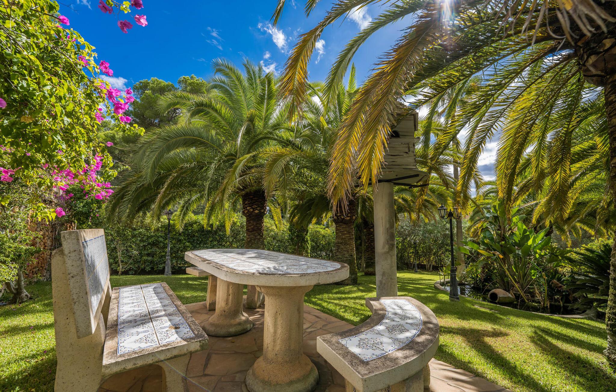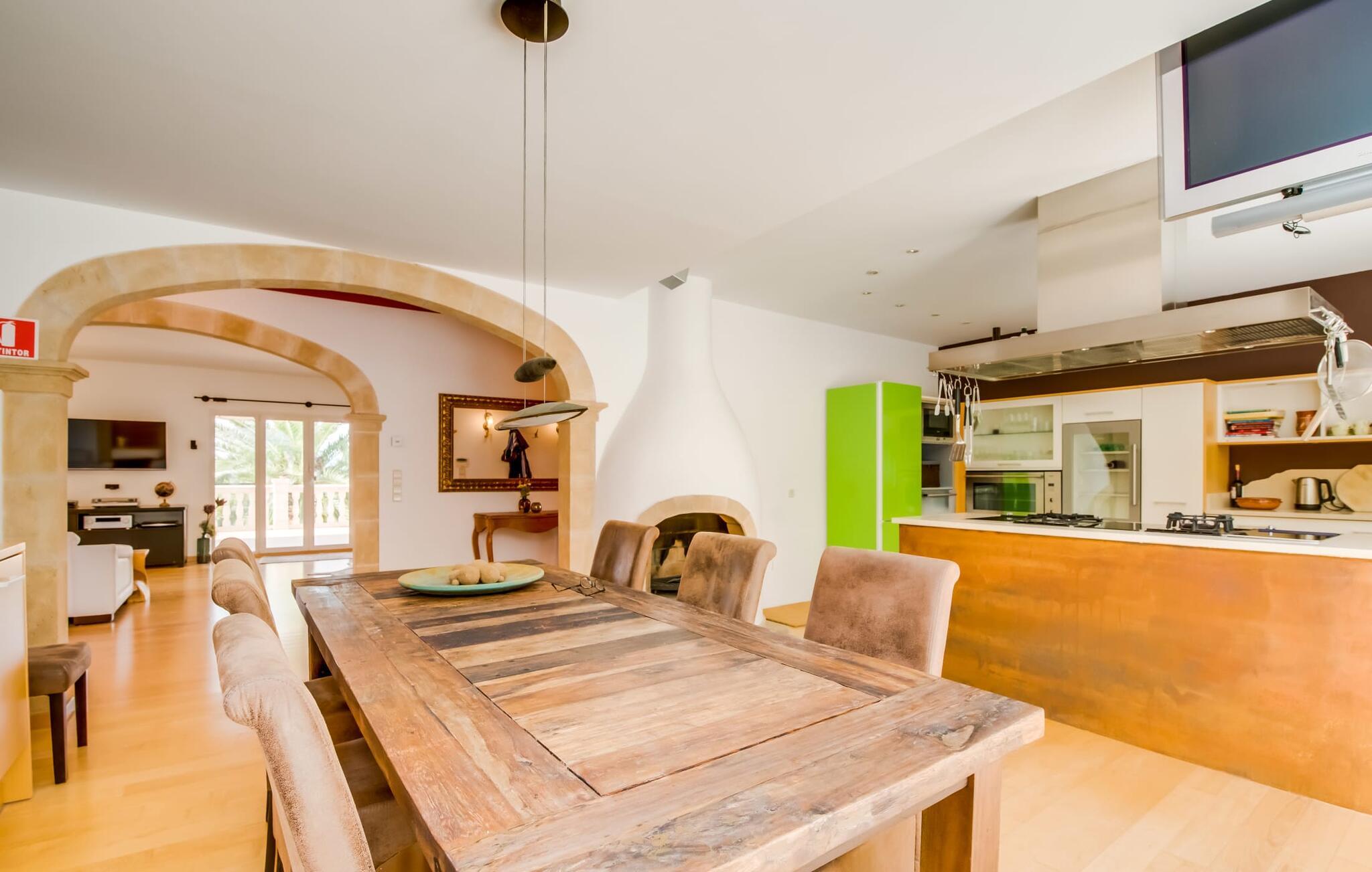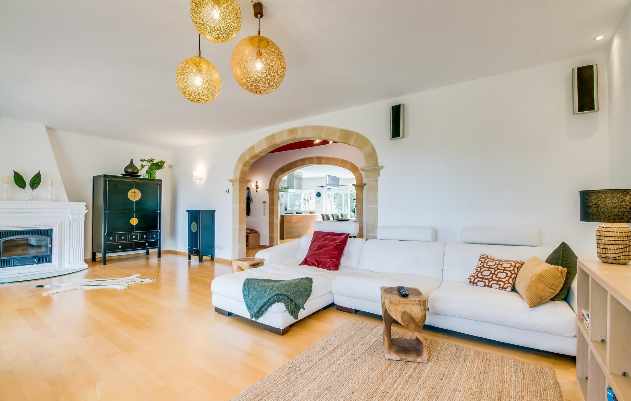 Et hav af palmer og whitecaps køler denne villa med sit eksotiske navn. I vil blive overrasket, når I ser det fuldt restaurerede og moderniserede Assindia fra alle sider. Gæsterne føler sig fuldstændig beskyttet under de grønne gardiner og bag poolområdets stenterrassetag, hvorigennem havets blå altid skinner igennem - selvom en vej (med meget lidt trafik) fører direkte forbi huset. Jo længere man klatrer fra haveoasen med sin idylliske dam og skyggefulde siddepladser, jo smukkere og friere bliver udsigten til bjergene. Villaens moderne interiør skinner også med masser af lys, hvide vægge, solrige aspekter og et varieret landskab til afslapning og siddende. Niveauet med den store altanterrasse deler den smagfuldt indrettede stue, læsehjørnet, et hyggeligt køkken, to soveværelser med badeværelser overfor og et gæstetoilet. Store sandstensbuer sørger for en flydende overgang, og selv to pejse sørger for knitrende hygge. Det åbne køkken med gaskomfur med el-konvektionsovn, vinkøleskab og fladskærms-tv lader intet tilbage at ønske, og mange af de ting, I skal bruge hver dag, hænger allerede fra loftet, lige ved hånden. I kan vælge at sidde afslappet ved bordet eller dække bordet udenfor med udsigt. Ovenpå har to gæster deres egen suite med walk-in-closet og stort badeværelse med regnbruser og spabad. Når I bor her, har I svært ved at komme ud af sengen eller endda ud af badekarret. Udsigten fra panoramavinduerne over bugten Cala Millor er simpelthen fantastisk. Livlig, fri og smuk: Udover populære feriesteder og badebugter til afslappet familieferie, byder denne kystregion på udflugtsmål, der opfylder jeres ønske om eventyr, romantik og kunst. Bukke under for charmen ved middelalderlig Artà; Gå en tur langs den maleriske havnepromenade i Cala Ratjada. Beundre milliardæren March's palads med dens enorme park og berømte skulpturer; Klatre op til slottet og kappen Capdepera og nyd udsigten over til Menorca; Start jeres vandretur til Puig de Ferrutx eller Puig de sa Todossa fra Ermita de Betlem. Oplev paradiset og hulerne i Artà og den underjordiske sø Coves del Drac; eller tag på familiesafari i Reserva Africa. I vil se en ny side af det østlige Mallorca hver dag uden at skulle rejse langt! Eksklusiv beliggenhed i et roligt villaområde på Costa del Pins: På østkysten mellem Cala Ratjada og Cala Millor ligger den fuldstændig moderniserede palmevilla Assindia med havudsigt, stor have og pool. En lille strand og et minisupermarked ligger inden for gåafstand. Sandbugterne Sa Marjal (med en strandbar) og Es Ribell er også i nærheden; Det er værd at tage en kort køretur til Cala Bona, Sa Coma og Cala Agulla. Kilometerslange promenader, gode indkøbsmuligheder, golfbaner og ugentlige markeder tilbydes det ene eller andet sted, f.eks. B. i Canyamel, Son Servera eller omkring havnen i Cala Bona.