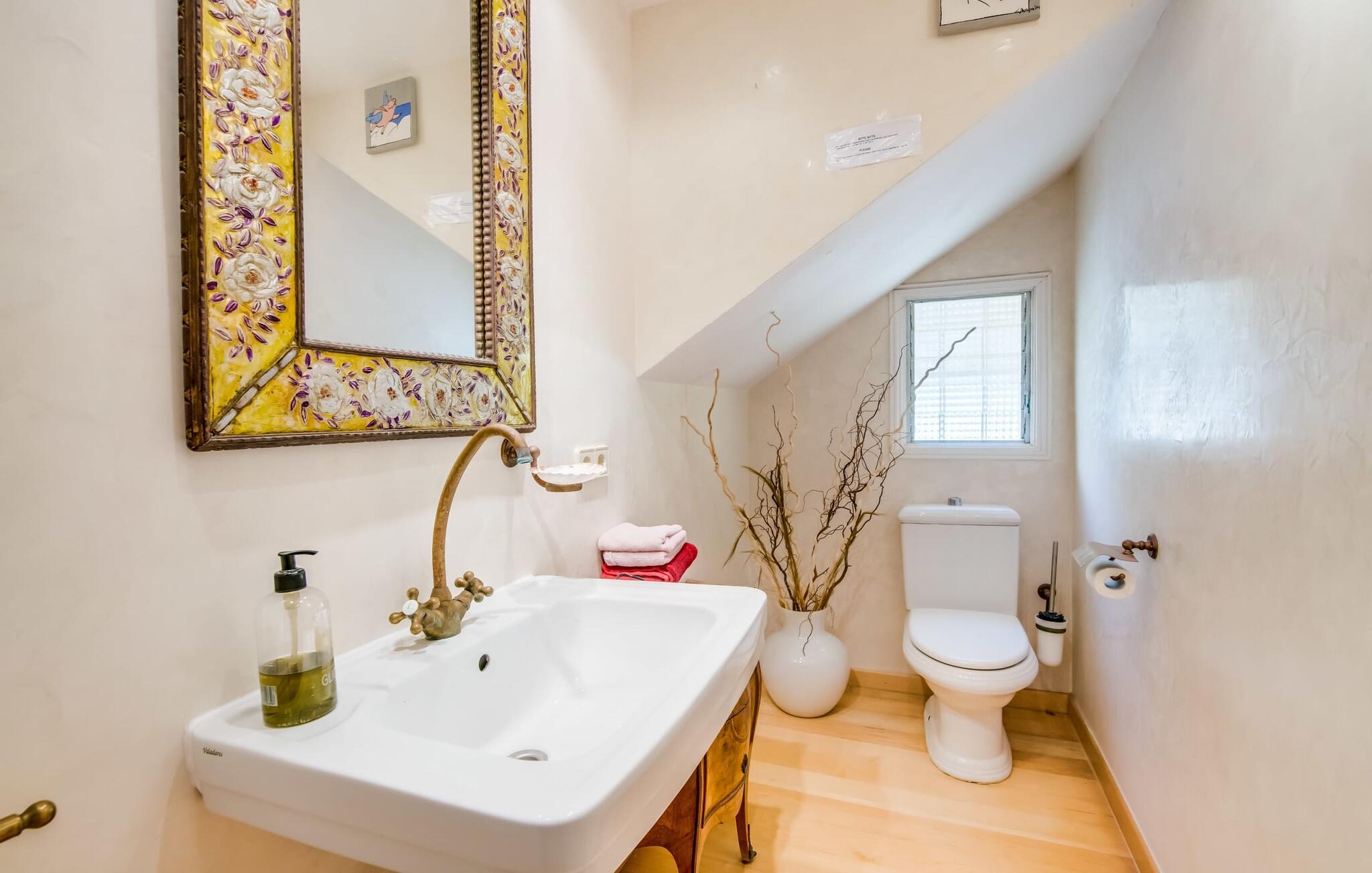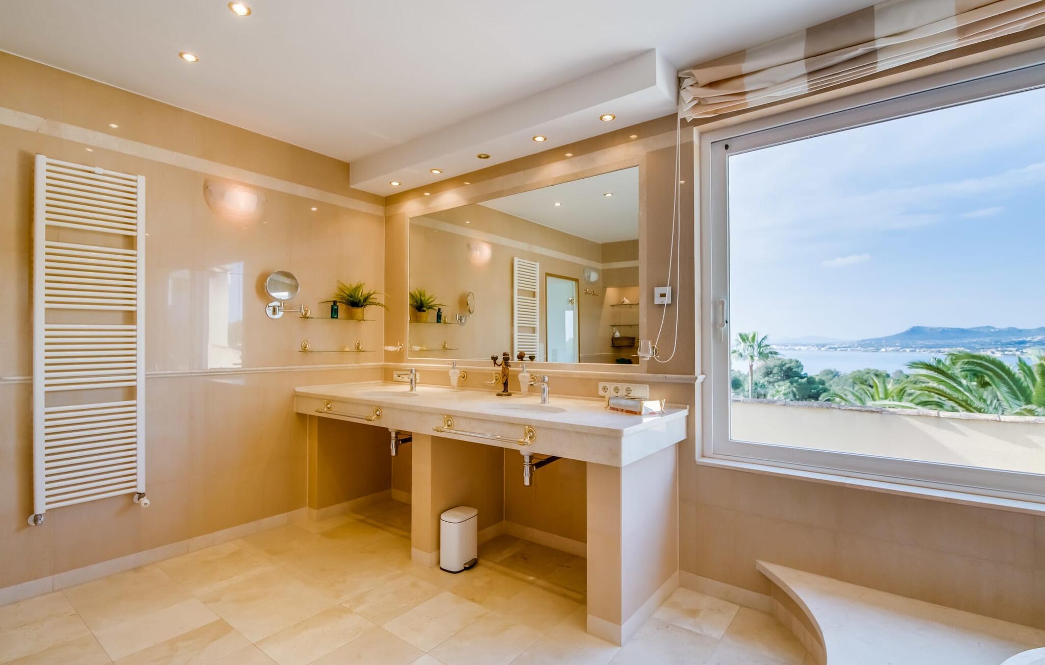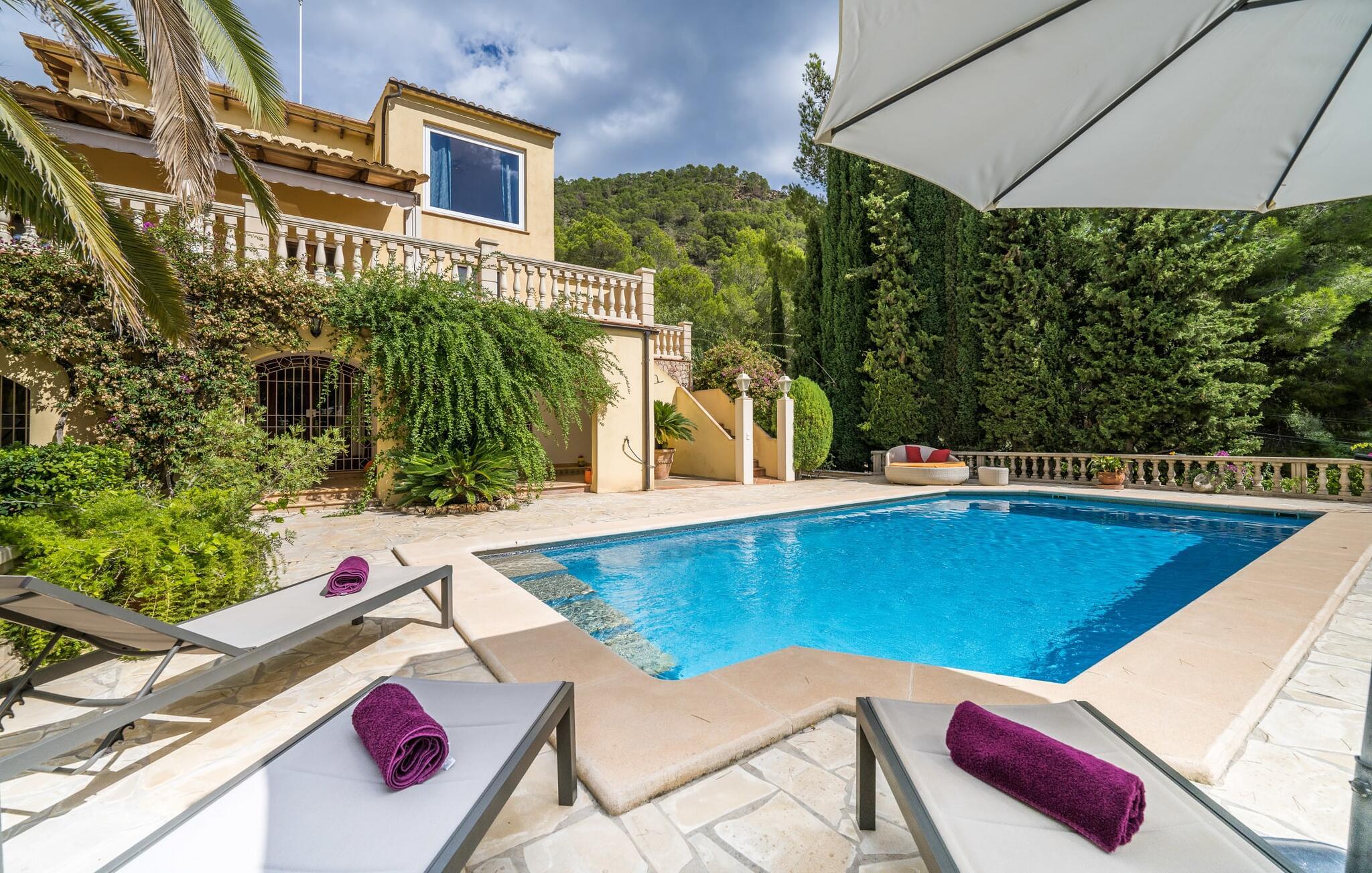 Et hav af palmer og whitecaps køler denne villa med sit eksotiske navn. I vil blive overrasket, når I ser det fuldt restaurerede og moderniserede Assindia fra alle sider. Gæsterne føler sig fuldstændig beskyttet under de grønne gardiner og bag poolområdets stenterrassetag, hvorigennem havets blå altid skinner igennem - selvom en vej (med meget lidt trafik) fører direkte forbi huset. Jo længere man klatrer fra haveoasen med sin idylliske dam og skyggefulde siddepladser, jo smukkere og friere bliver udsigten til bjergene. Villaens moderne interiør skinner også med masser af lys, hvide vægge, solrige aspekter og et varieret landskab til afslapning og siddende. Niveauet med den store altanterrasse deler den smagfuldt indrettede stue, læsehjørnet, et hyggeligt køkken, to soveværelser med badeværelser overfor og et gæstetoilet. Store sandstensbuer sørger for en flydende overgang, og selv to pejse sørger for knitrende hygge. Det åbne køkken med gaskomfur med el-konvektionsovn, vinkøleskab og fladskærms-tv lader intet tilbage at ønske, og mange af de ting, I skal bruge hver dag, hænger allerede fra loftet, lige ved hånden. I kan vælge at sidde afslappet ved bordet eller dække bordet udenfor med udsigt. Ovenpå har to gæster deres egen suite med walk-in-closet og stort badeværelse med regnbruser og spabad. Når I bor her, har I svært ved at komme ud af sengen eller endda ud af badekarret. Udsigten fra panoramavinduerne over bugten Cala Millor er simpelthen fantastisk. Livlig, fri og smuk: Udover populære feriesteder og badebugter til afslappet familieferie, byder denne kystregion på udflugtsmål, der opfylder jeres ønske om eventyr, romantik og kunst. Bukke under for charmen ved middelalderlig Artà; Gå en tur langs den maleriske havnepromenade i Cala Ratjada. Beundre milliardæren March's palads med dens enorme park og berømte skulpturer; Klatre op til slottet og kappen Capdepera og nyd udsigten over til Menorca; Start jeres vandretur til Puig de Ferrutx eller Puig de sa Todossa fra Ermita de Betlem. Oplev paradiset og hulerne i Artà og den underjordiske sø Coves del Drac; eller tag på familiesafari i Reserva Africa. I vil se en ny side af det østlige Mallorca hver dag uden at skulle rejse langt! Eksklusiv beliggenhed i et roligt villaområde på Costa del Pins: På østkysten mellem Cala Ratjada og Cala Millor ligger den fuldstændig moderniserede palmevilla Assindia med havudsigt, stor have og pool. En lille strand og et minisupermarked ligger inden for gåafstand. Sandbugterne Sa Marjal (med en strandbar) og Es Ribell er også i nærheden; Det er værd at tage en kort køretur til Cala Bona, Sa Coma og Cala Agulla. Kilometerslange promenader, gode indkøbsmuligheder, golfbaner og ugentlige markeder tilbydes det ene eller andet sted, f.eks. B. i Canyamel, Son Servera eller omkring havnen i Cala Bona.