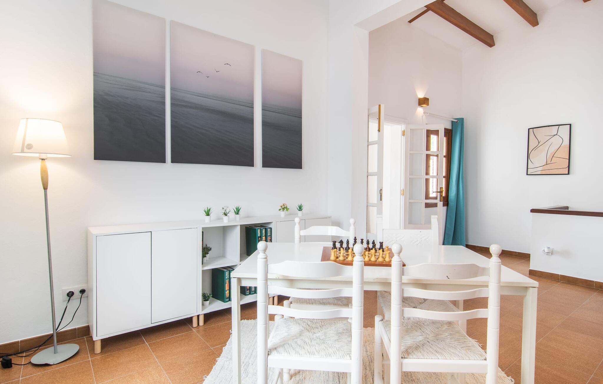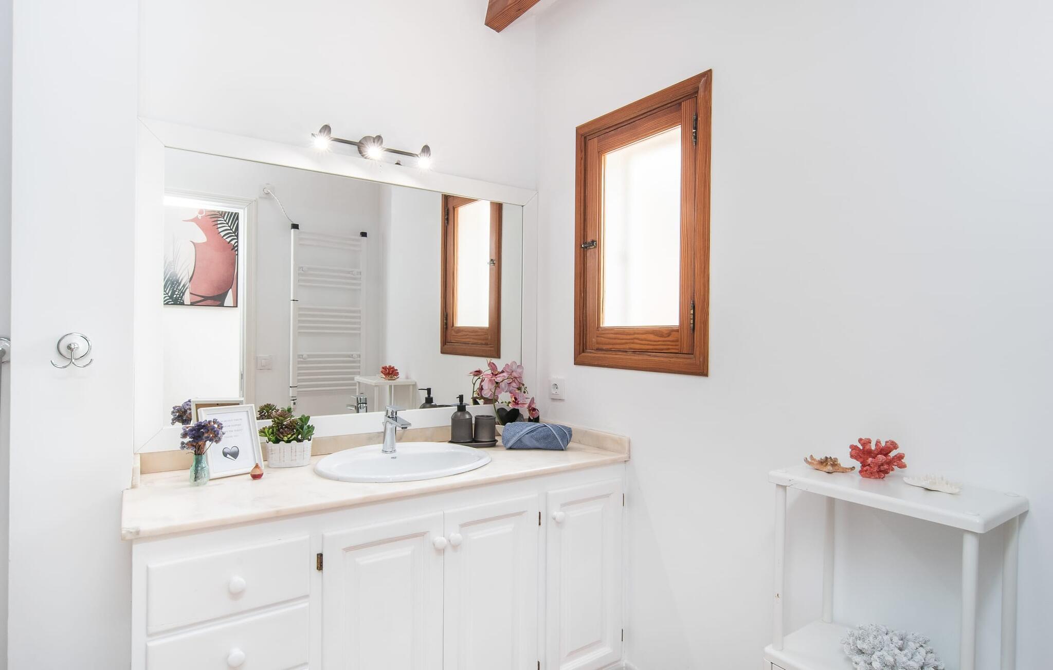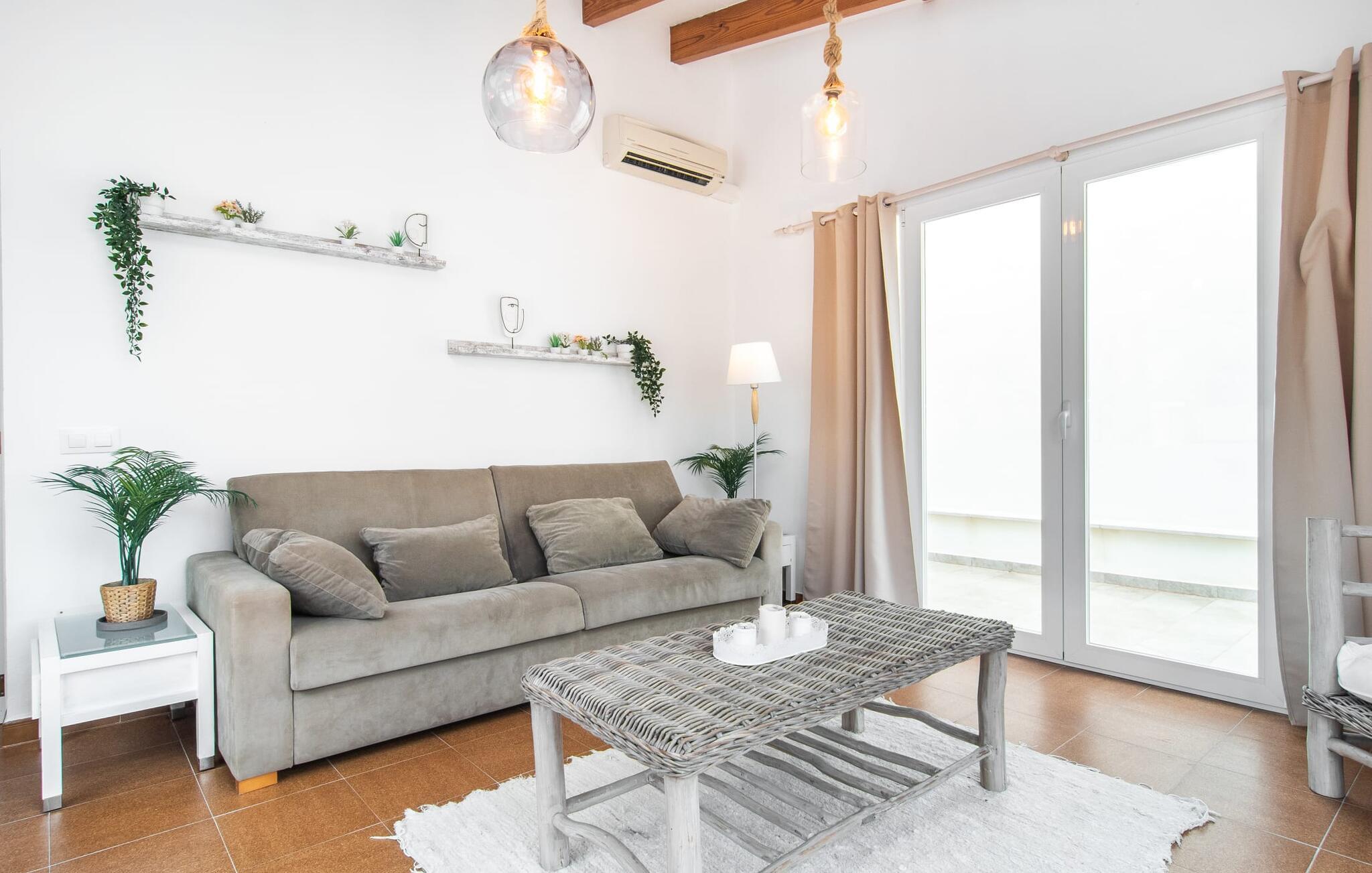 Hvis I vælger denne charmerende villa "Casa Bahia Colonia" på Mallorca, booker I et dejligt feriehus ved havet, hvor komfort og afslapning er i højsædet. Ejendommen har to udendørs områder, der er perfekte til at slappe af, nyde måltider eller spille spil. Et loungeområde og komfortable liggestole inviterer jer til at solbade under middelhavssolen. Den ovenpå altan byder på en fantastisk udsigt over havet og bjergene, mens en smuk privat terrasse på bagsiden giver direkte adgang til det rummelige køkken og ekstra liggestole. Indenfor imponerer huset med en moderne, hvid boligstemning. I stueetagen er der en smuk stue-spisestue ved siden af en terrasse og et fuldt udstyret køkken designet til selvstændig selvforplejning. Der er også to soveværelser og et brusebad på dette niveau. Ovenpå giver et ekstra opholdsområde med et bord, der er egnet til et hjemmekontor eller spilleaftener, samt et tredje soveværelse og et andet brusebad større indendørs afslapning og privatliv. Sammenfattende er dette smukt møblerede feriehus på Mallorca et ideelt tilflugtssted for alle, der værdsætter god infrastruktur, nærhed til havet og en følelse af privatliv. Villaen "Casa Bahia Colonia" har en god beliggenhed i den østlige del af øen i udkanten af den populære kystby Colònia de Sant Pere. Her er der korte afstande til indkøb og til hyggelige restauranter og caféer. Det er også kun få minutters gang til byens indbydende hovedstrand. Andre strande, herunder Son Serra de Marina, er let tilgængelige ad vej. Port d'Alcúdia ligger 17 km derfra.